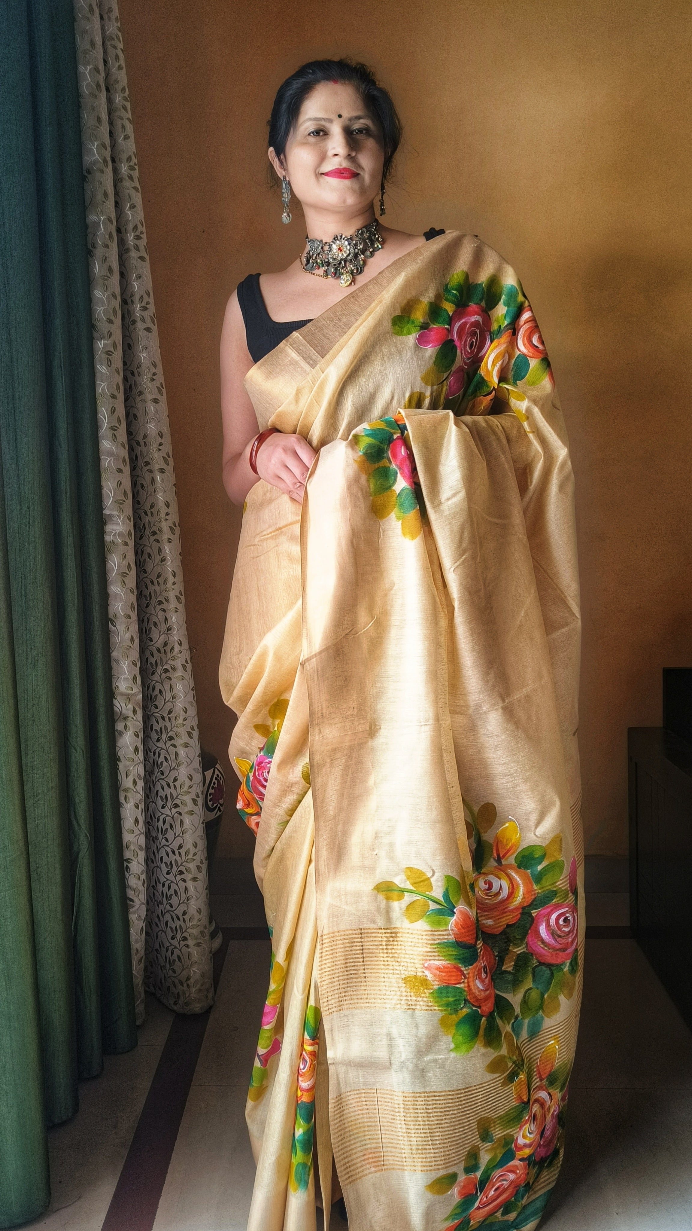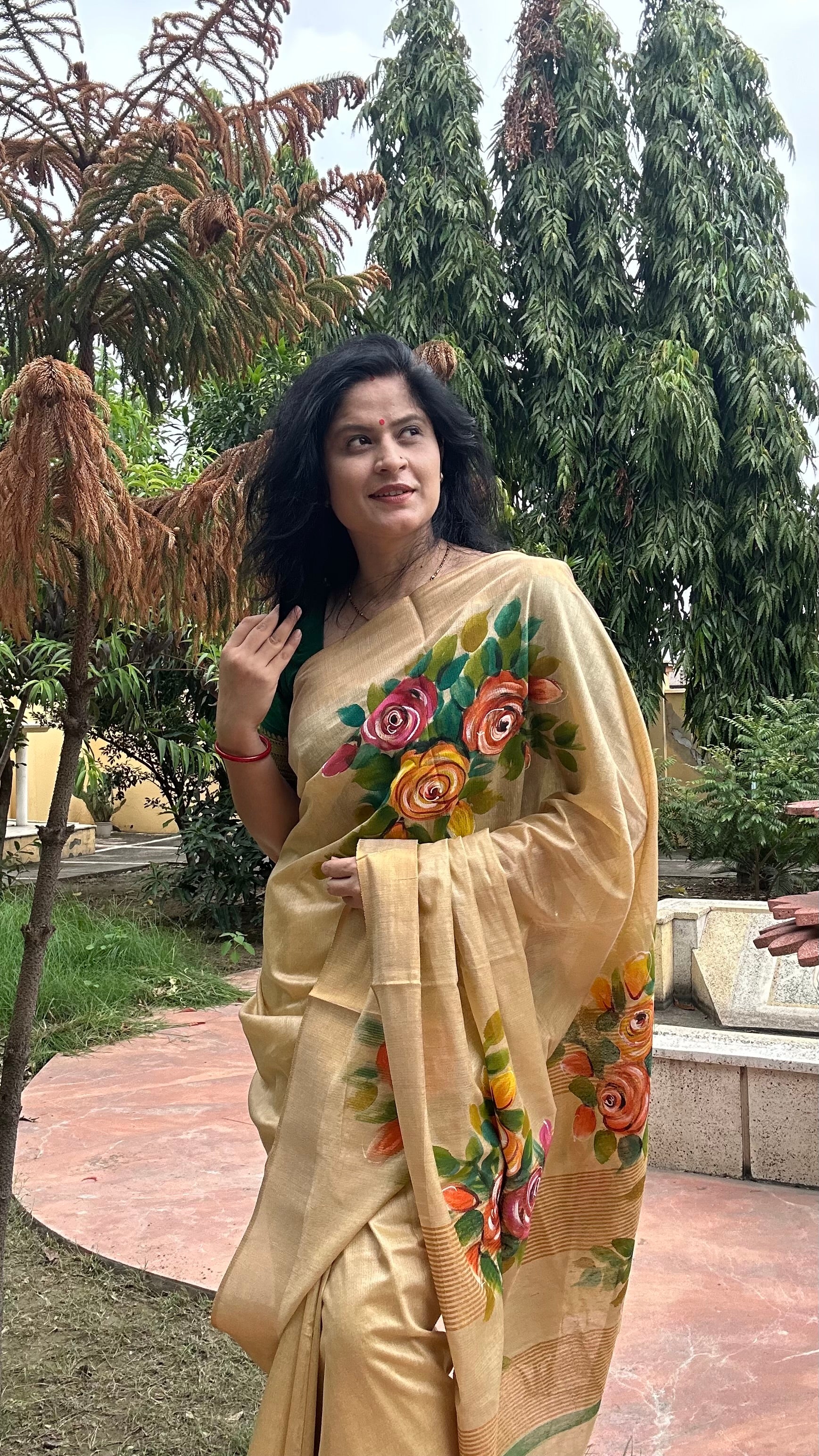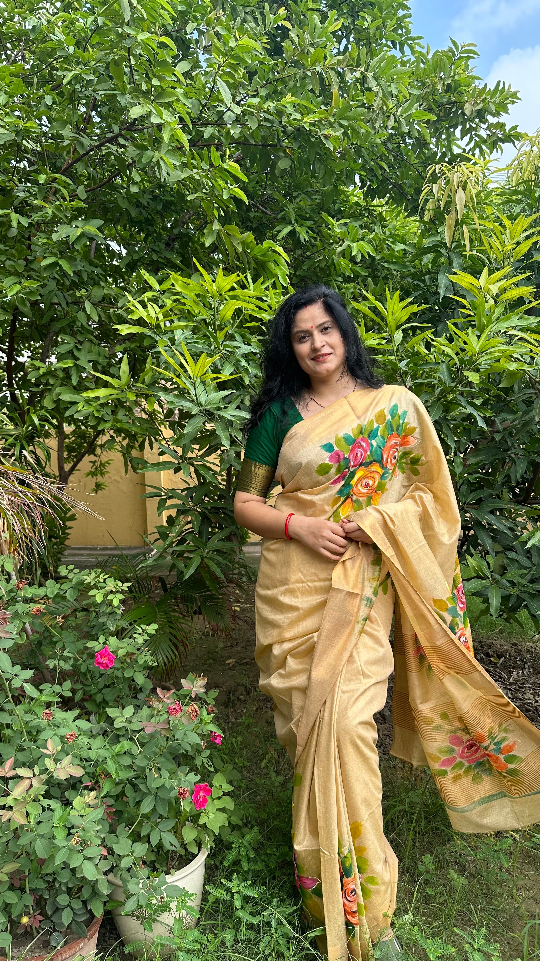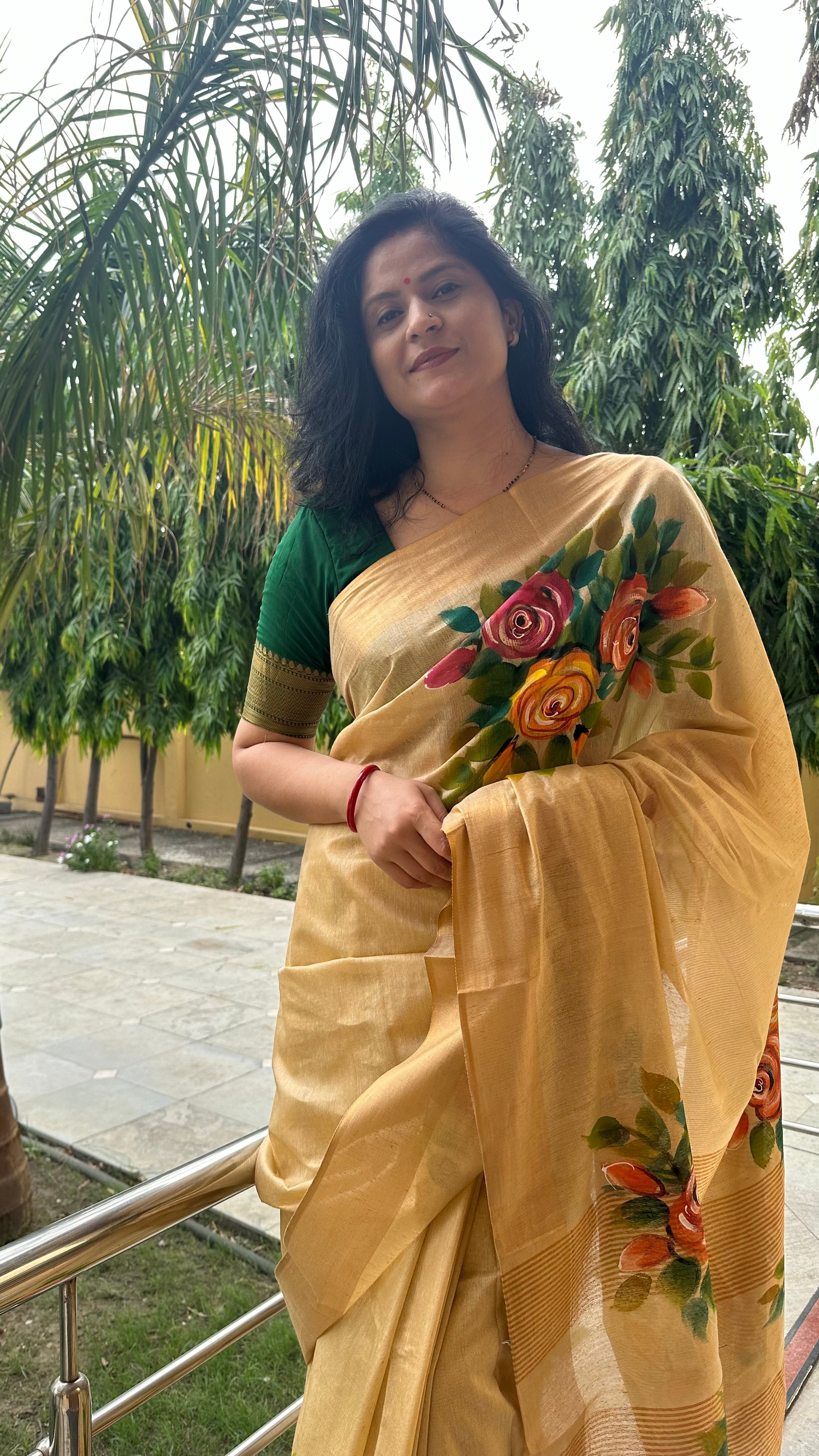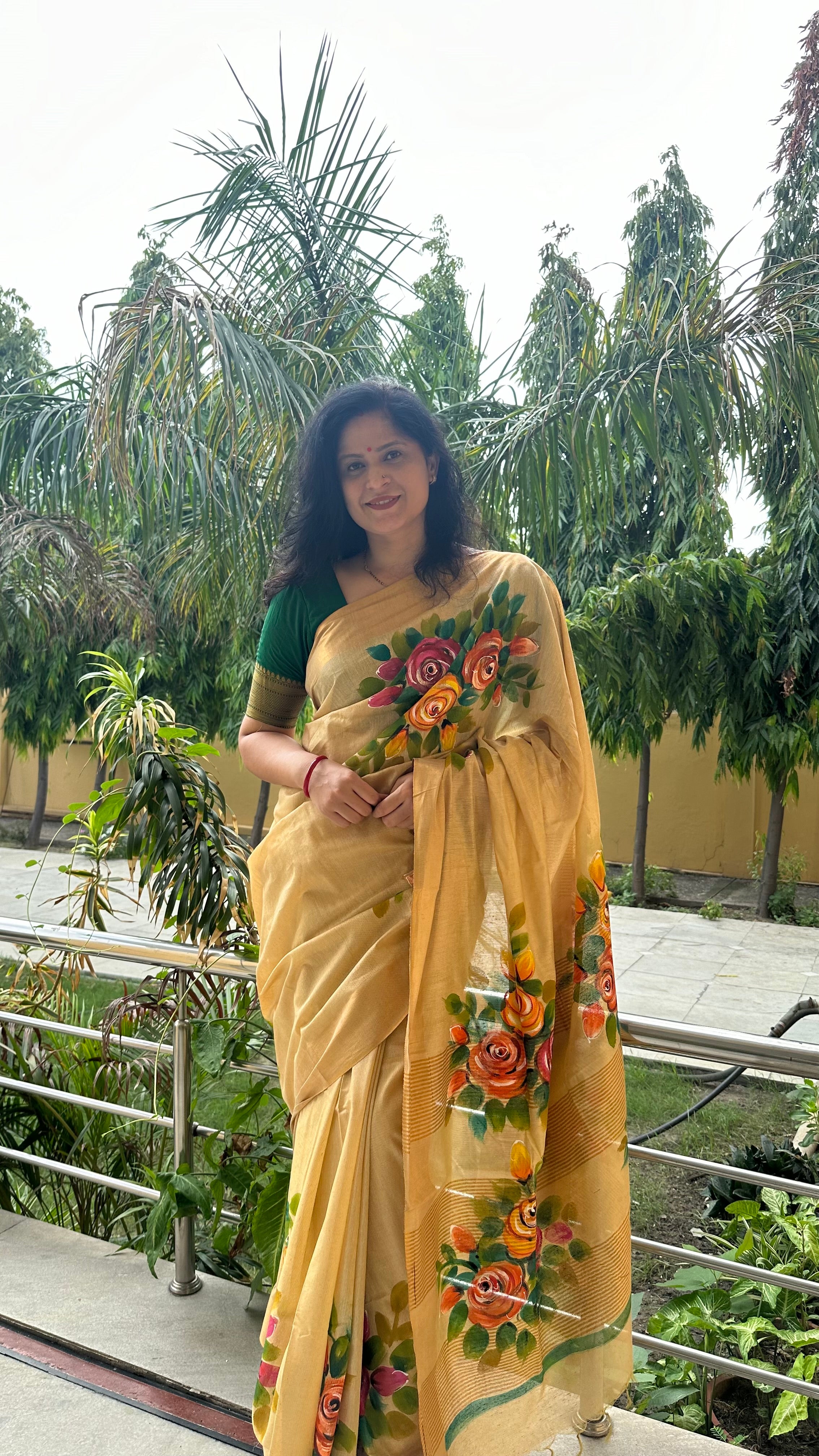 Crush Tissue Embroidered Sleeveless Blouse (Mustard)