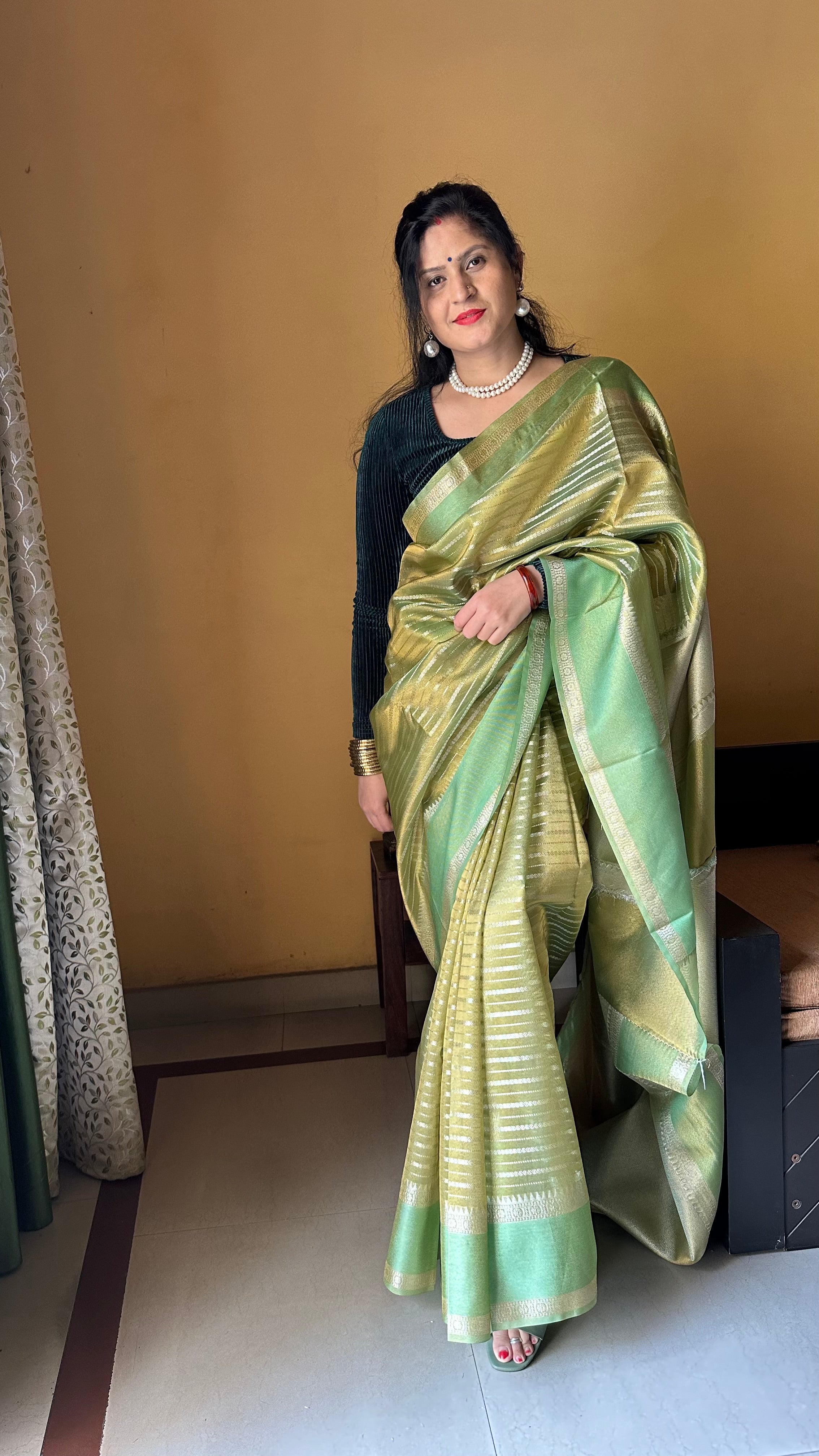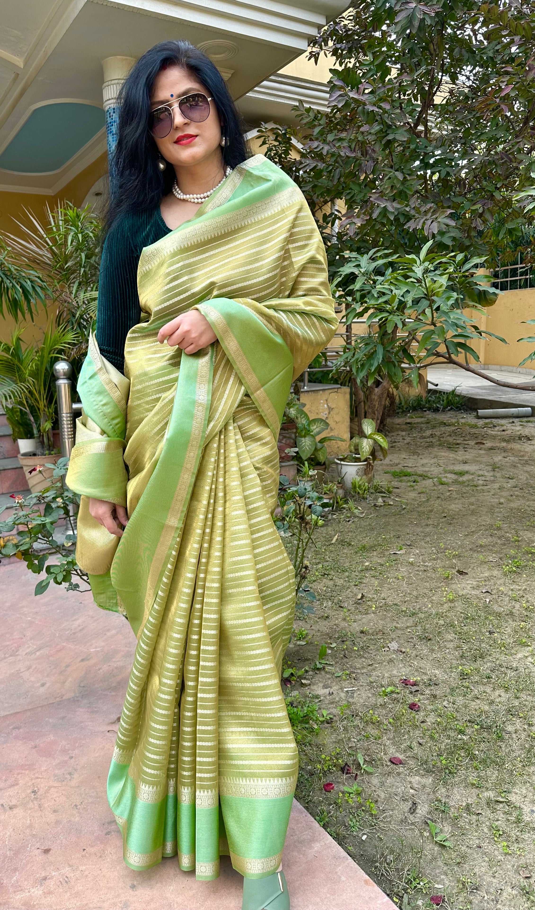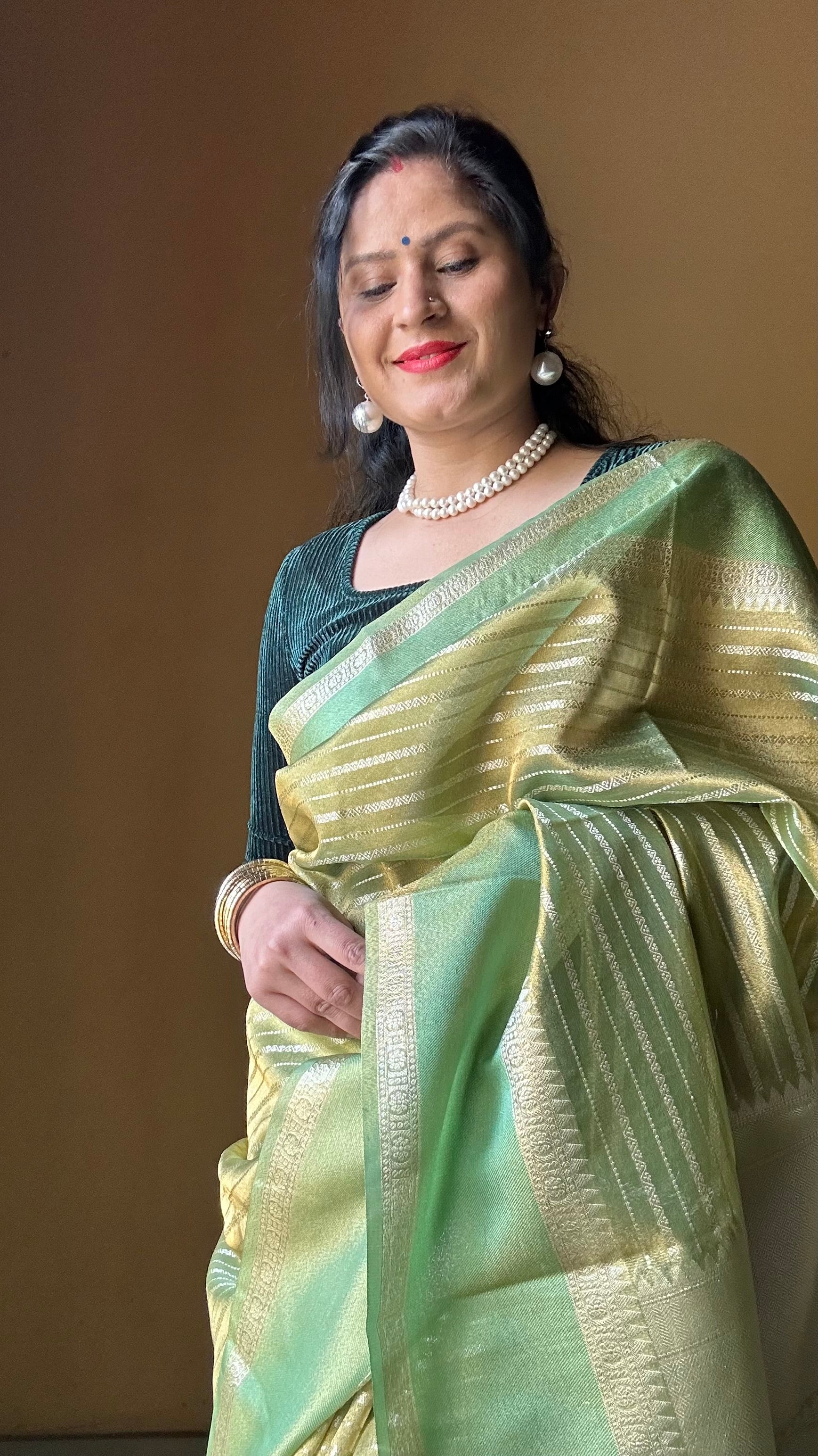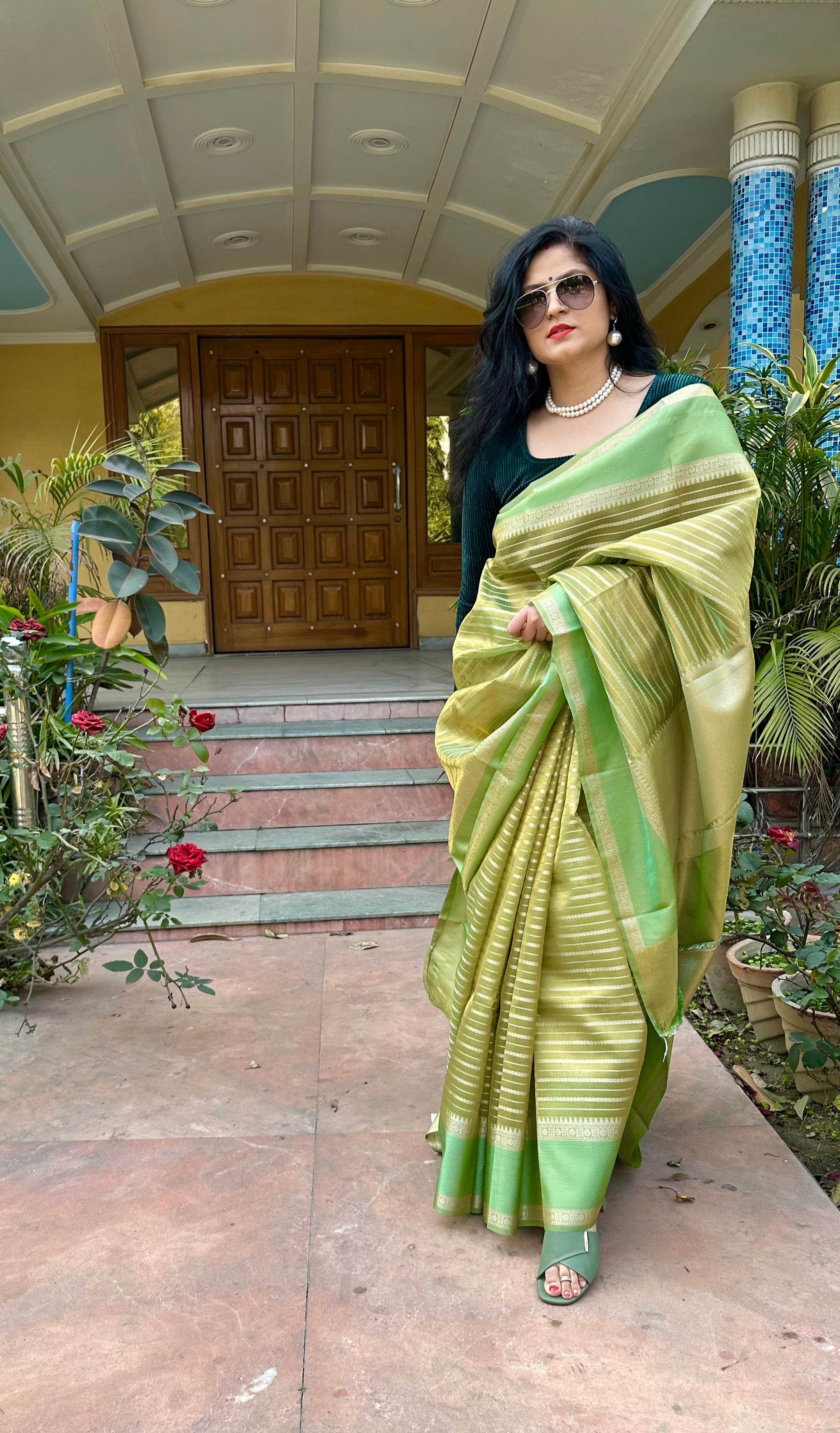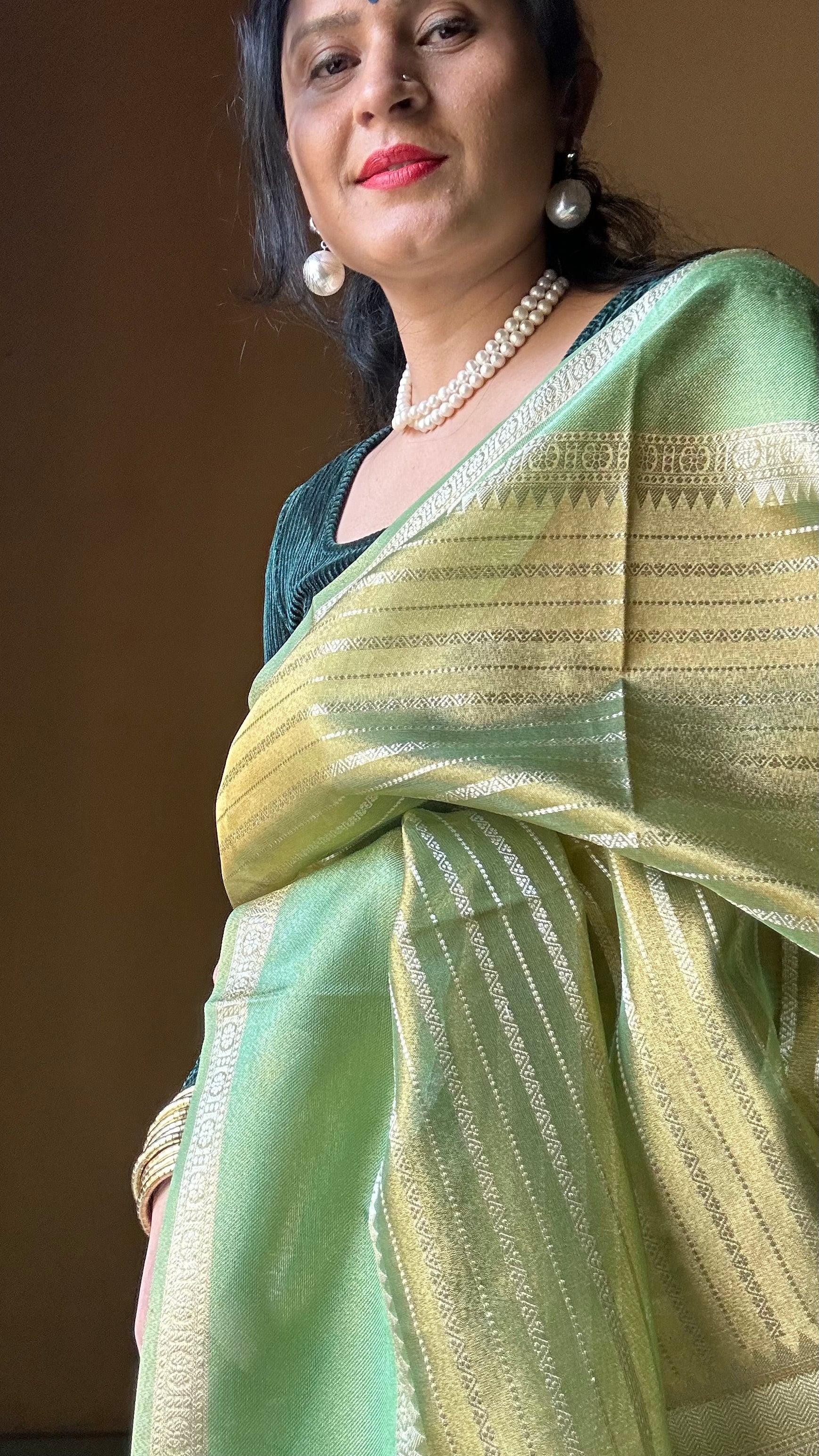 Handloom Cotton Sleeveless Lace Work checks Blouse (Green)