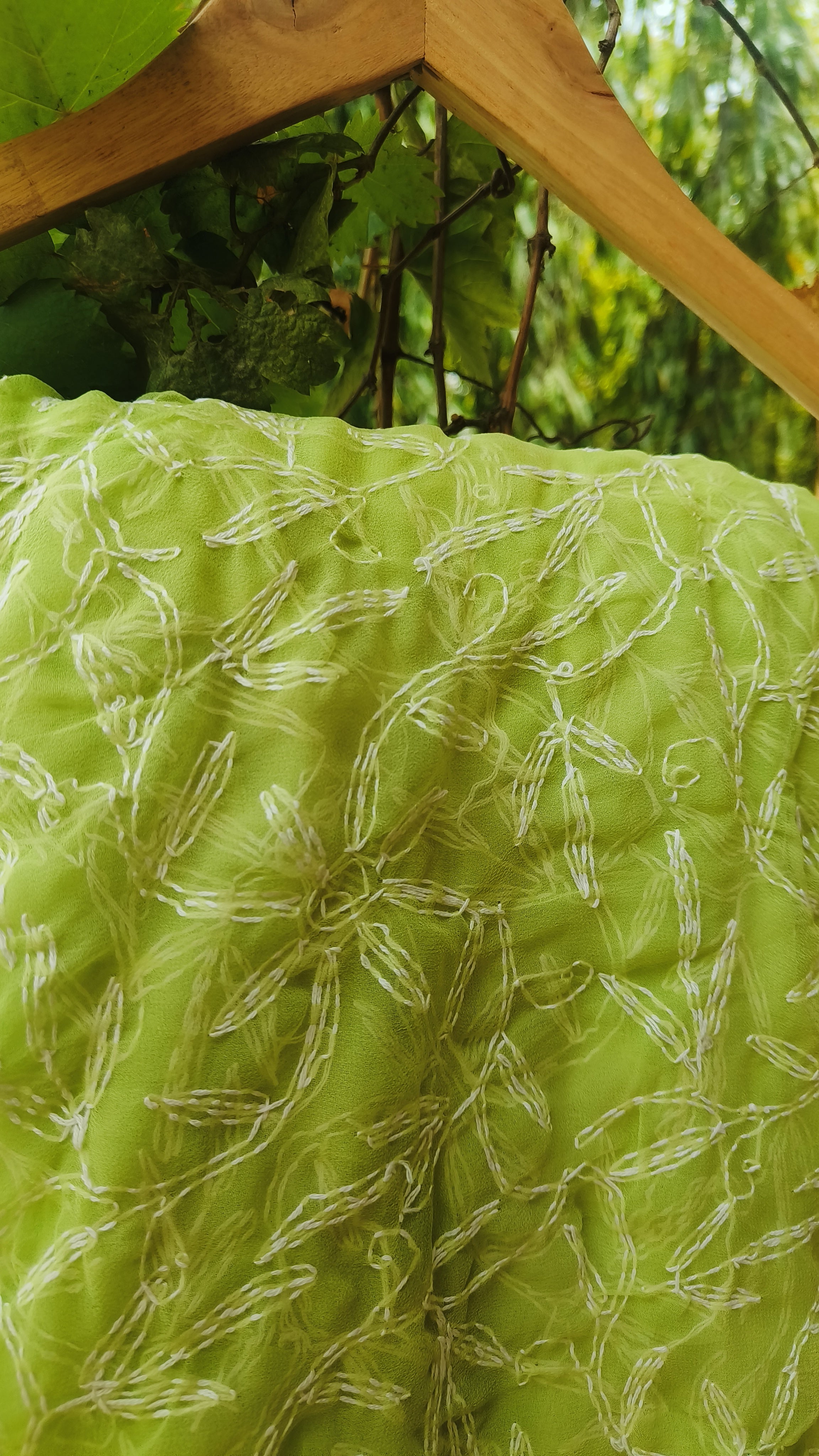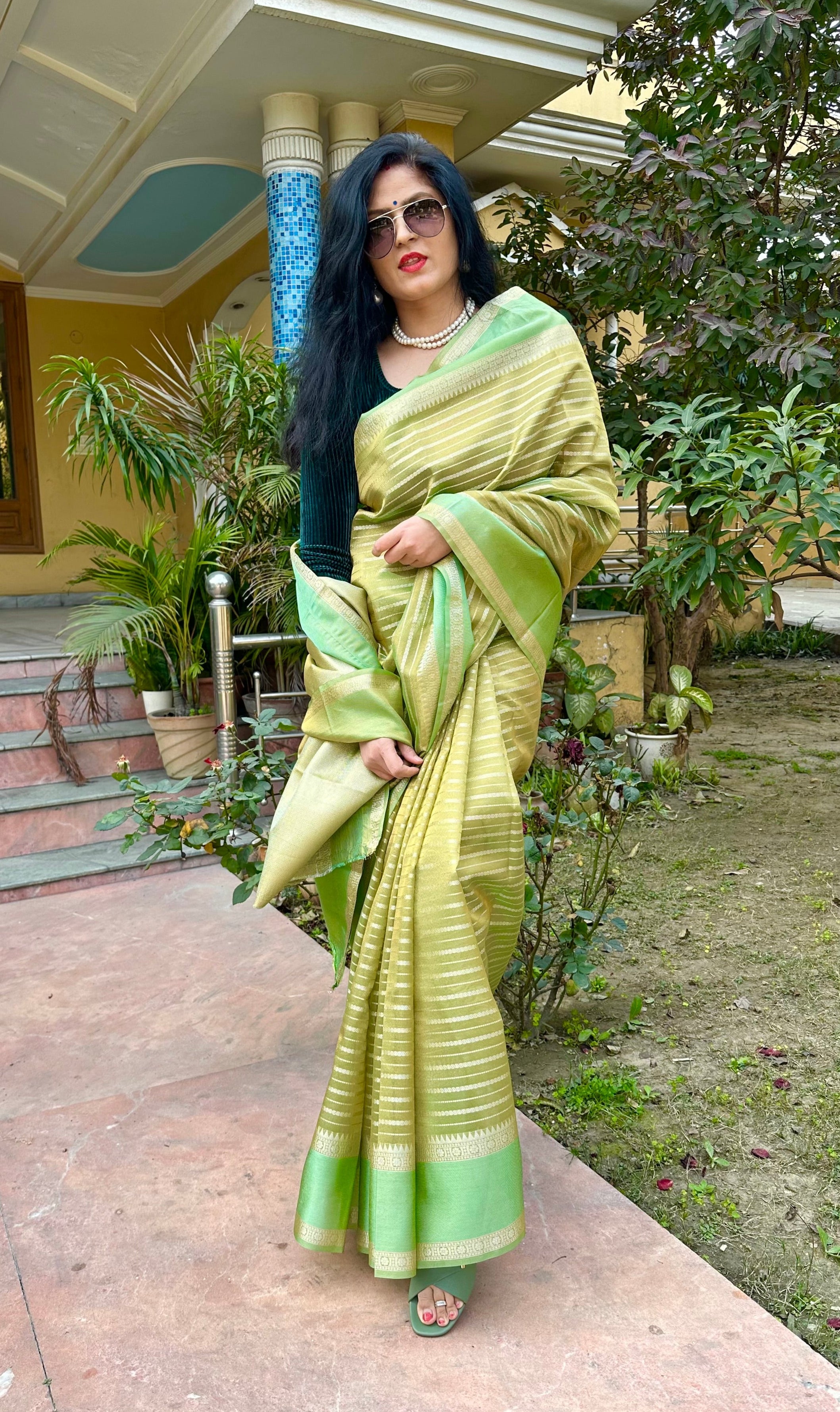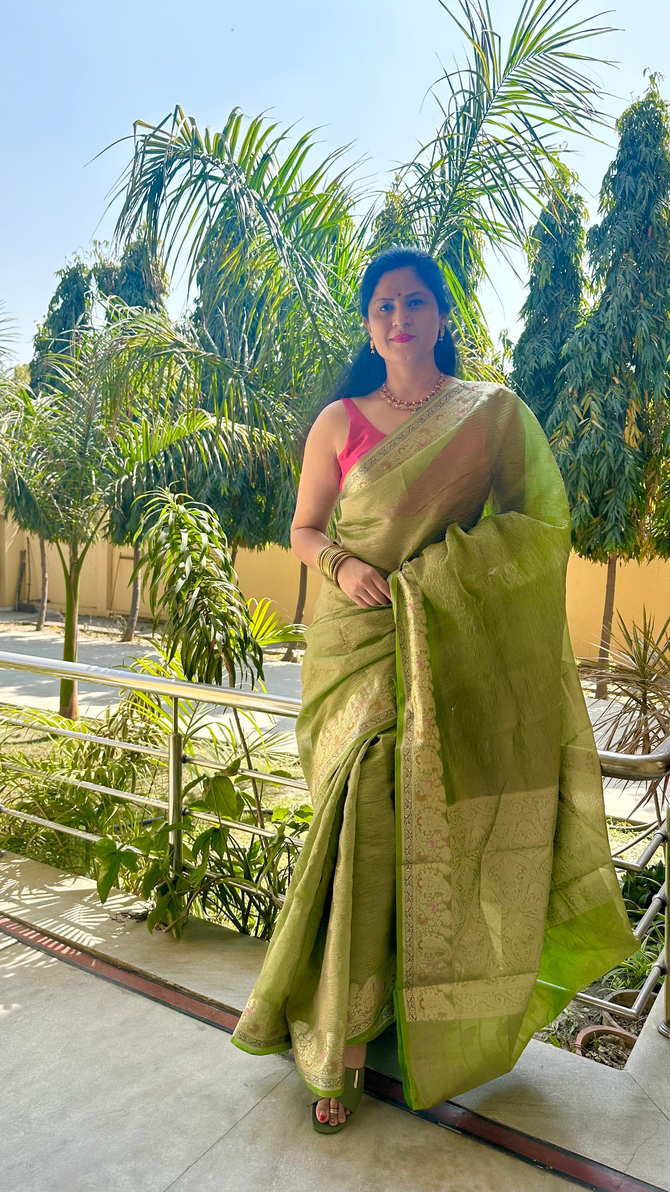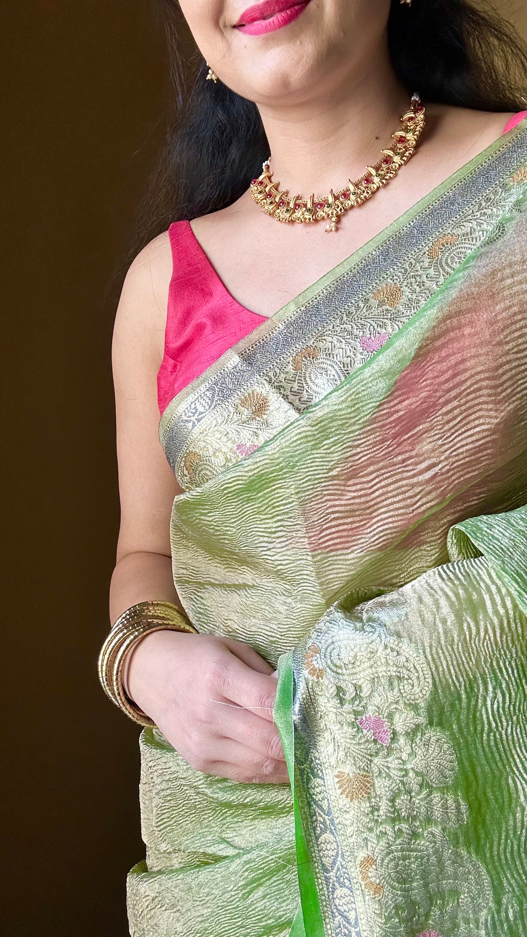 Handloom Cotton Sleeveless Lace Work checks Blouse (Green)