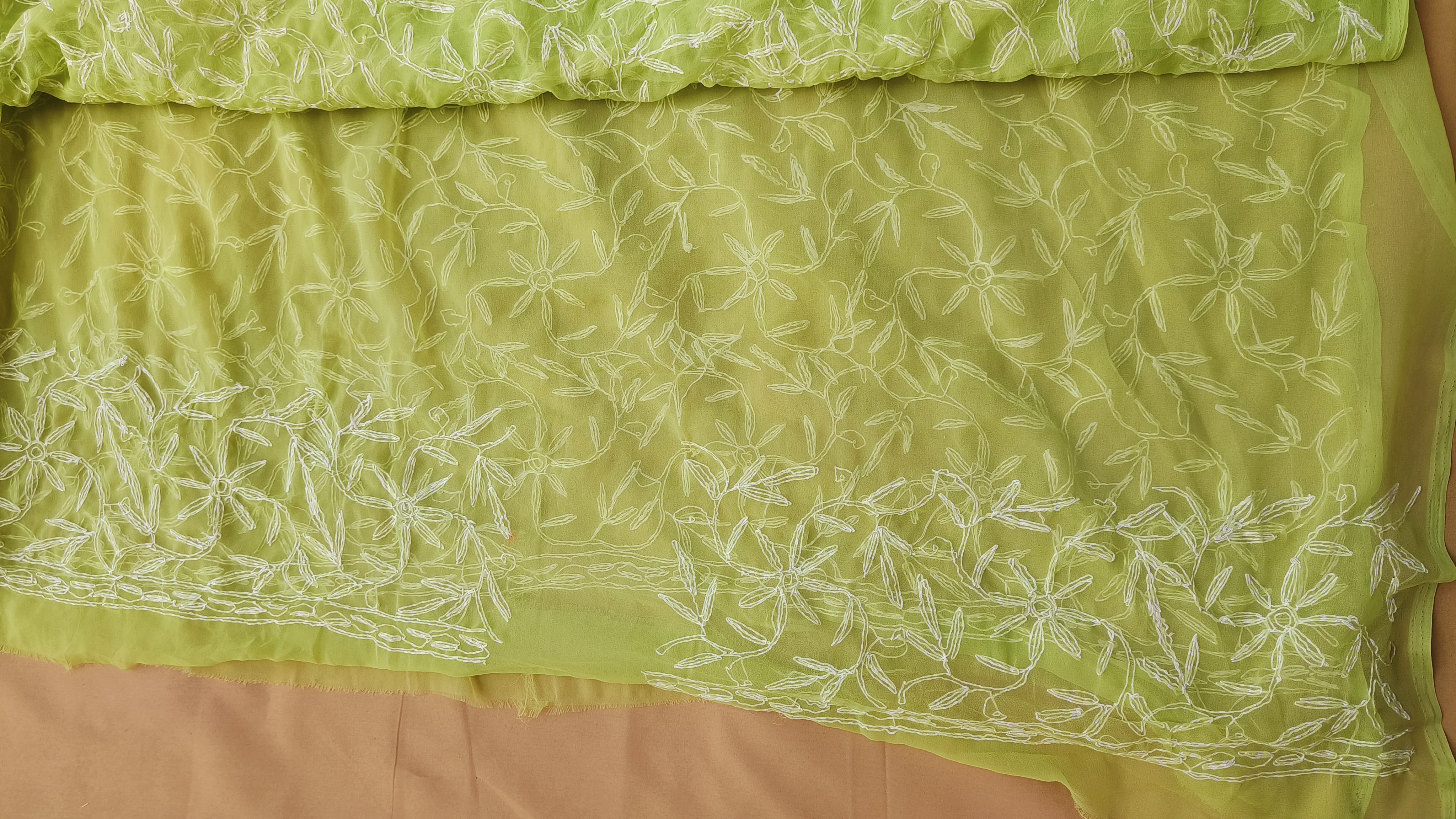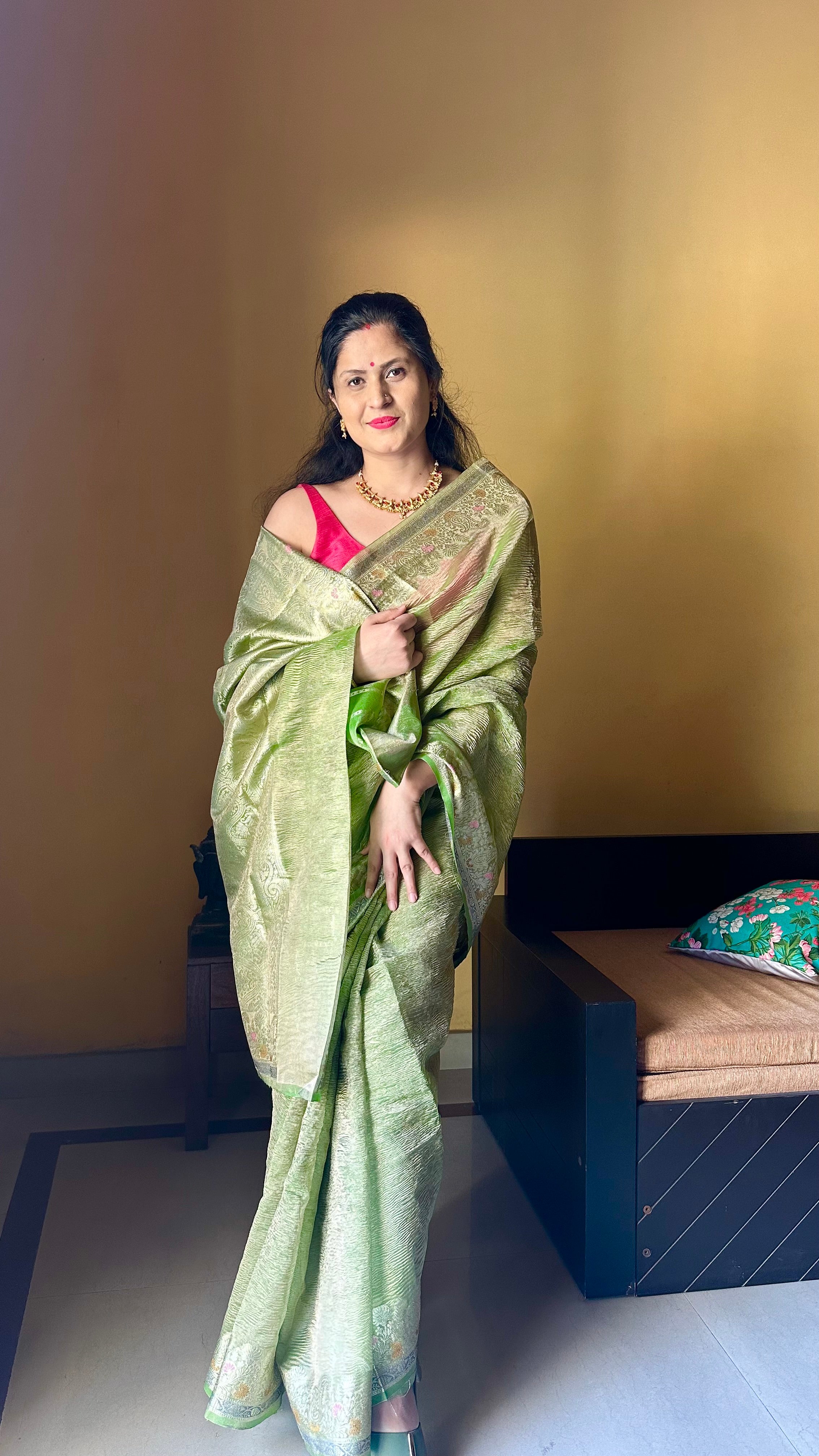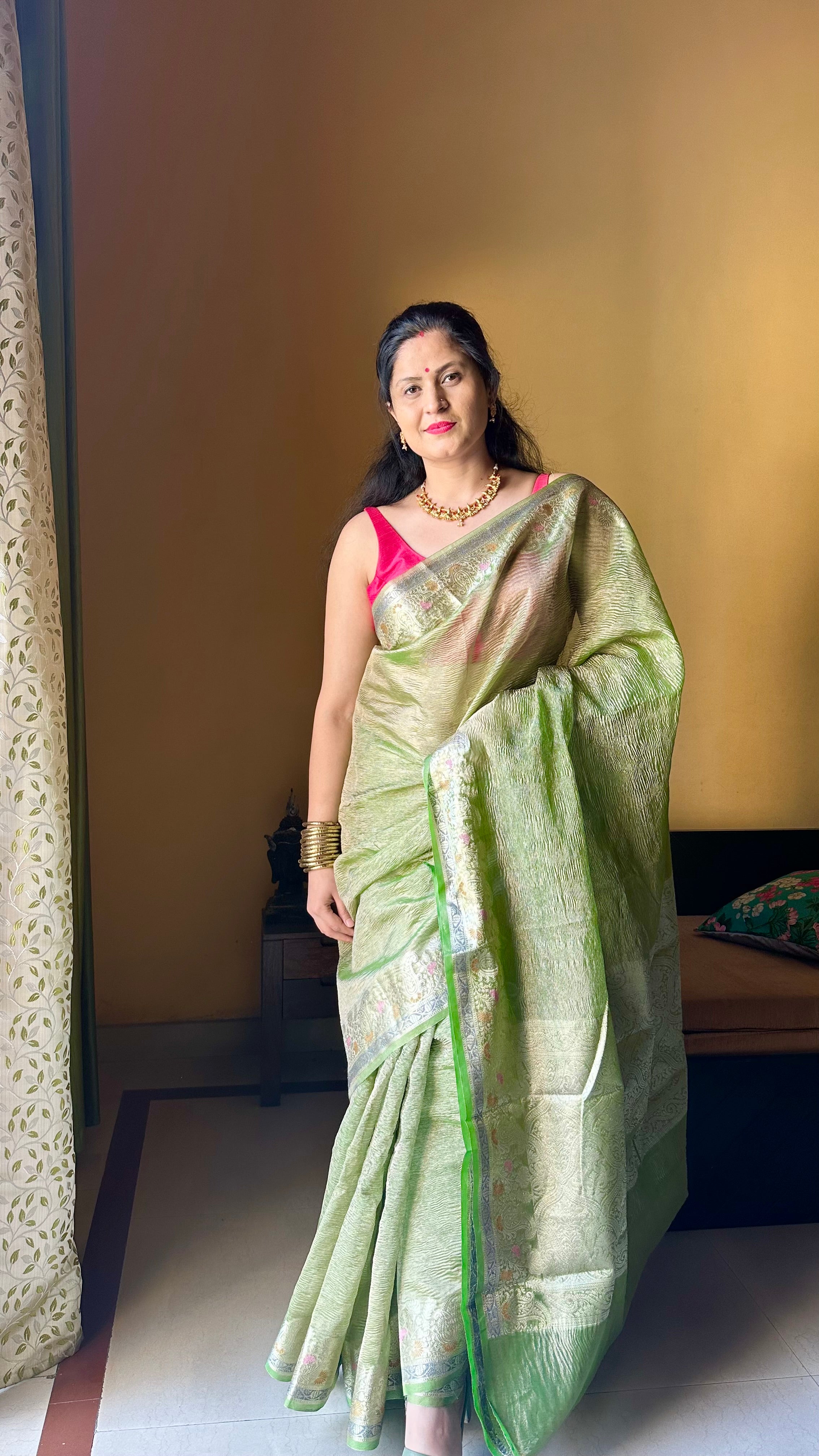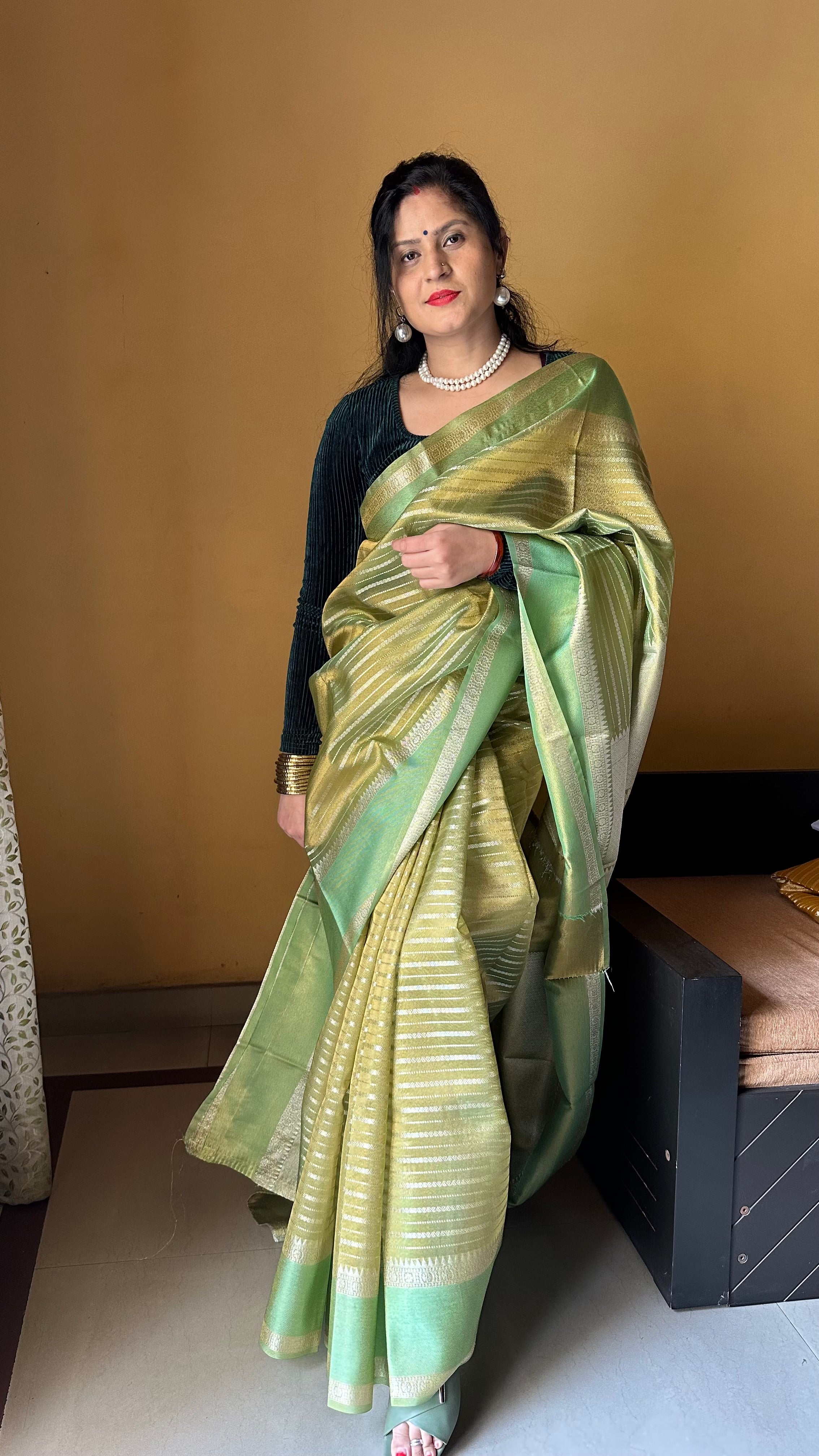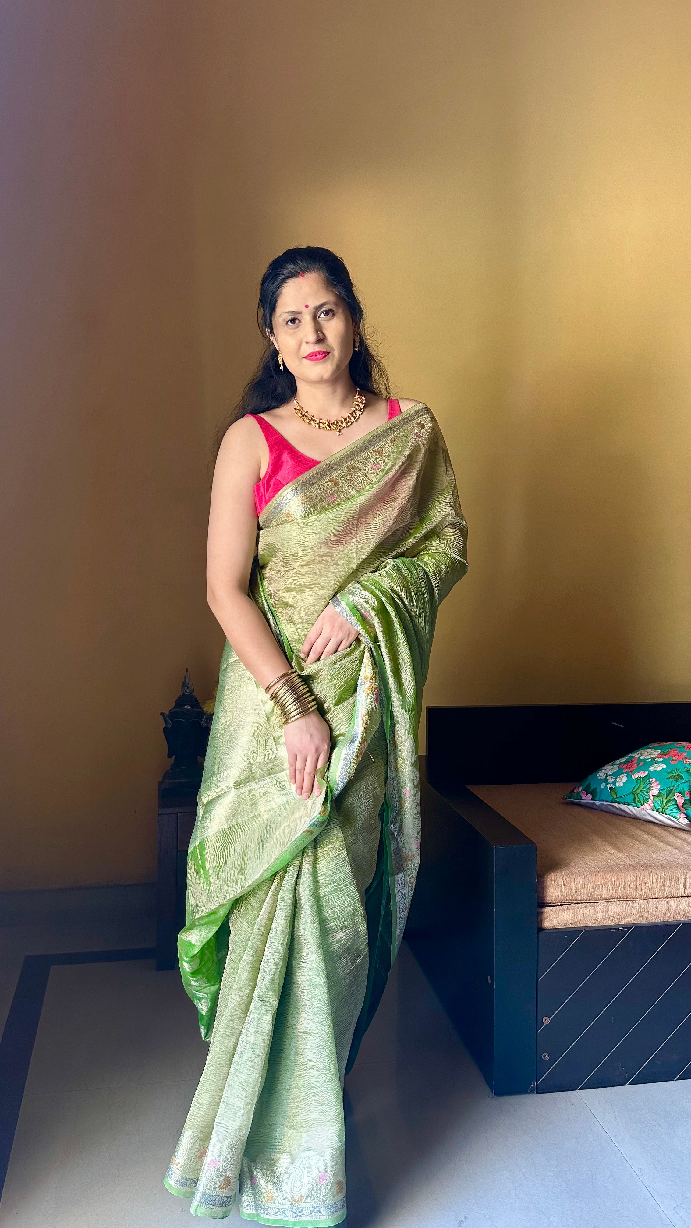 Handloom Cotton Sleeveless Lace Work checks Blouse (Green)