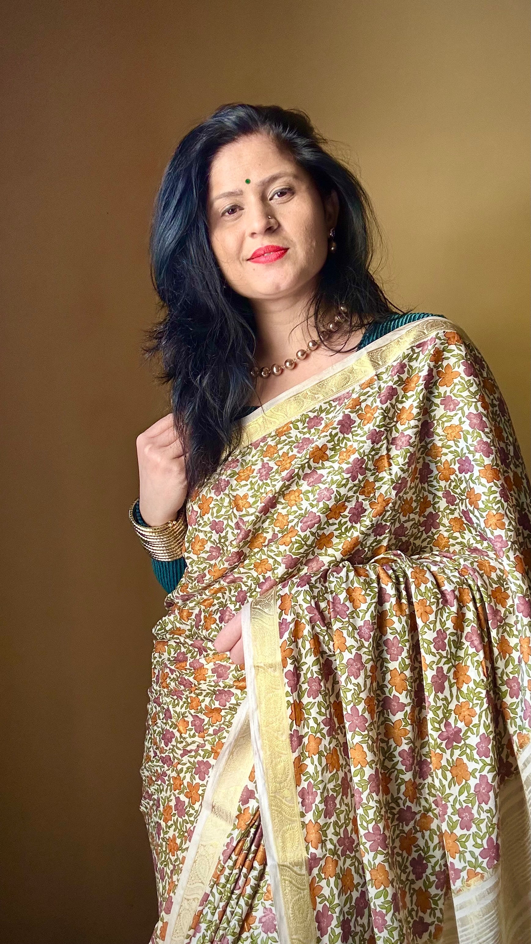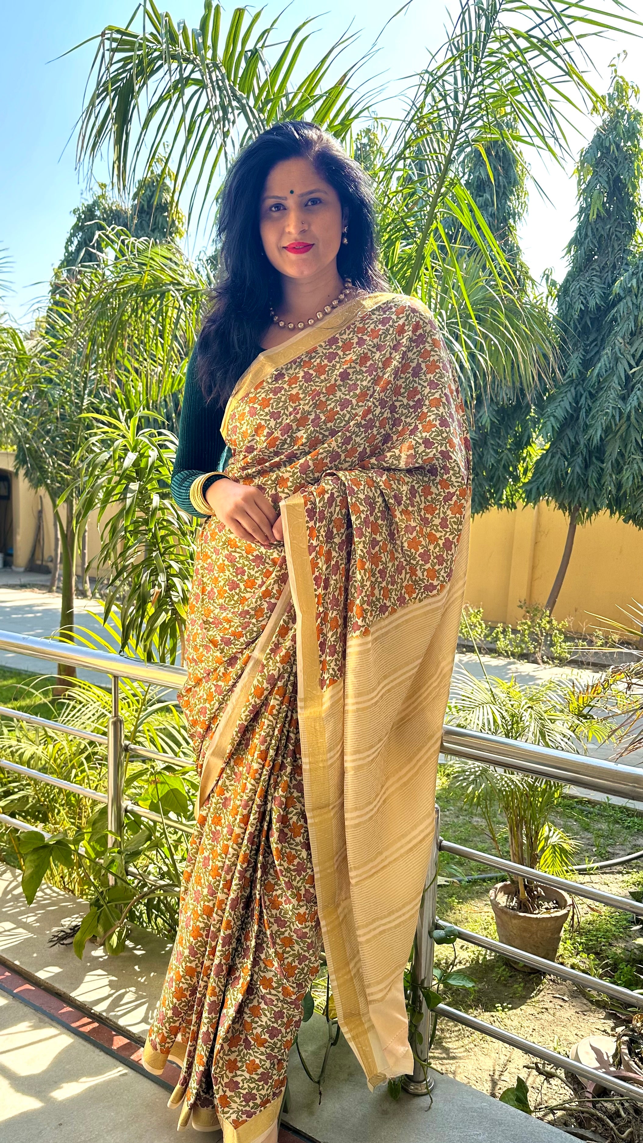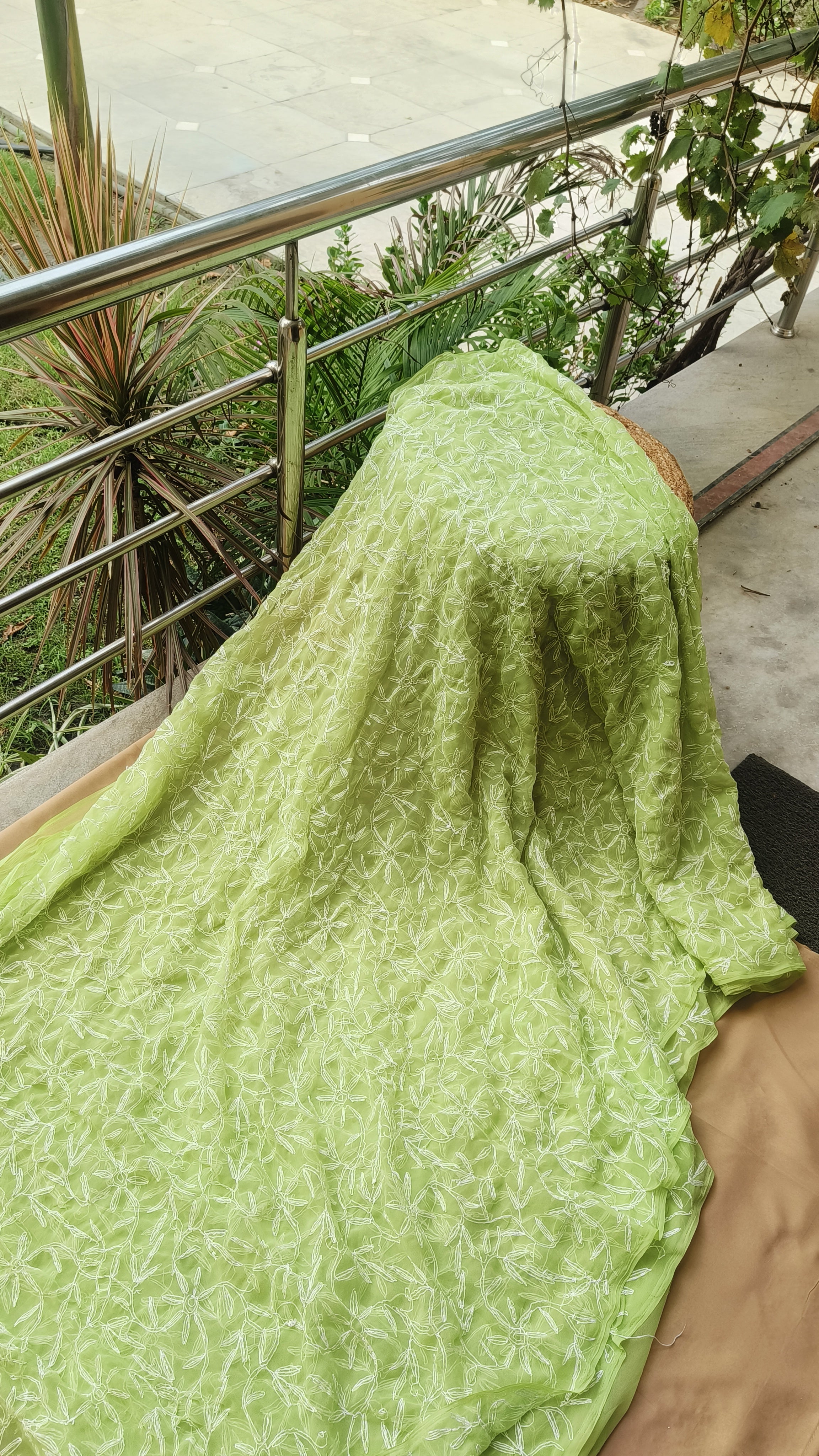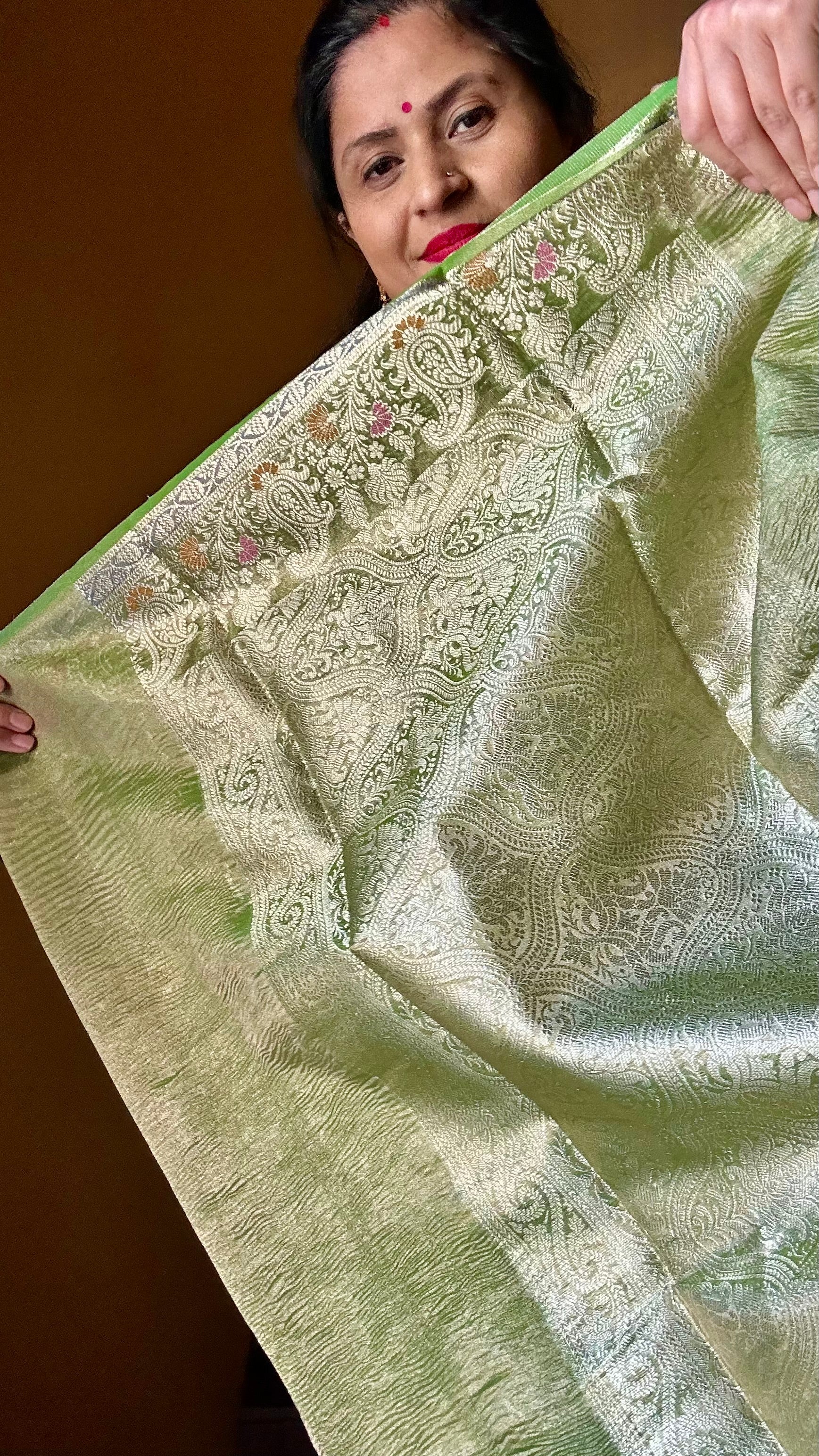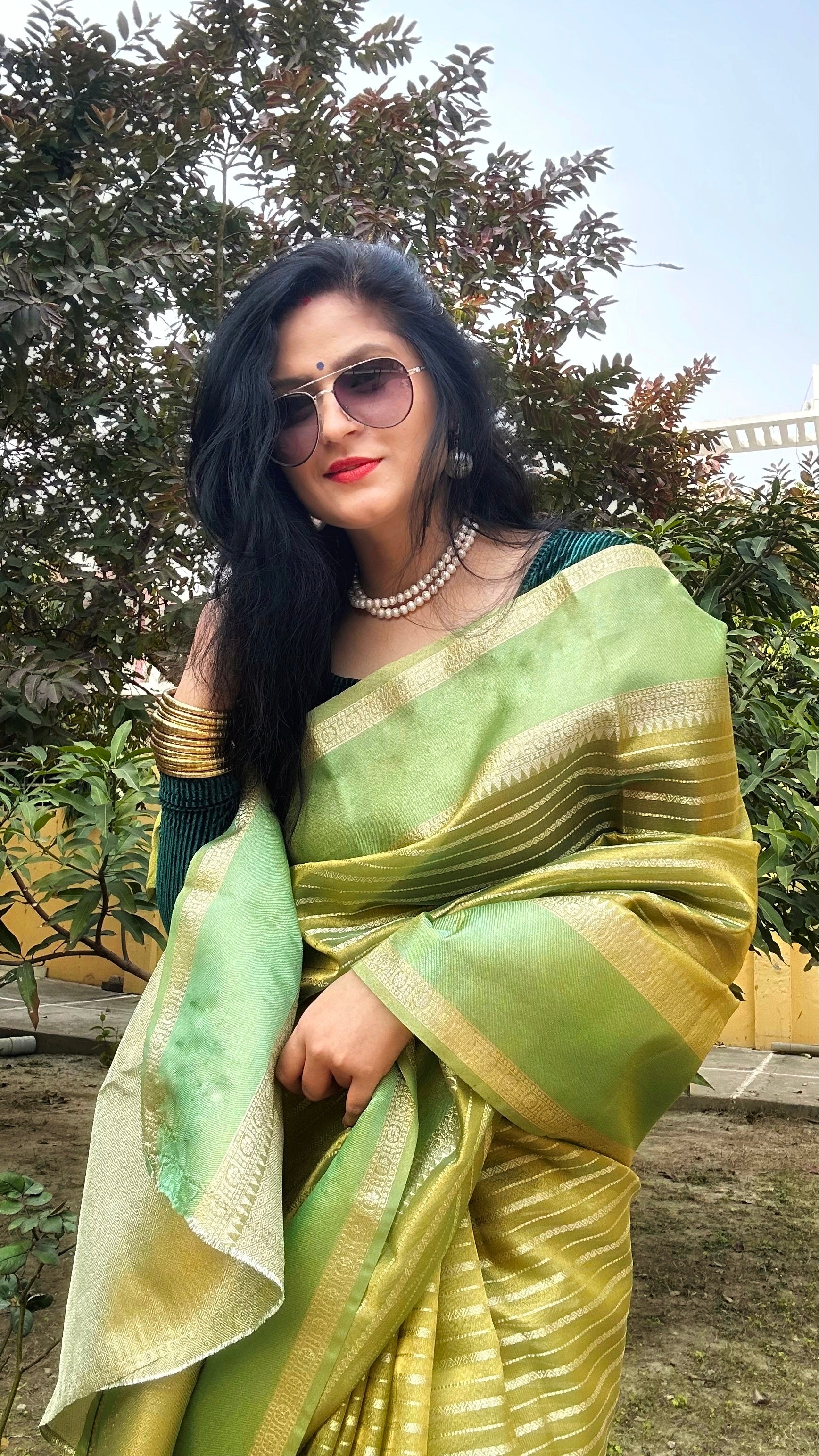 Handloom Cotton Sleeveless Lace Work checks Blouse (Green)