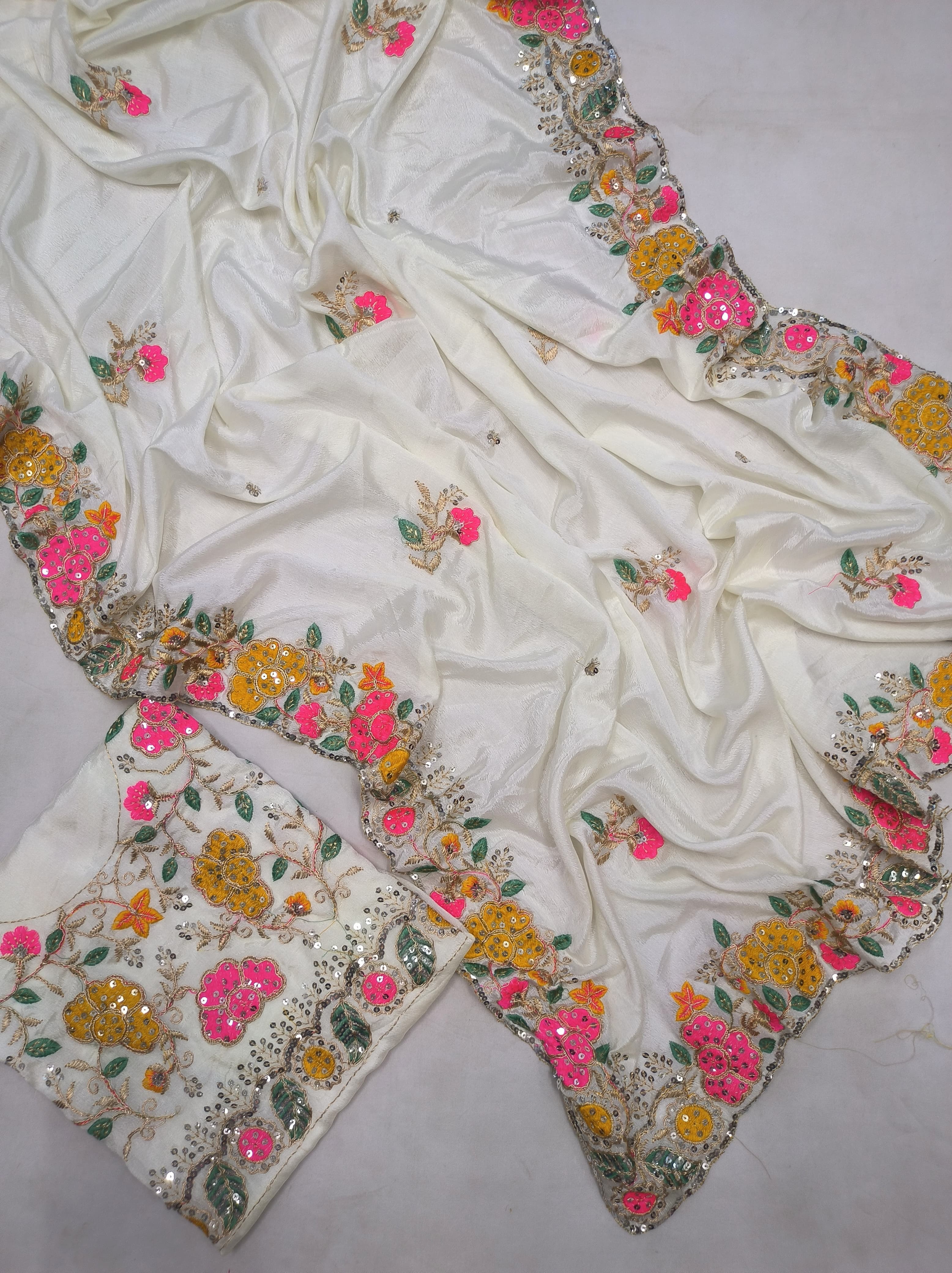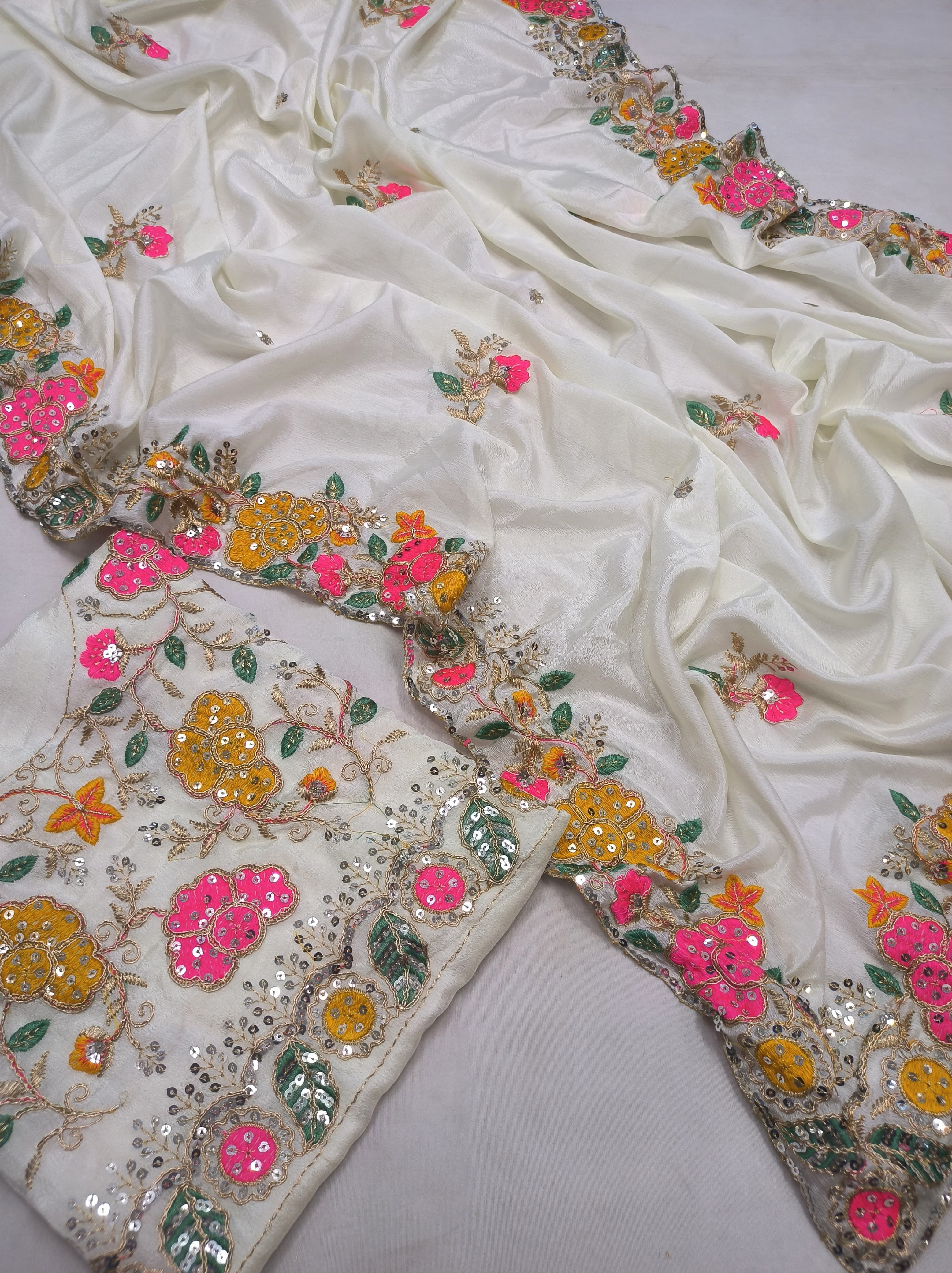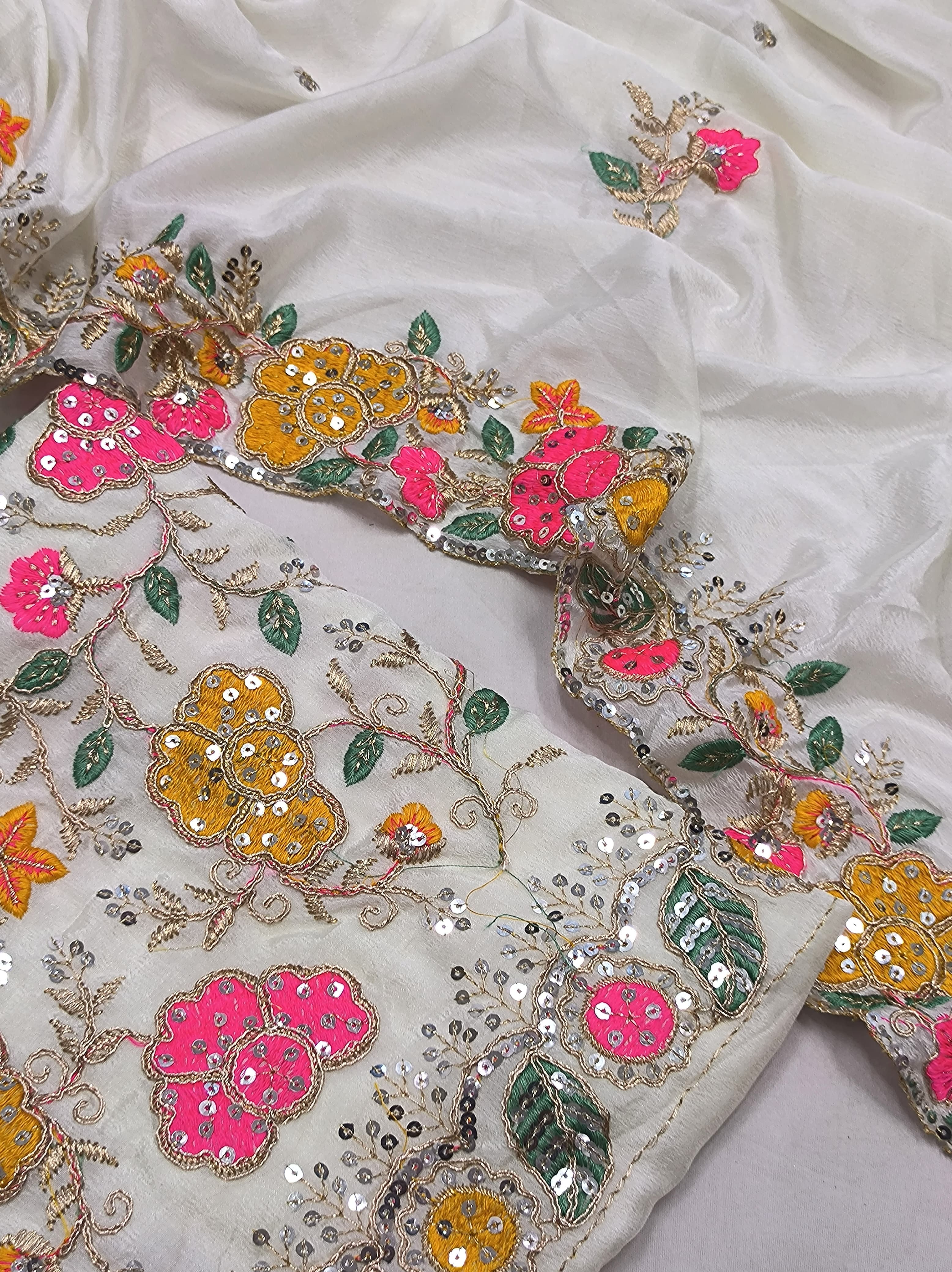 Crush Tissue Embroidered Sleeveless Blouse (Cream)