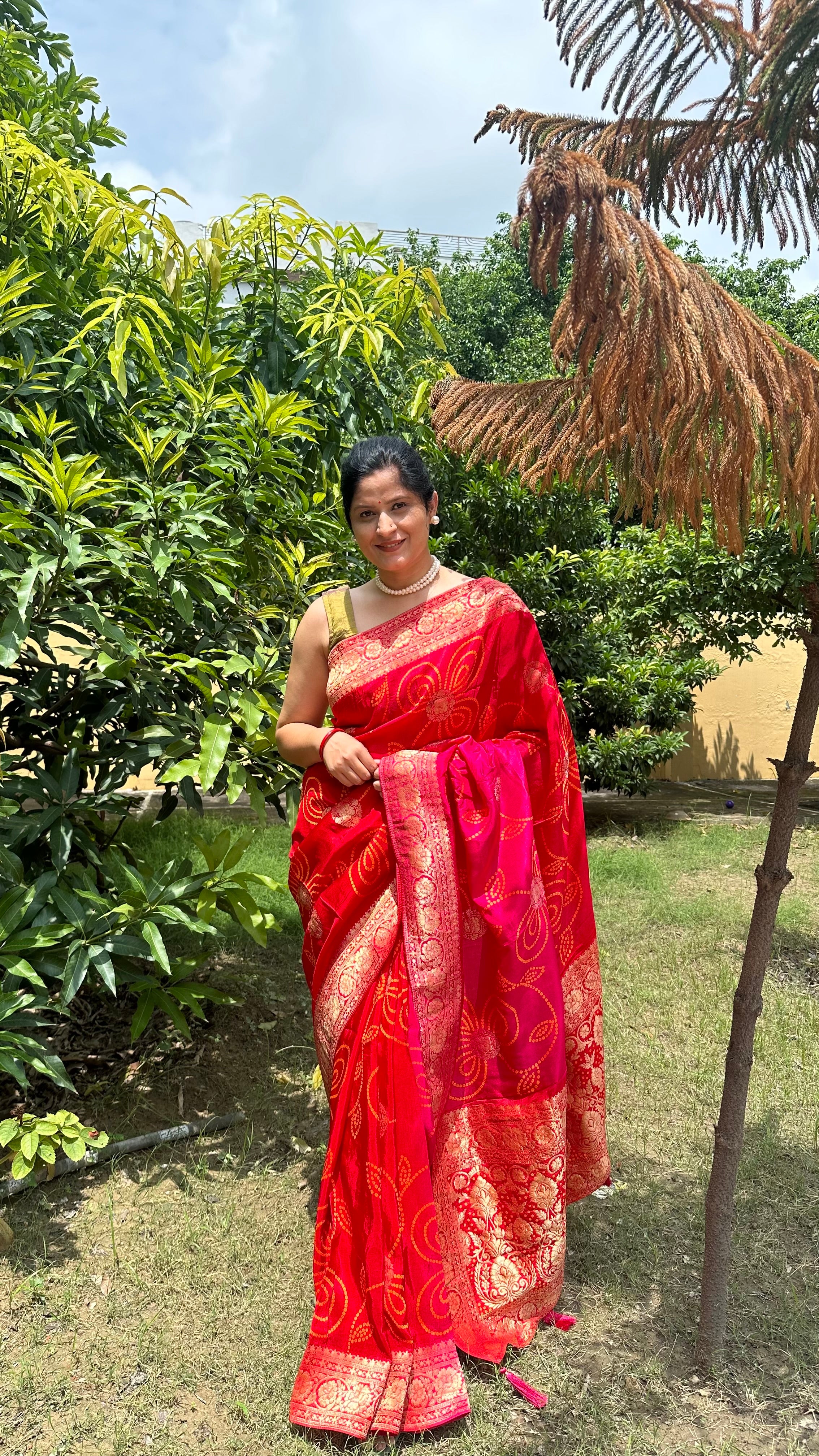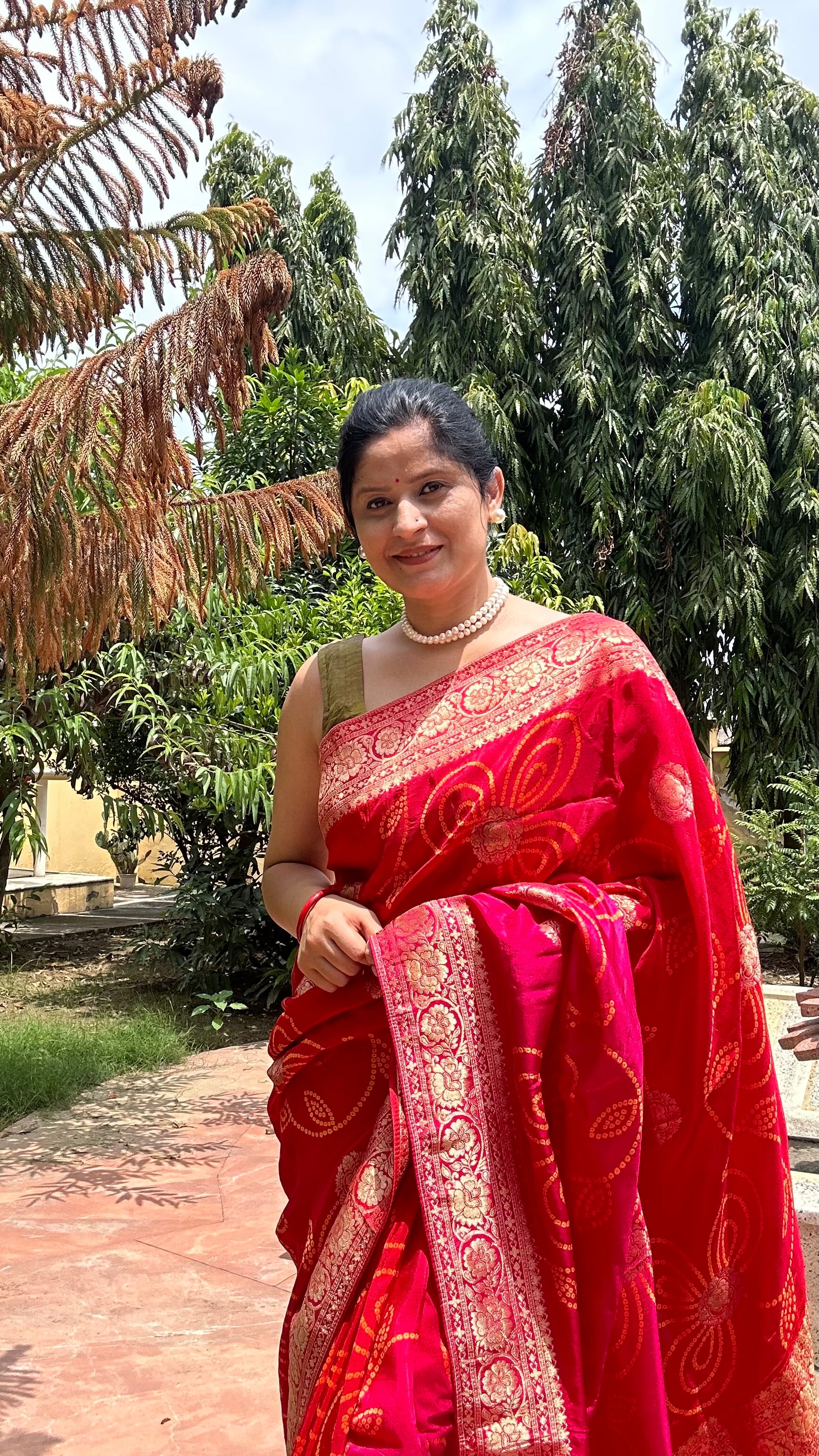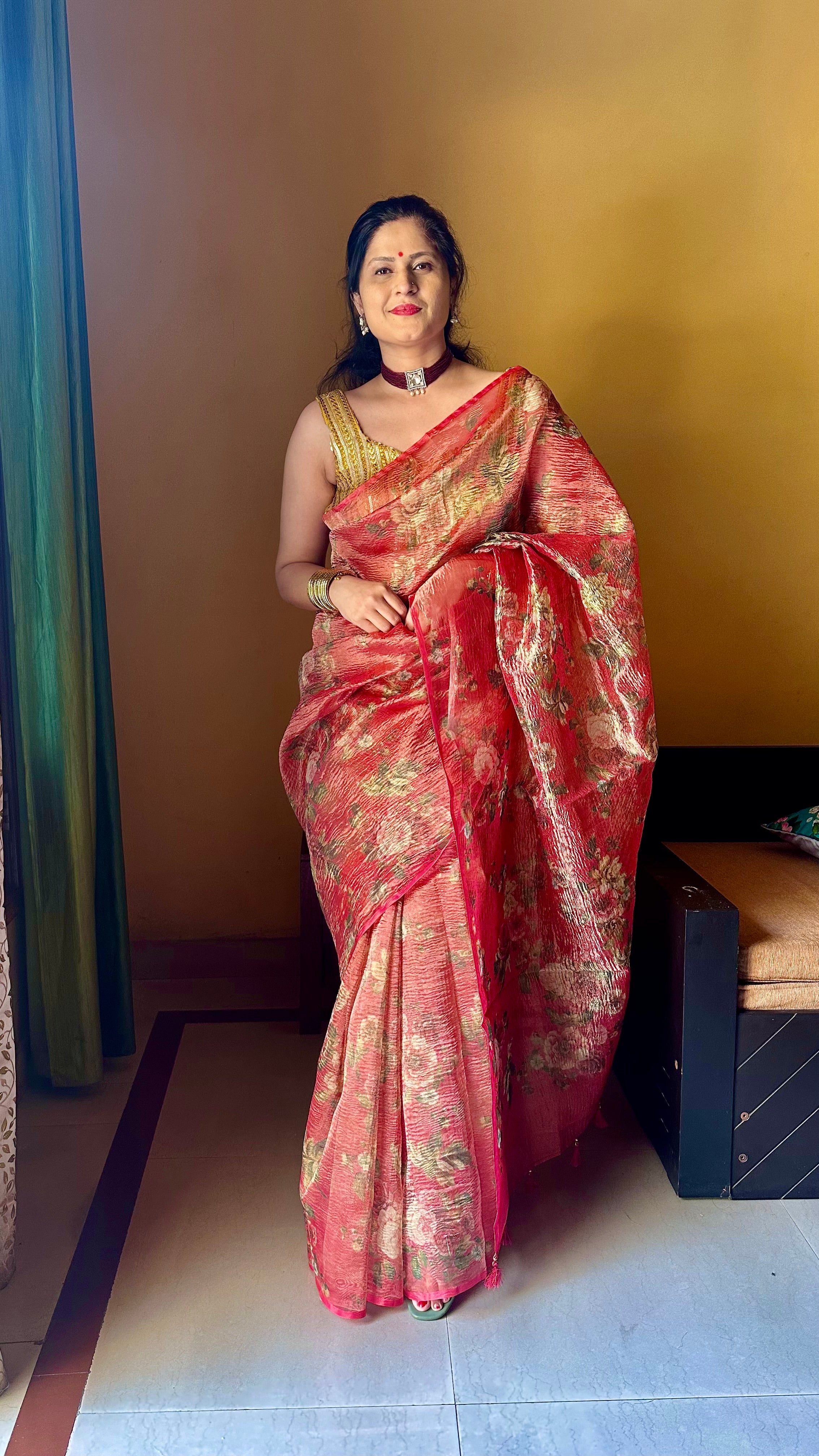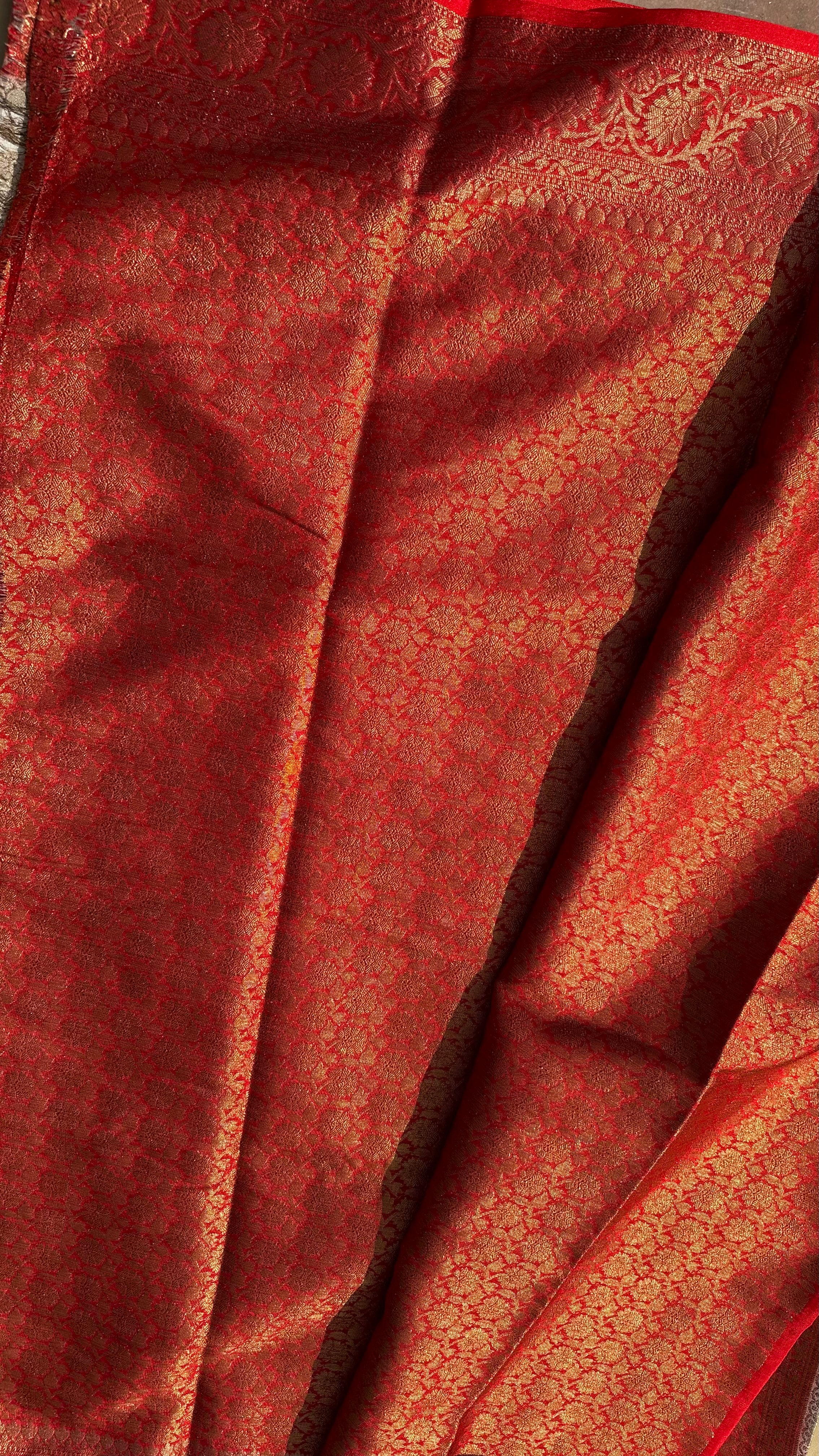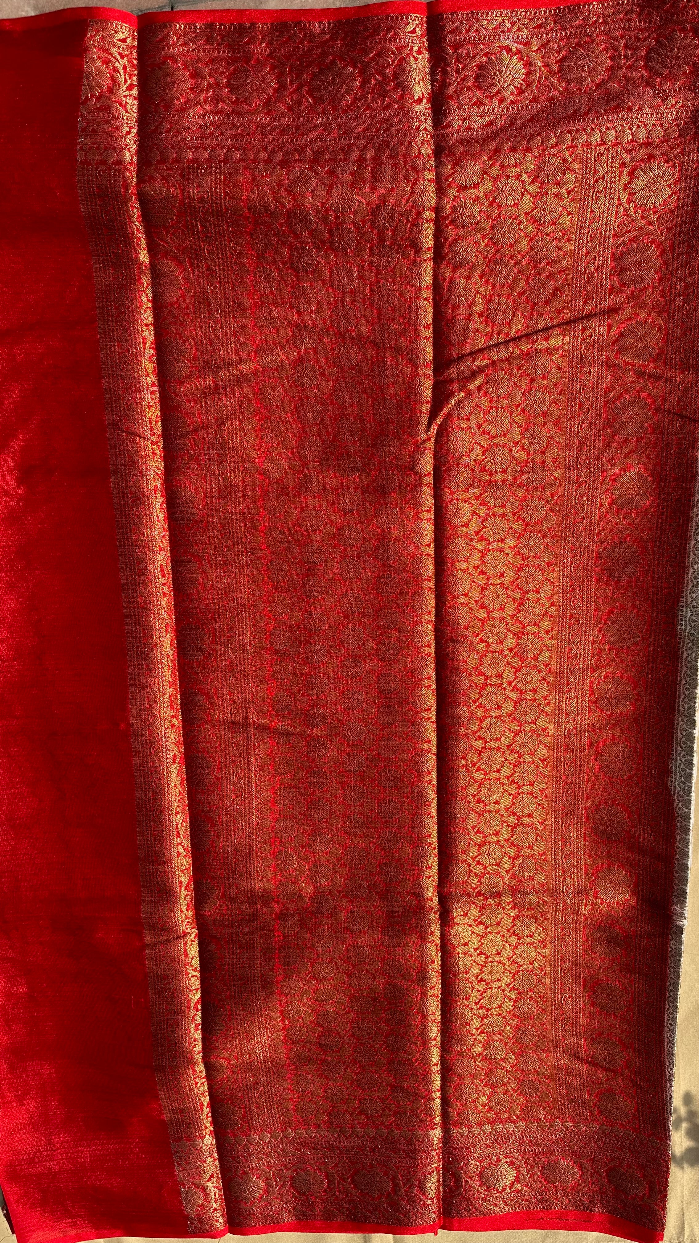 Handloom Gamcha Cotton Sleeveless Lace Work checks Blouse (Red)
