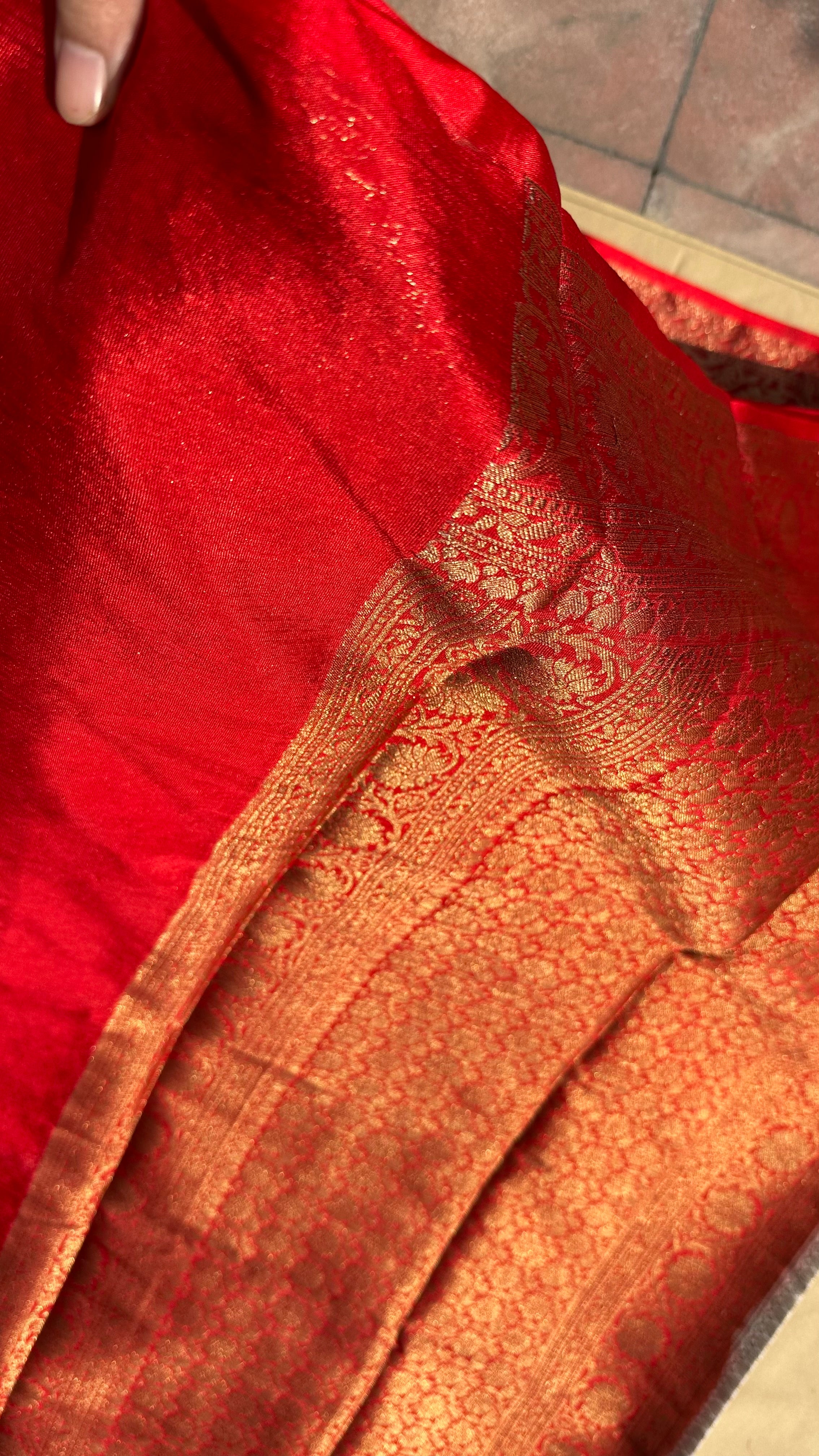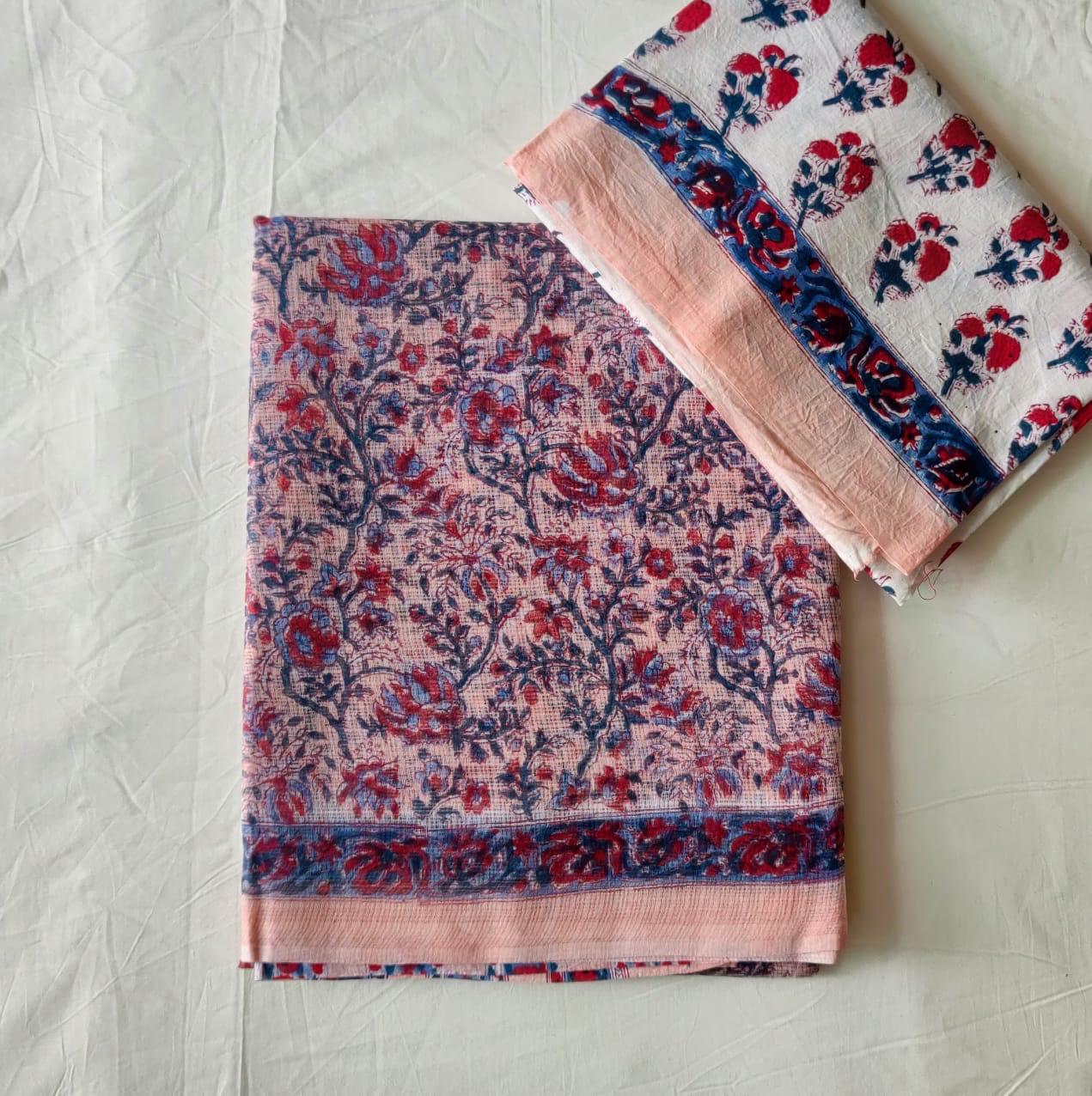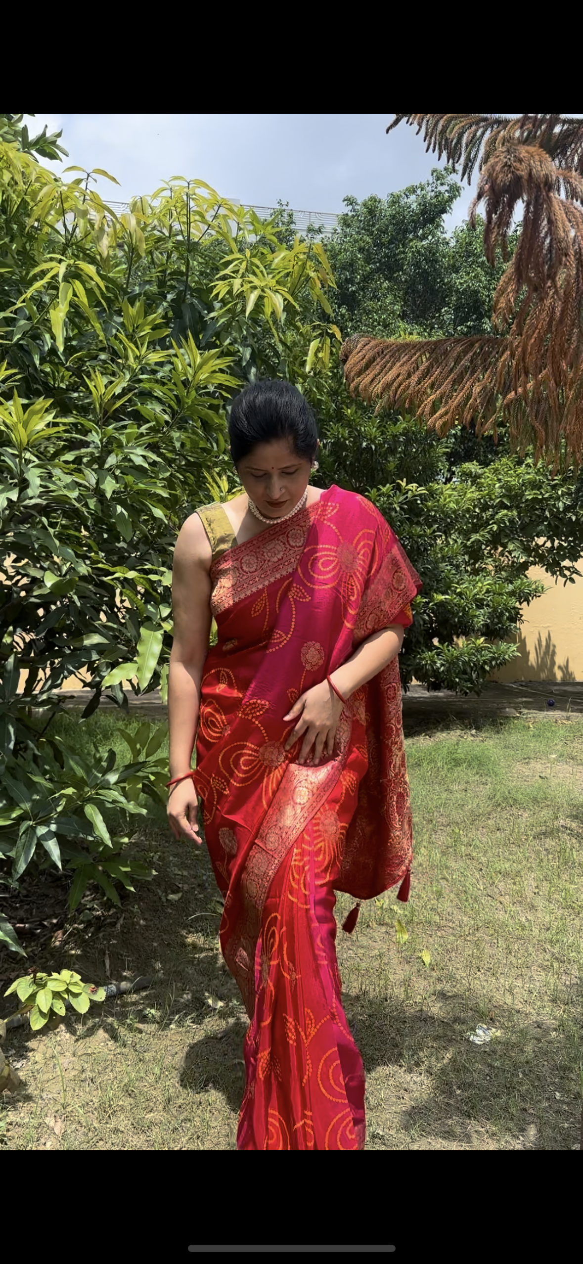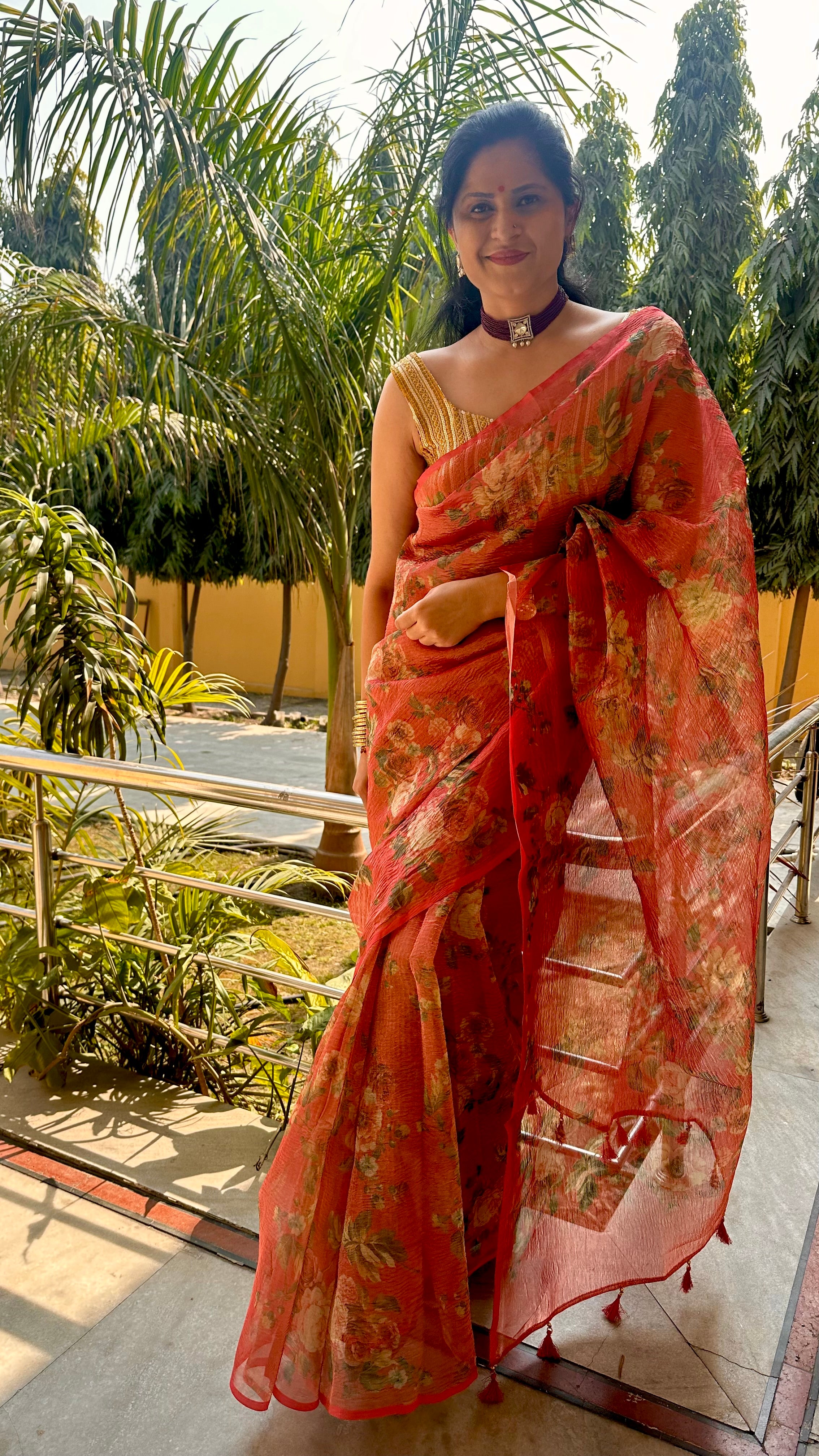 Handloom Gamcha Cotton Sleeveless Lace Work checks Blouse (Red)