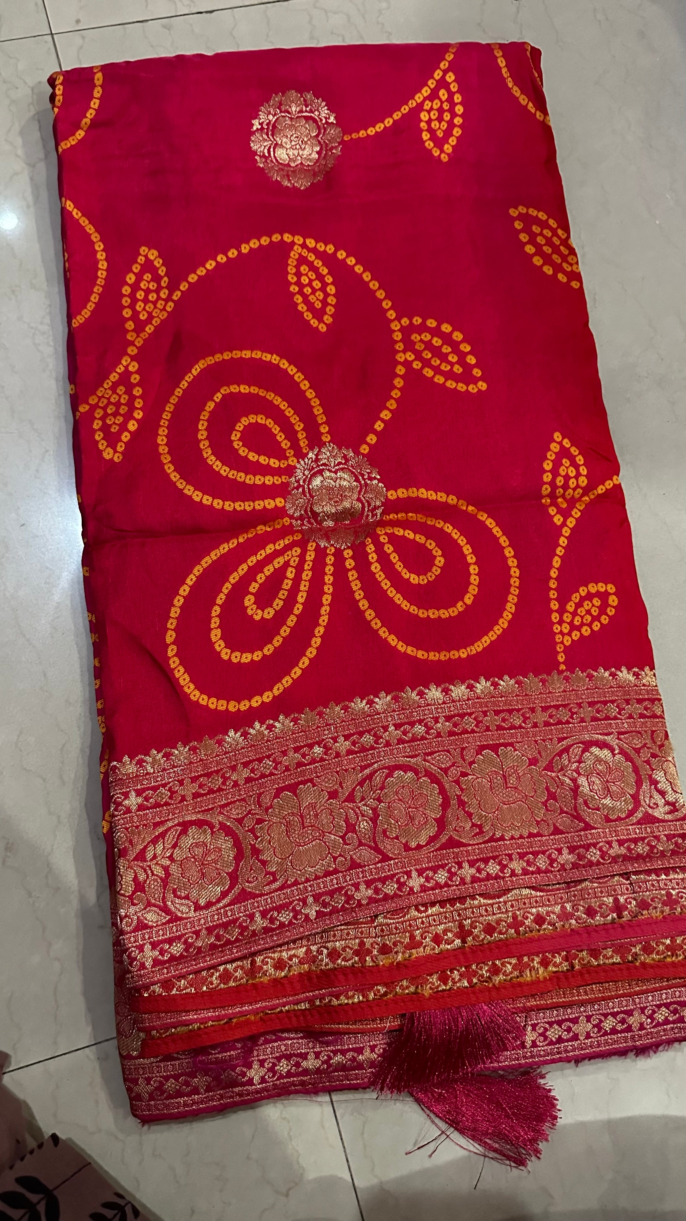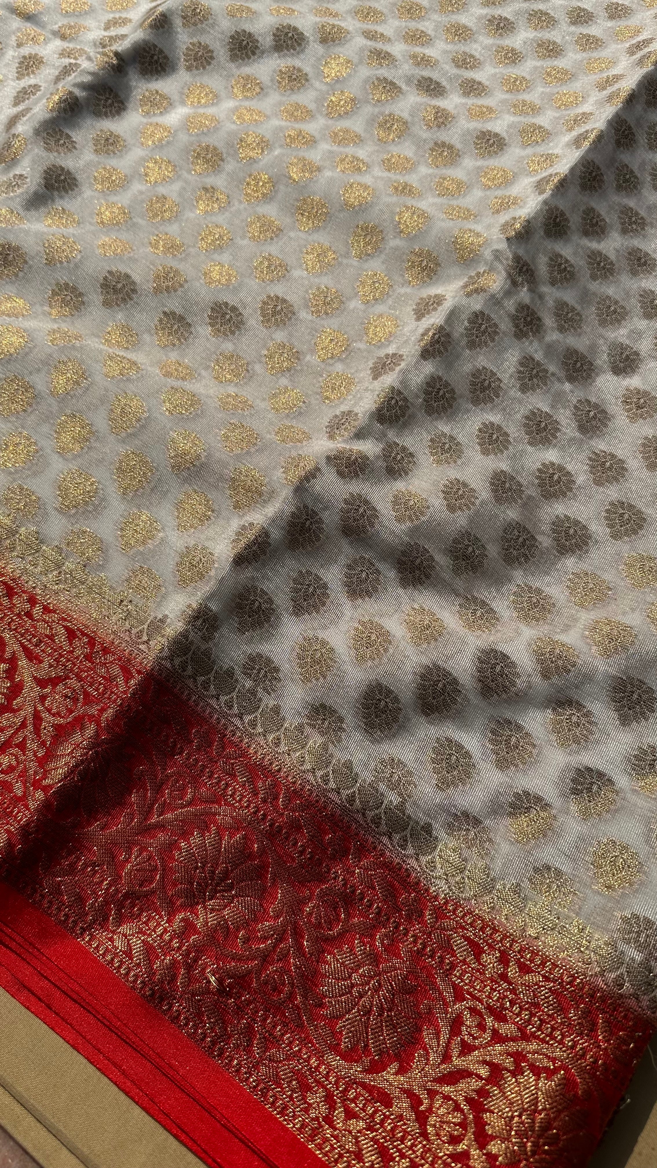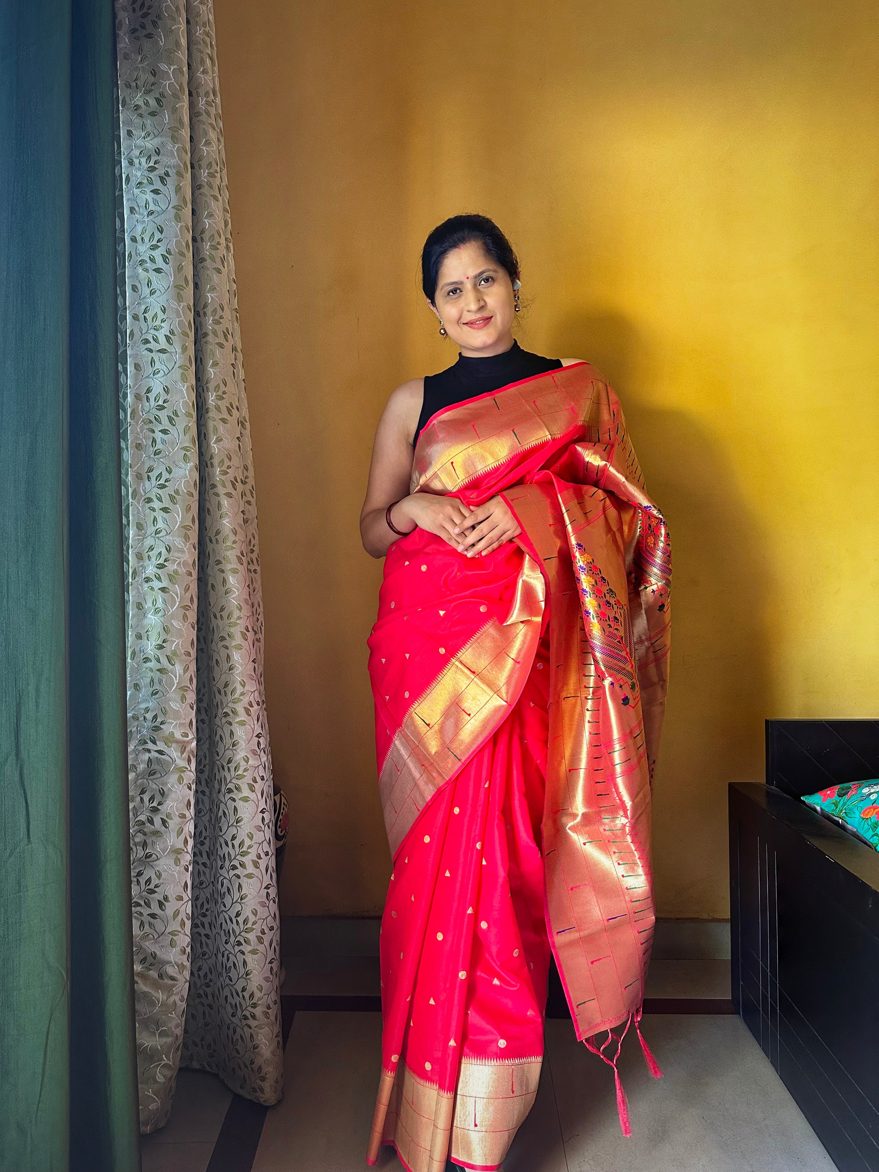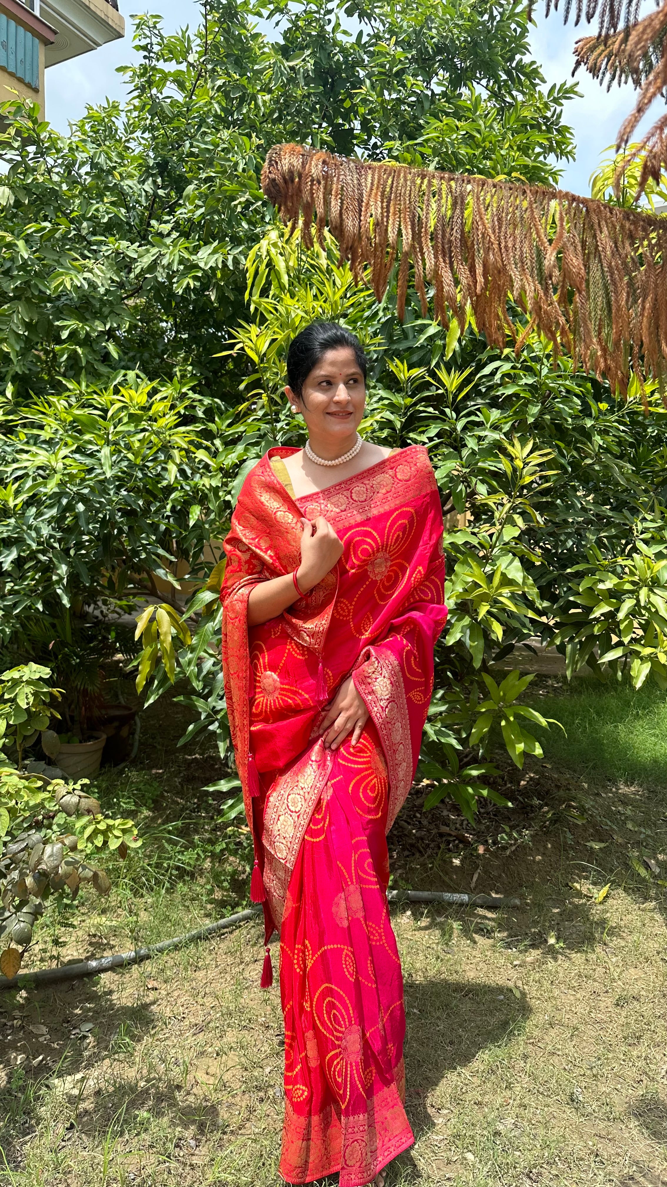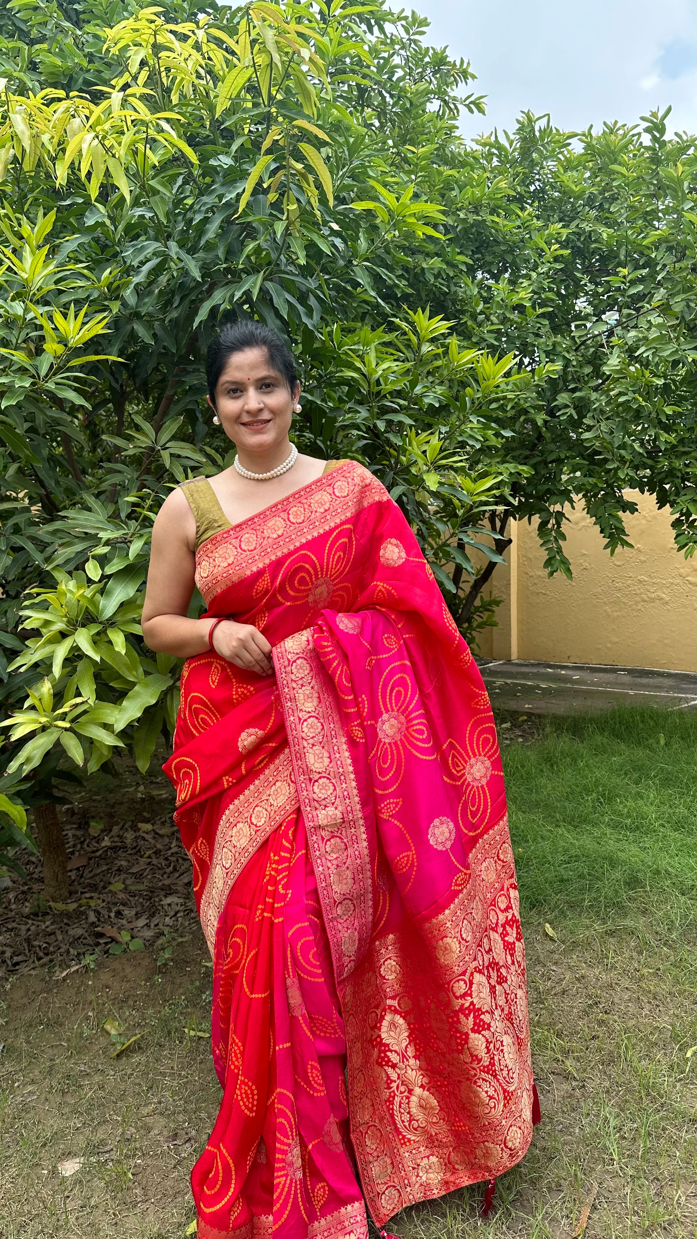 Handloom Gamcha Cotton Sleeveless Lace Work checks Blouse (Red)