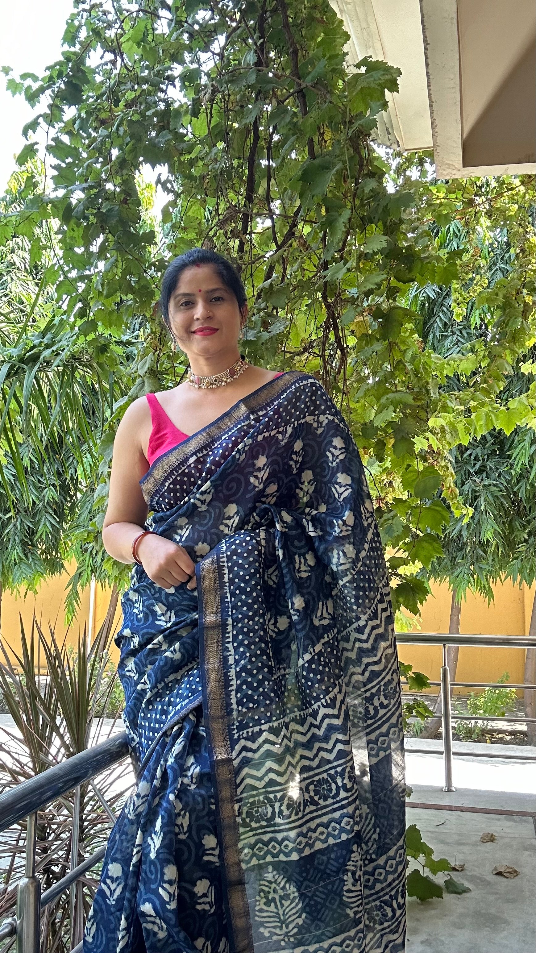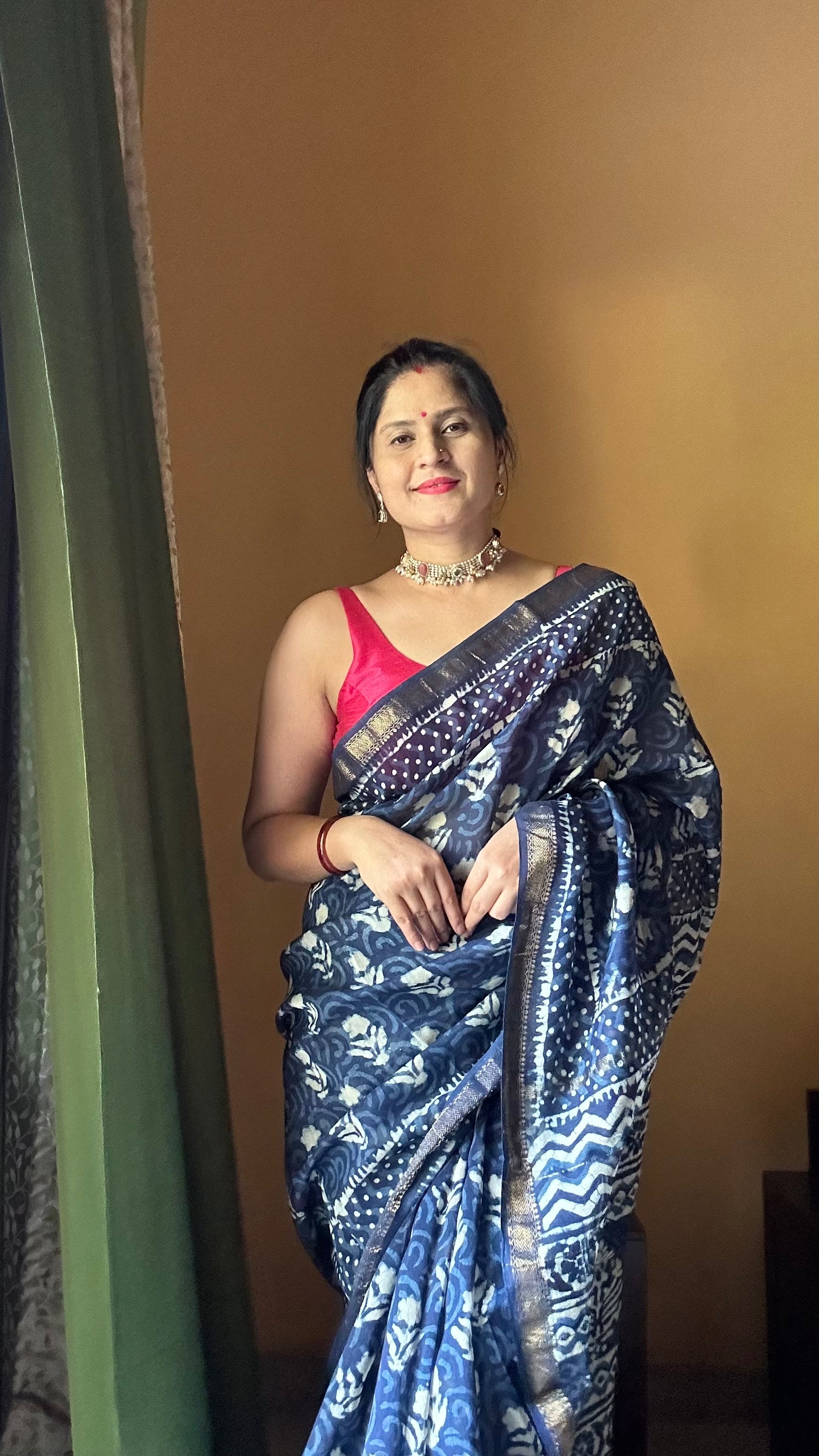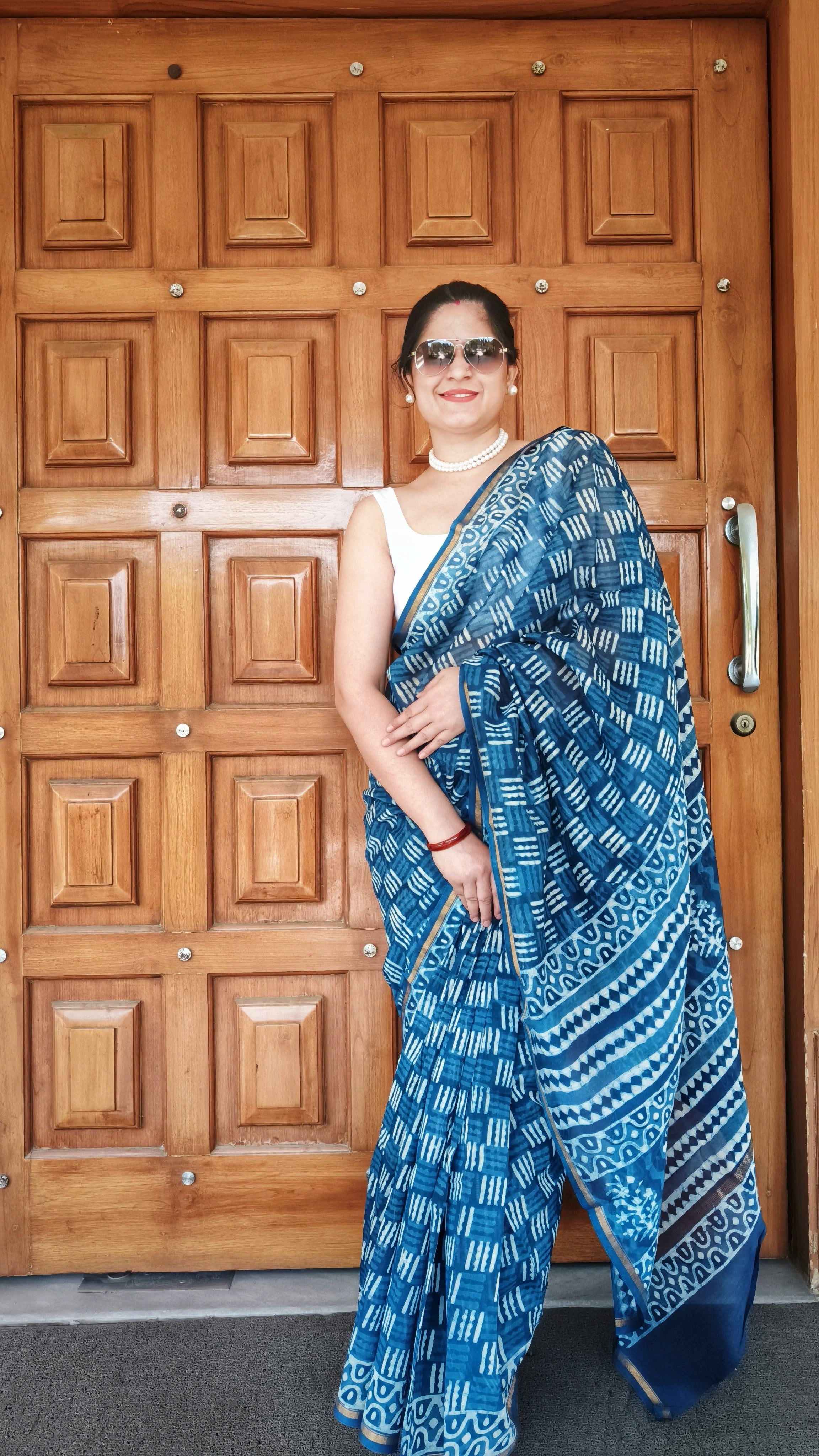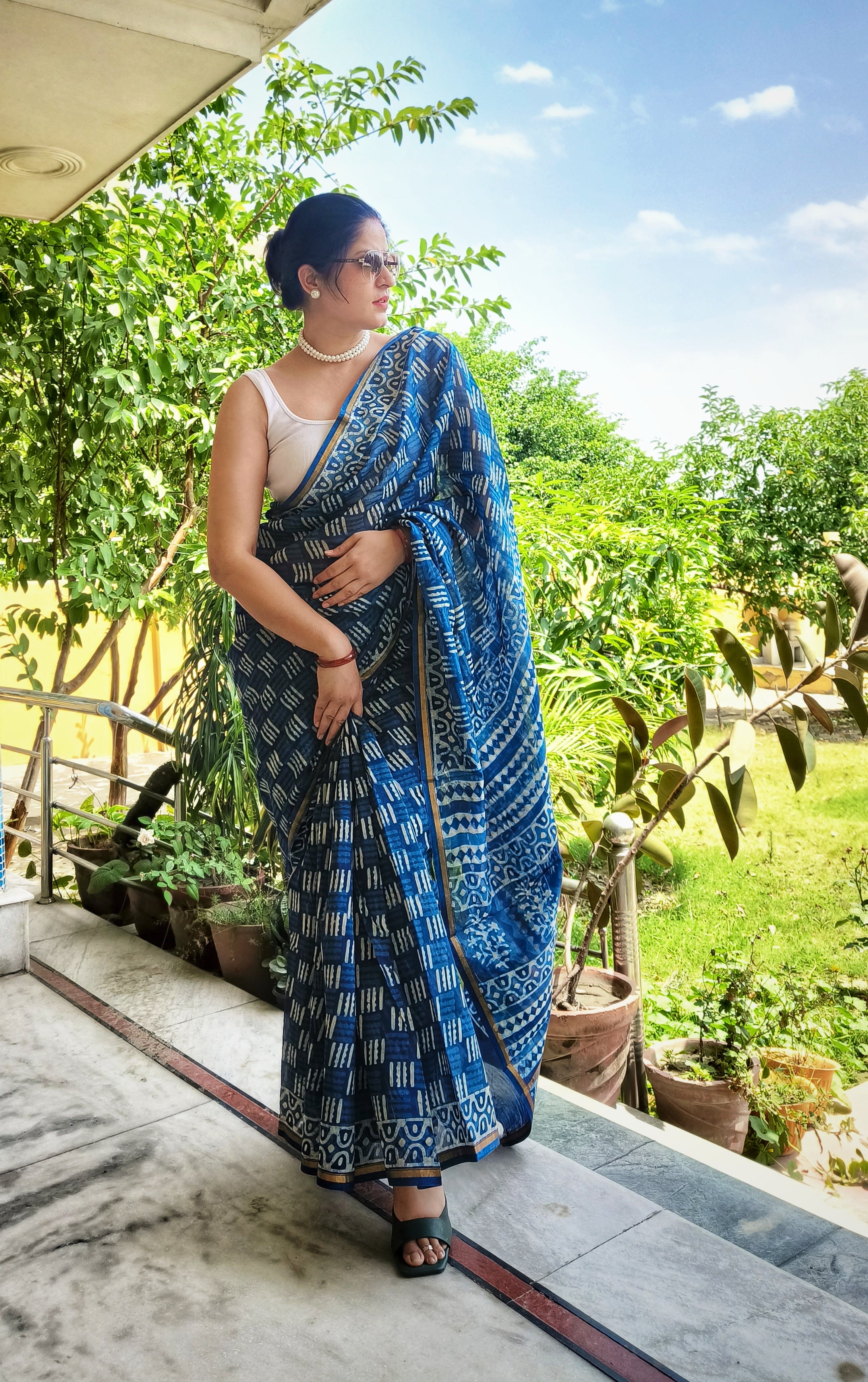 Handloom Cotton Sleeveless Lace Work checks Blouse (Blue)