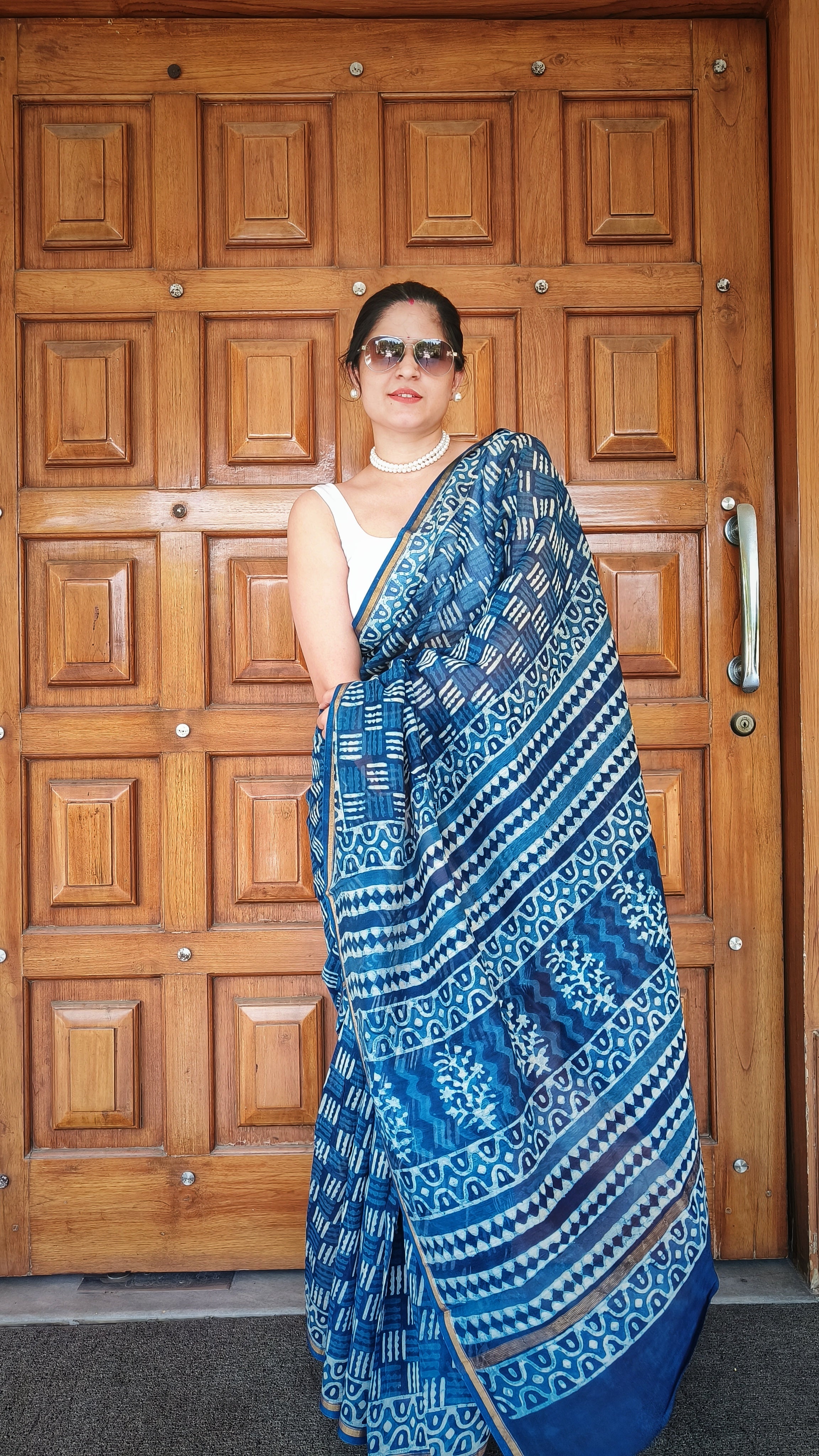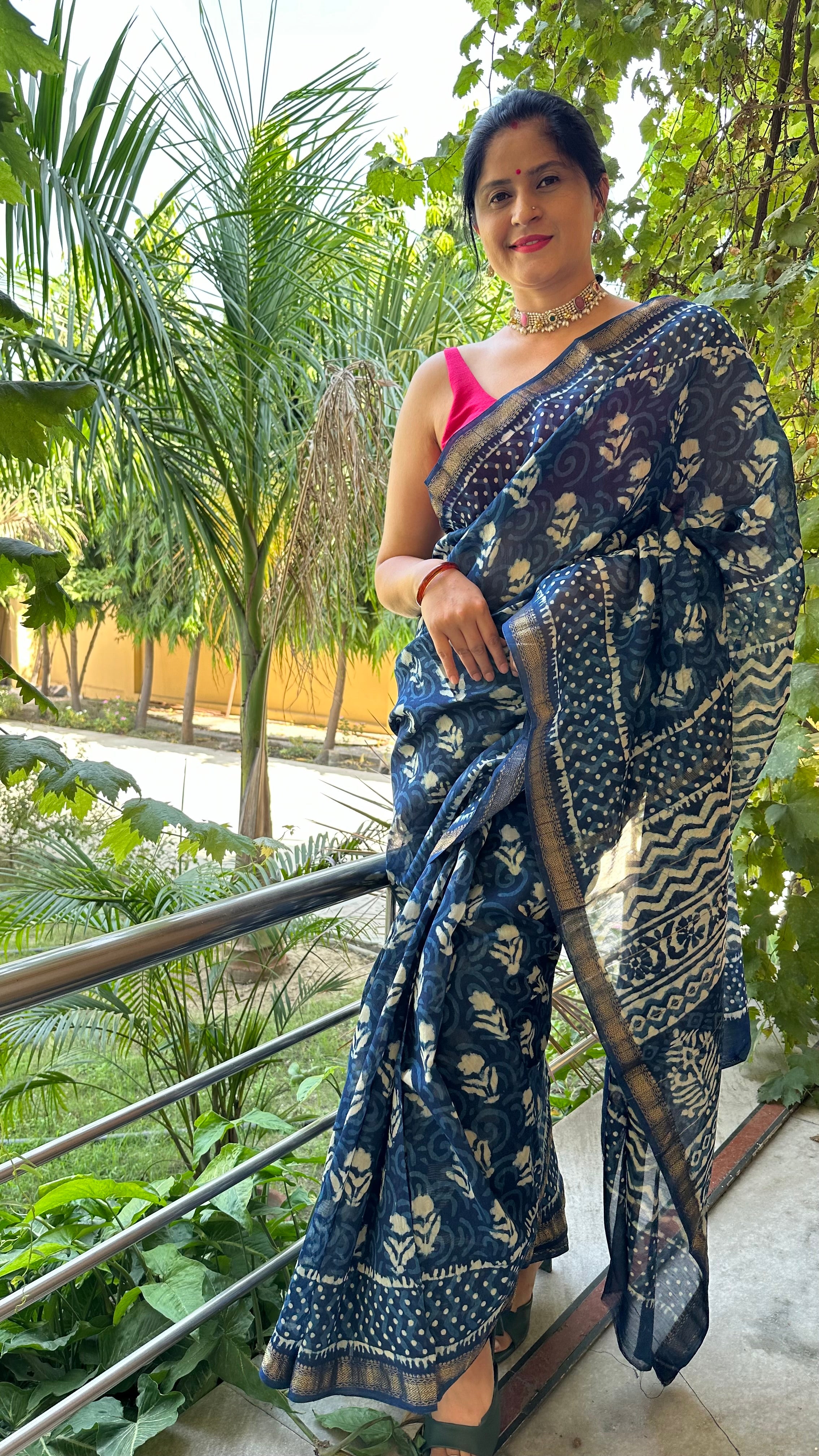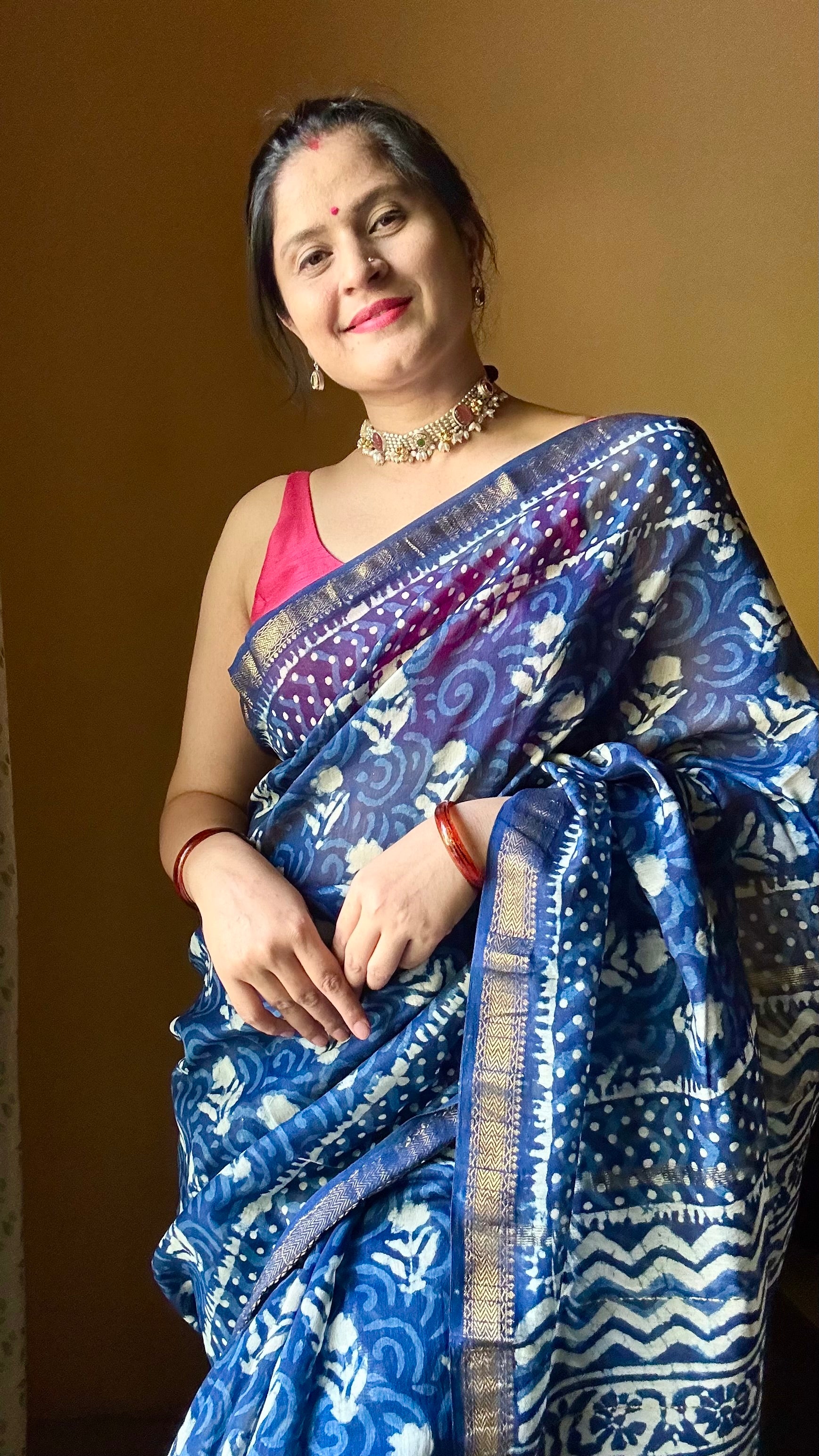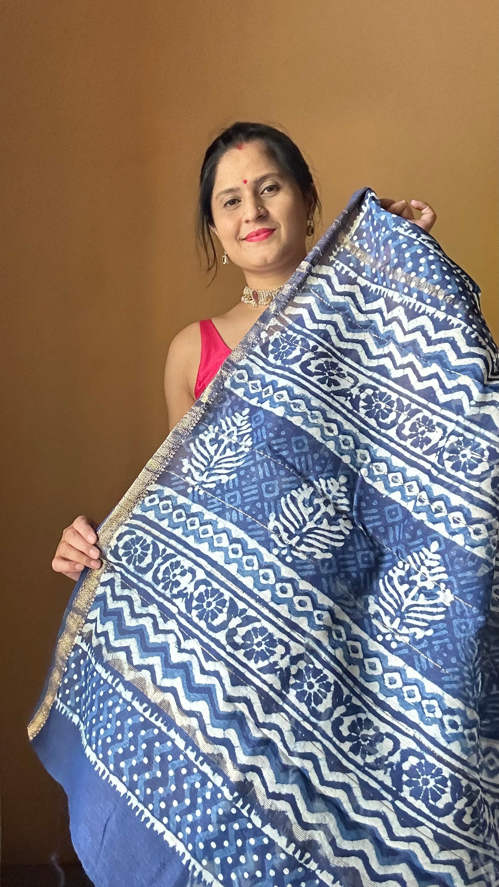 Handloom Cotton Sleeveless Lace Work checks Blouse (Blue)