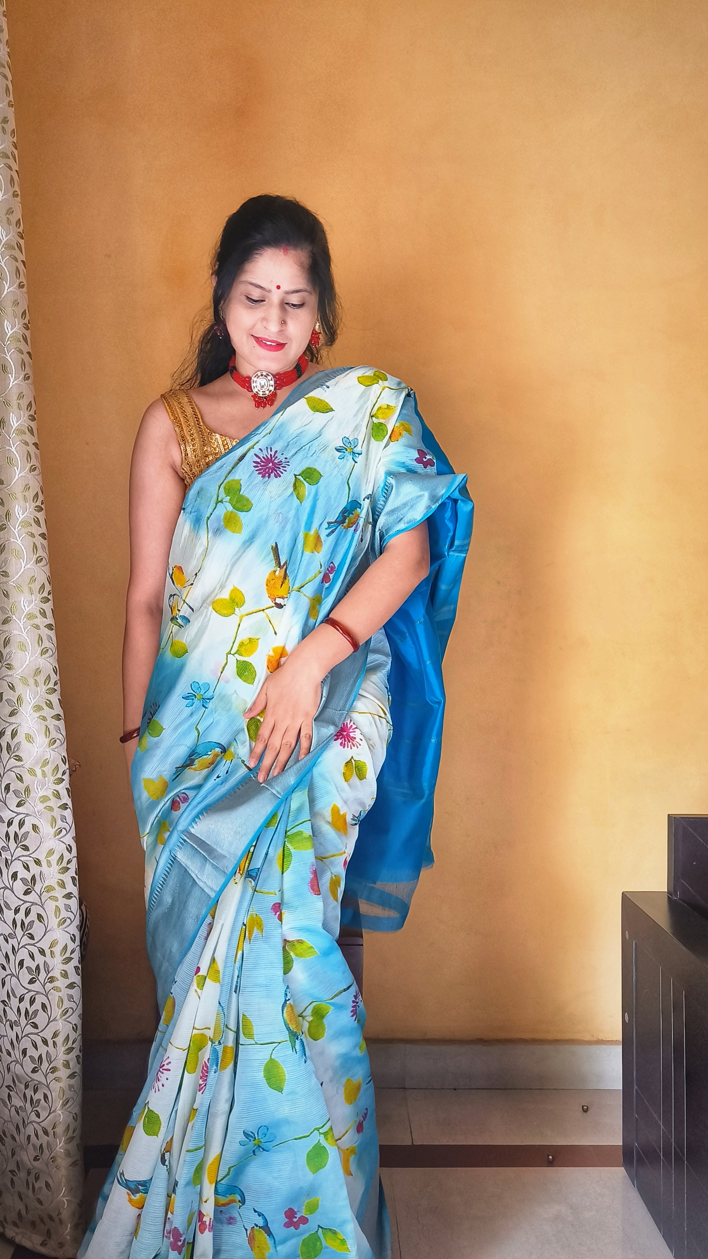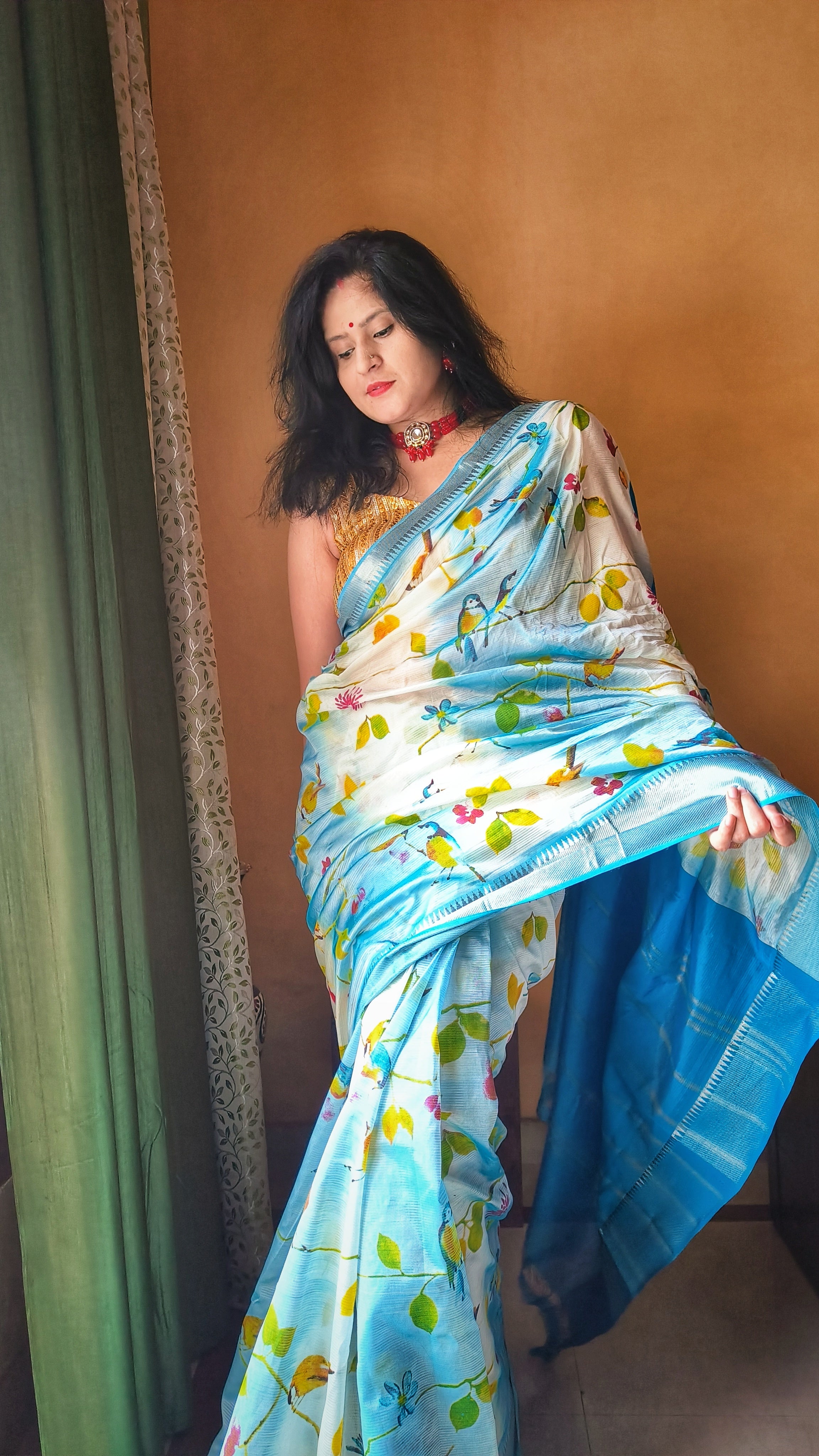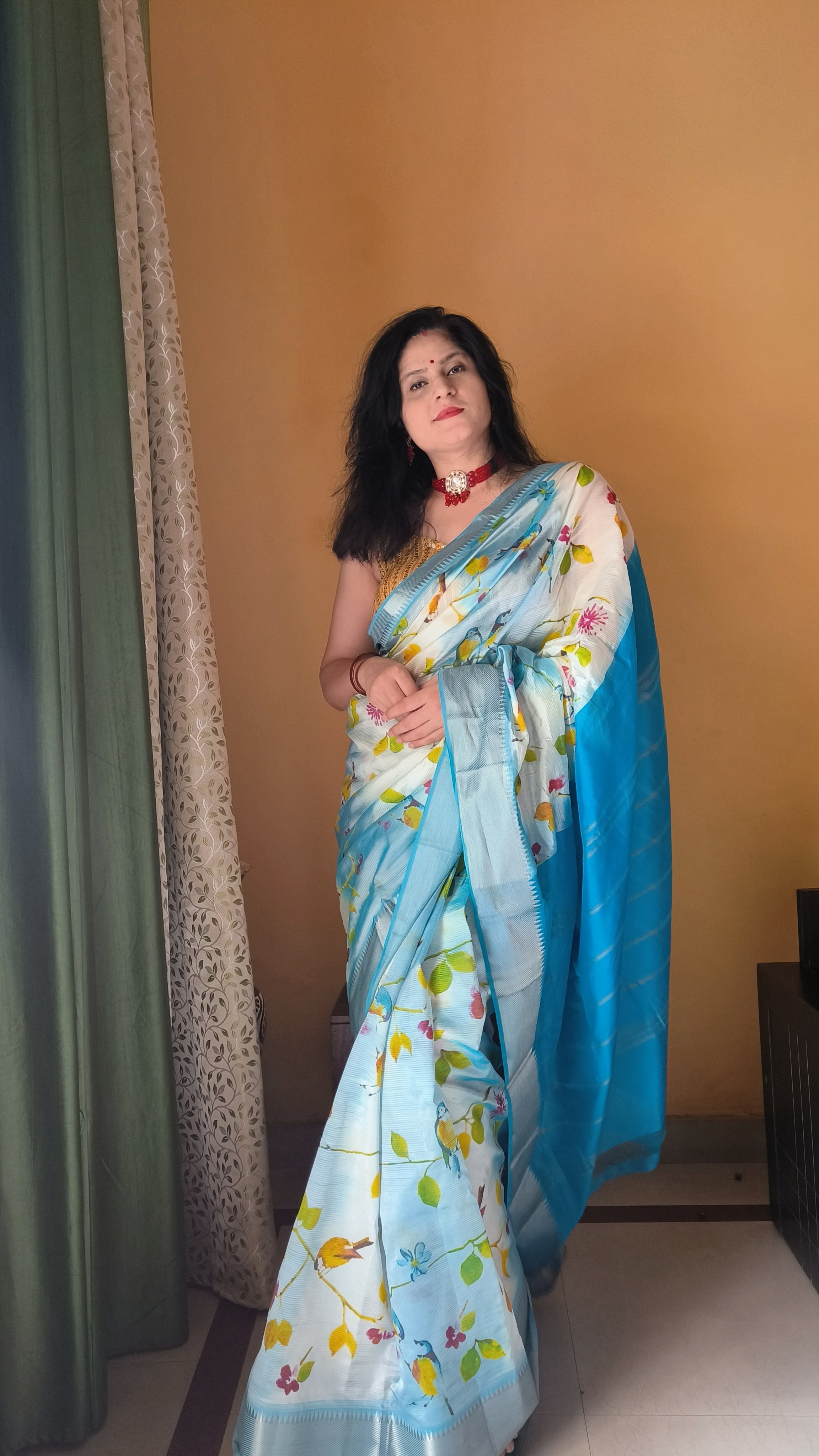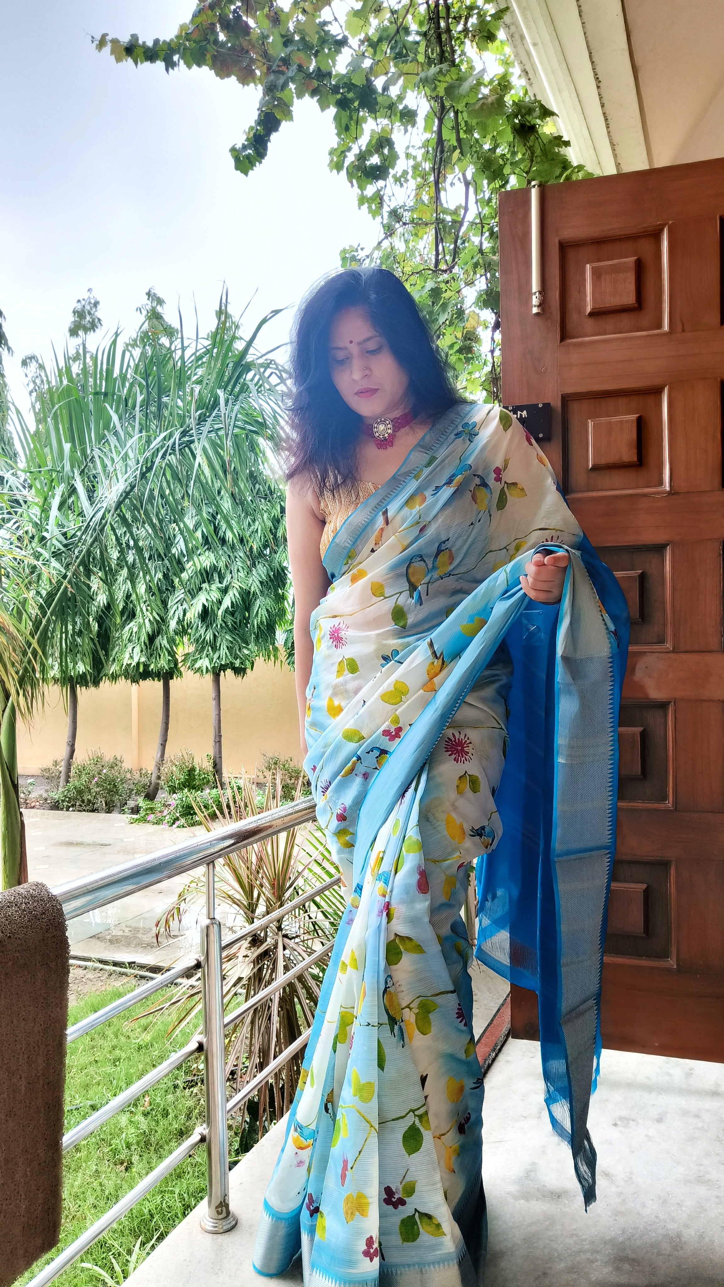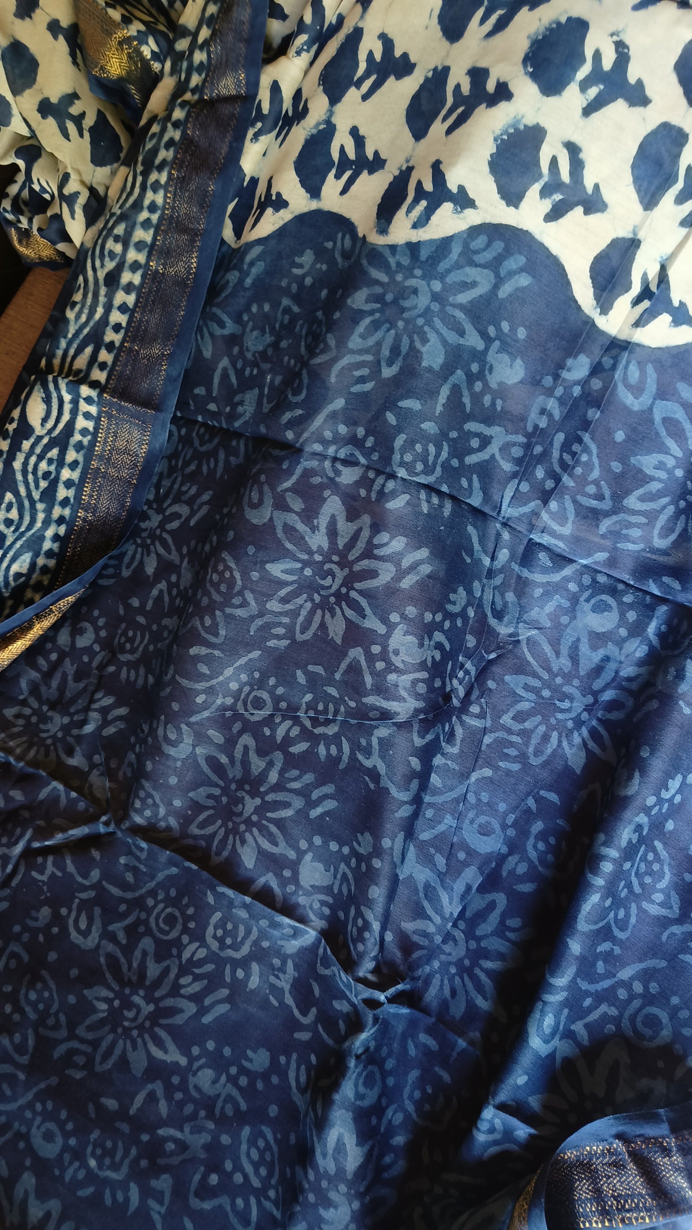 Handloom Cotton Sleeveless Lace Work checks Blouse (Blue)