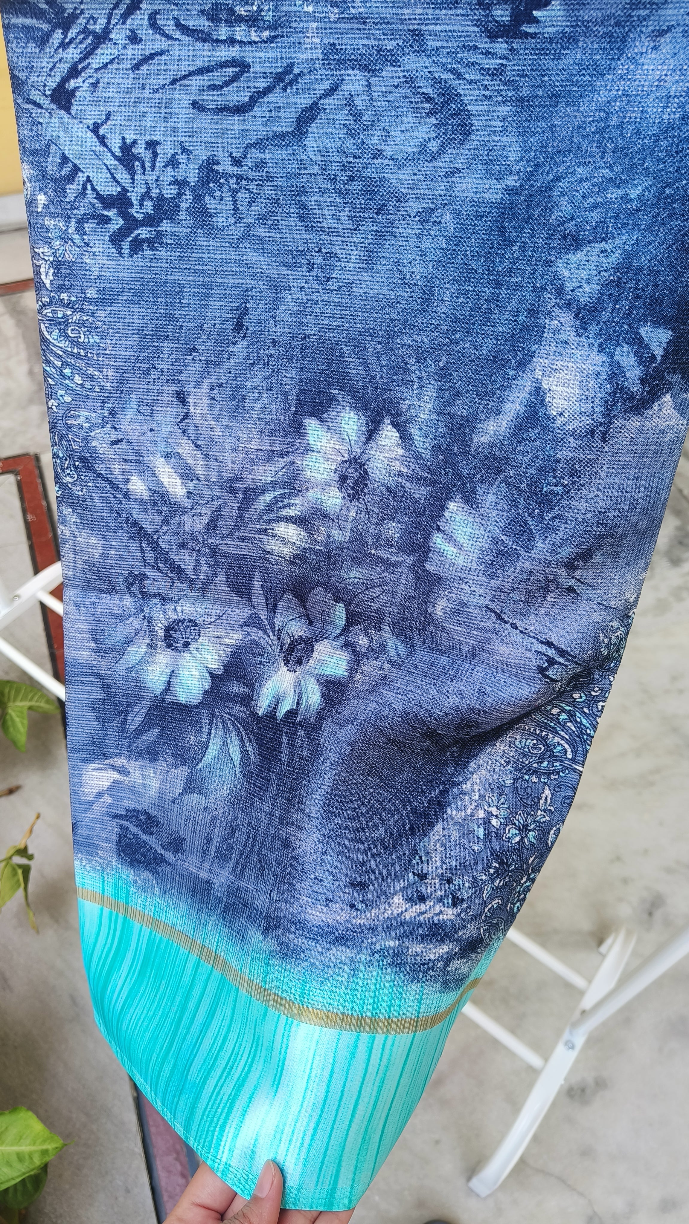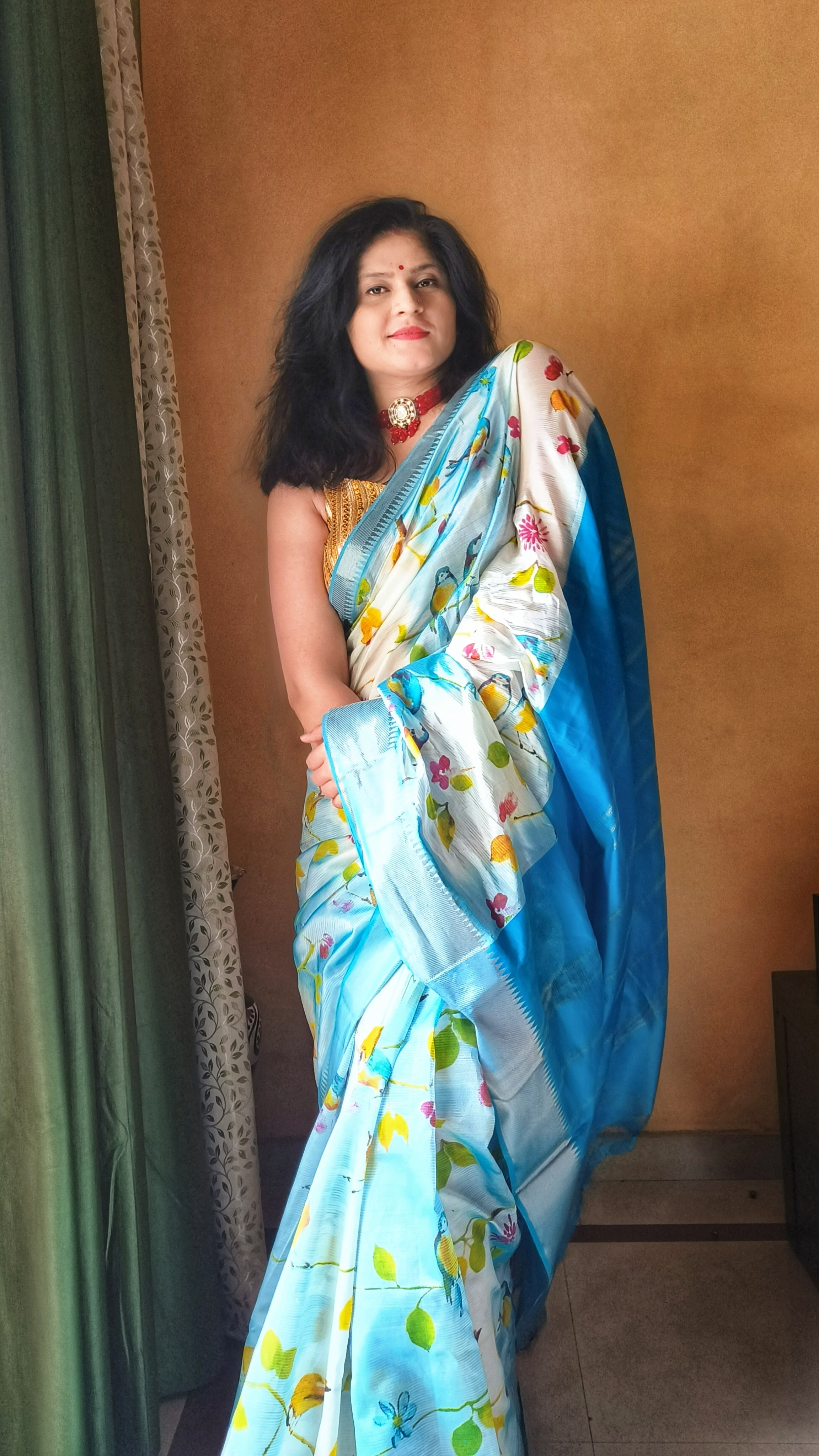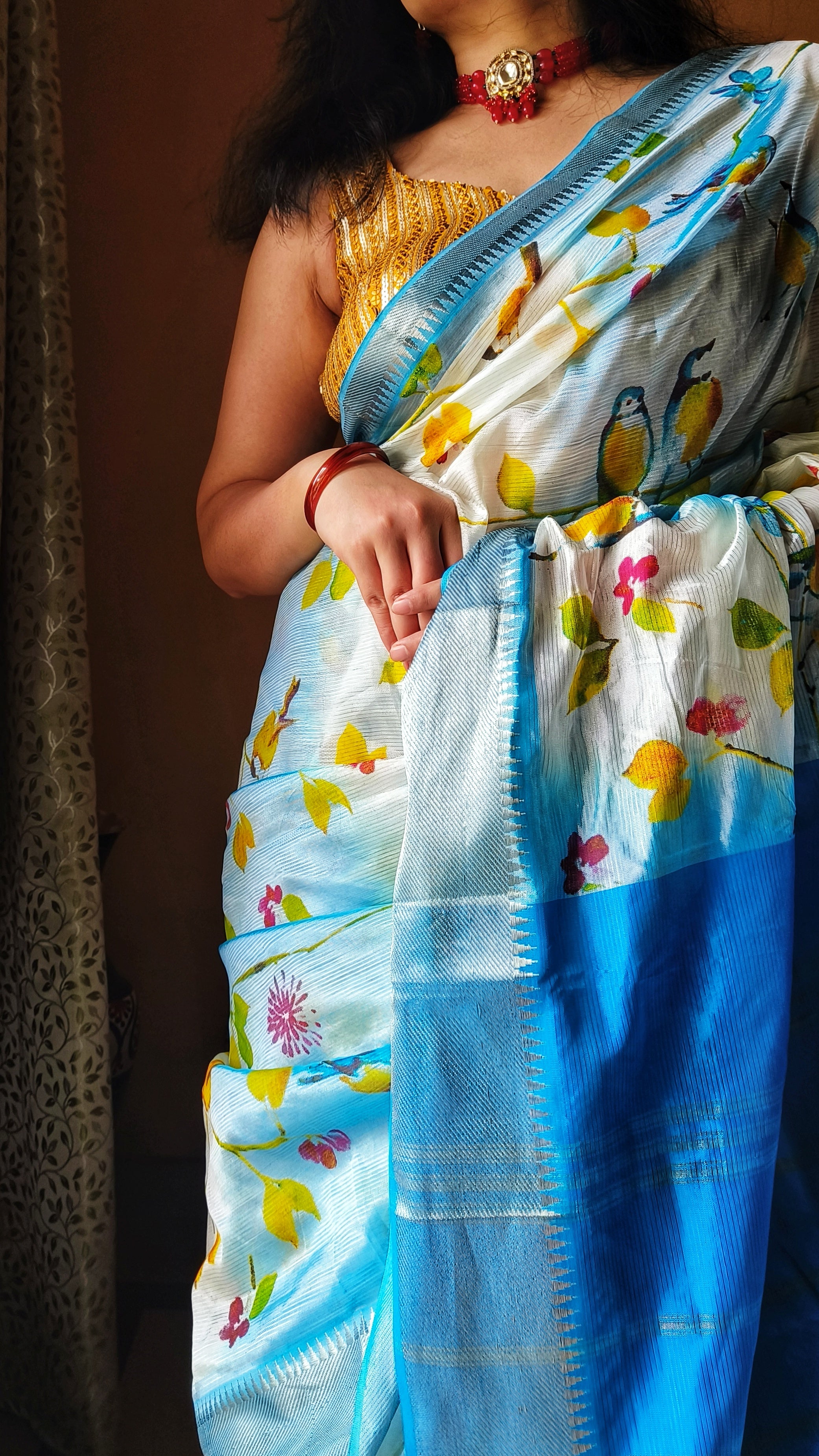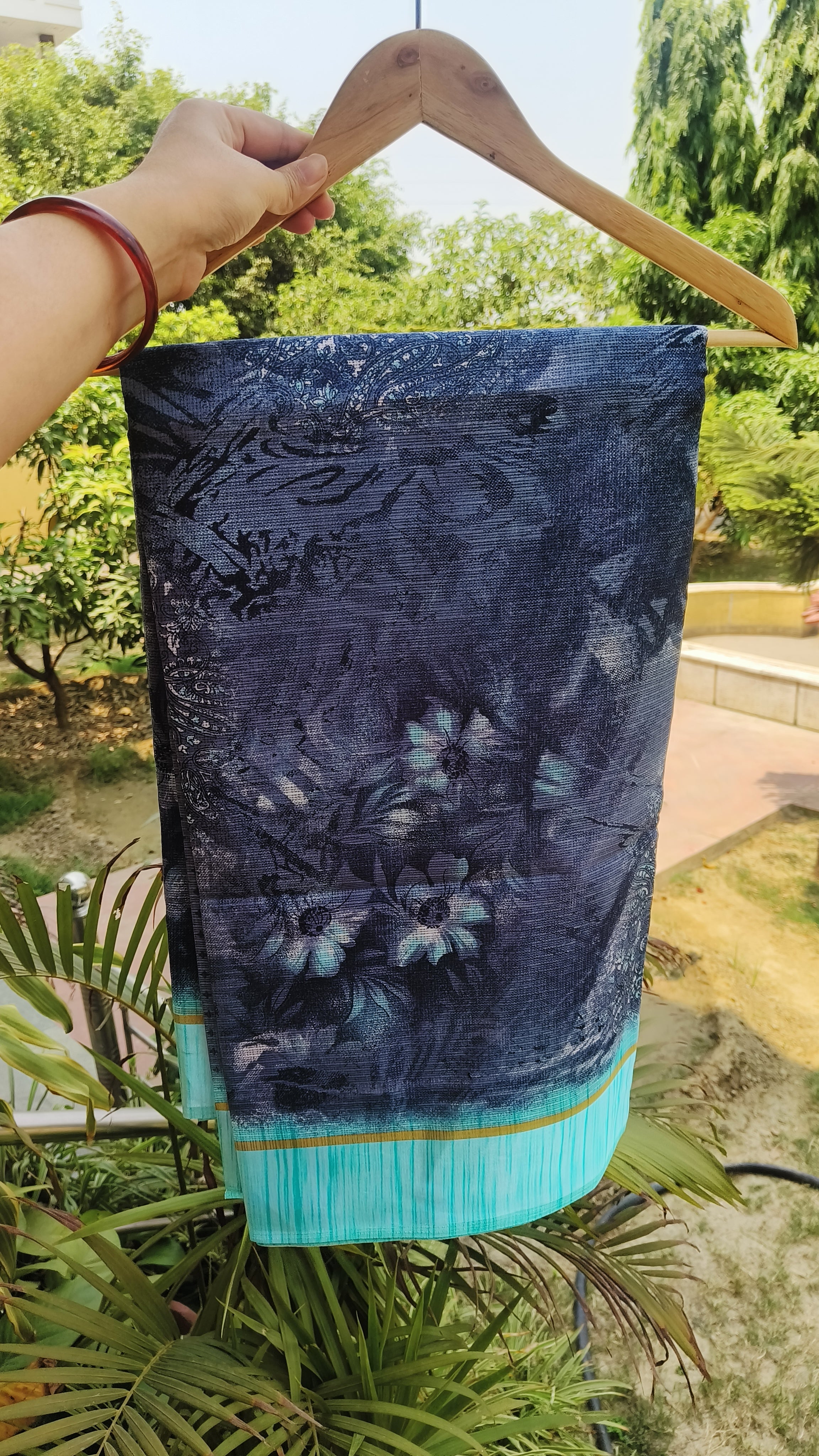 Handloom Cotton Sleeveless Lace Work checks Blouse (Blue)