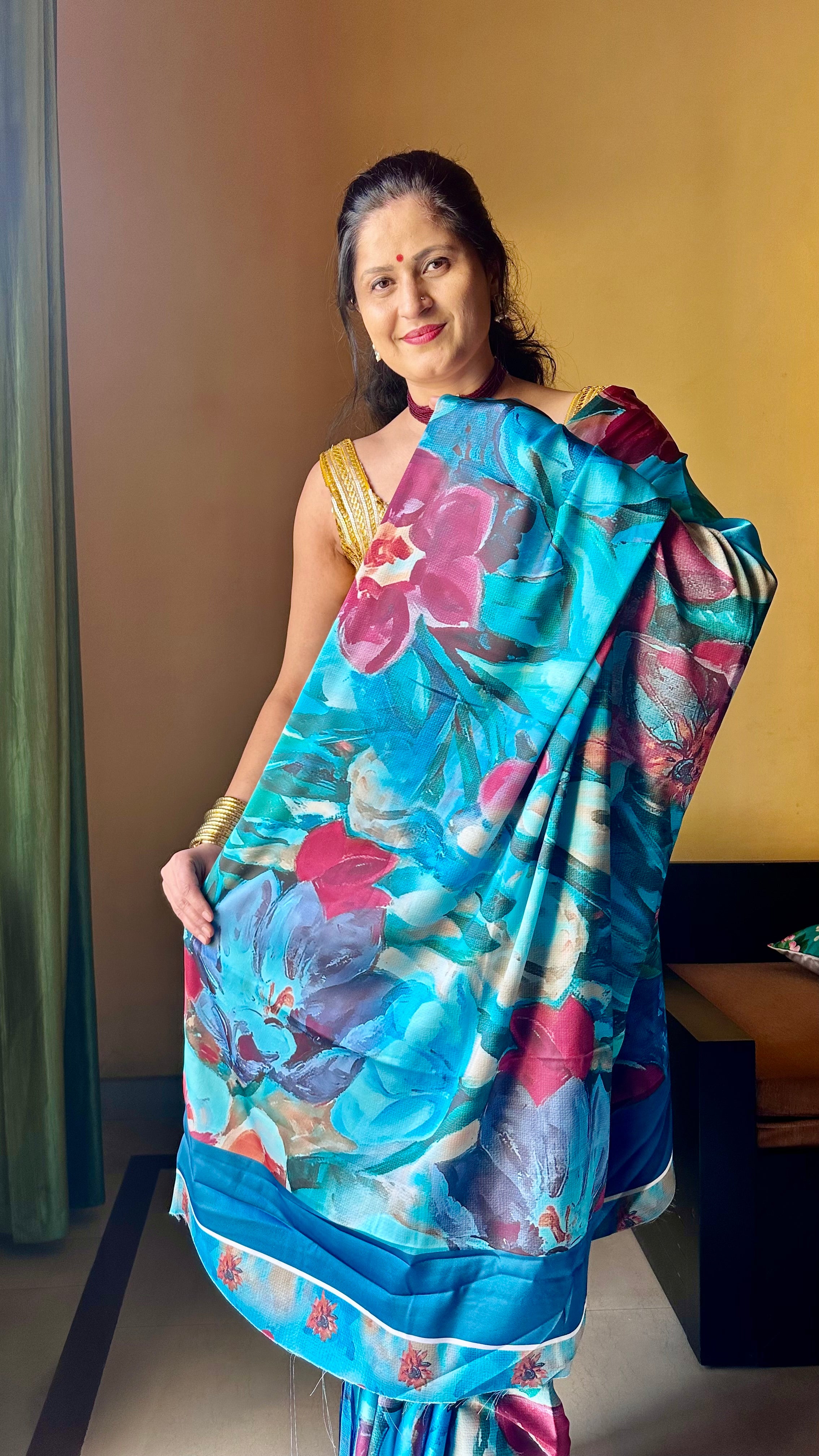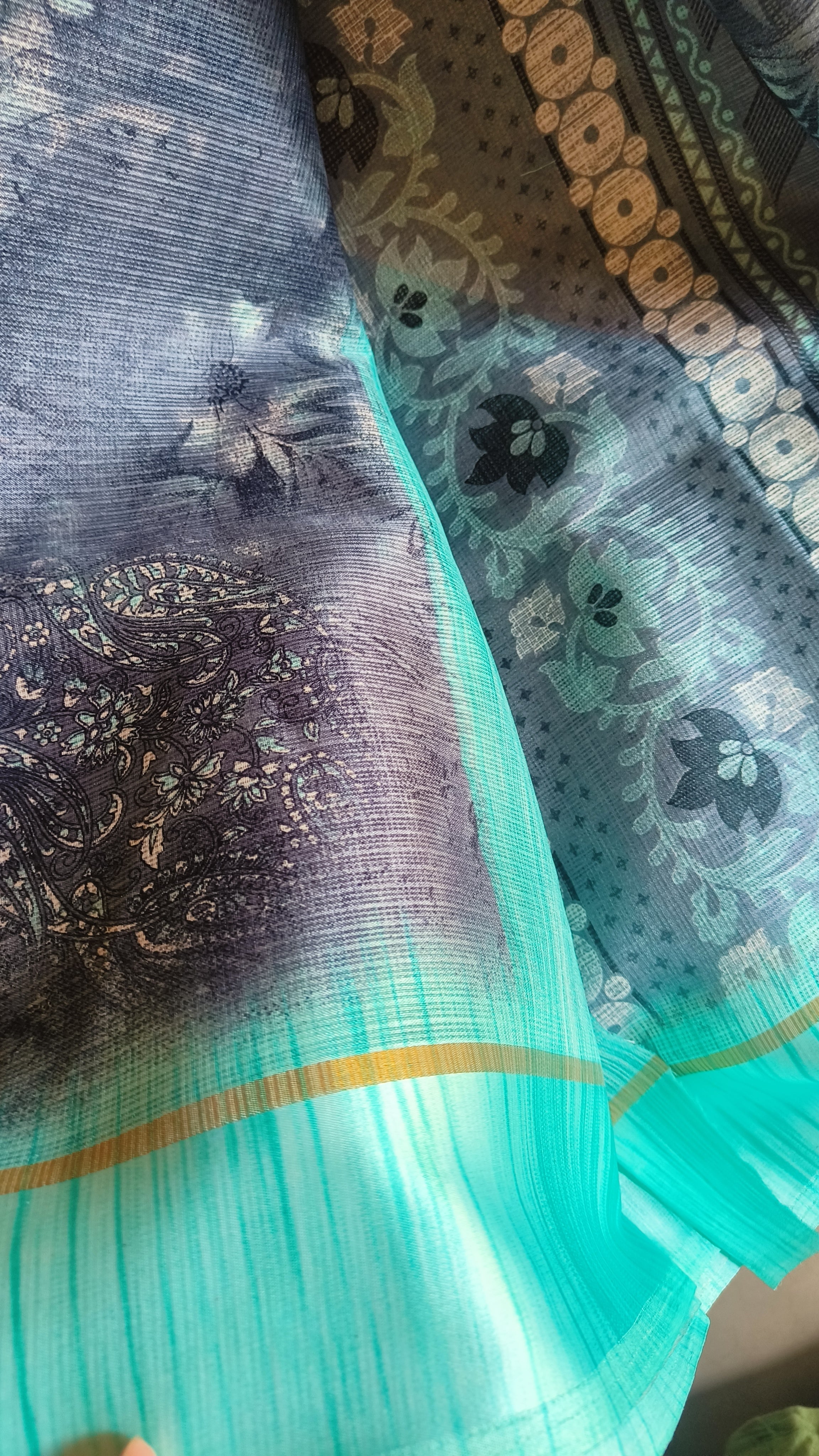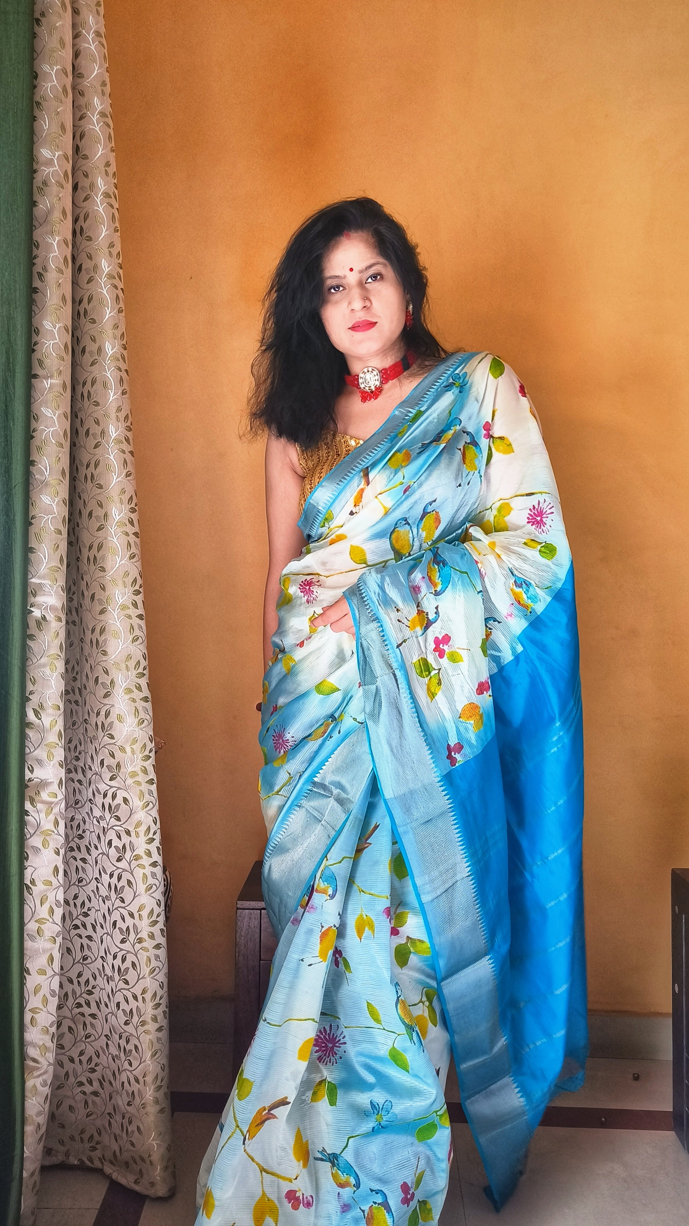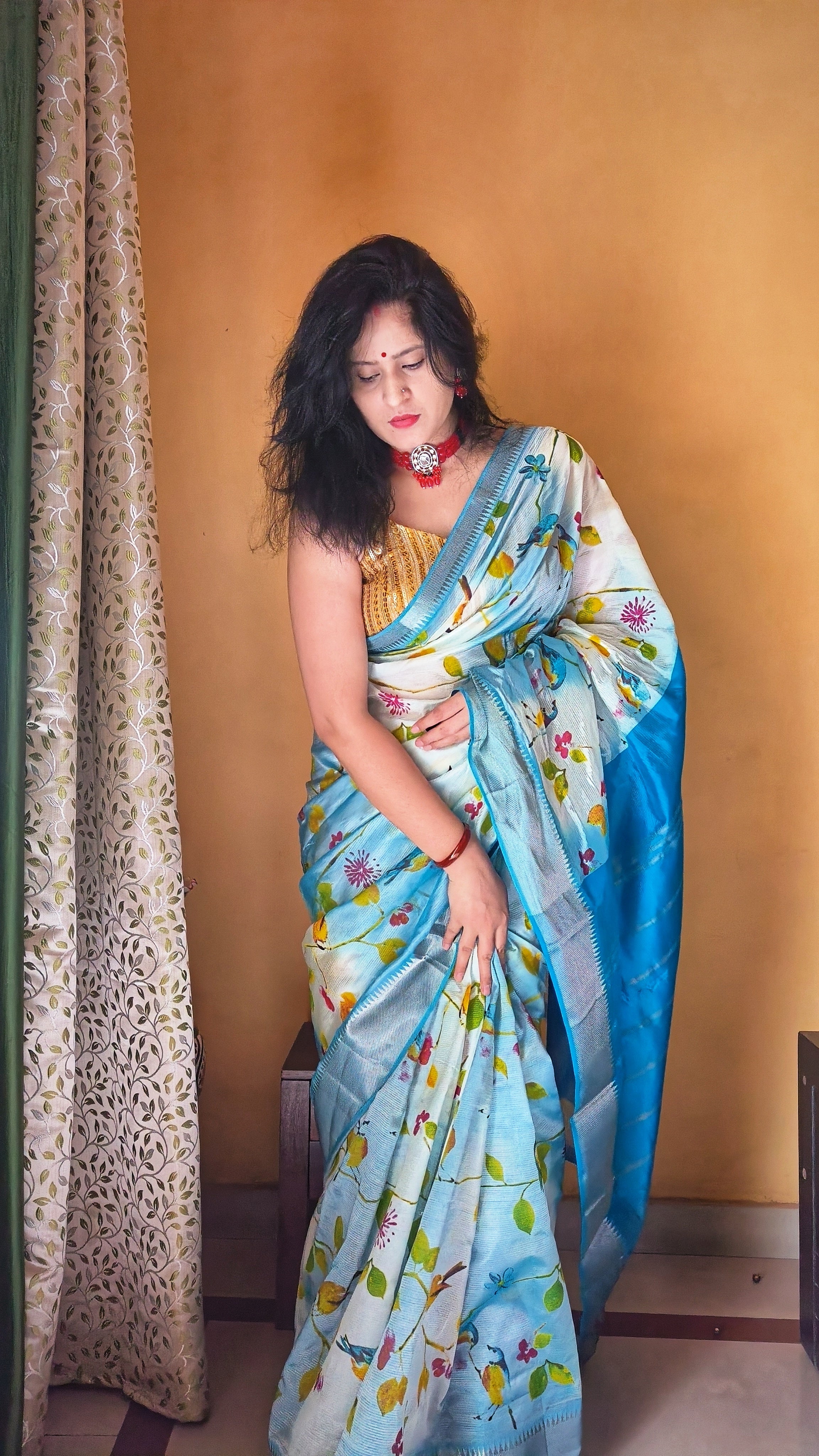 Handloom Cotton Sleeveless Lace Work checks Blouse (Blue)