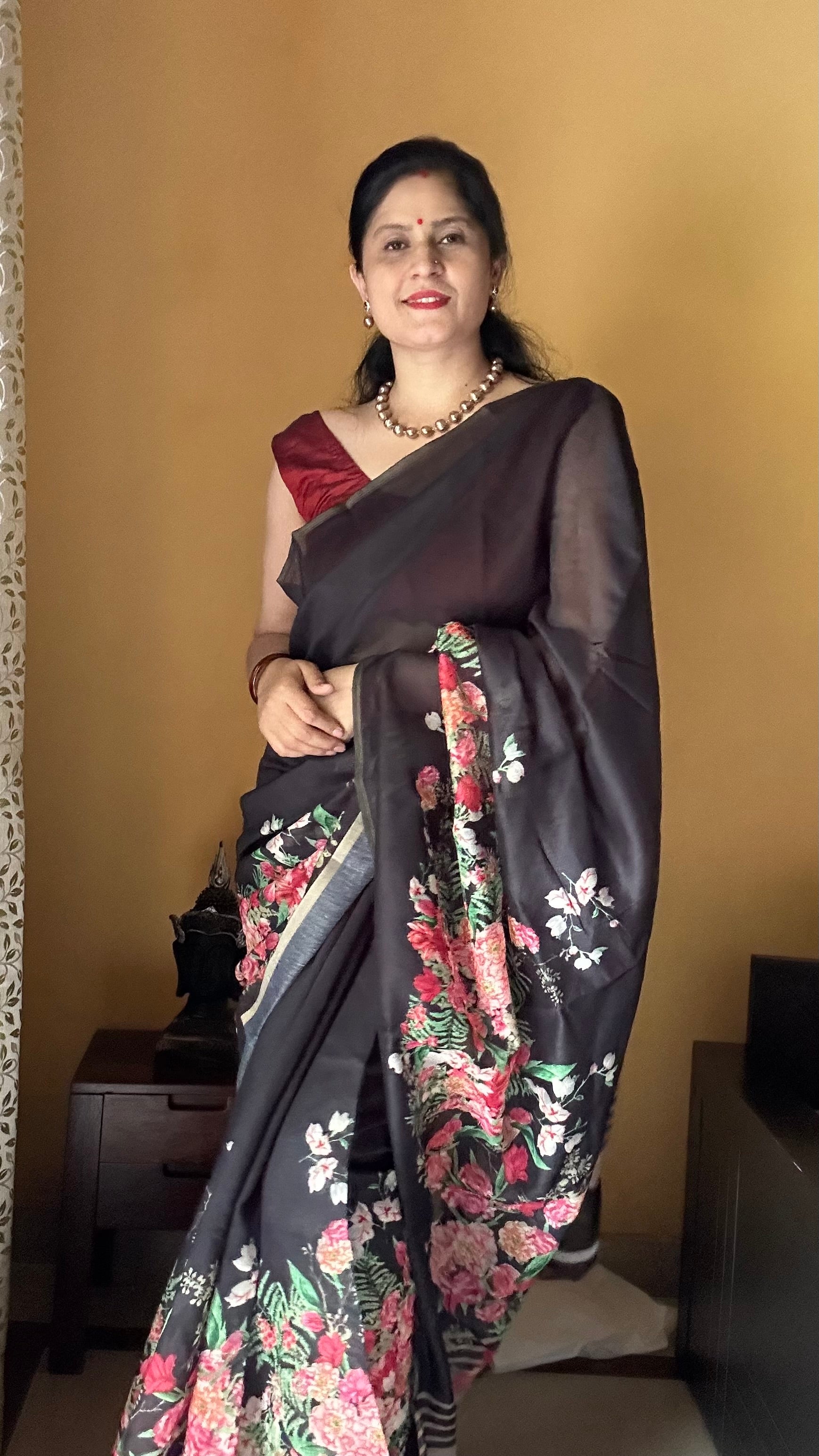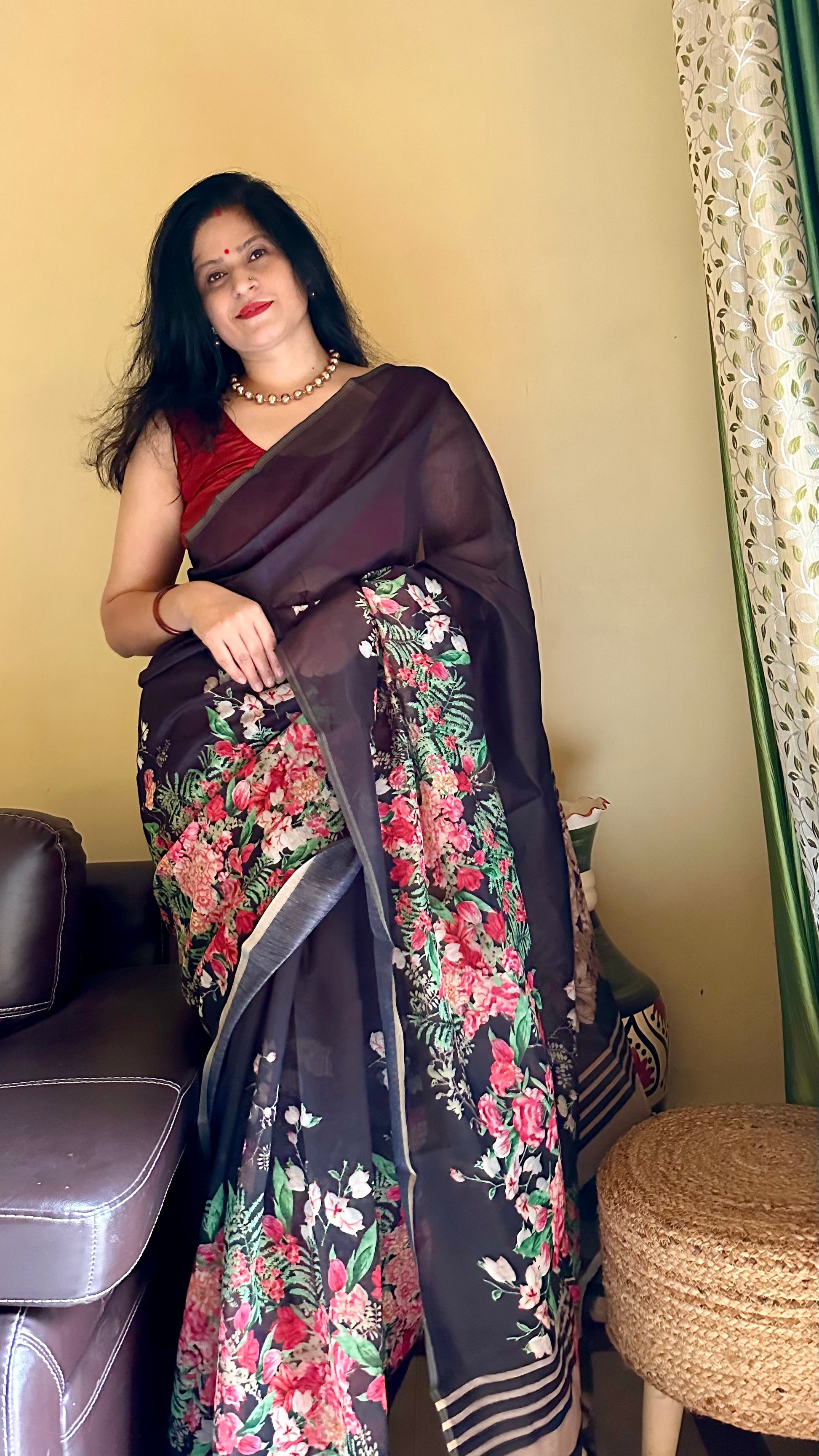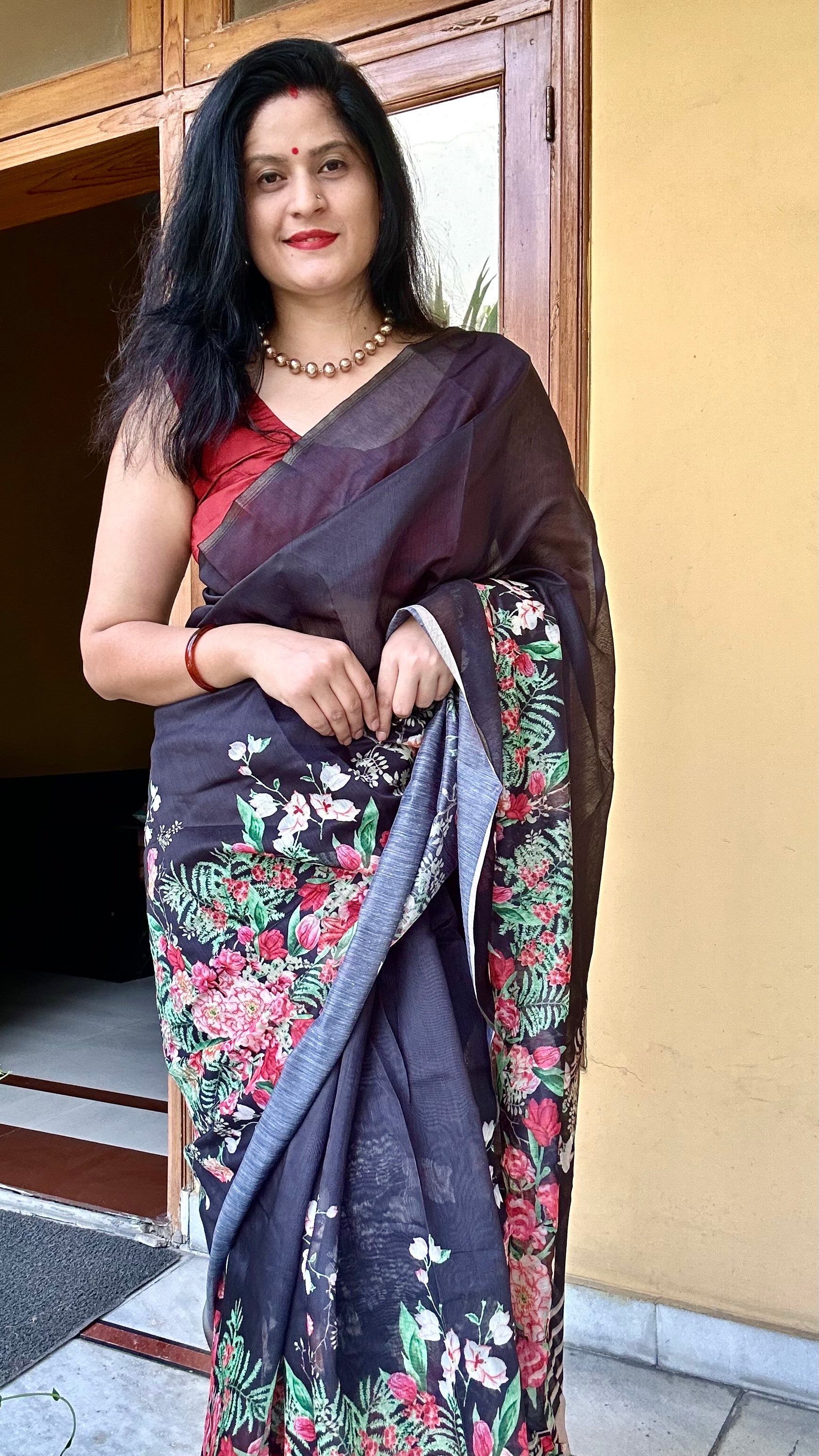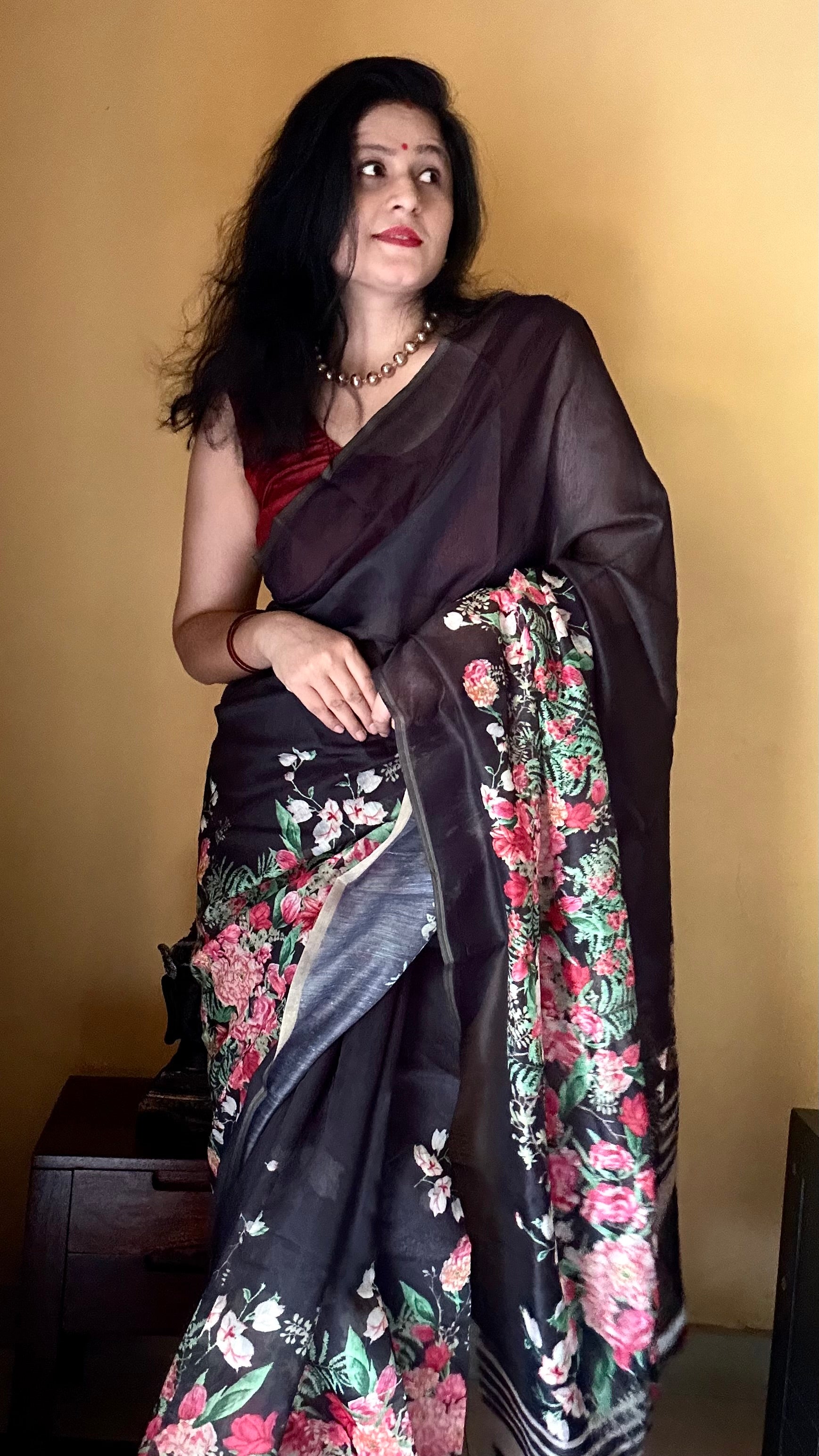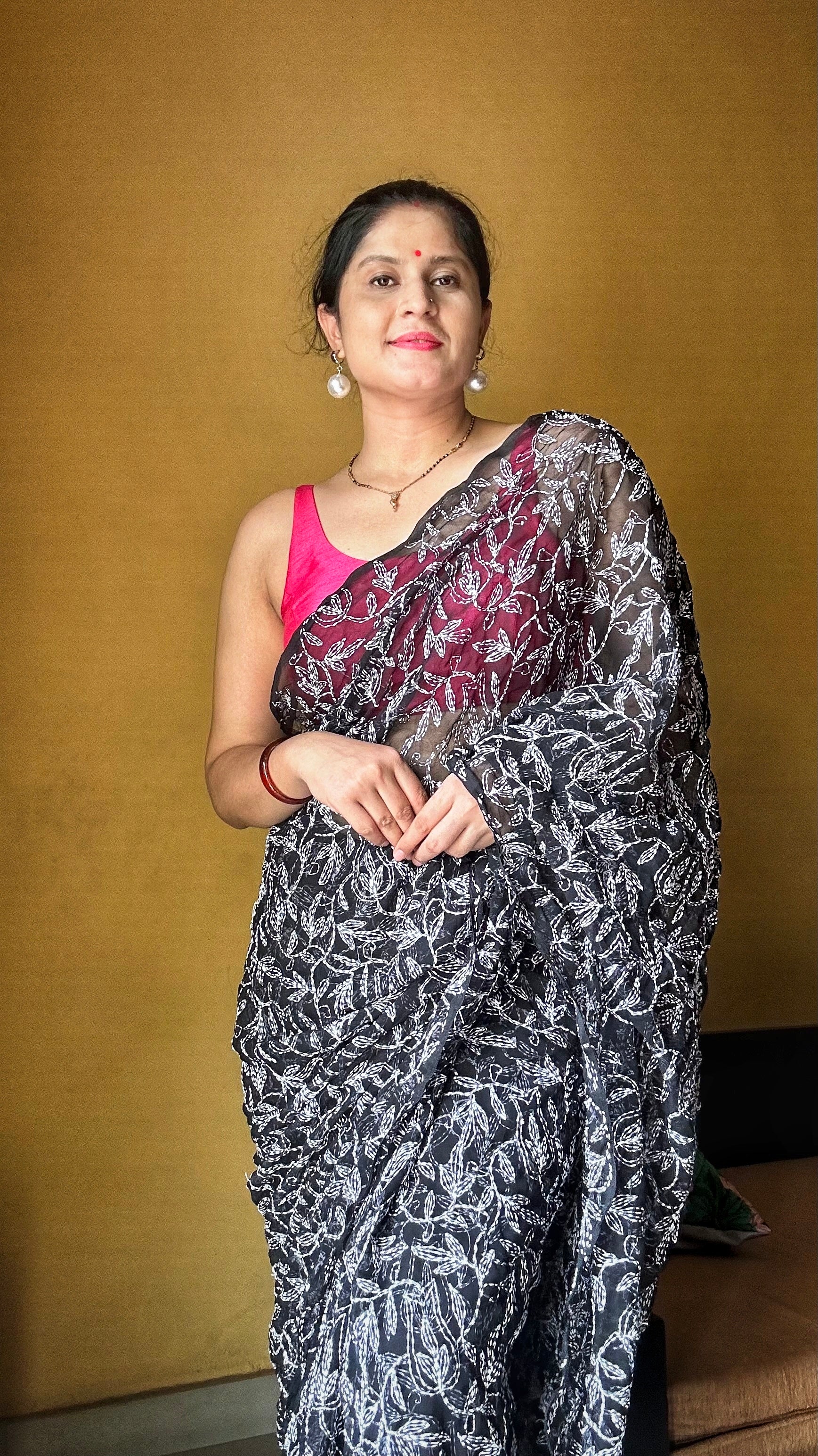 Handloom Gamcha Cotton Sleeveless Lace Work checks Blouse (Black)