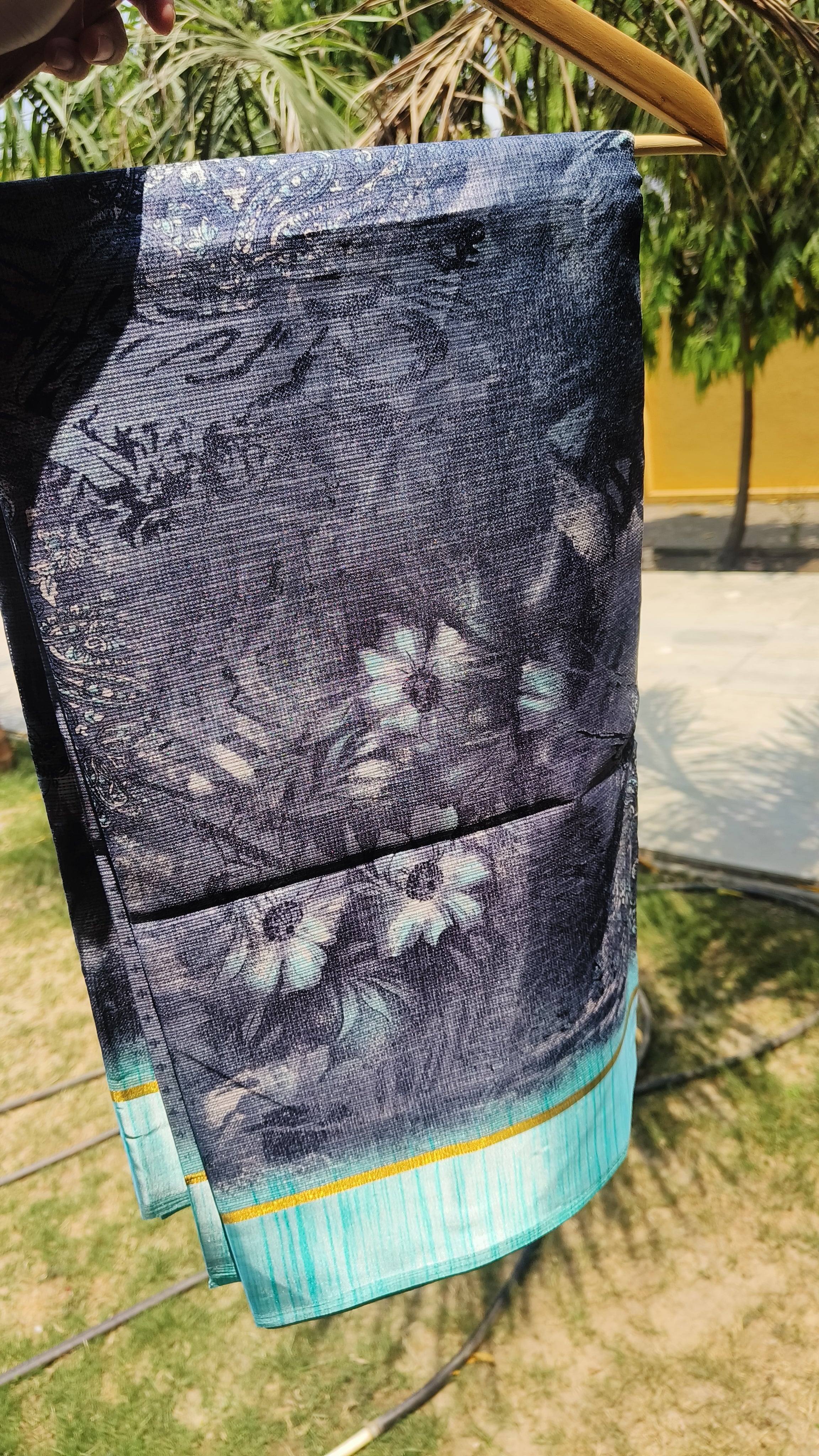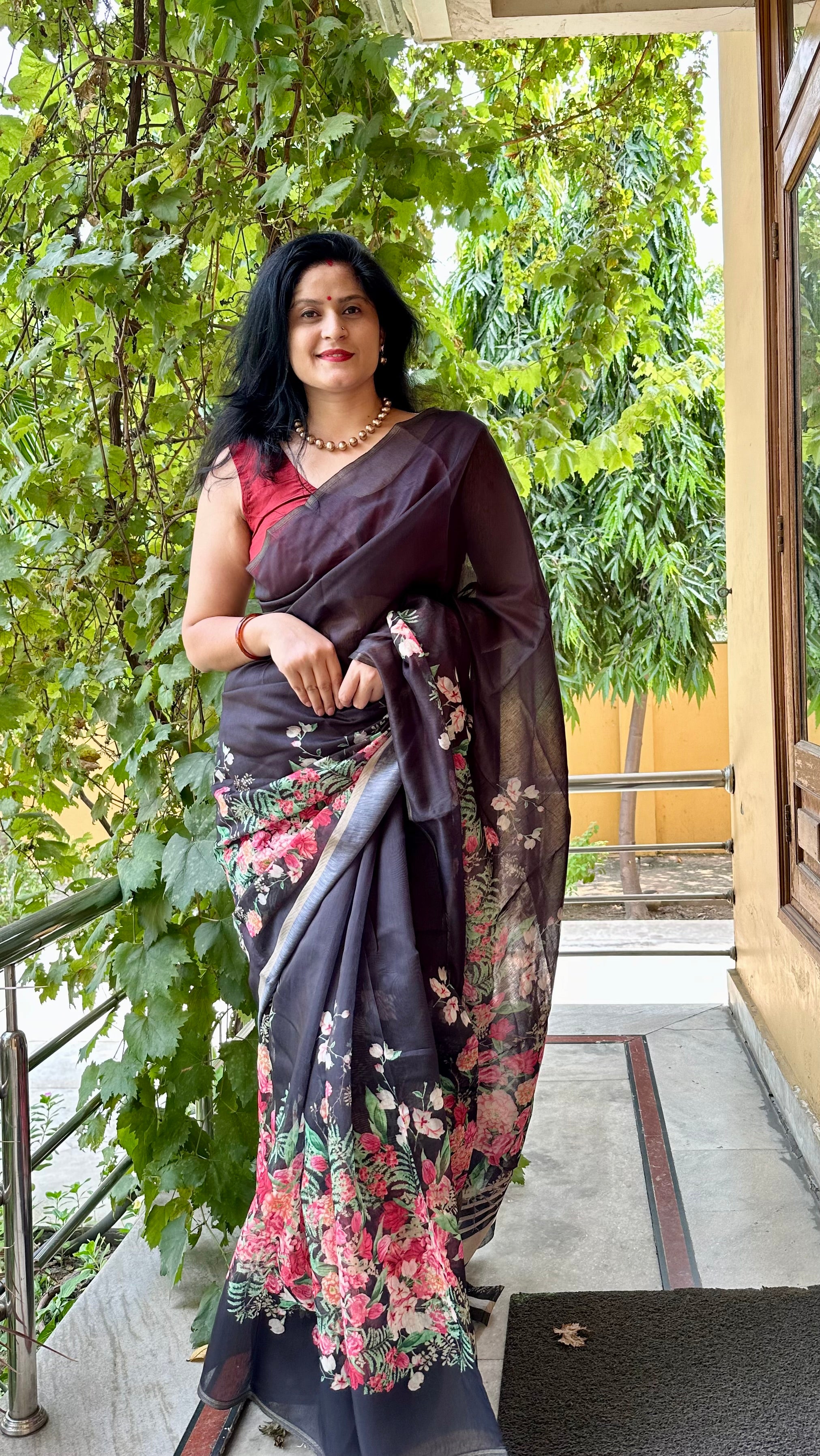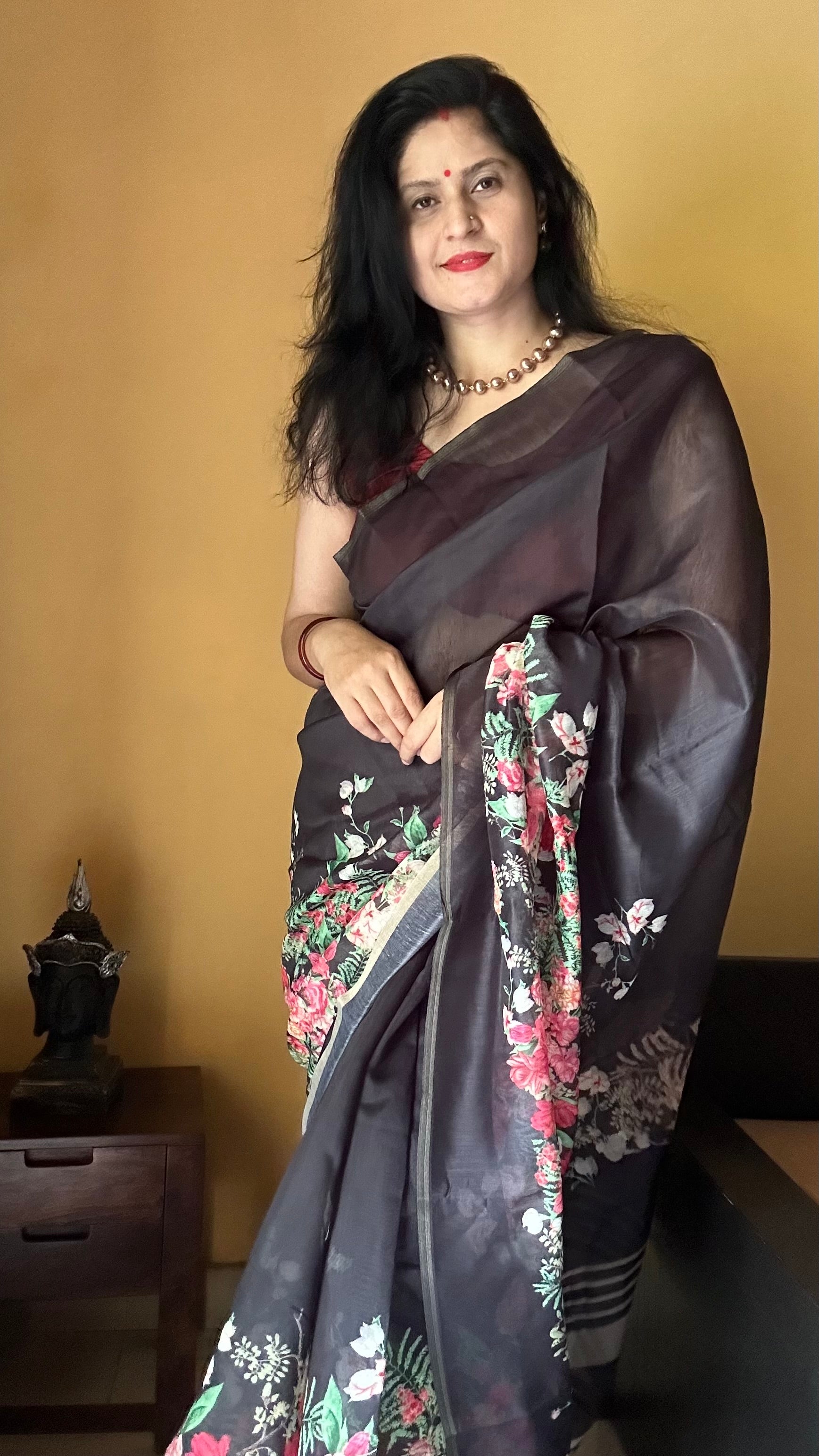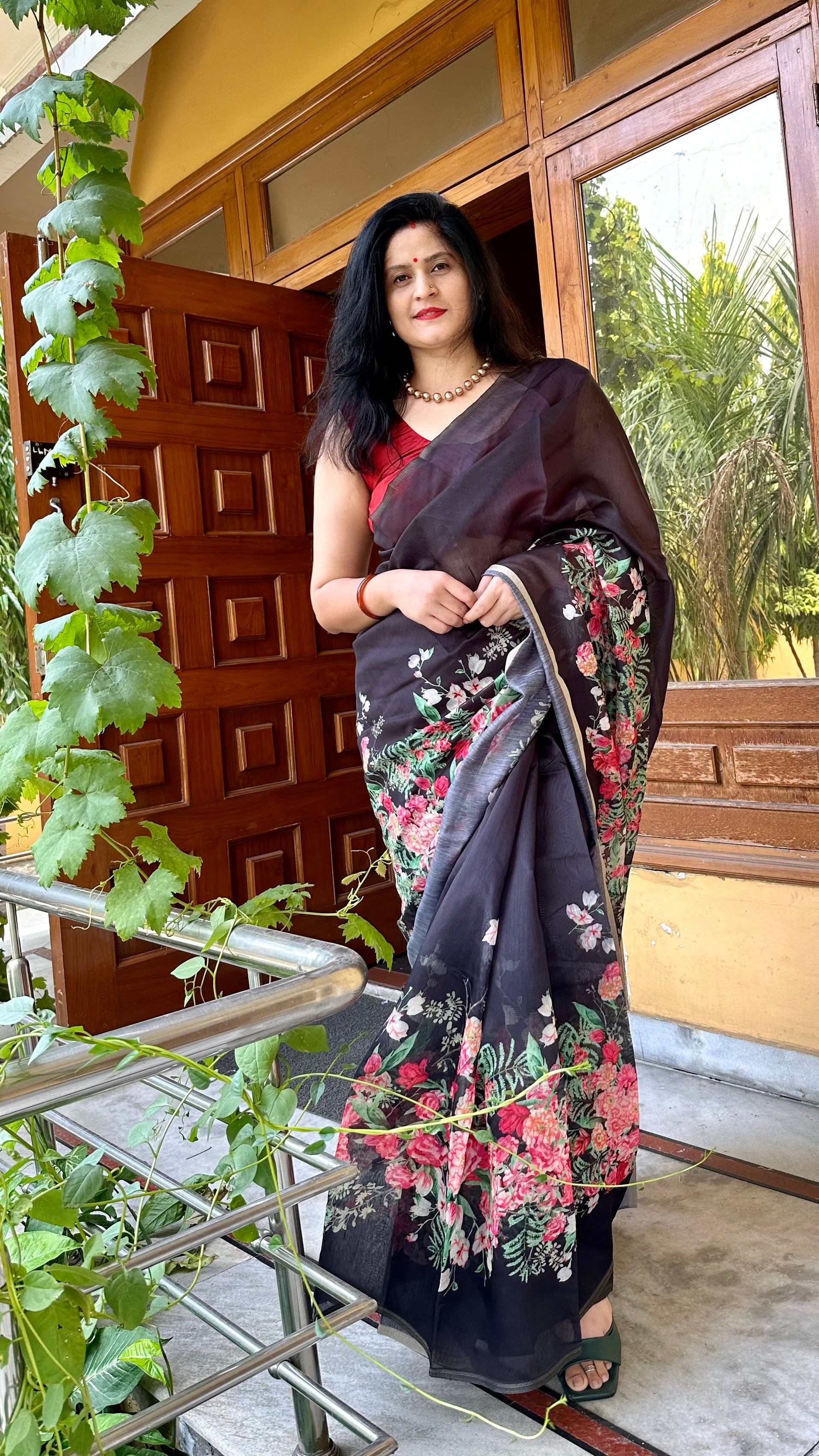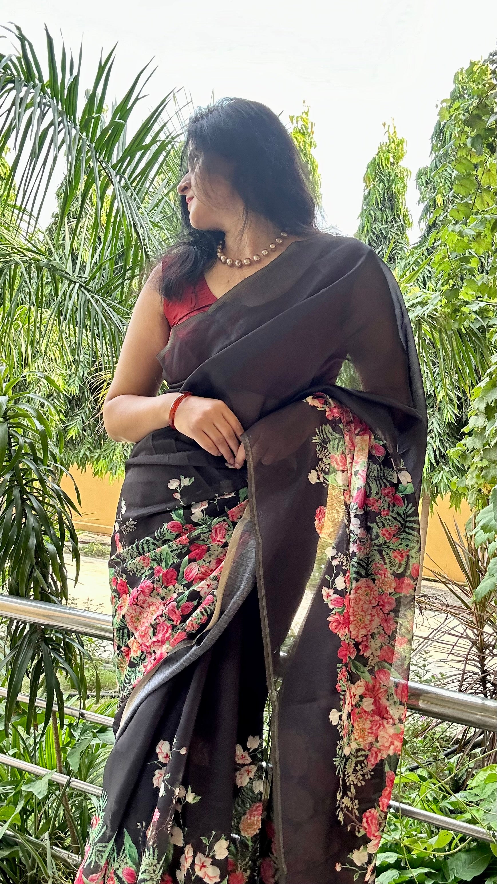 Handloom Gamcha Cotton Sleeveless Lace Work checks Blouse (Black)
