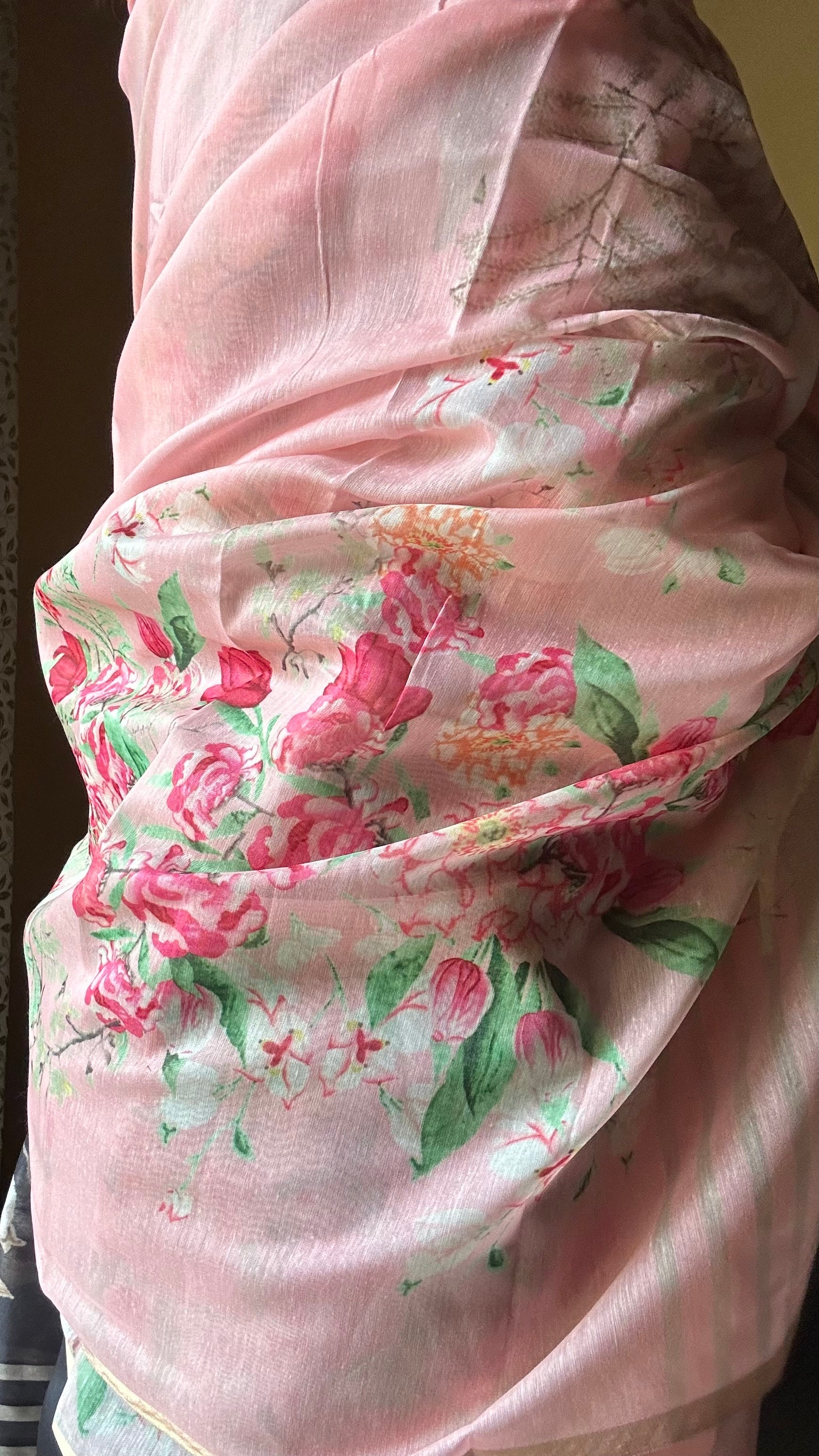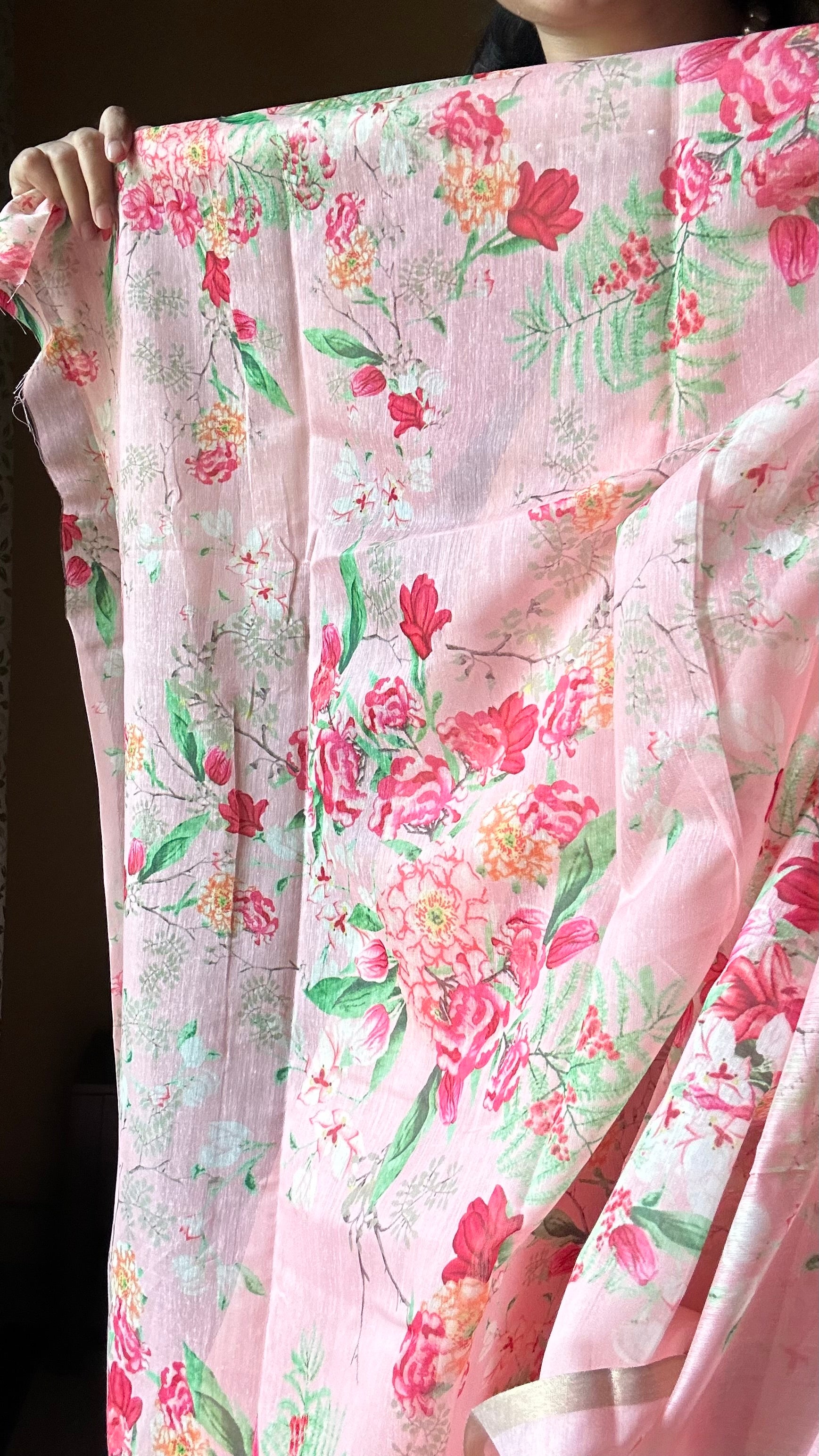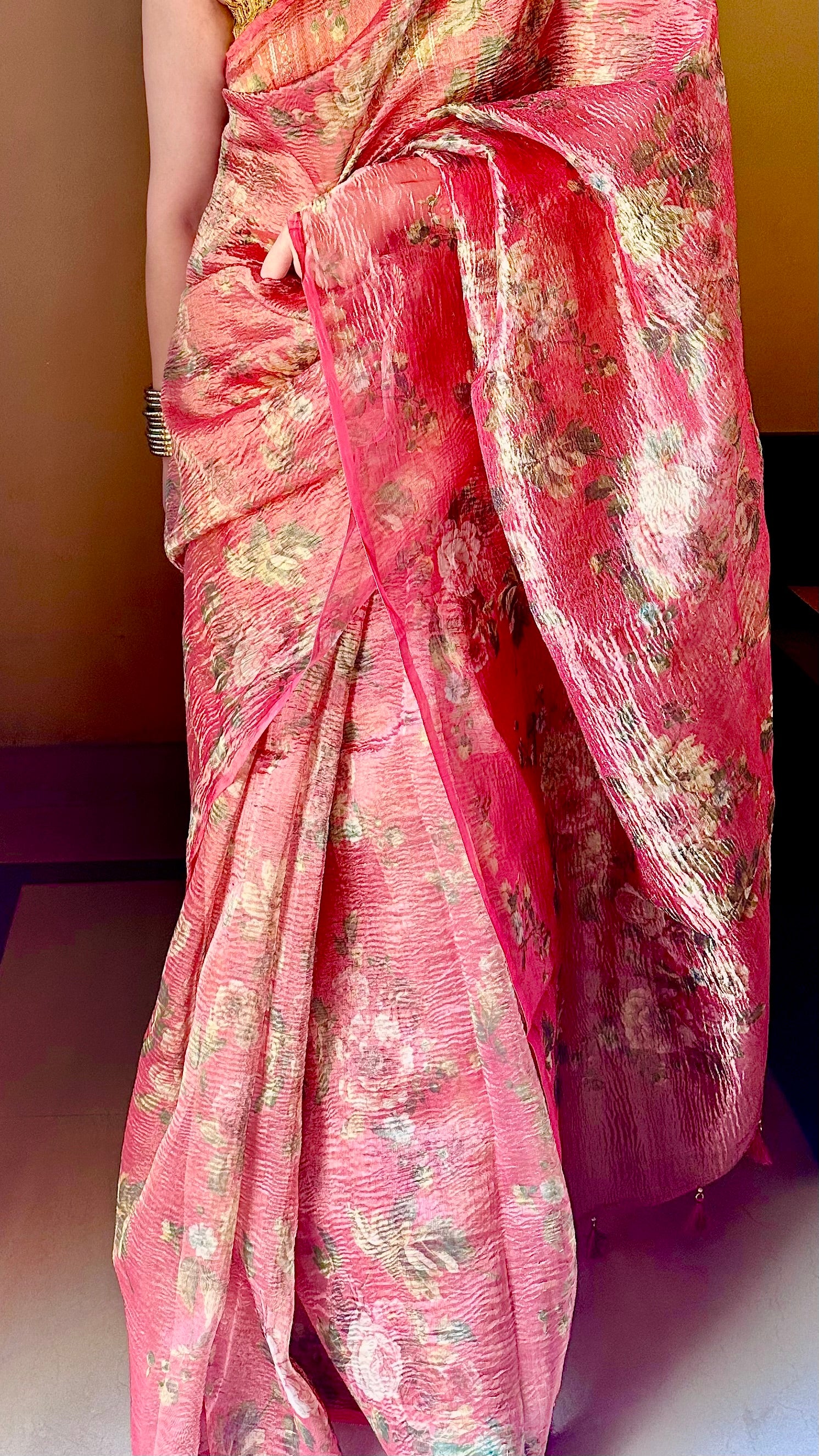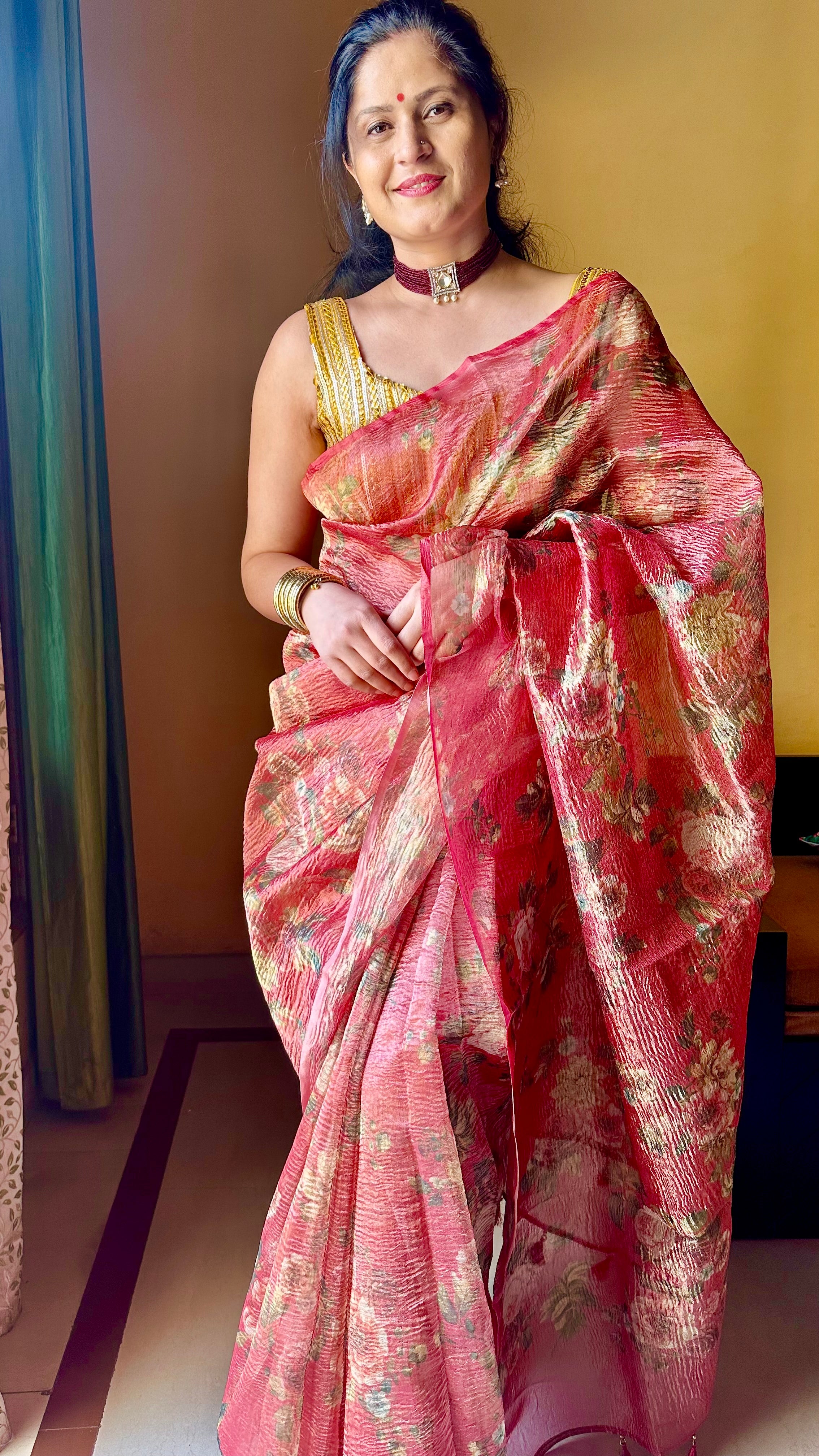 Crush Tissue Embroidered Sleeveless Blouse (Light Red)