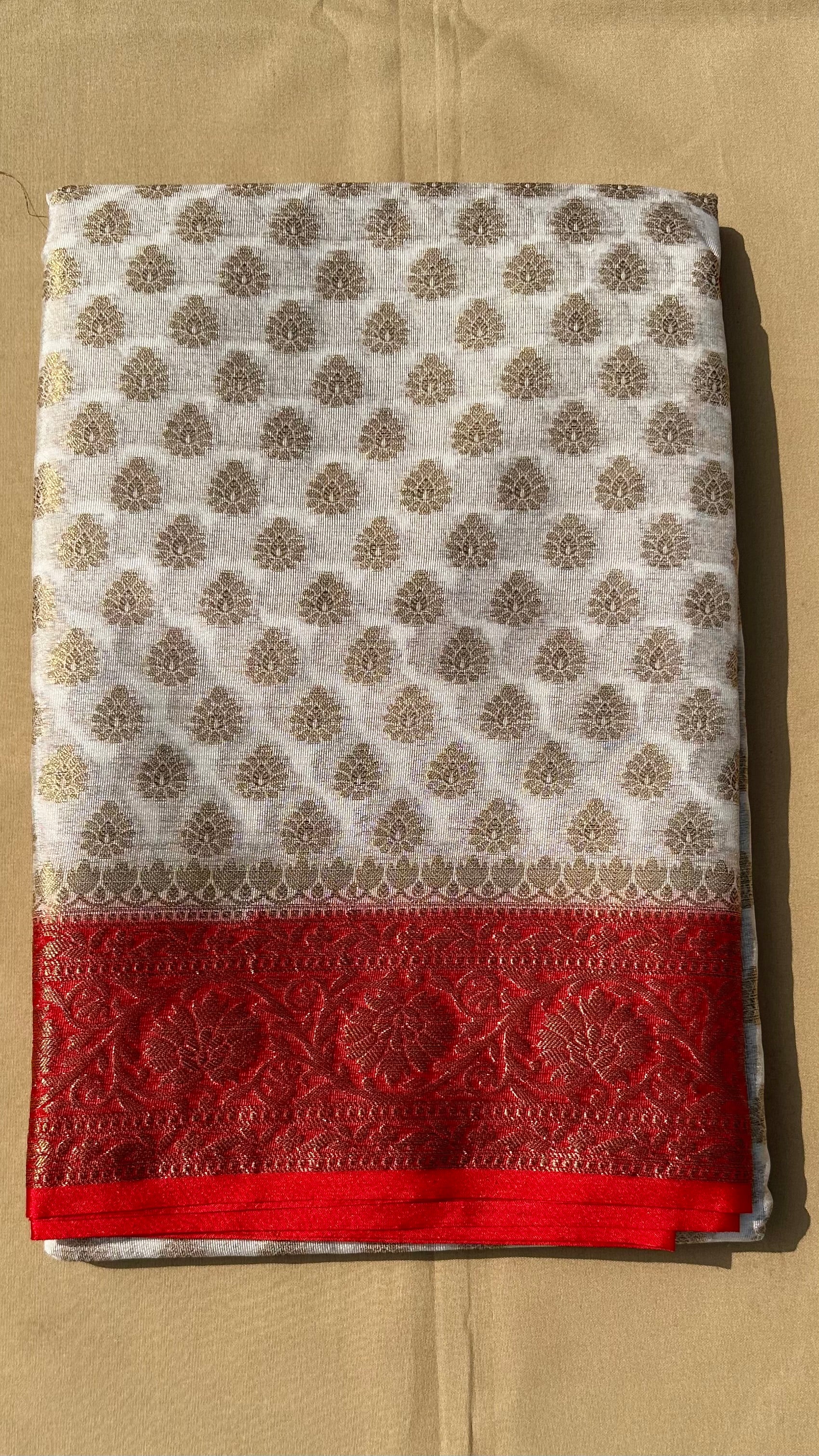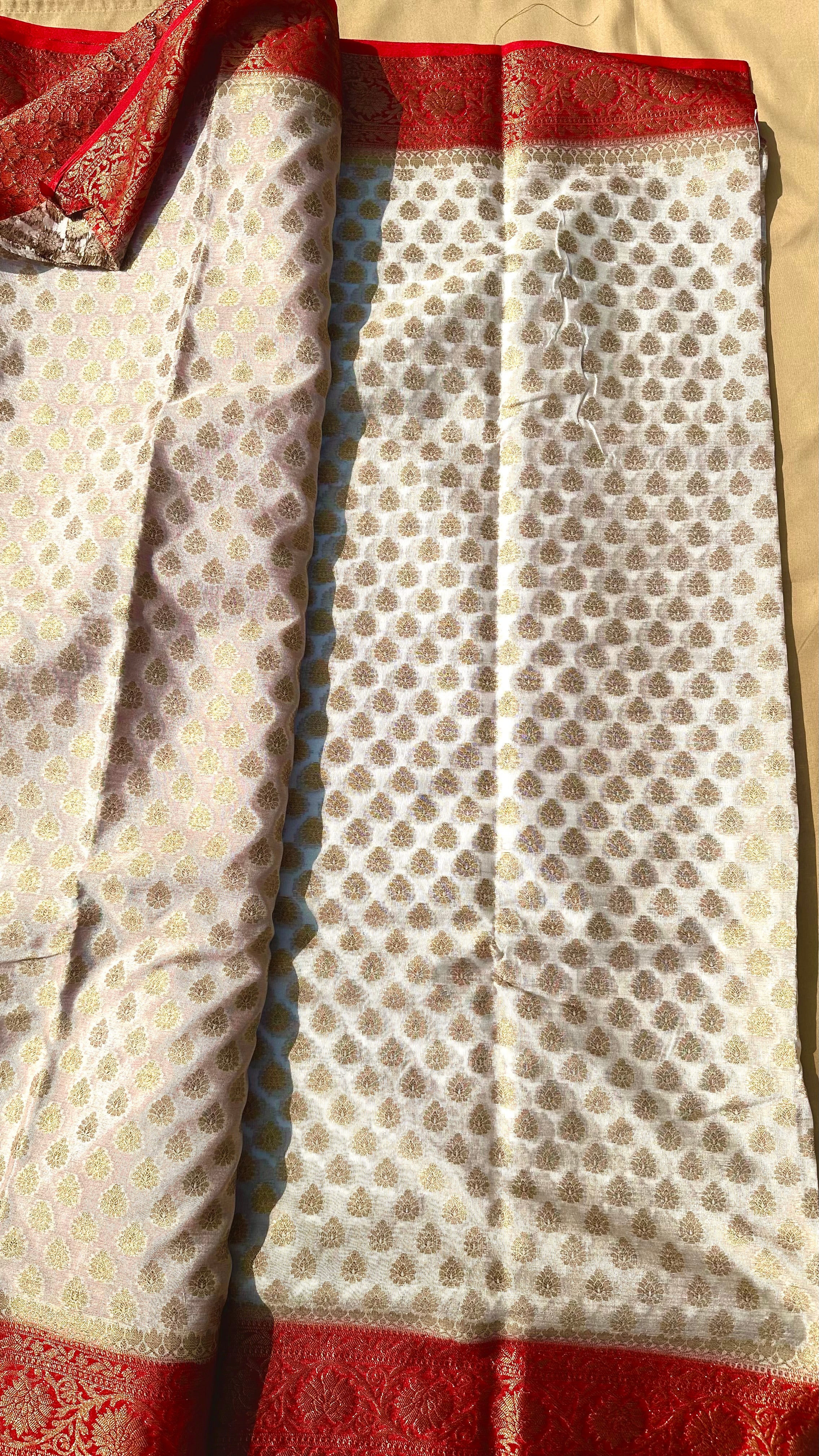 Handloom Cotton Sleeveless Lace Work checks Blouse (White)