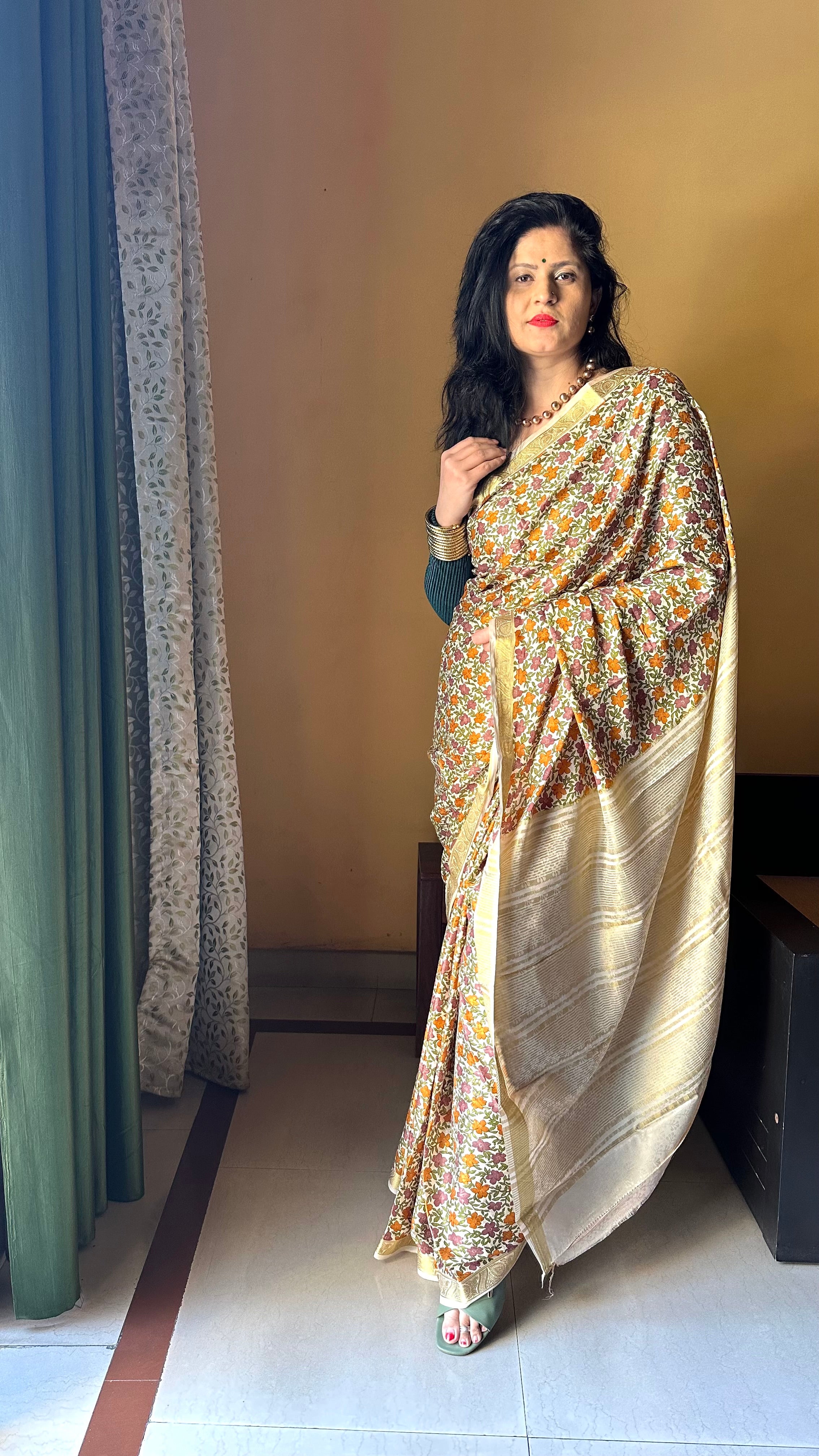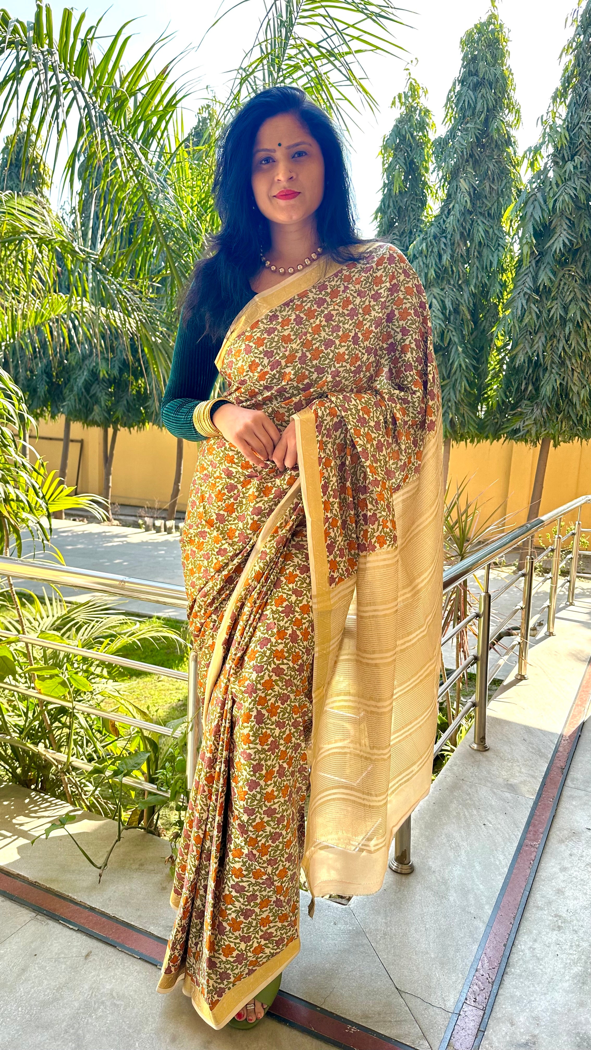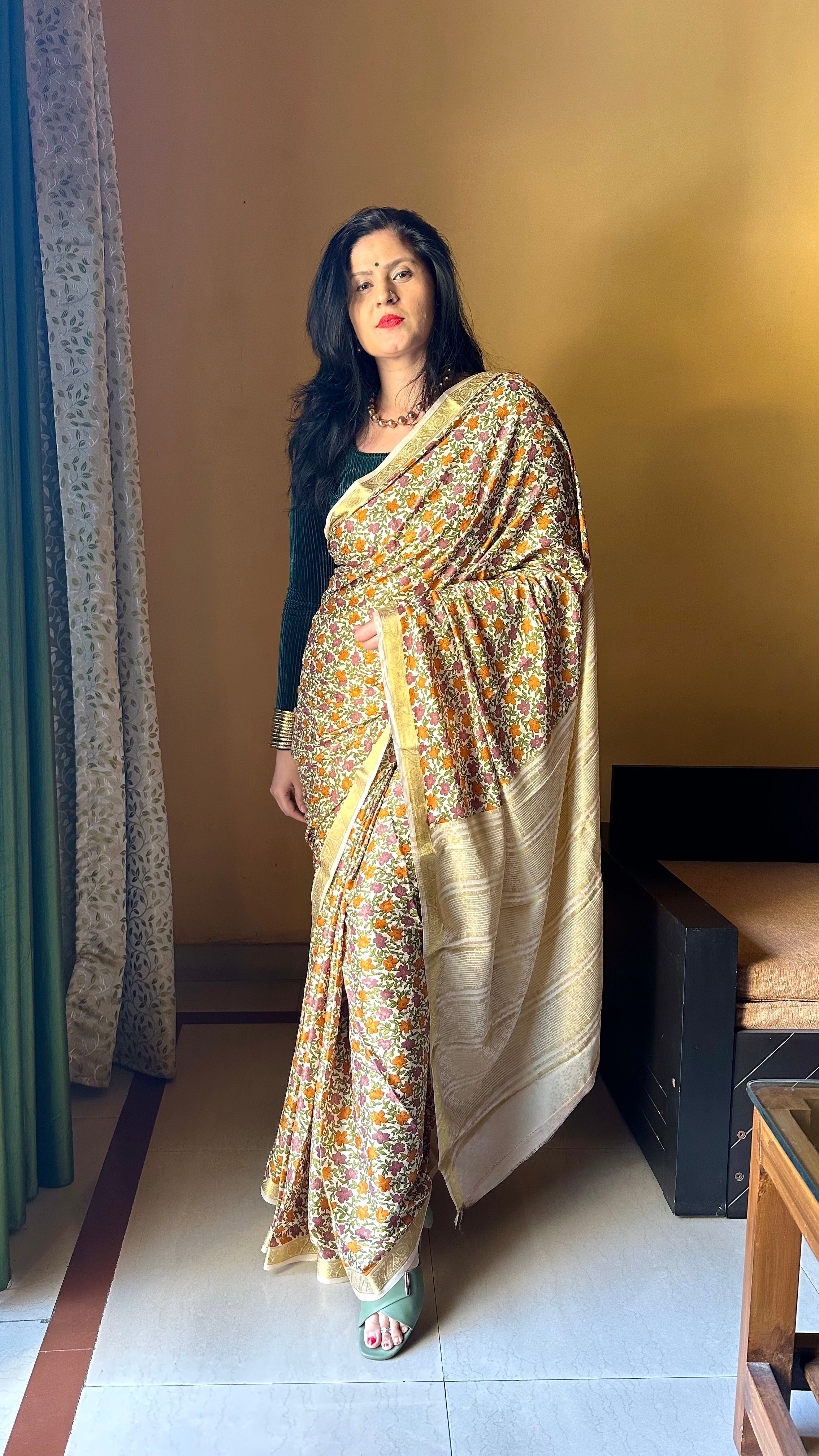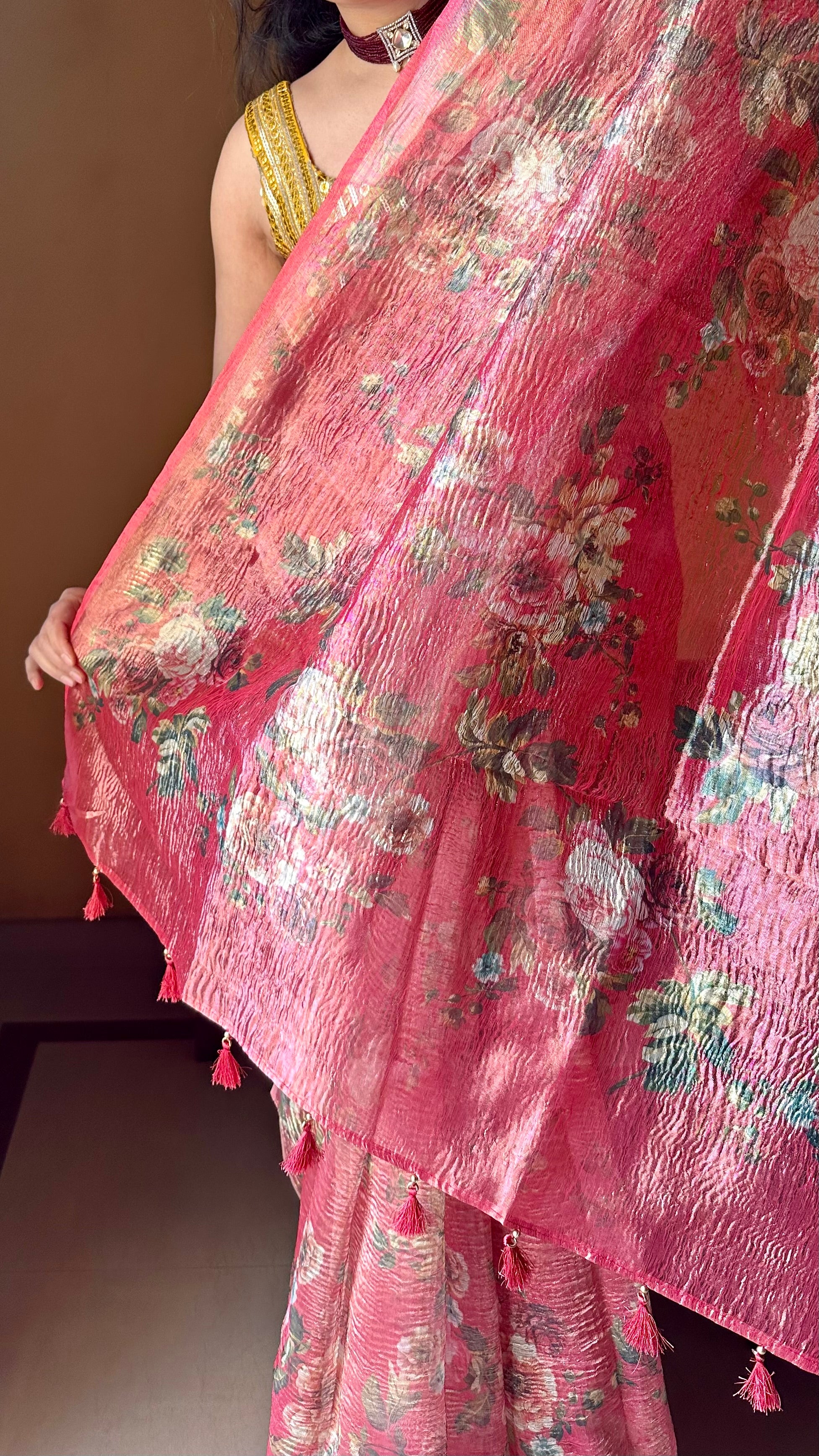 Crush Tissue Embroidered Sleeveless Blouse (Mustard)