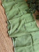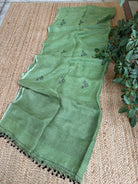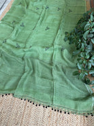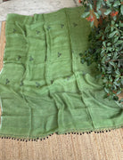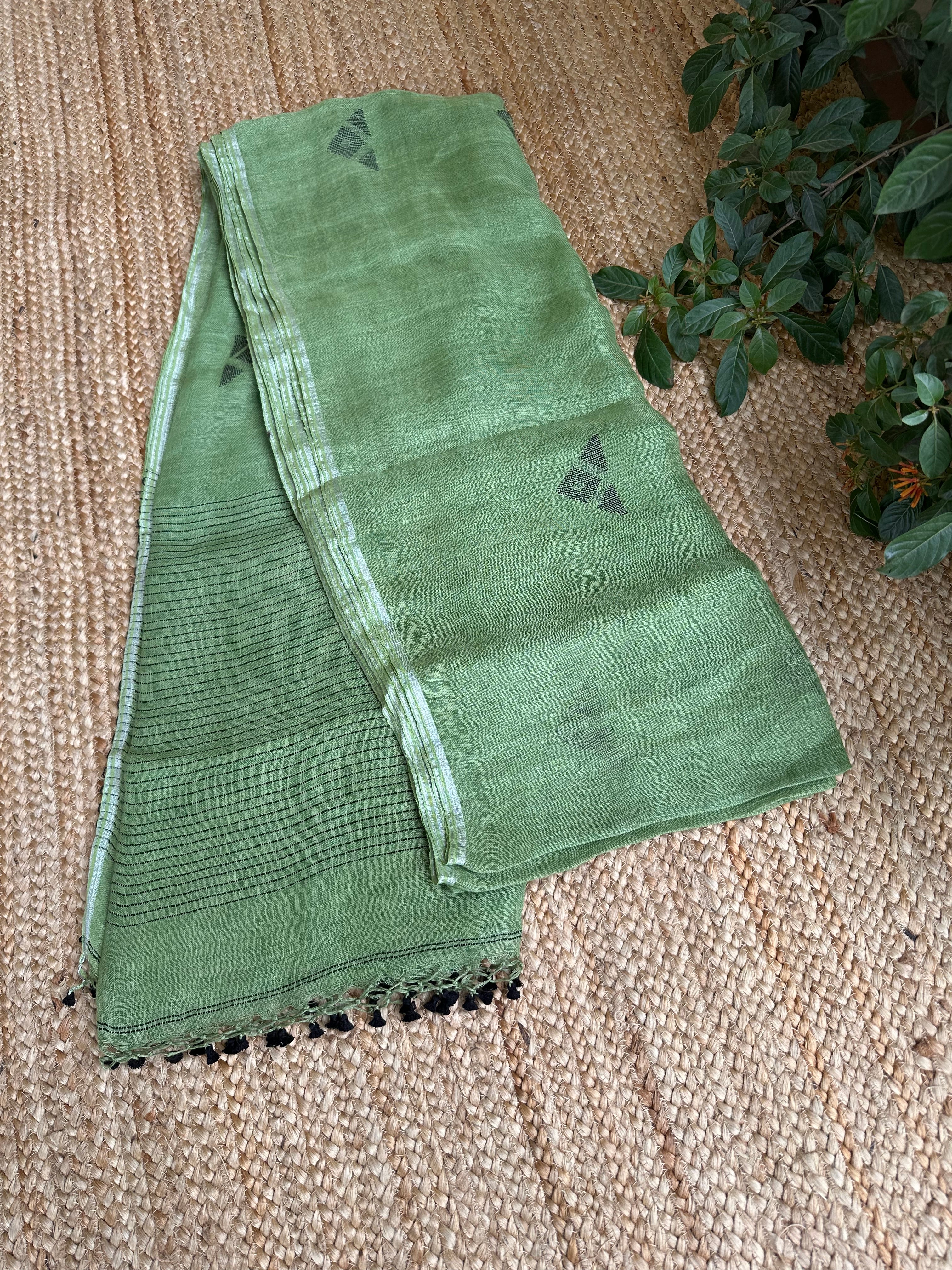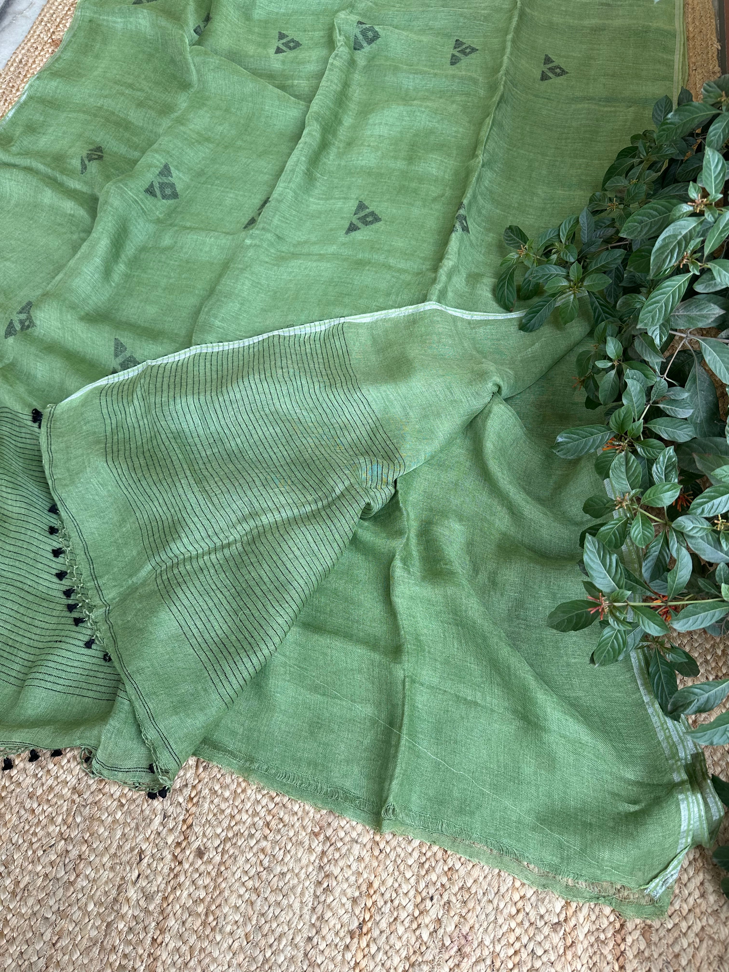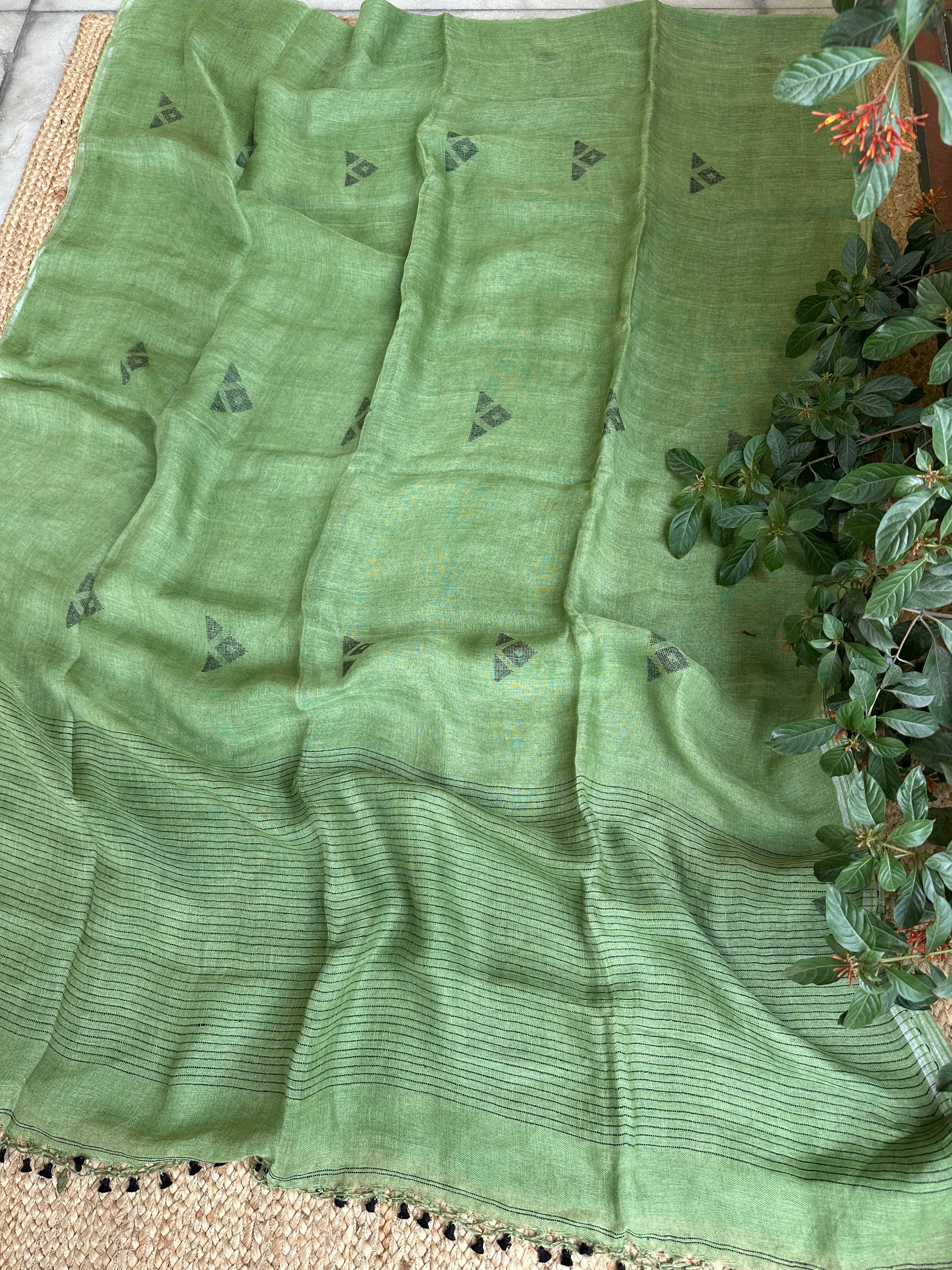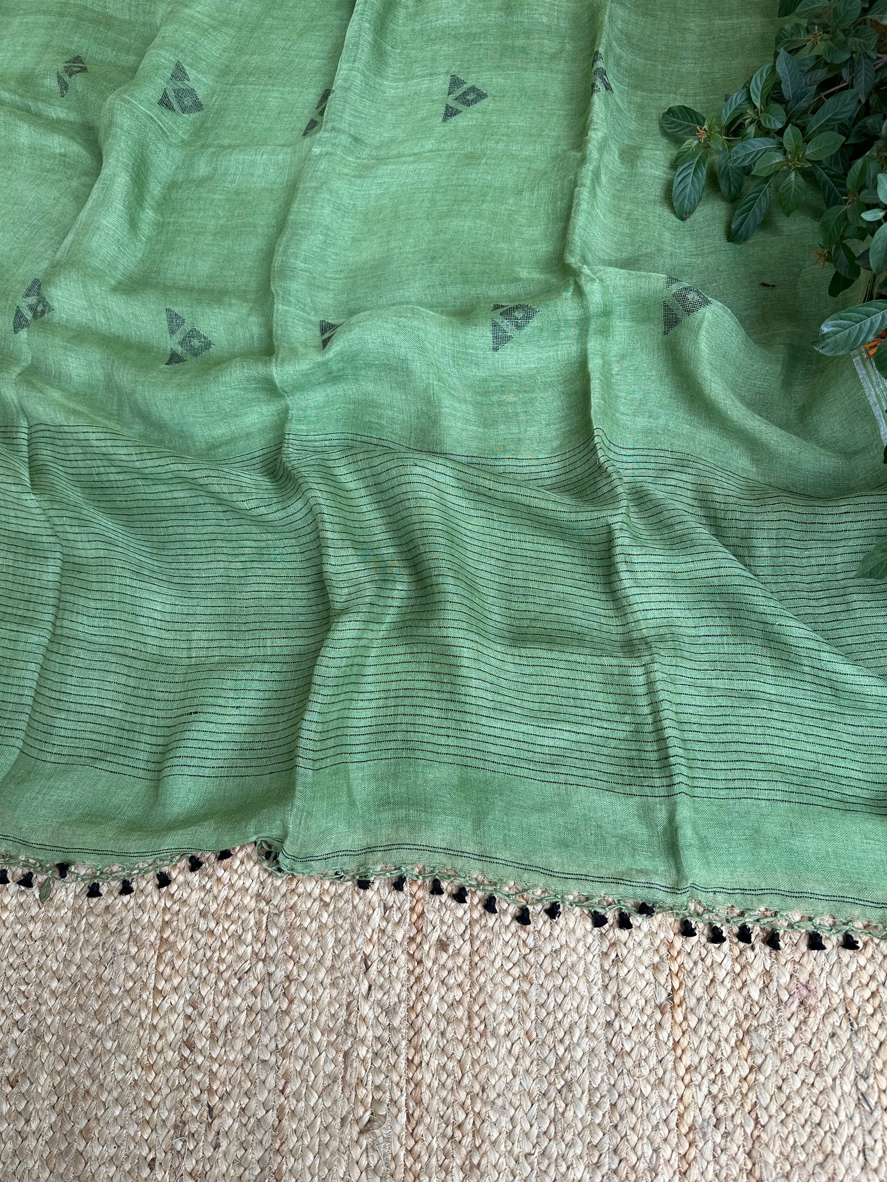 Pure Linen Handloom Green Jamdani Saree