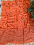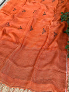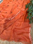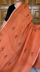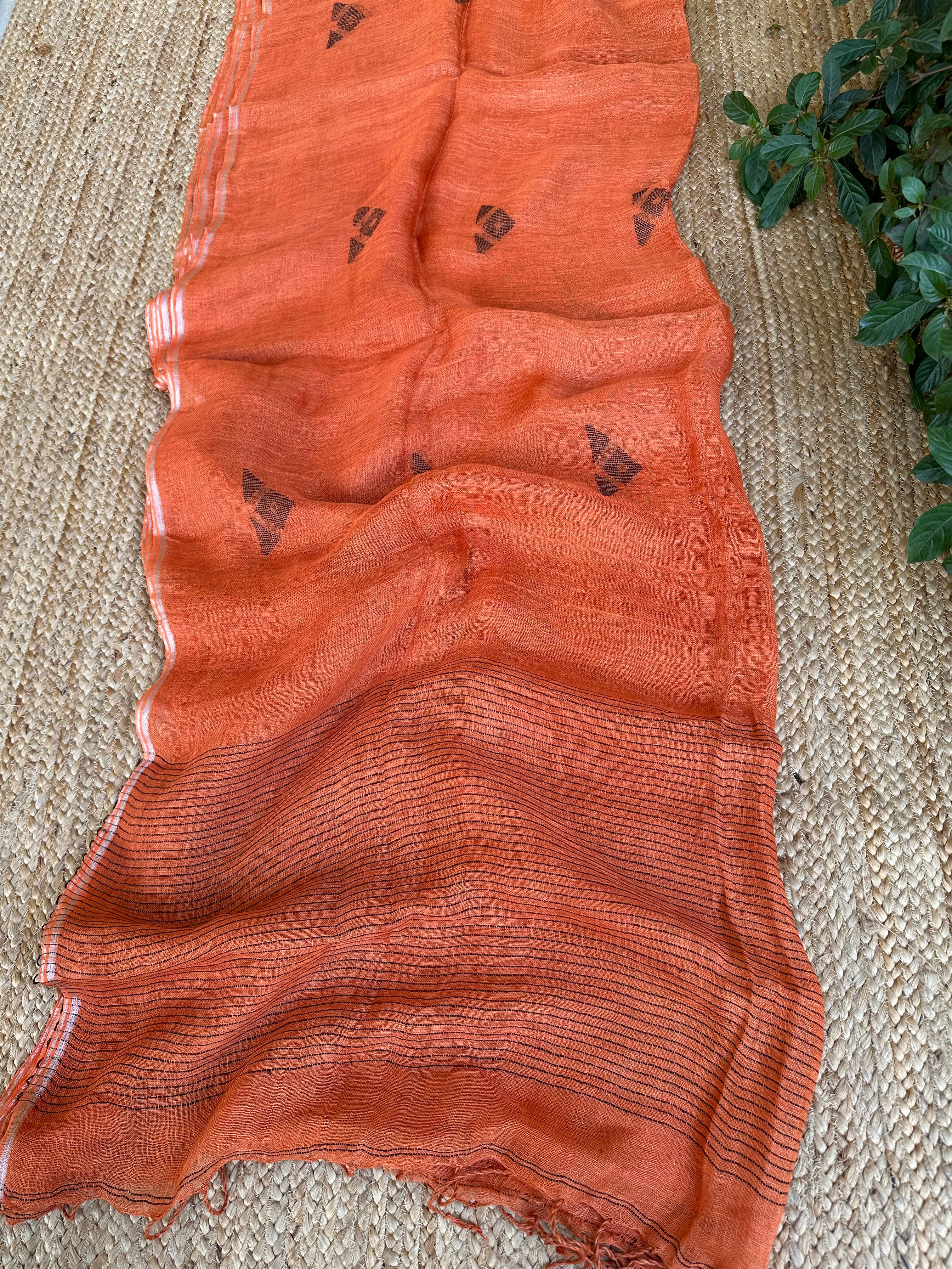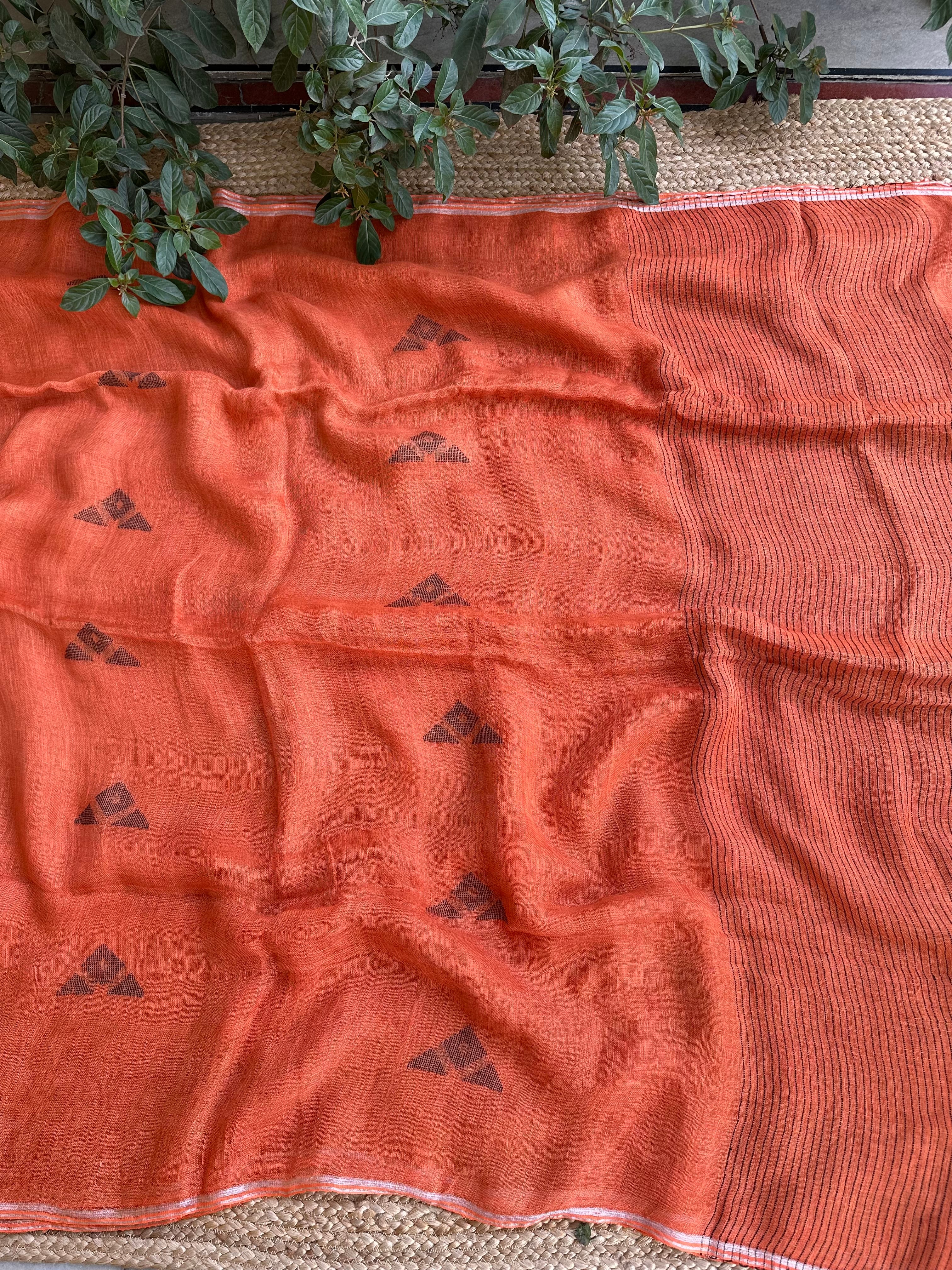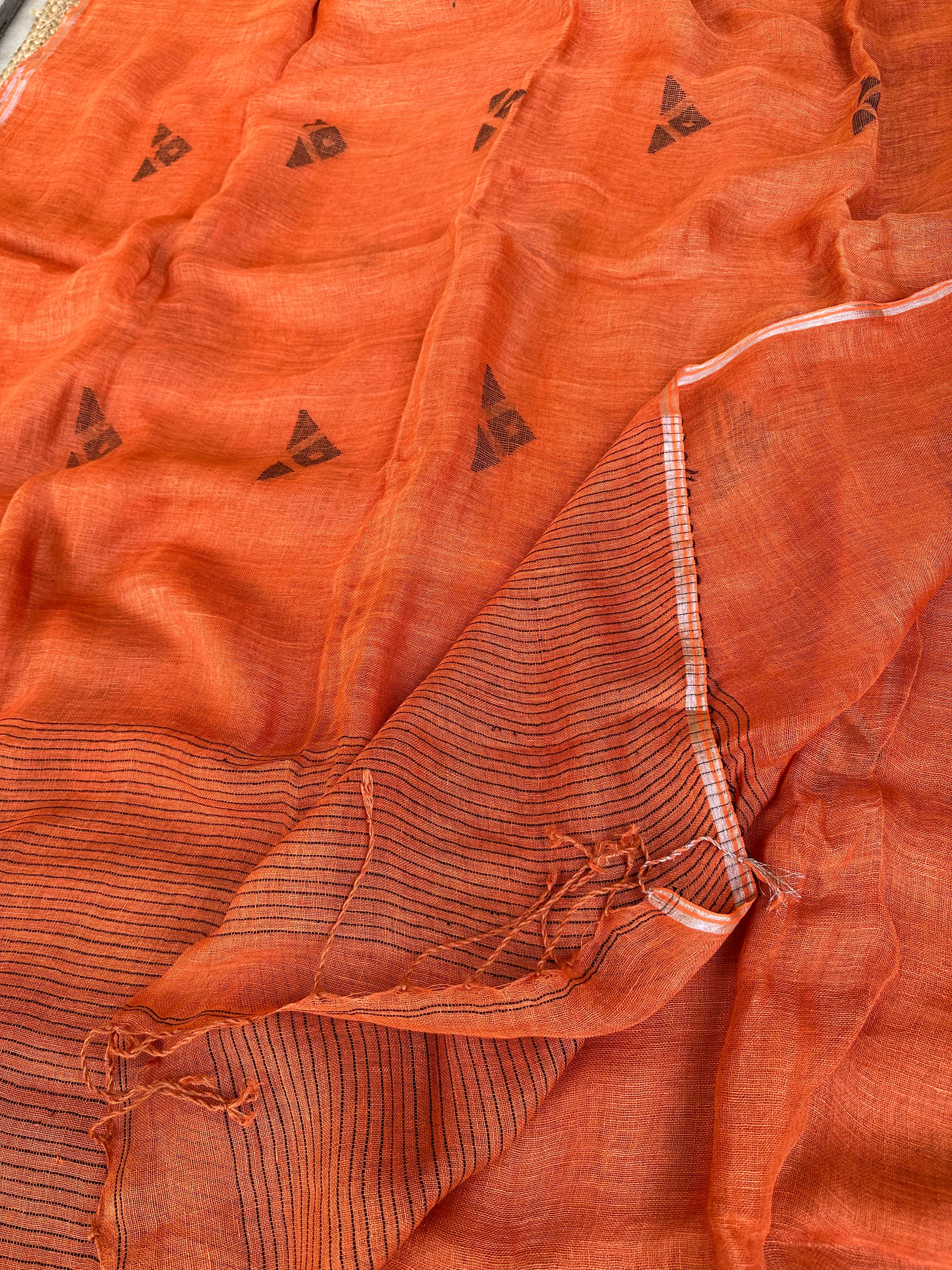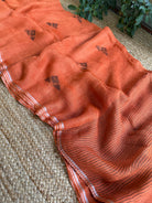 Pure Linen Handloom Rust Jamdani Saree
