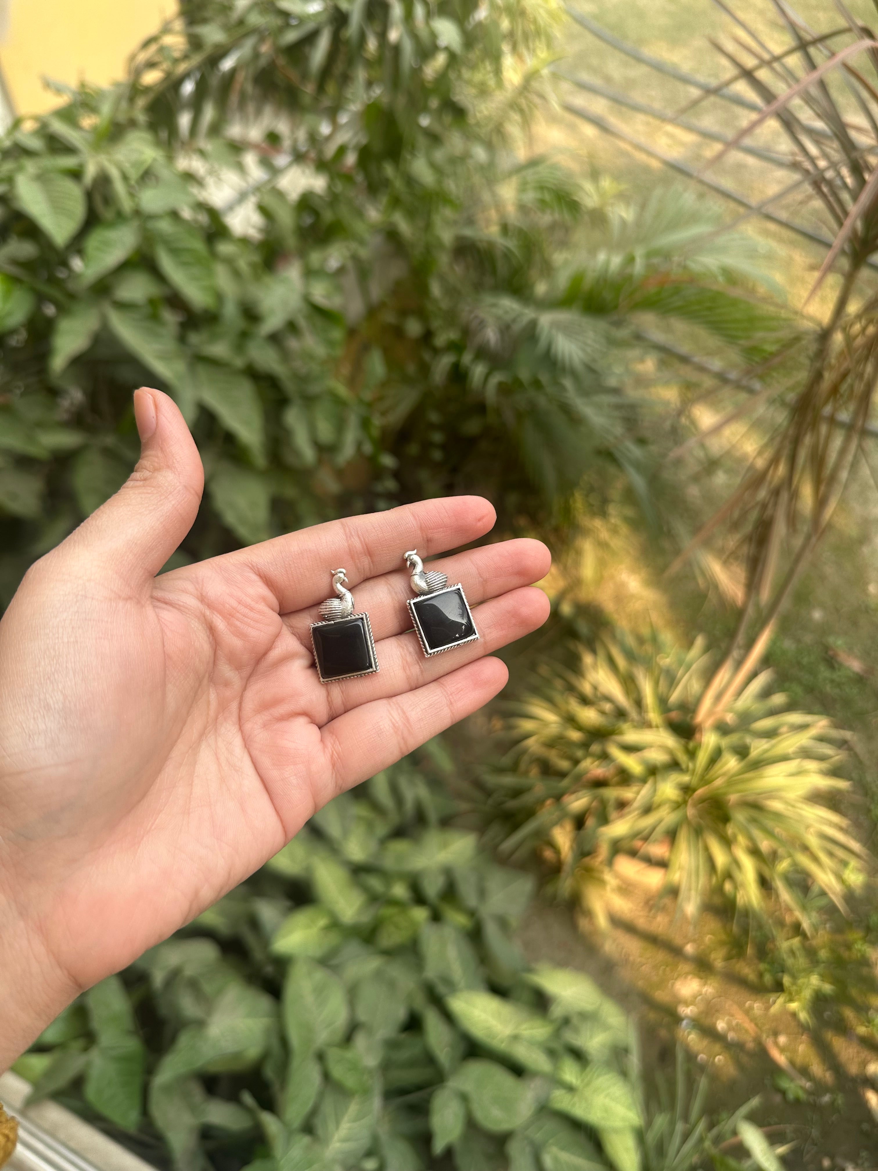 Black Silver Square Studs
