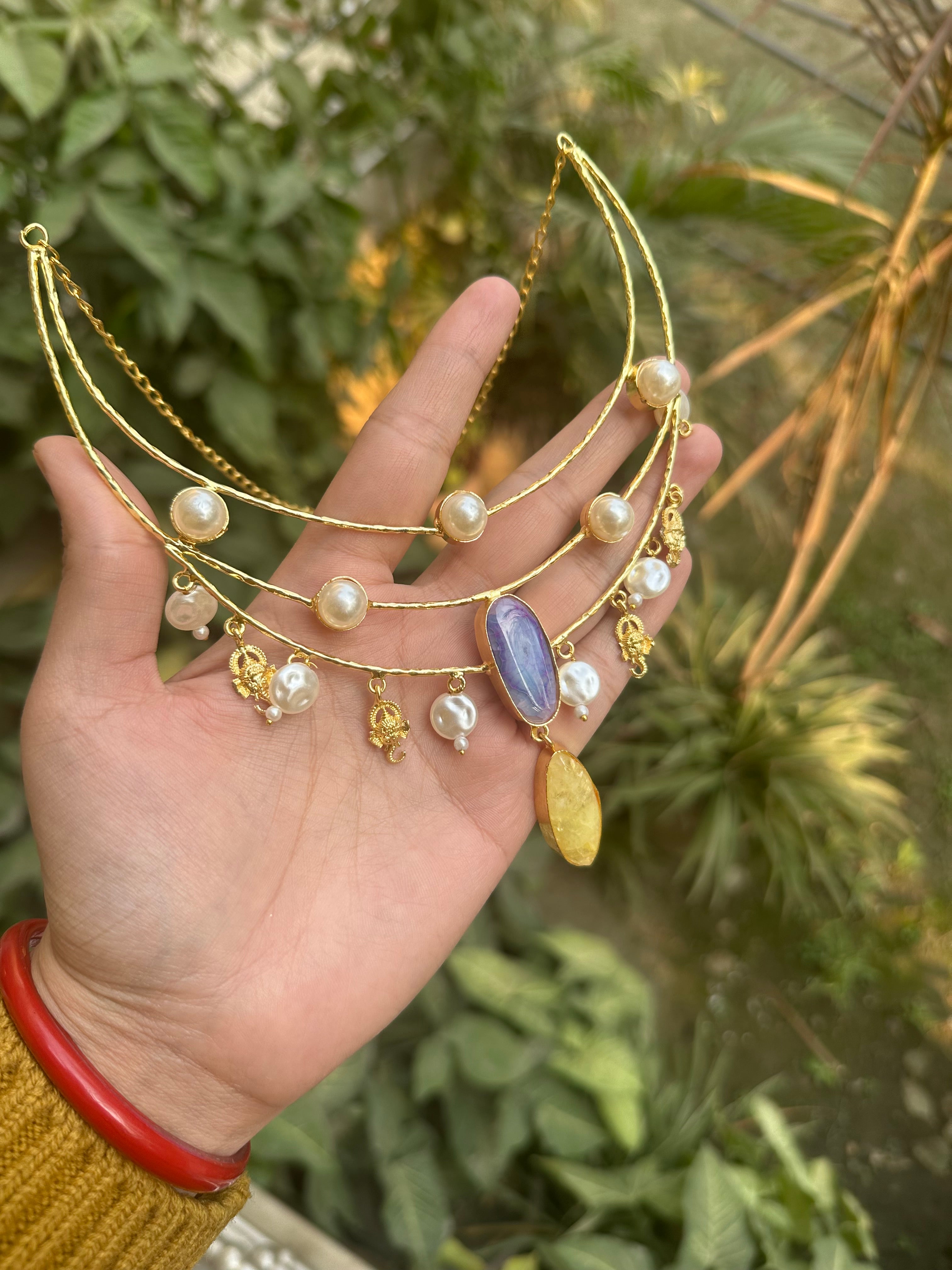 Brass Pearl Stones Multilayer Hasli