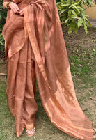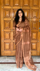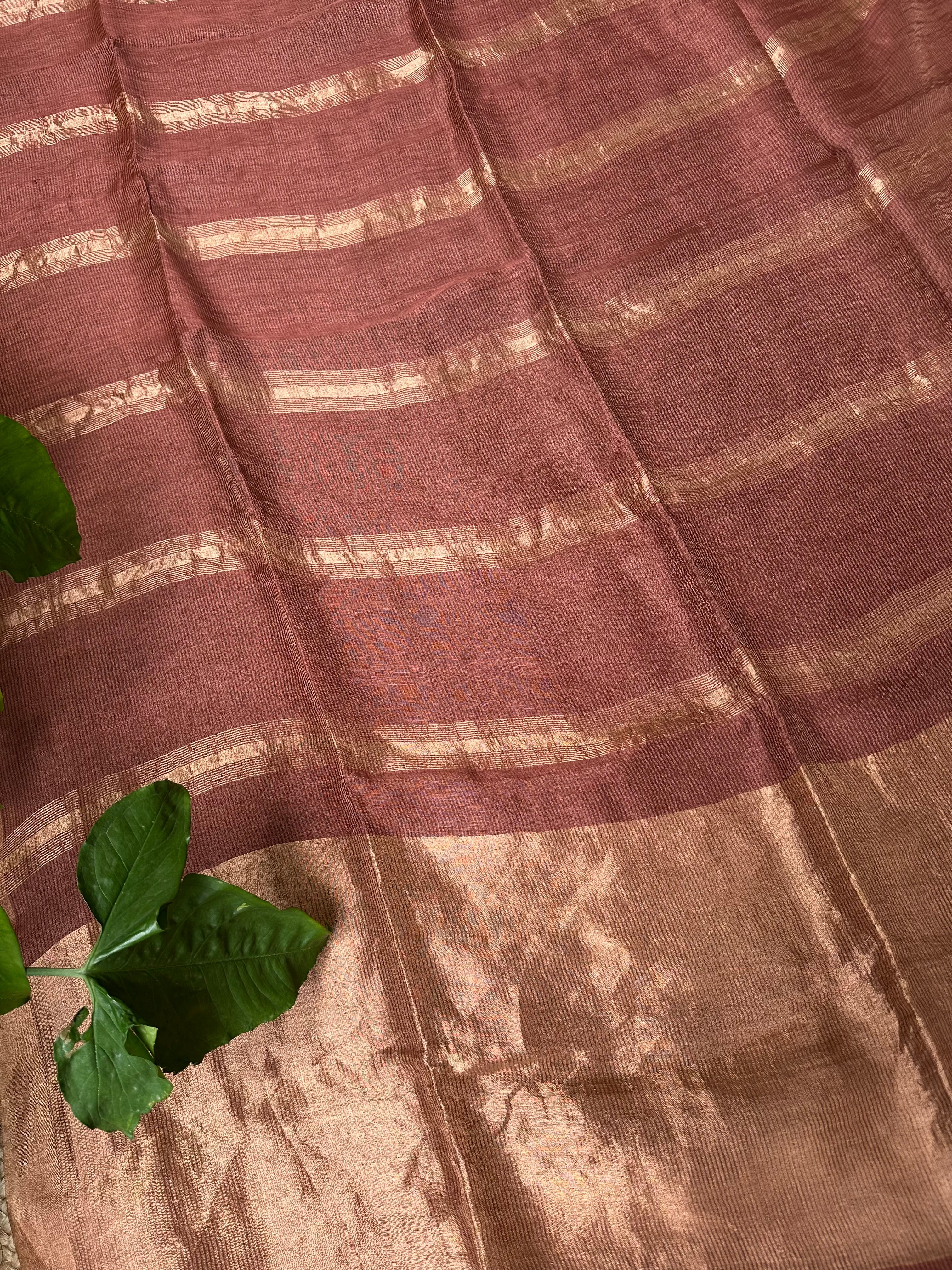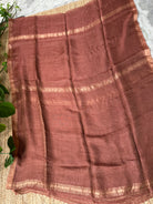 Brown Zari Linen Handloom Saree