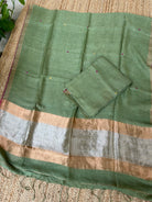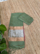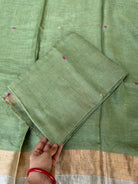 Green Linen Zari Handloom Kurta Dupatta Set