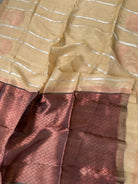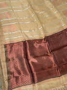 Light Cheeku Shade Linen Tissue Silk Handloom Striped Saree Copper Pallu