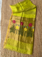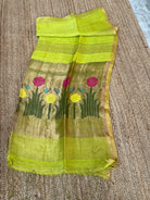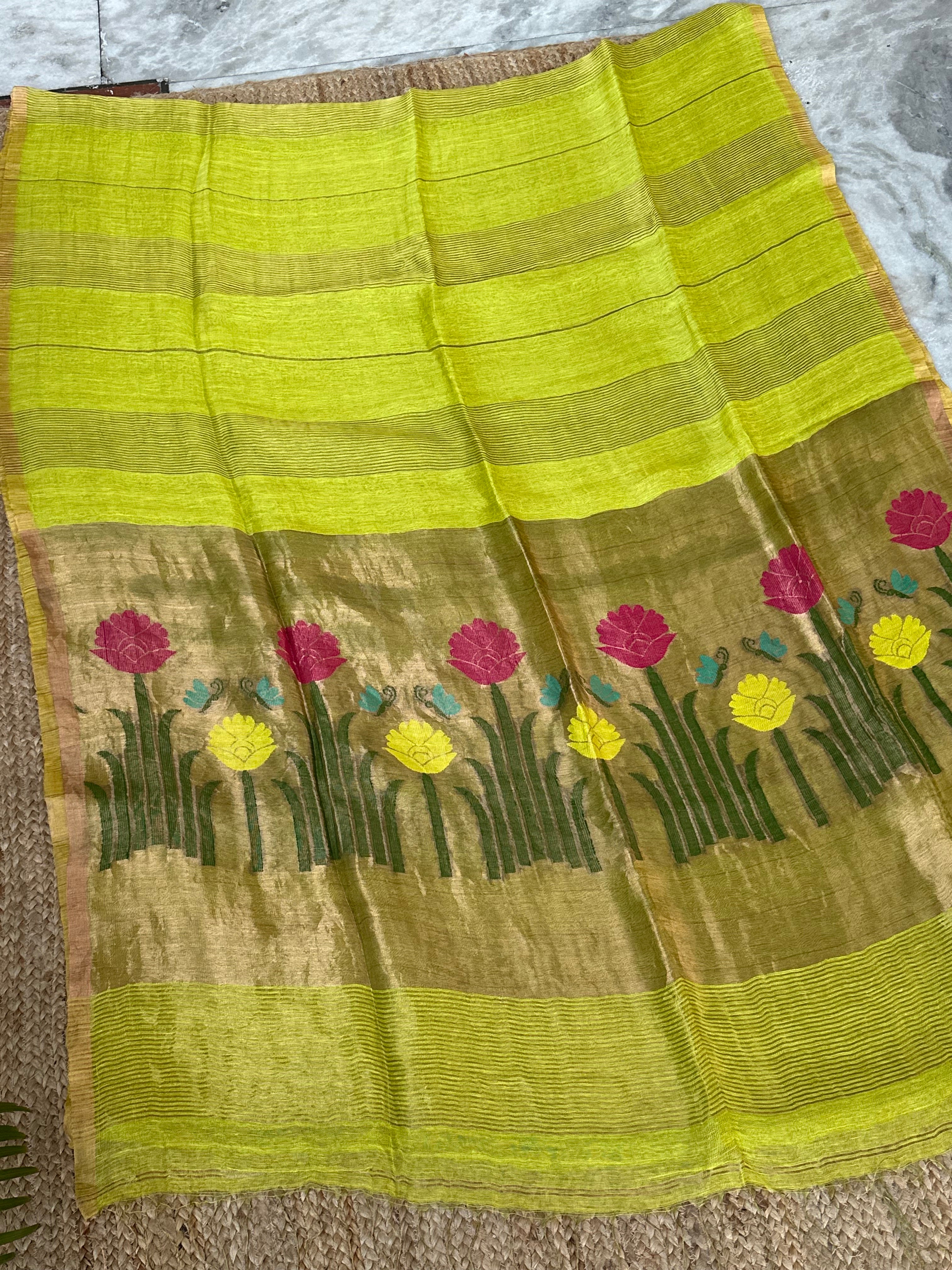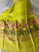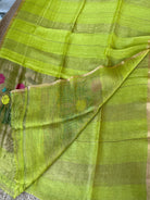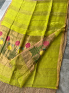 Linen Tissue Handloom Striped Paithani Jamdani Pallu Saree- Light Green