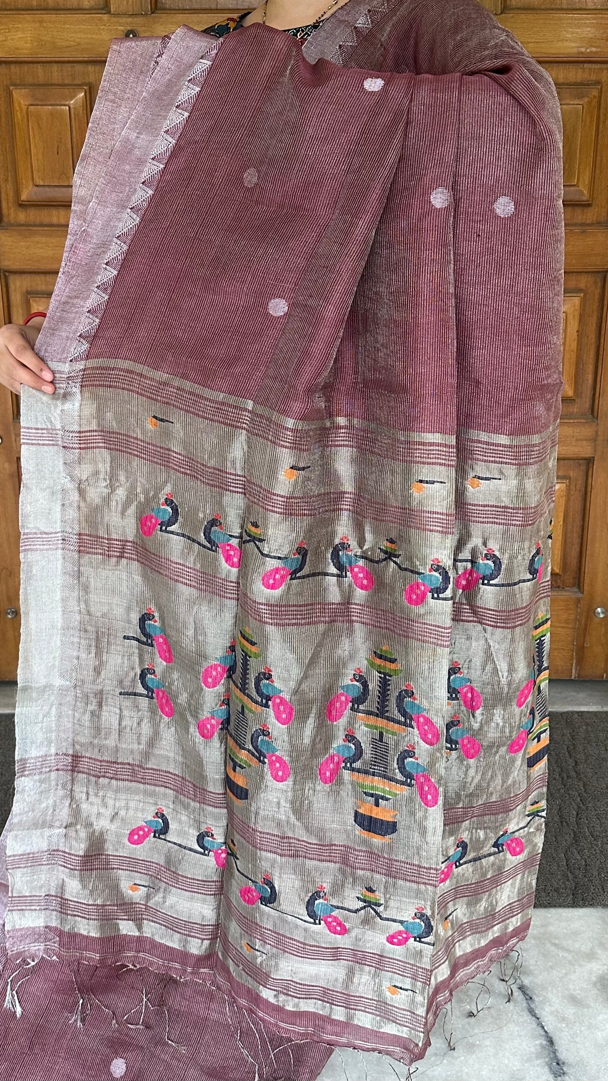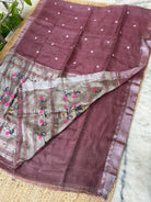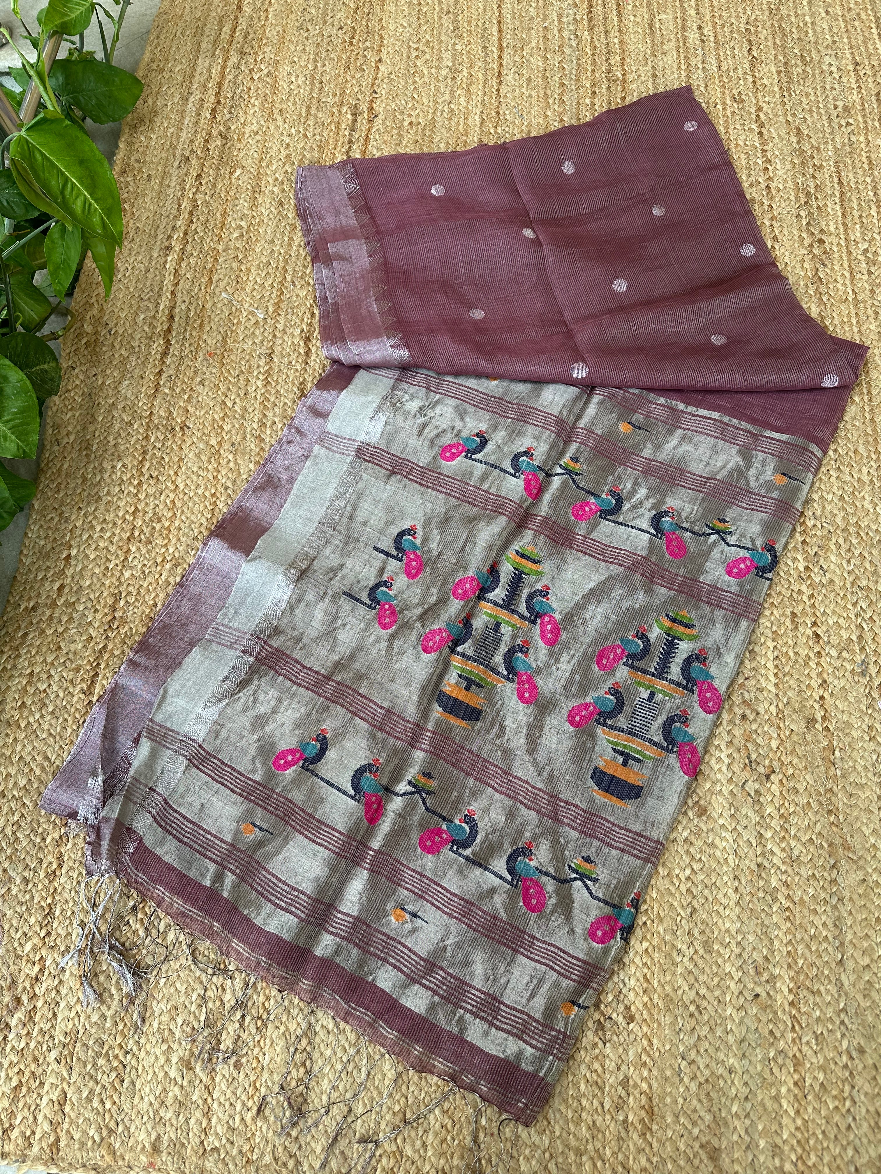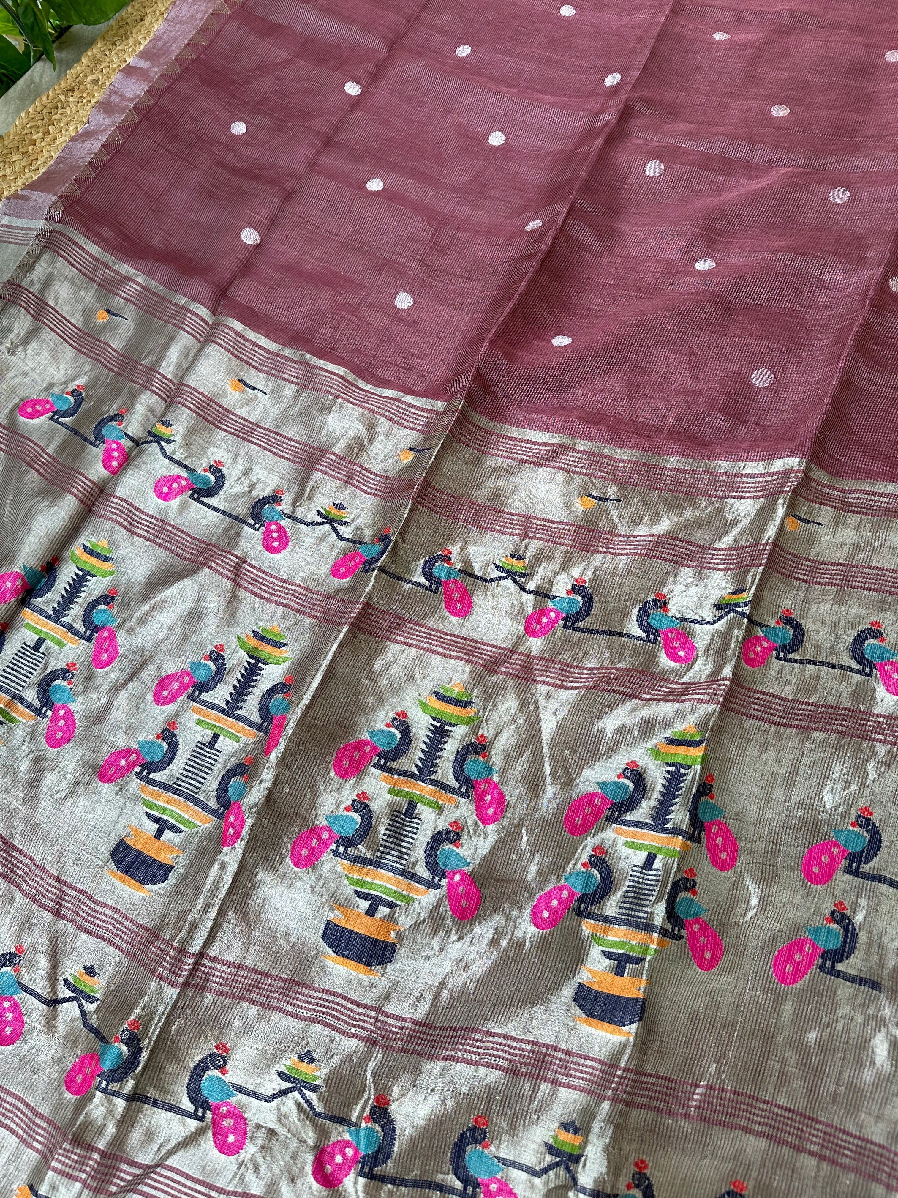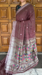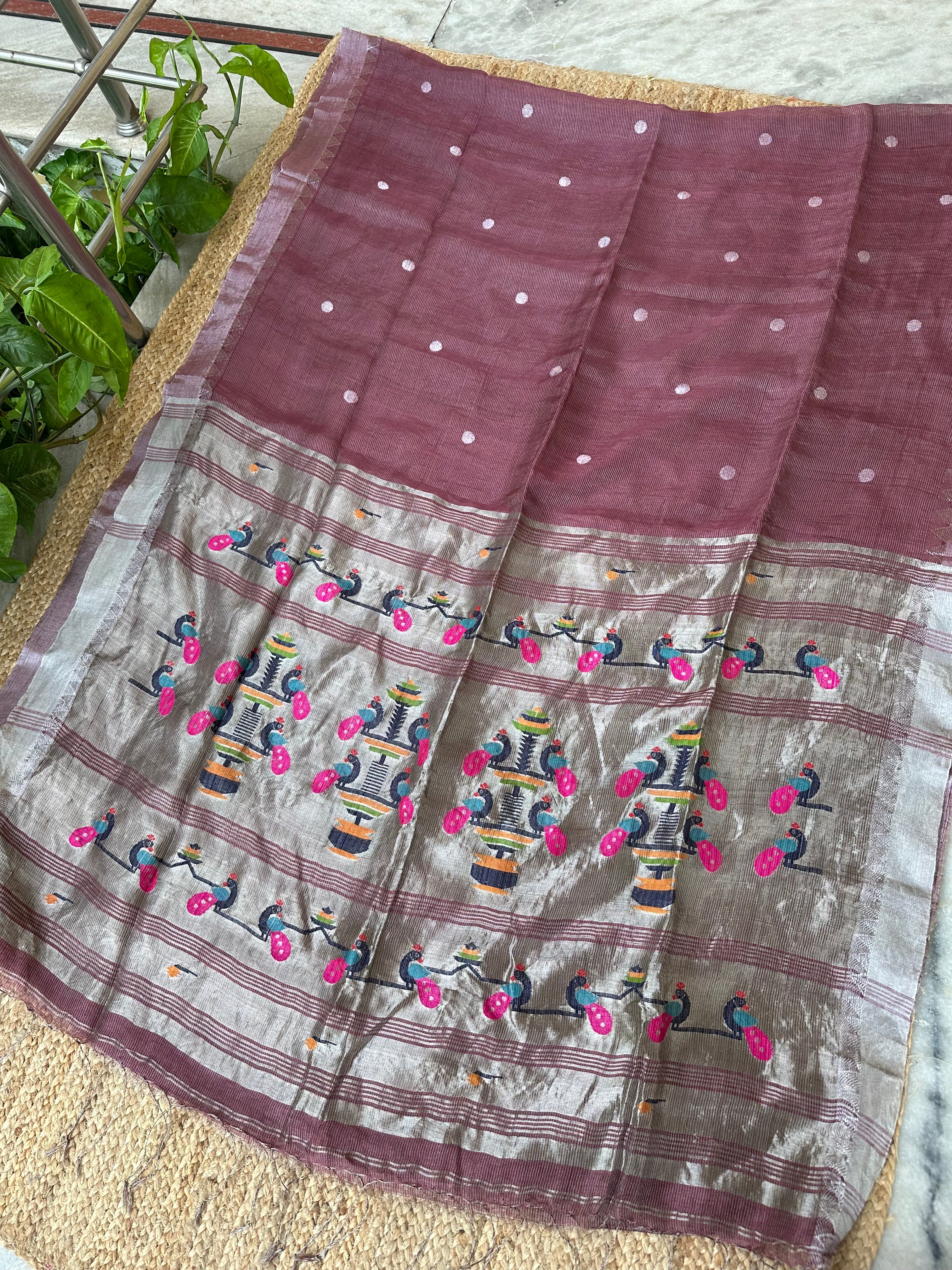 Mauve Linen Tissue Handloom Paithani Jamdani Pallu Saree