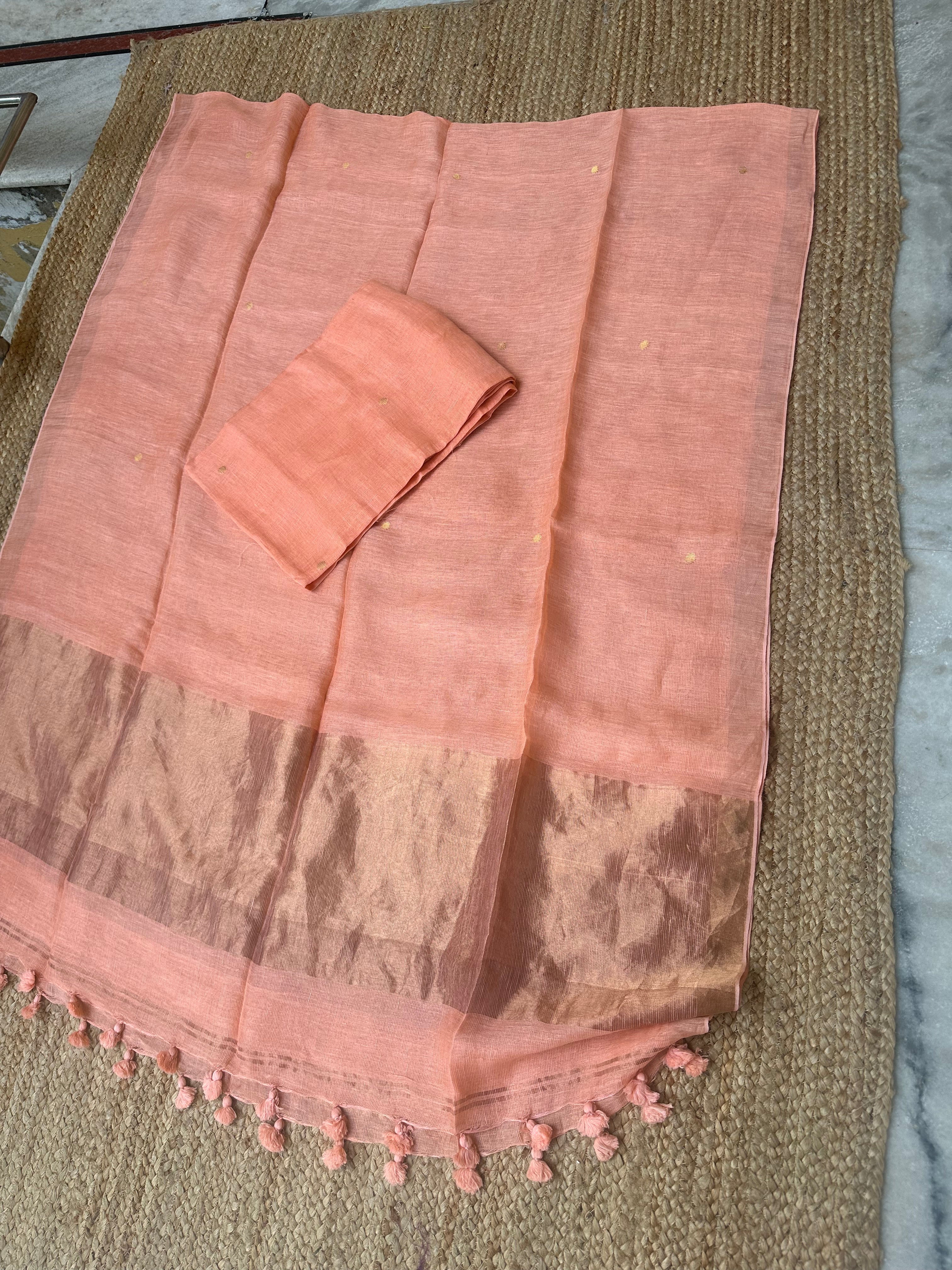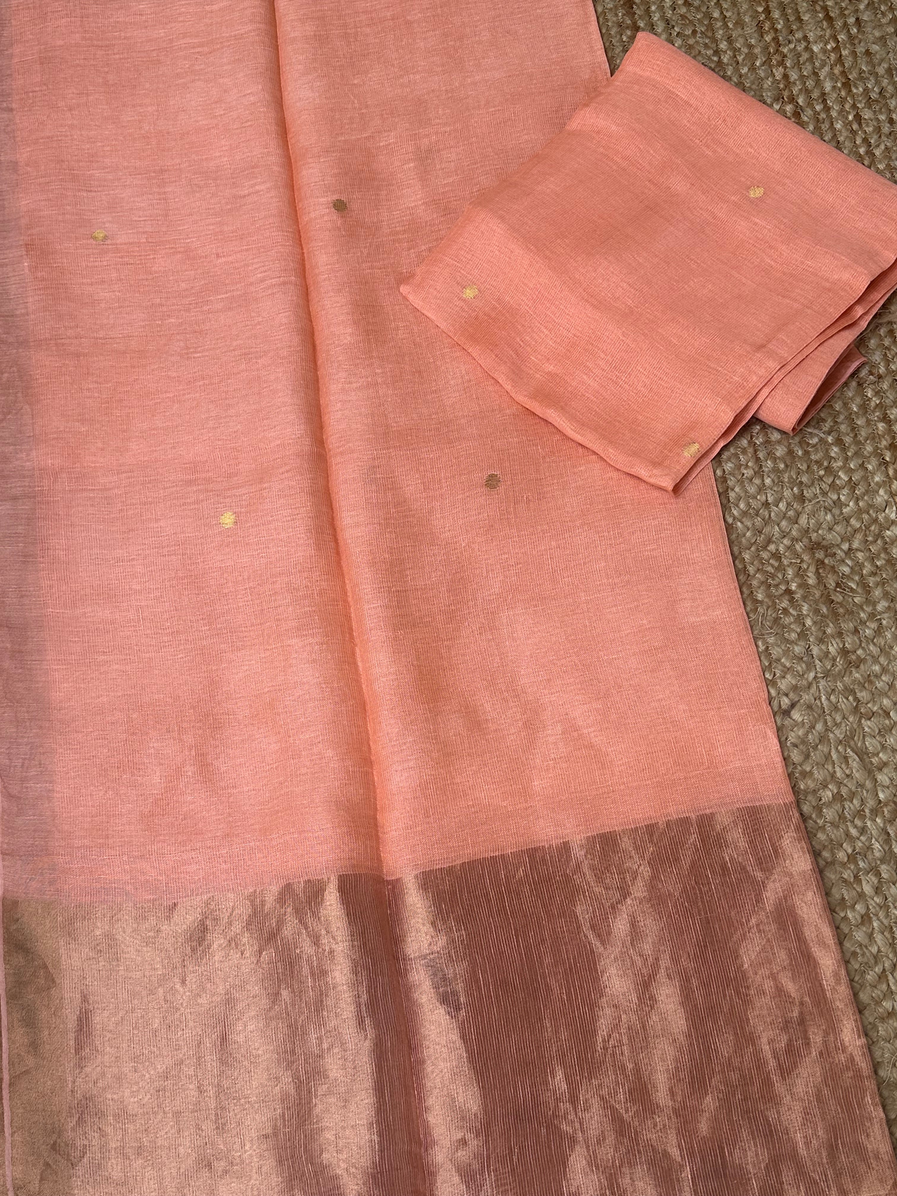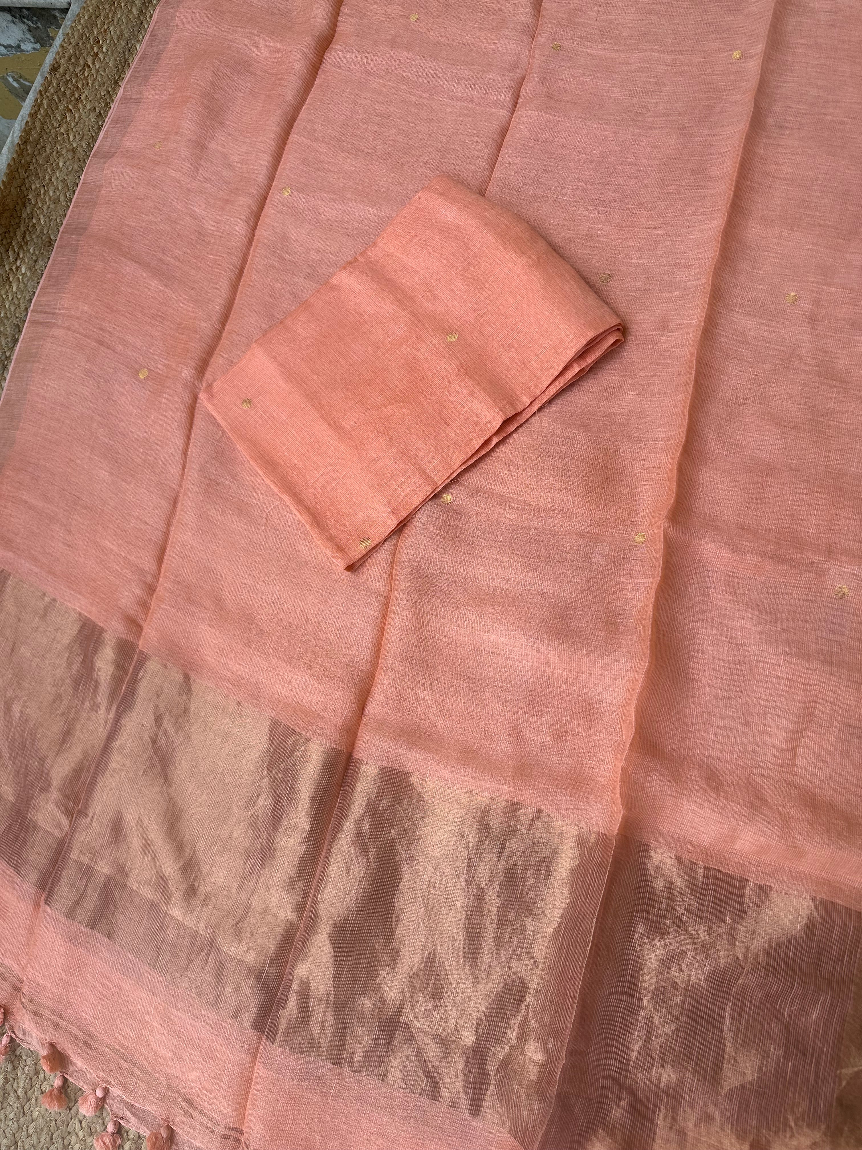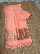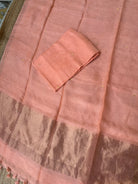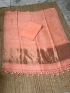 Pastel Peach Linen Zari Handloom Kurta Dupatta Set