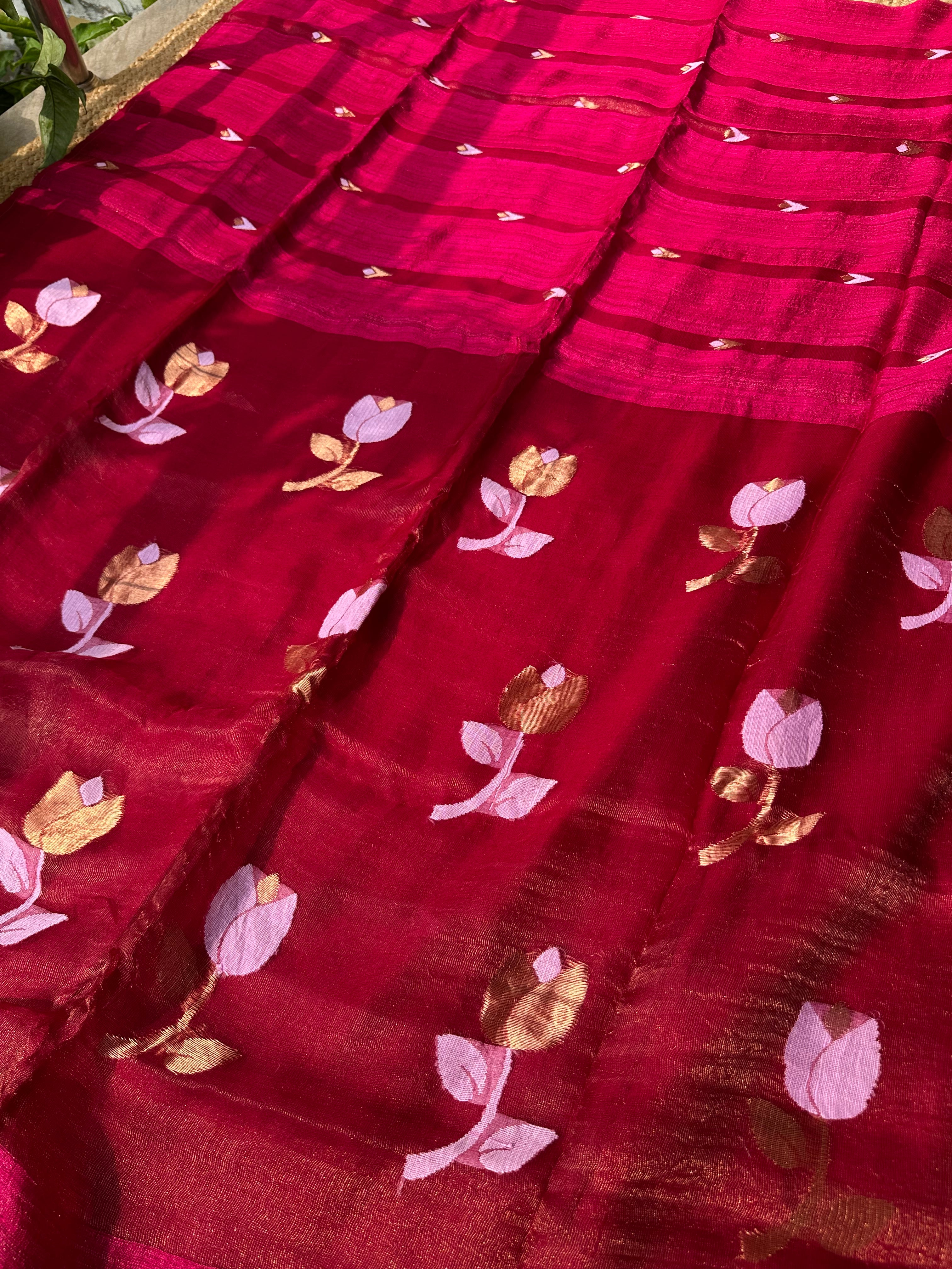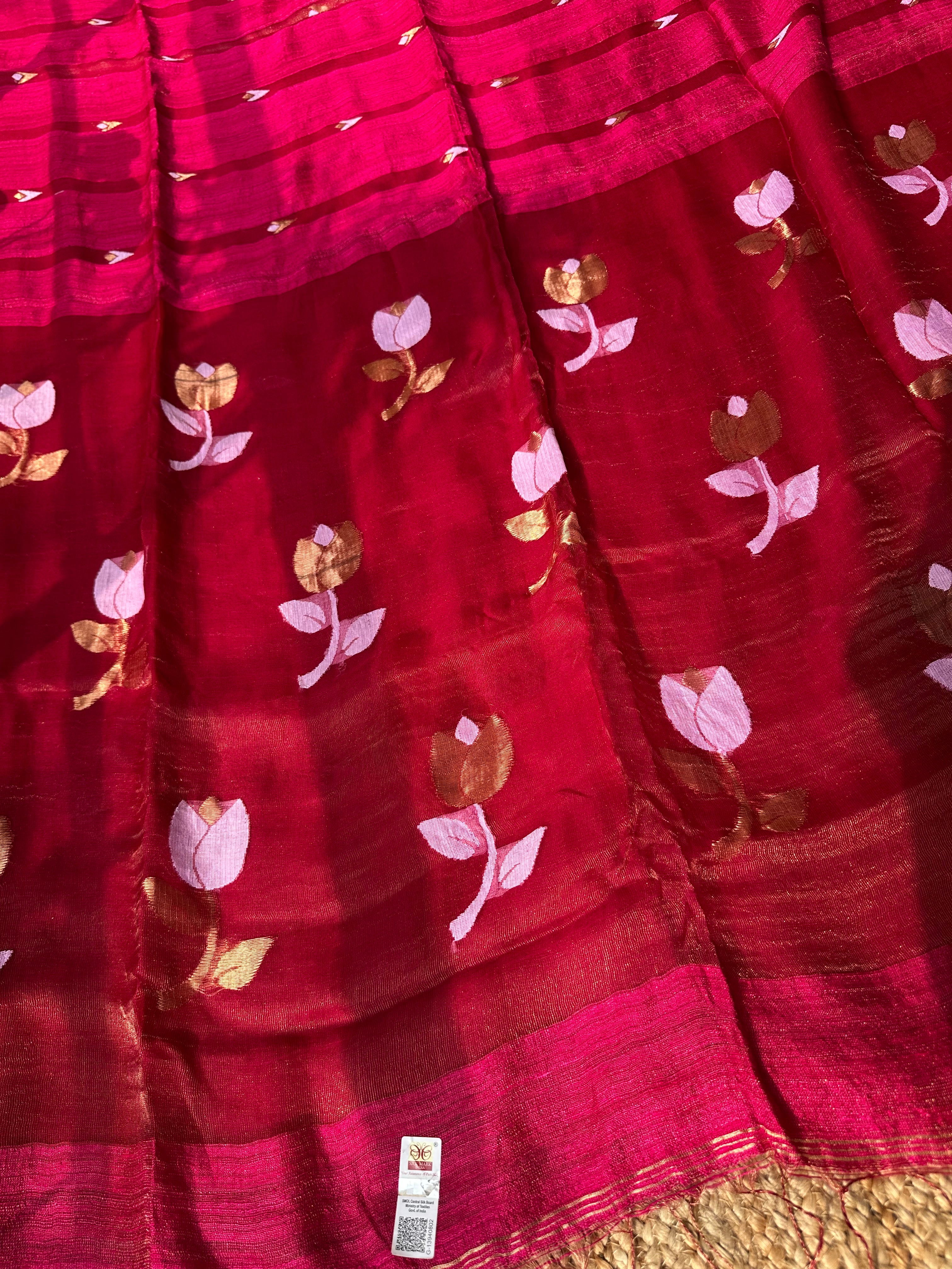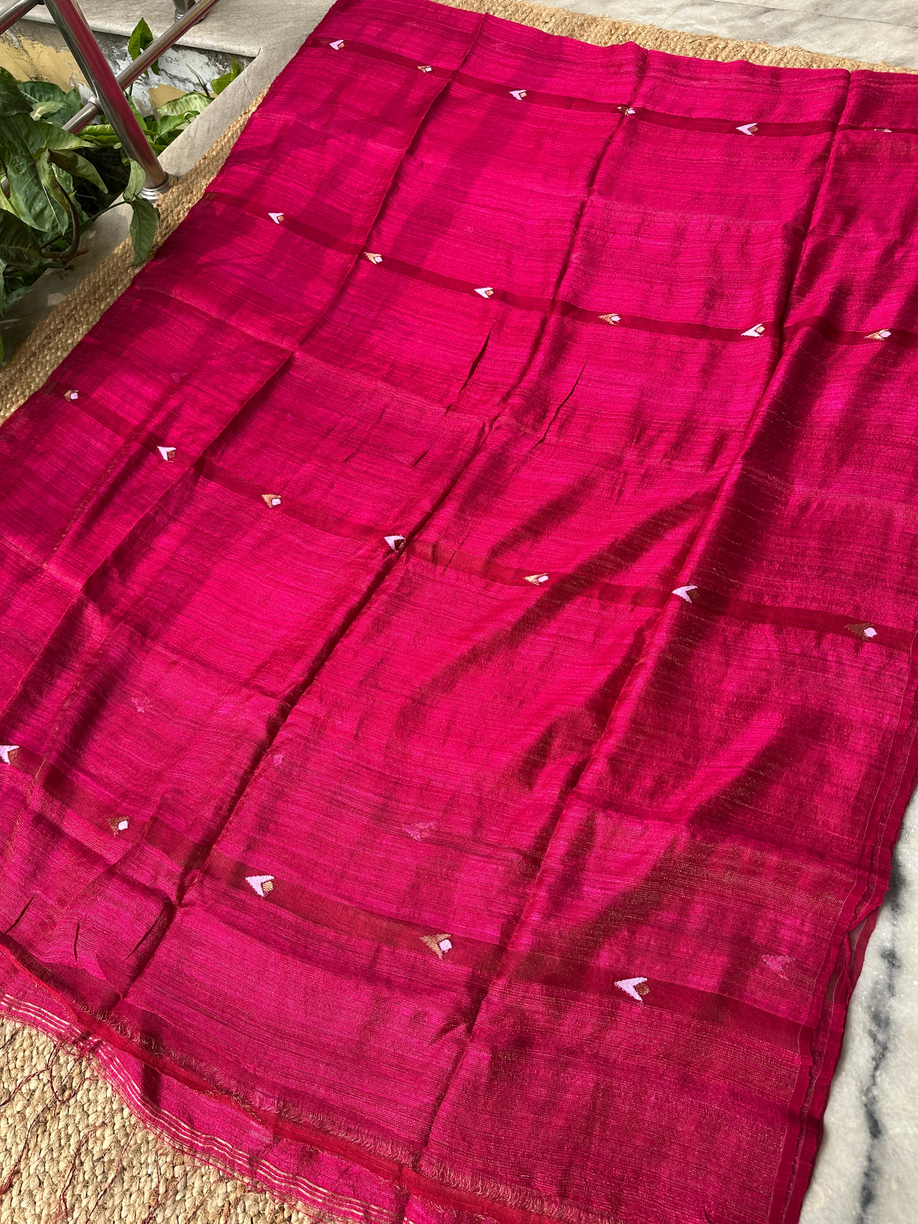 Pure Matka Silk Magenta Handwoven Jamdani Saree with Silkmark