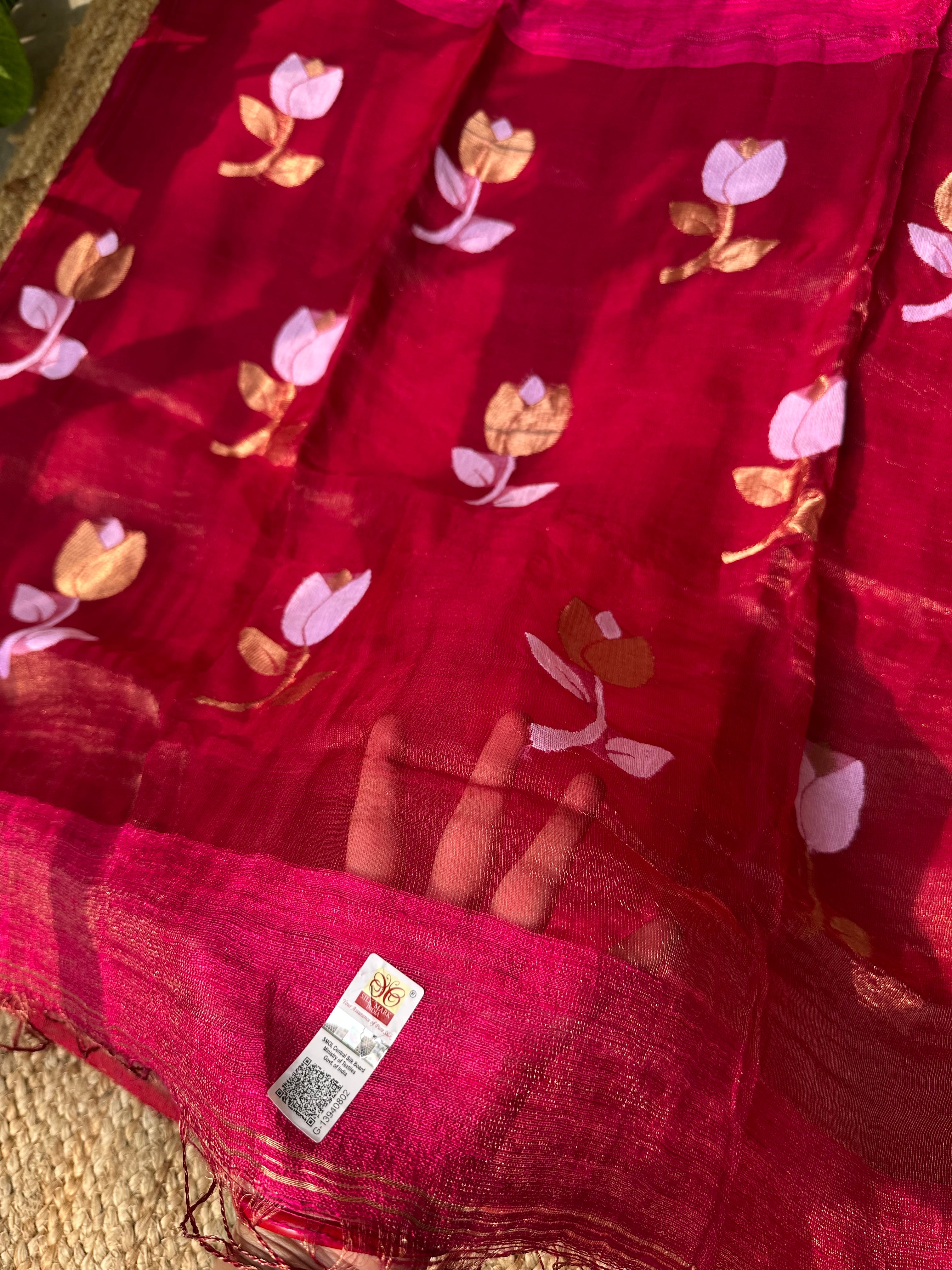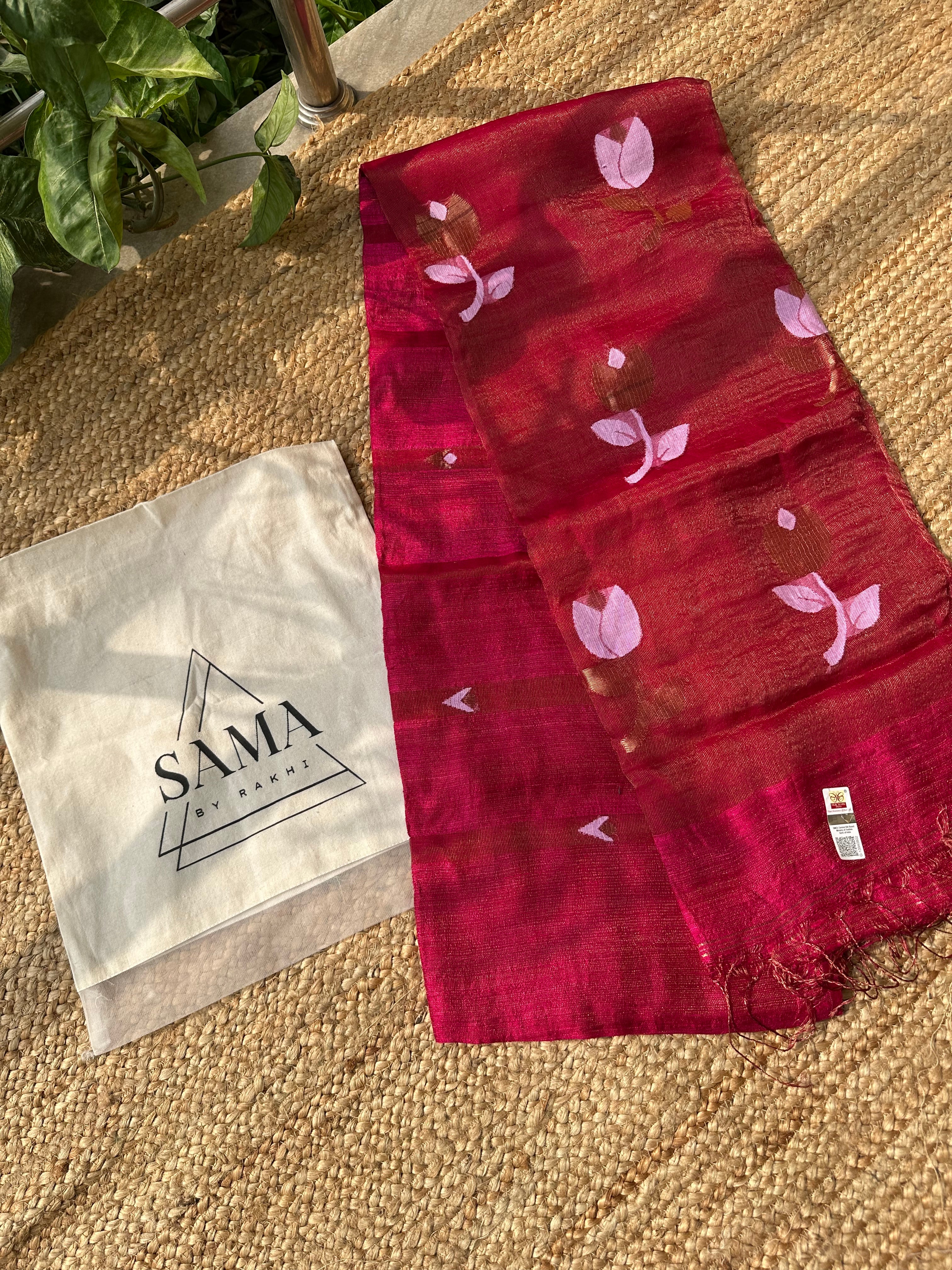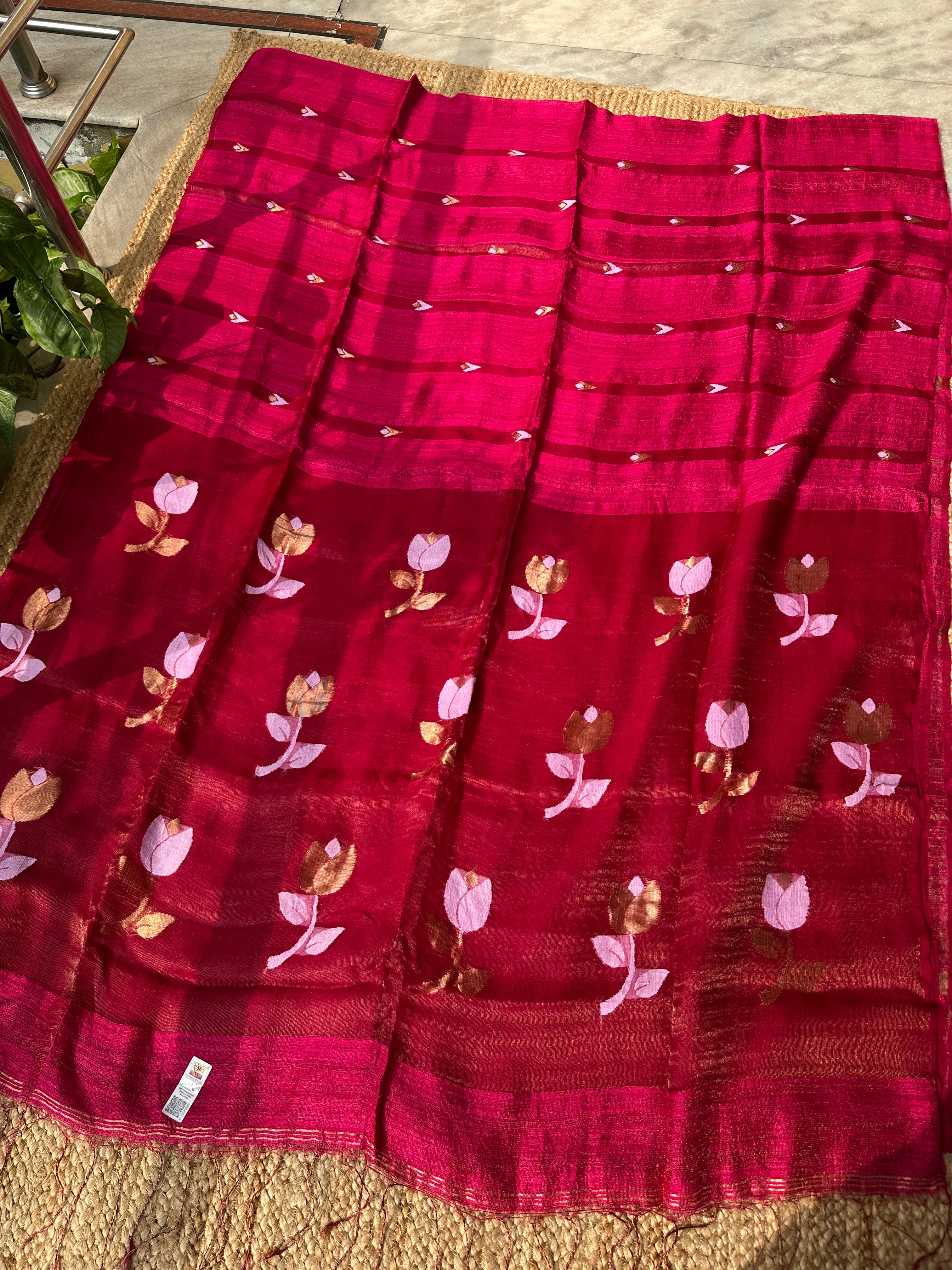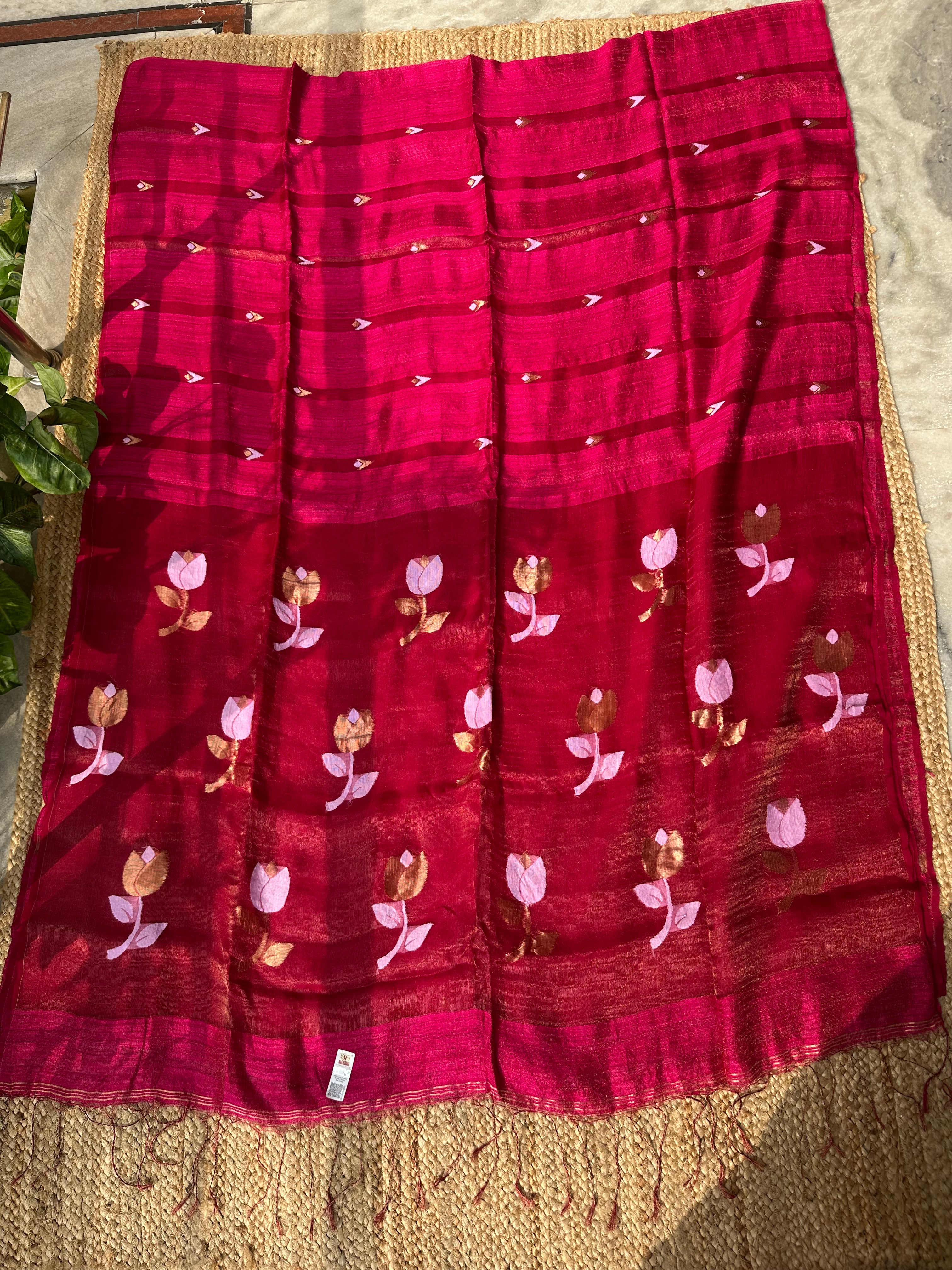 Pure Matka Silk Magenta Handwoven Jamdani Saree with Silkmark