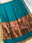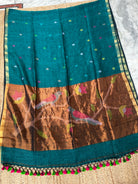 Rama Green Paithani Linen Handloom Saree