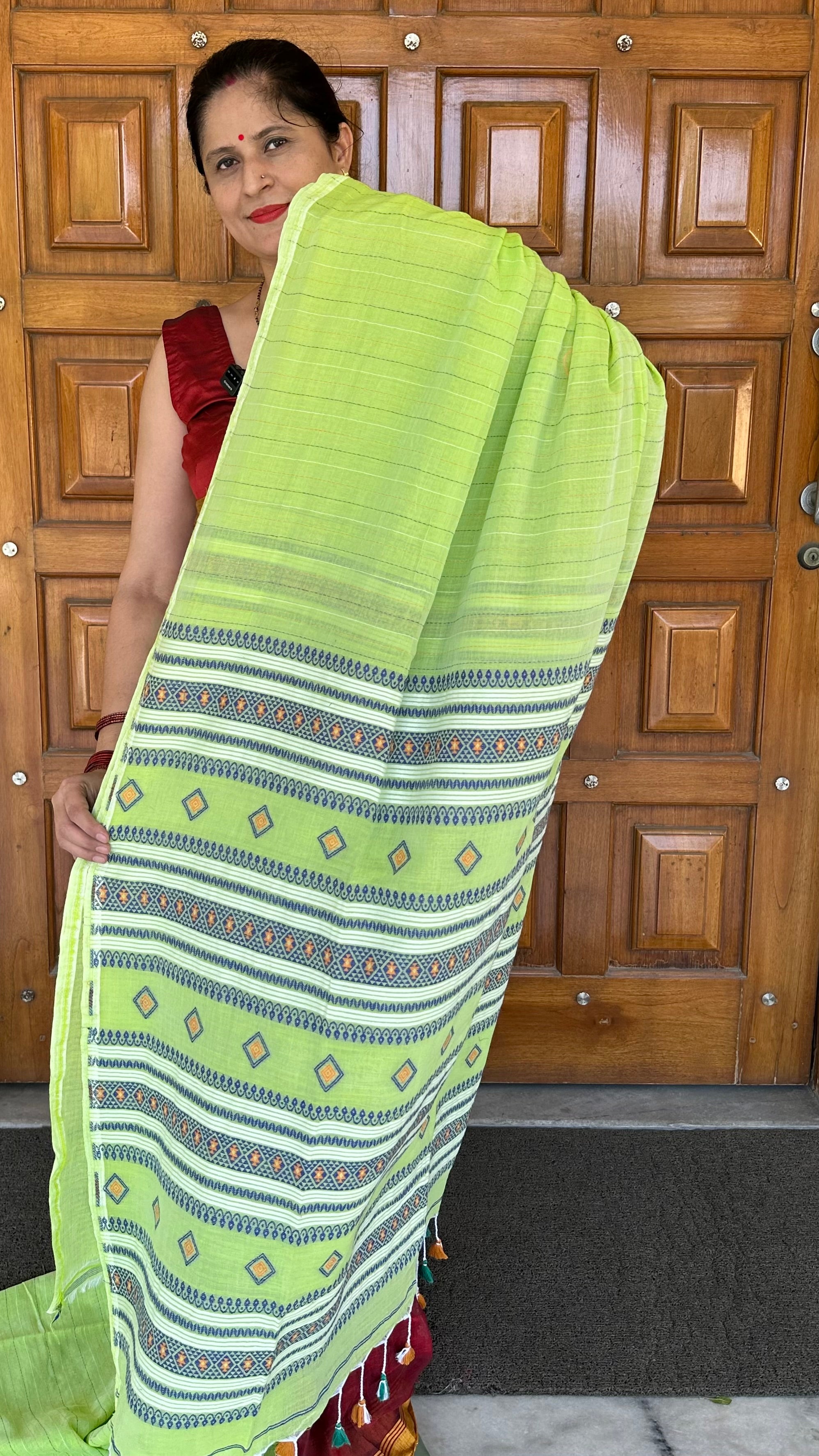 Neon Green Cotton Handloom Jamdani Saree