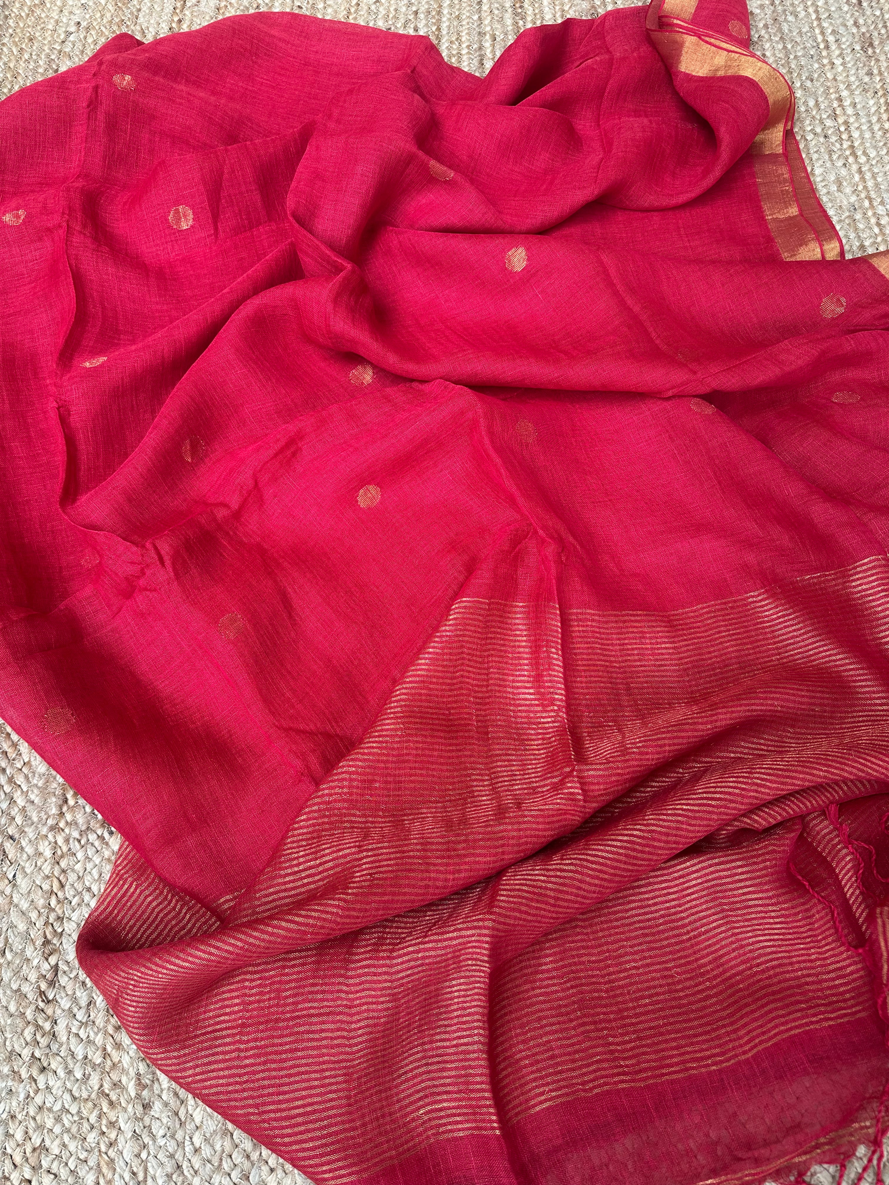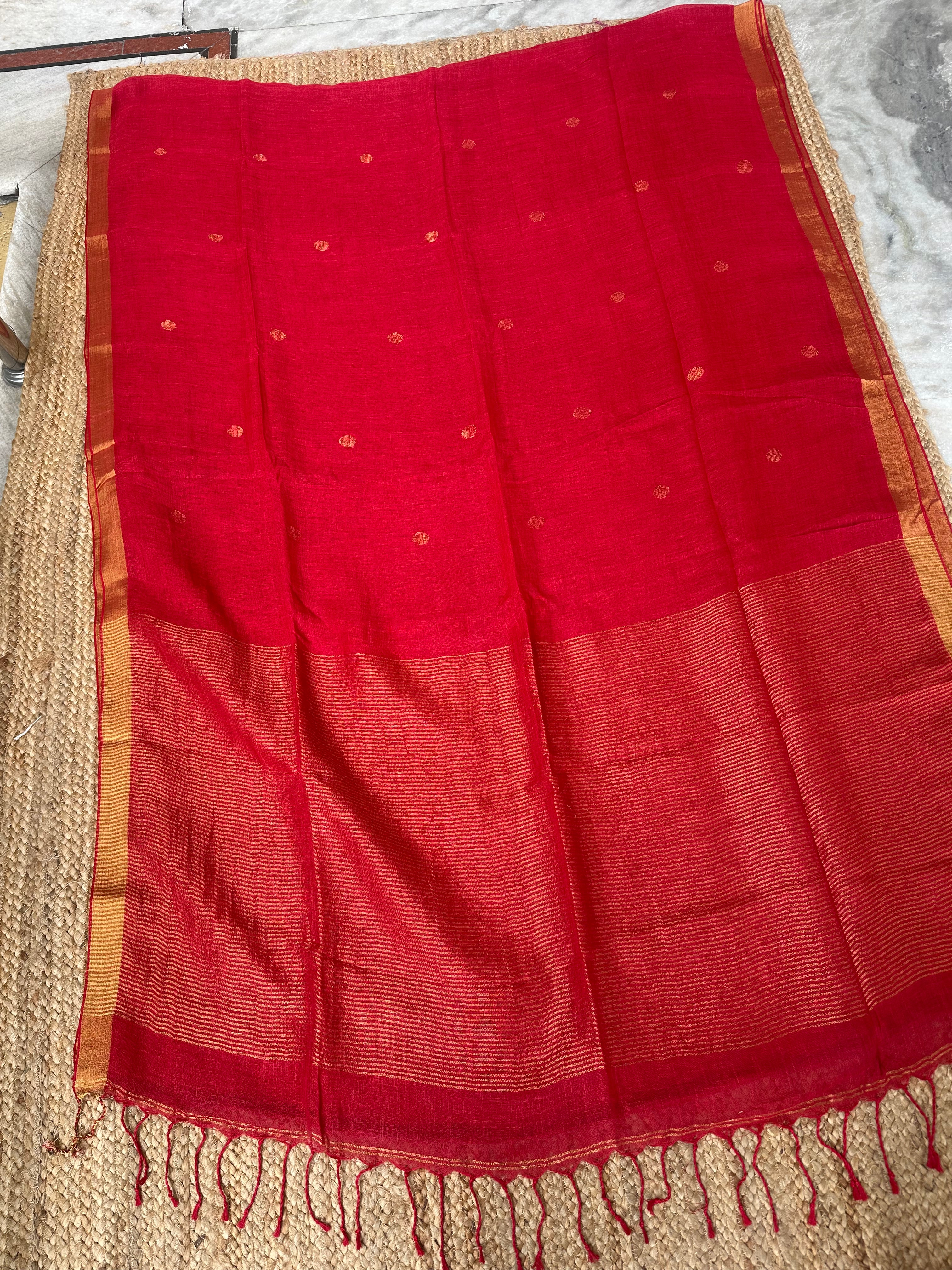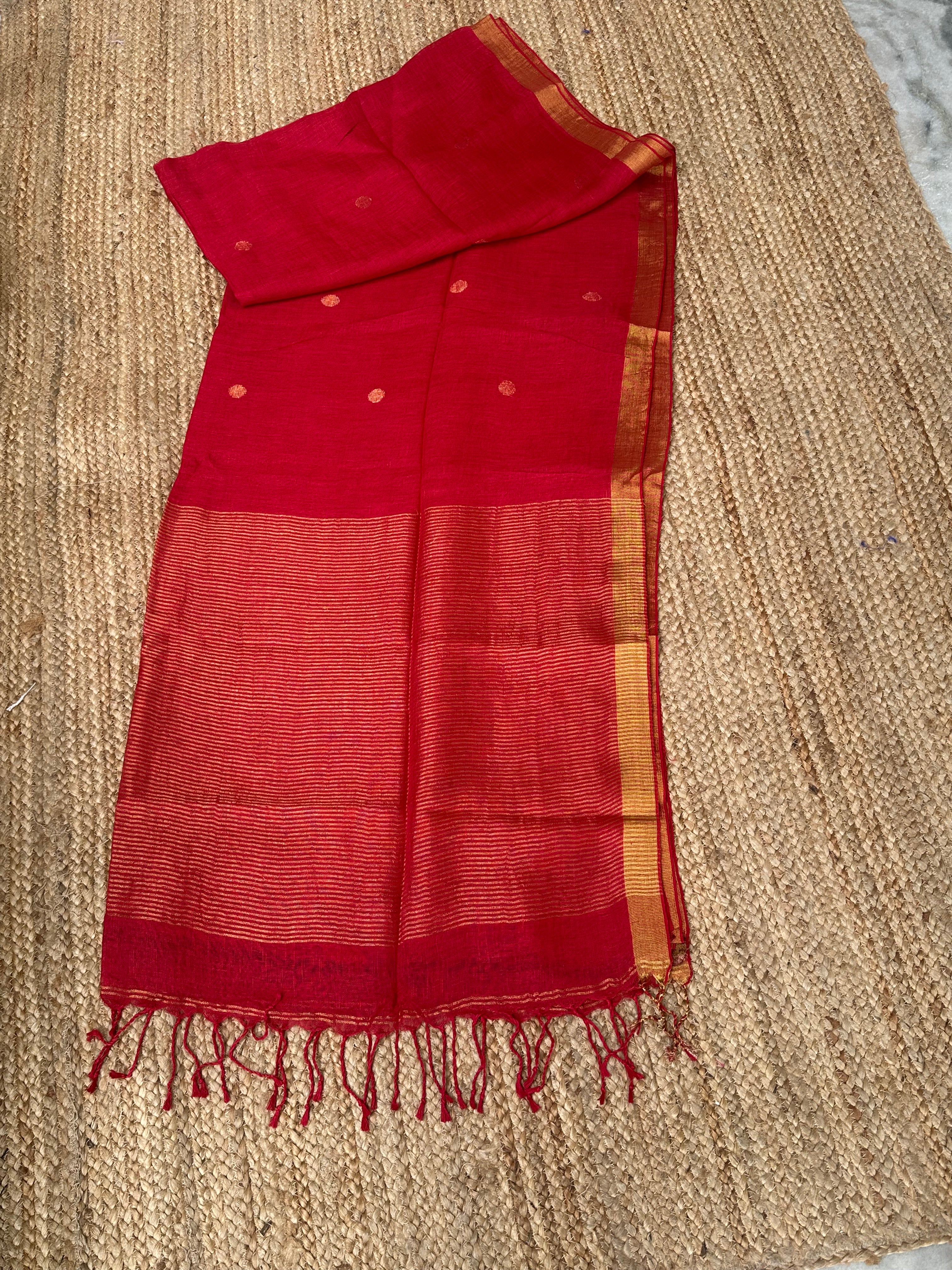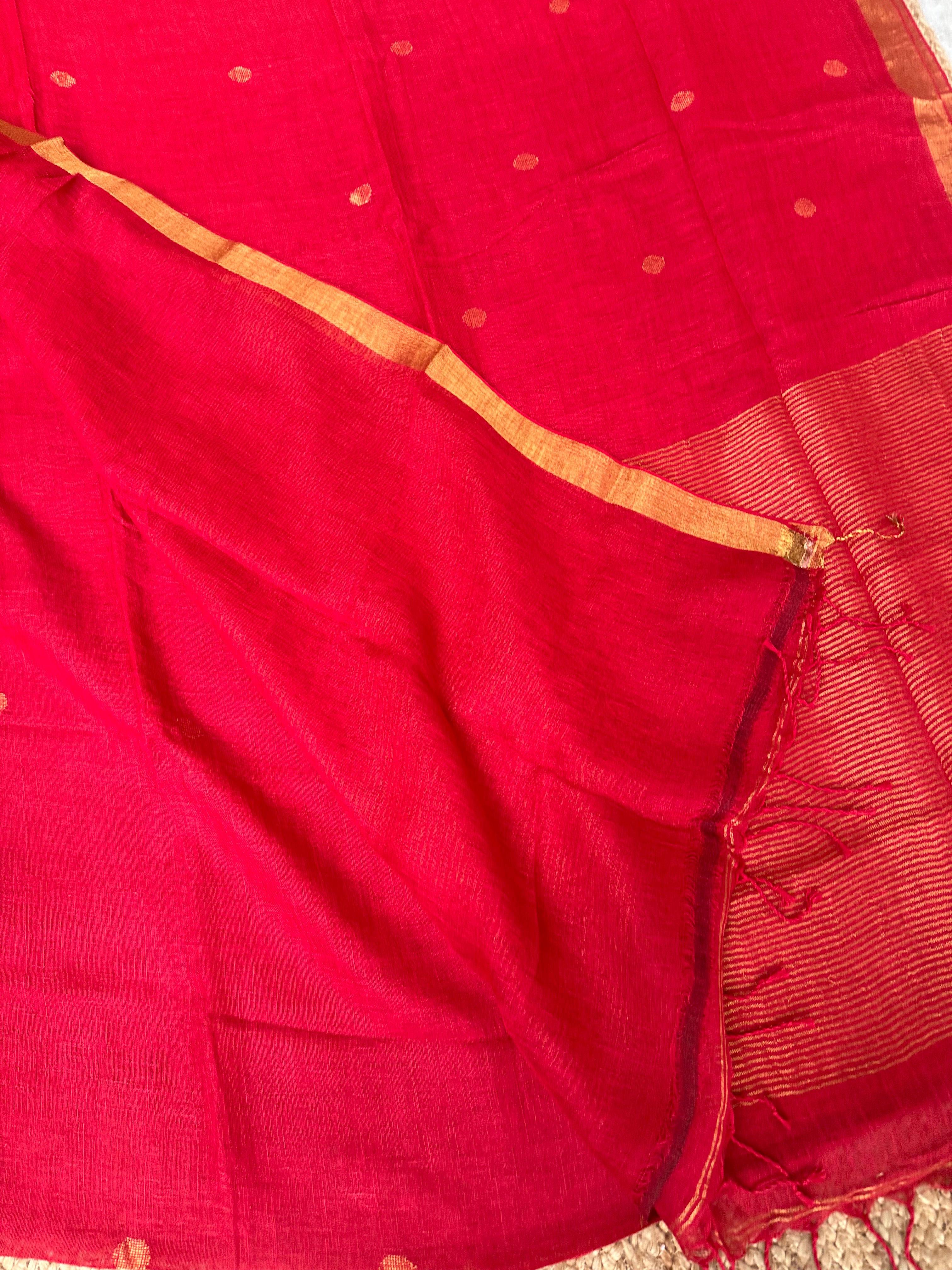 Pure Handloom Saree with Golden Zari circle bootas- Red