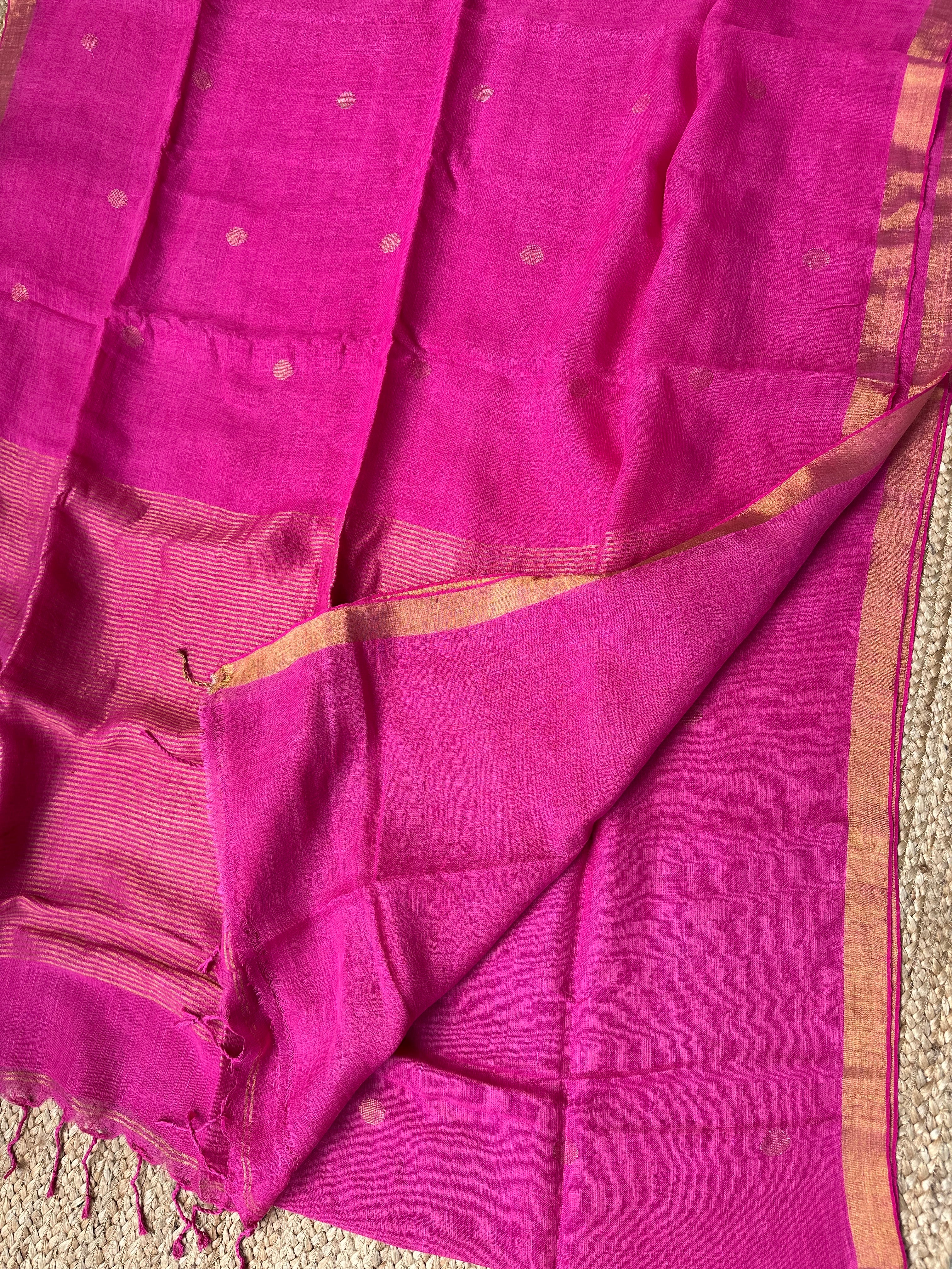 Pure Handloom Saree with Golden Zari circle bootas- Pink