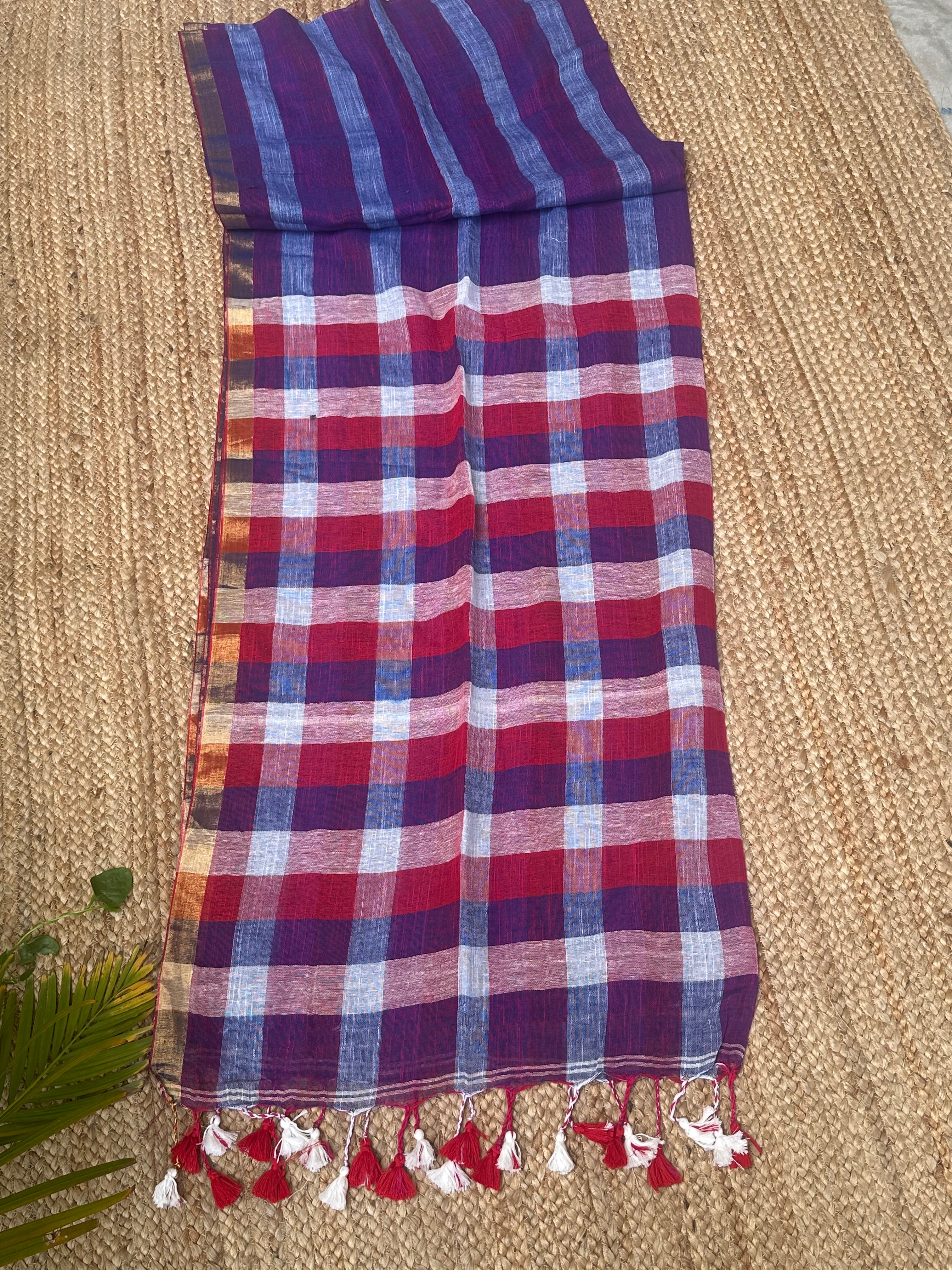 Pure Linen Checks Sarees