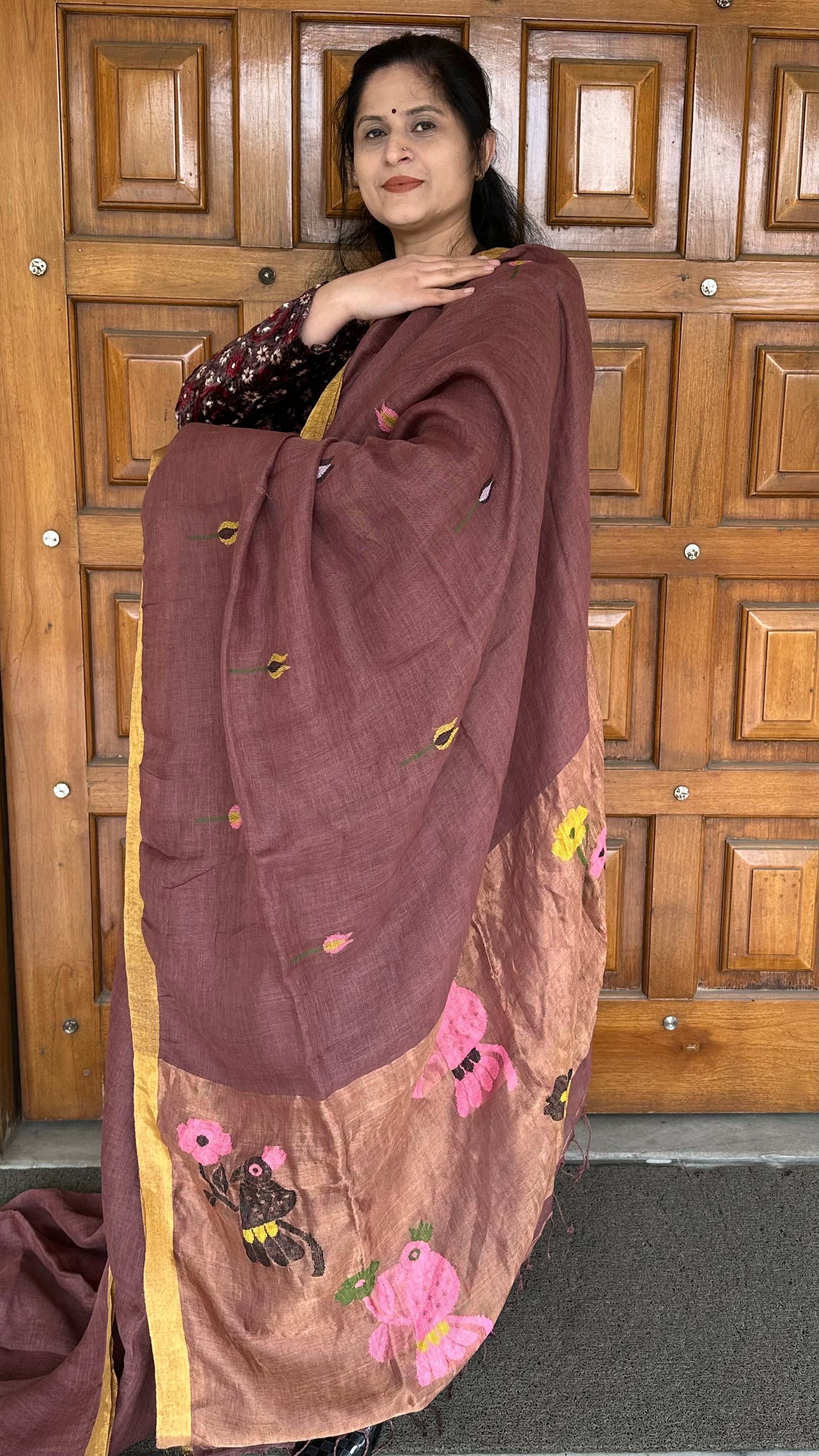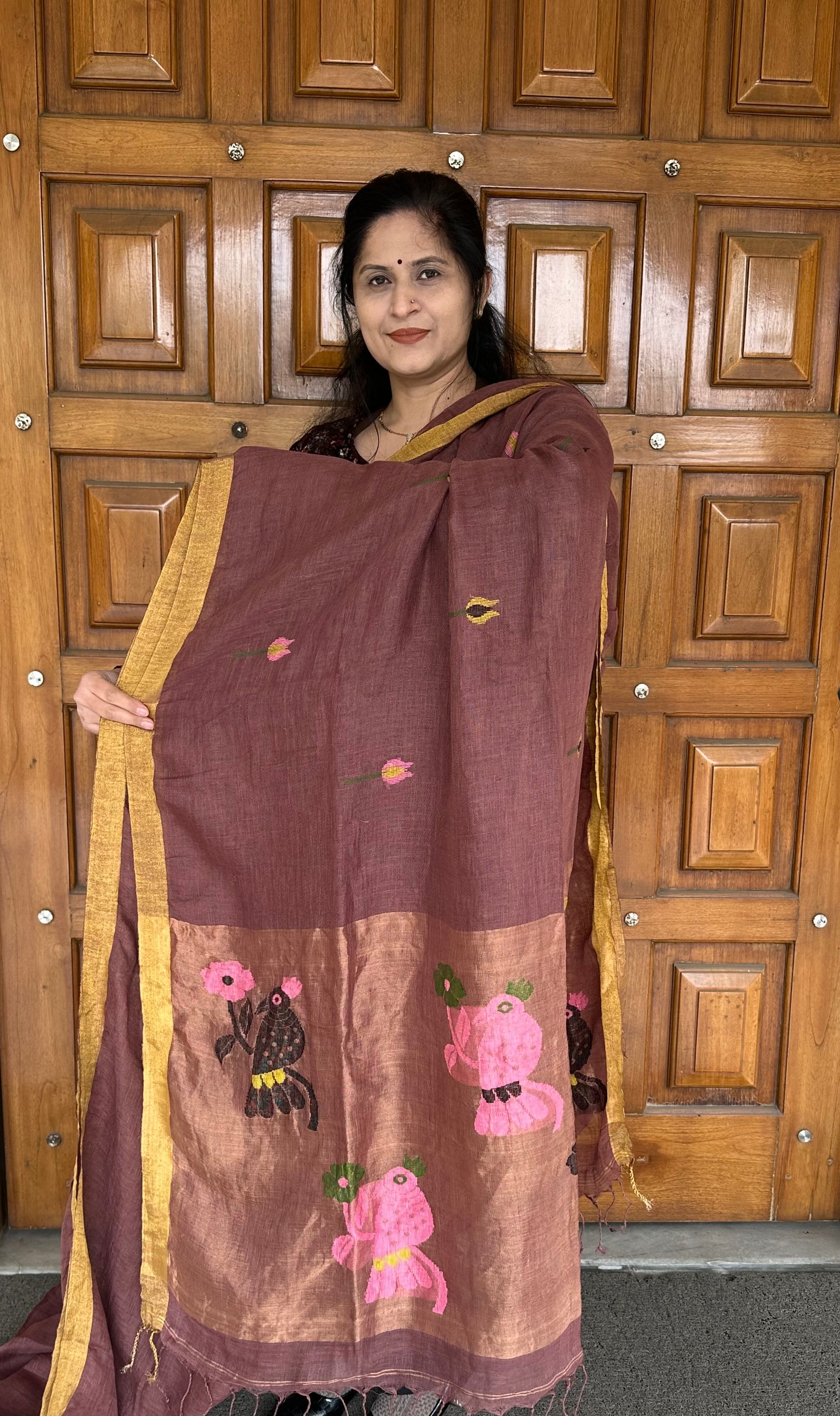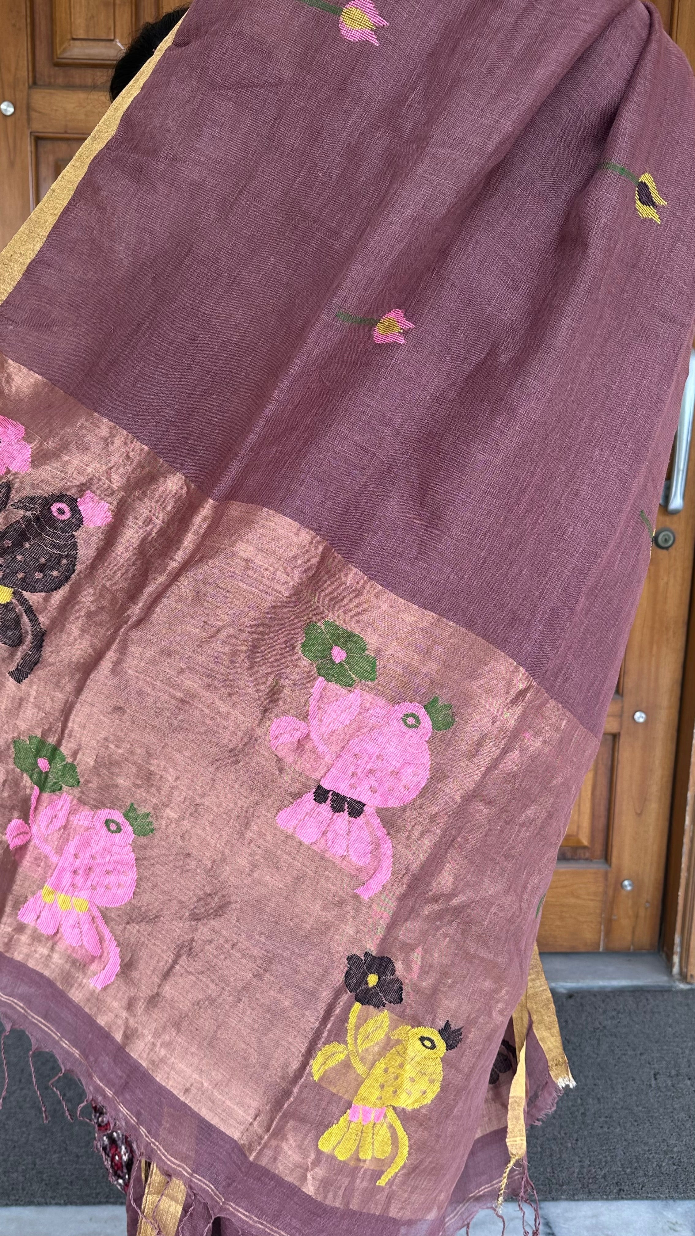 Dark Mauve Paithani Linen Handloom Saree (Dispatch Time: 10-12 days)