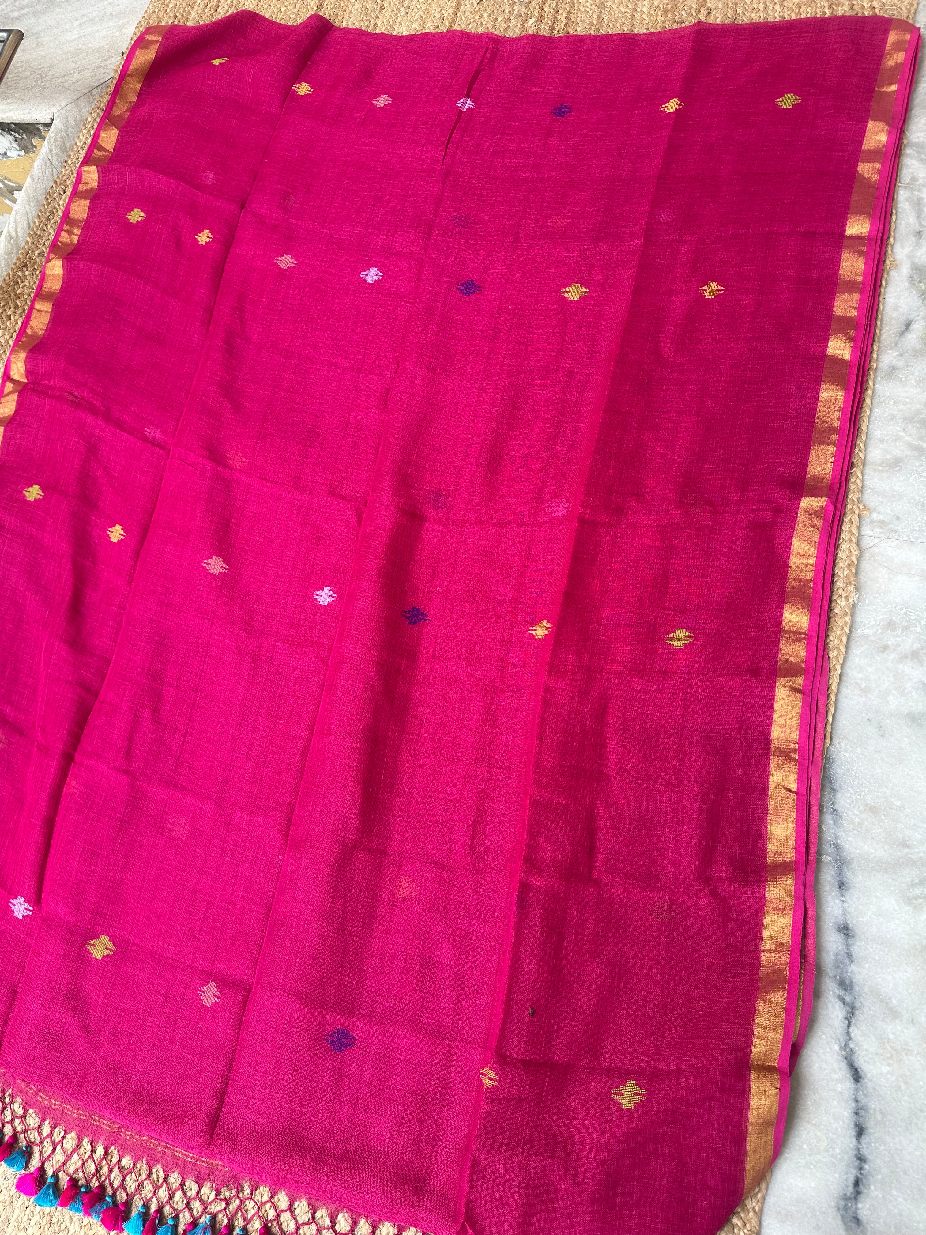 Linen : Though it is advisable to dryclean linen sarees. And please do the same of specially expensive sarees. But if you don't want to dryclean, then wash at home in cold water with some mild shampoo or ezee.