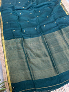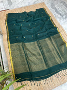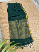 Pure Handloom Saree with Golden Zari circle bootas- Dark Green