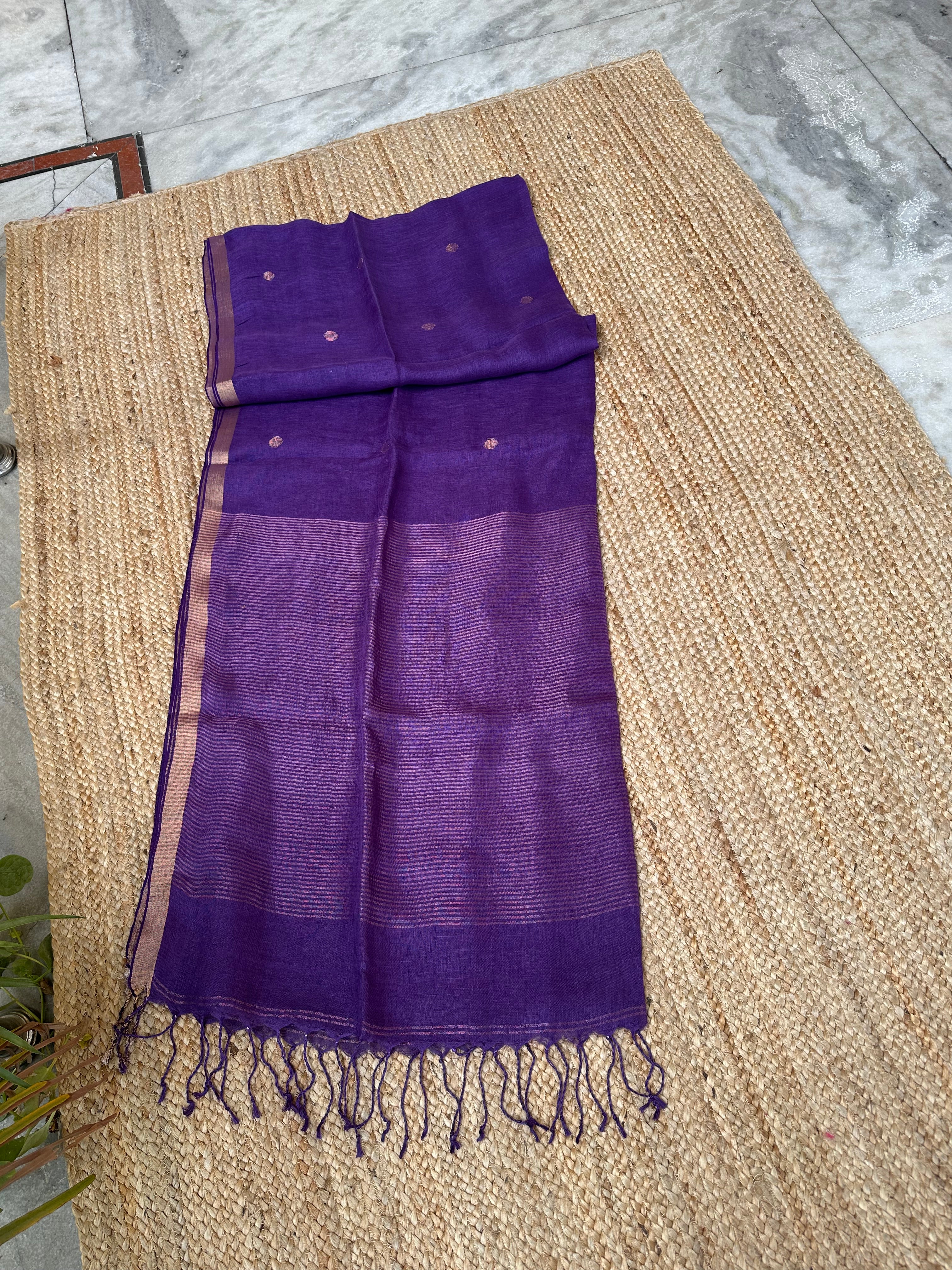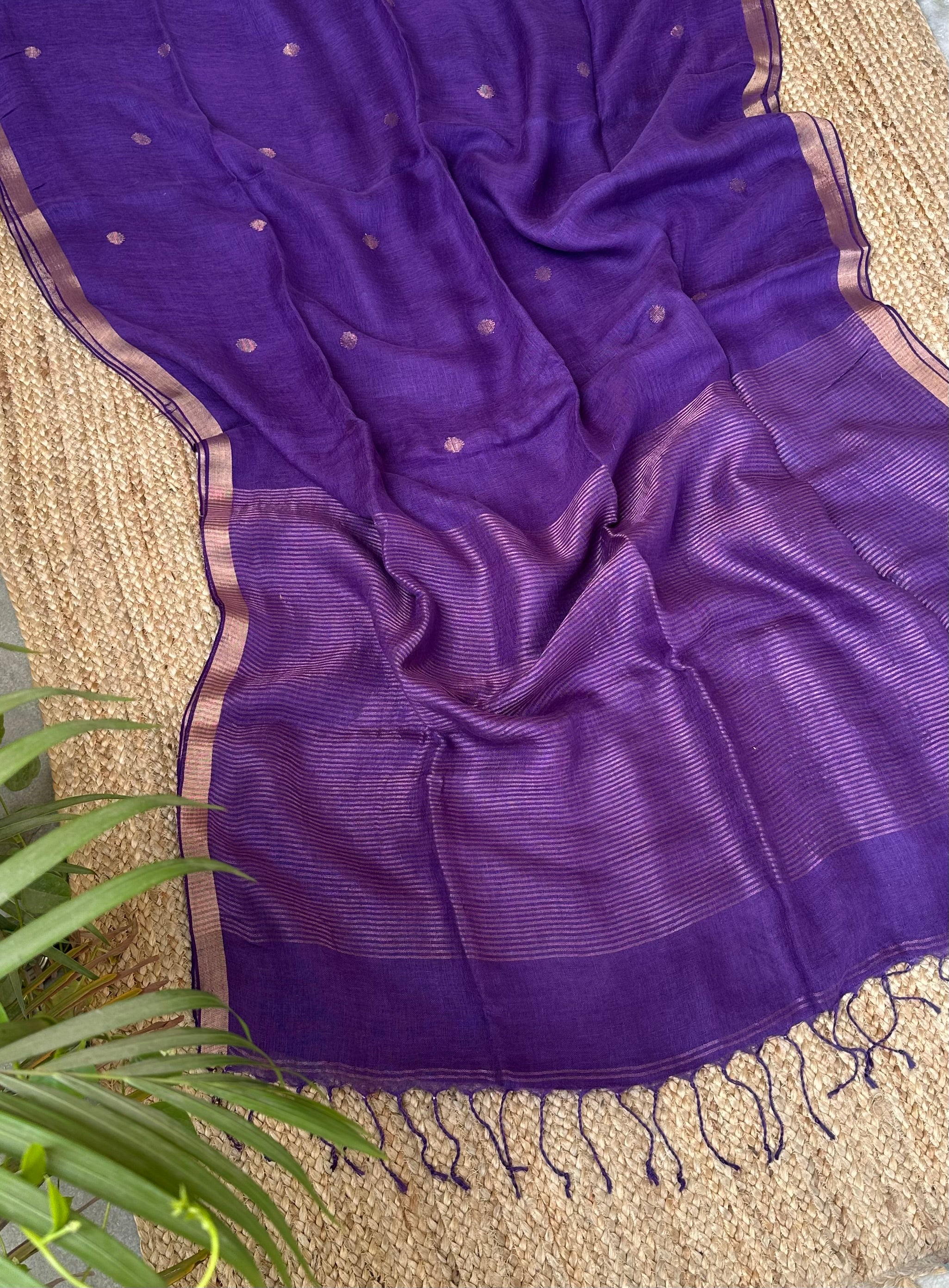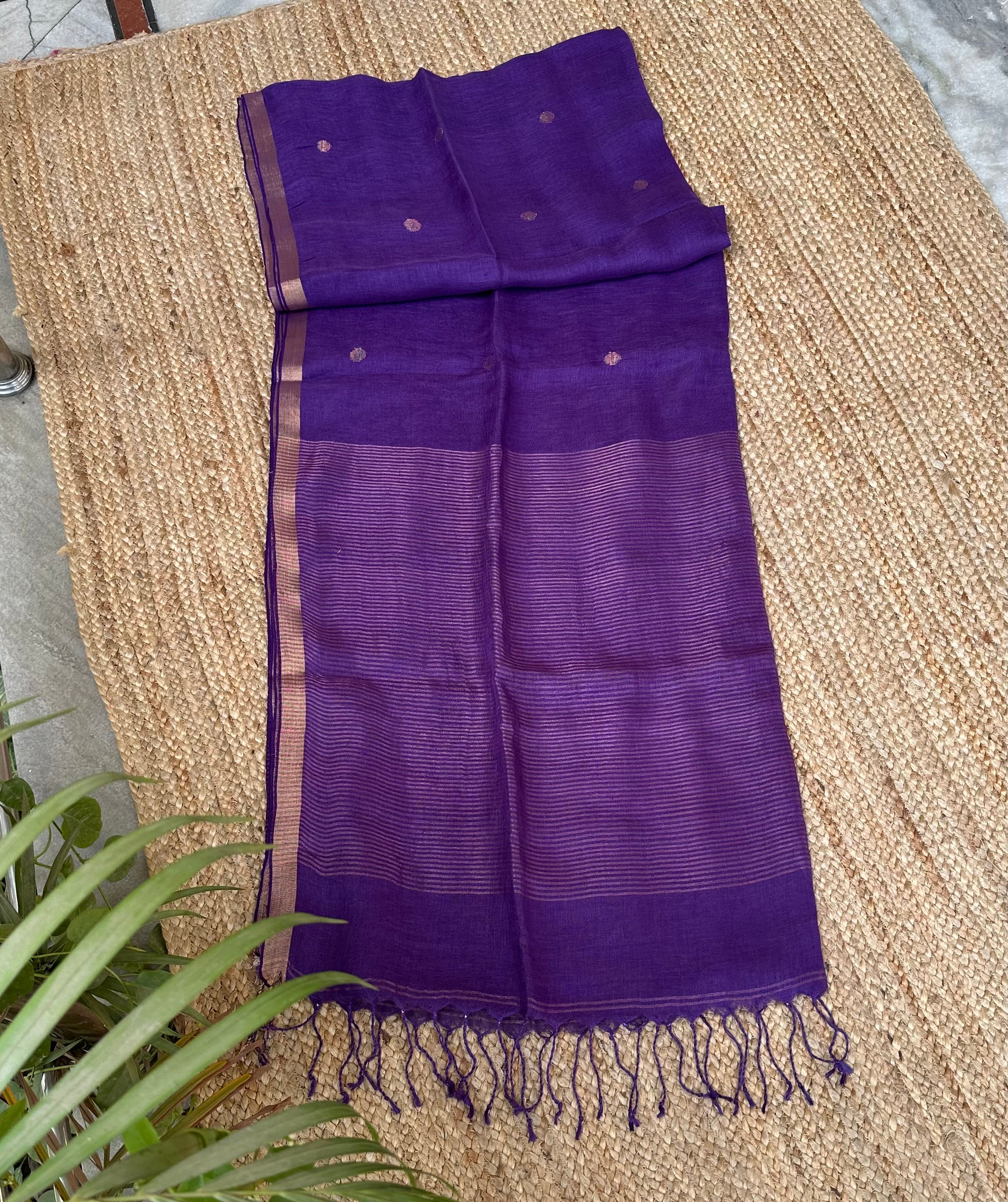 Material: Pure linen by linen handloom sarees with golden zari pallu and small circle bootas.