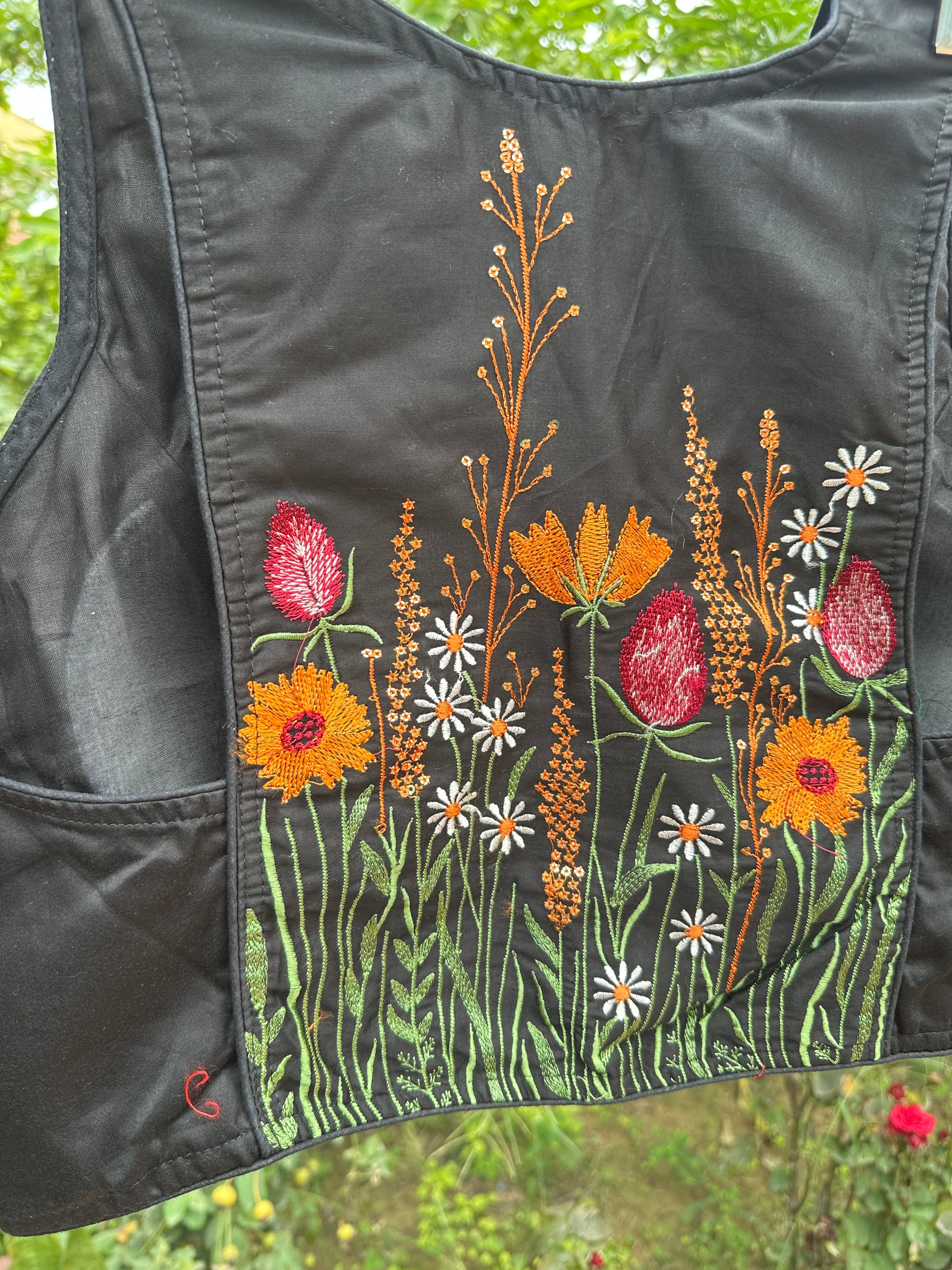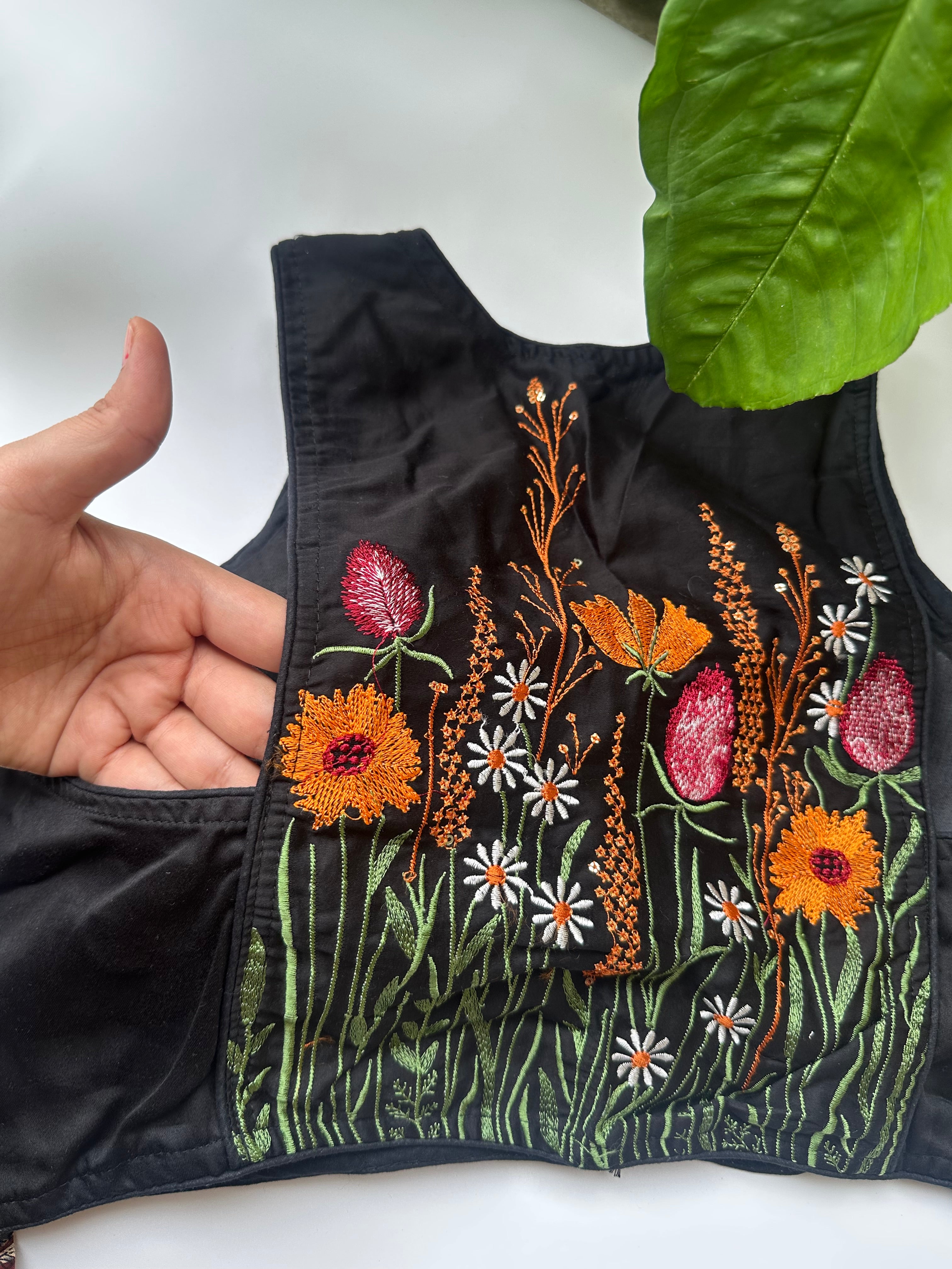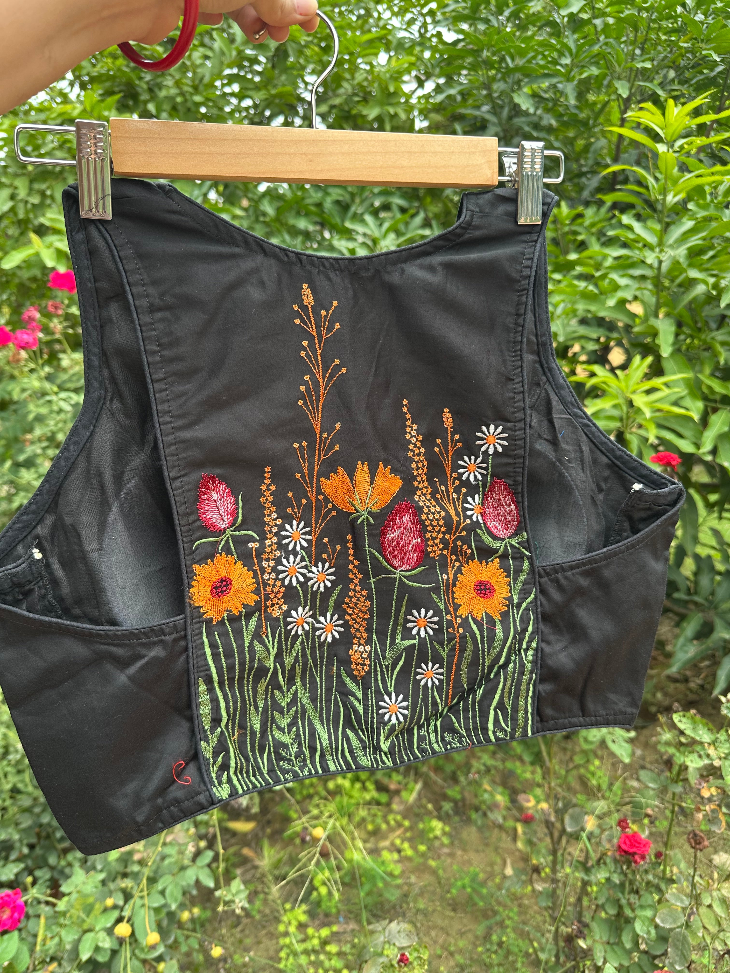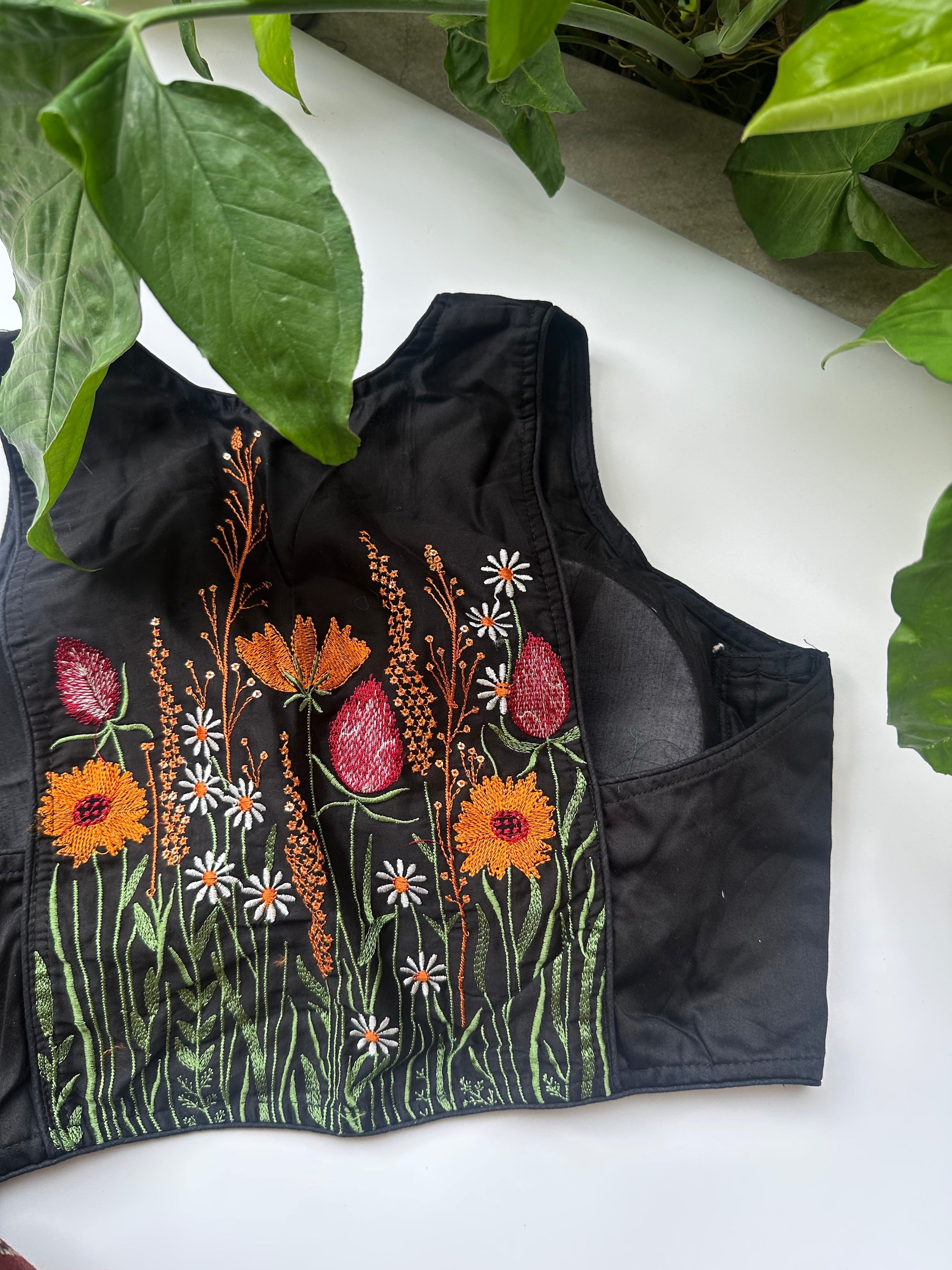 Racer Back Embroidered Blouse (Black)