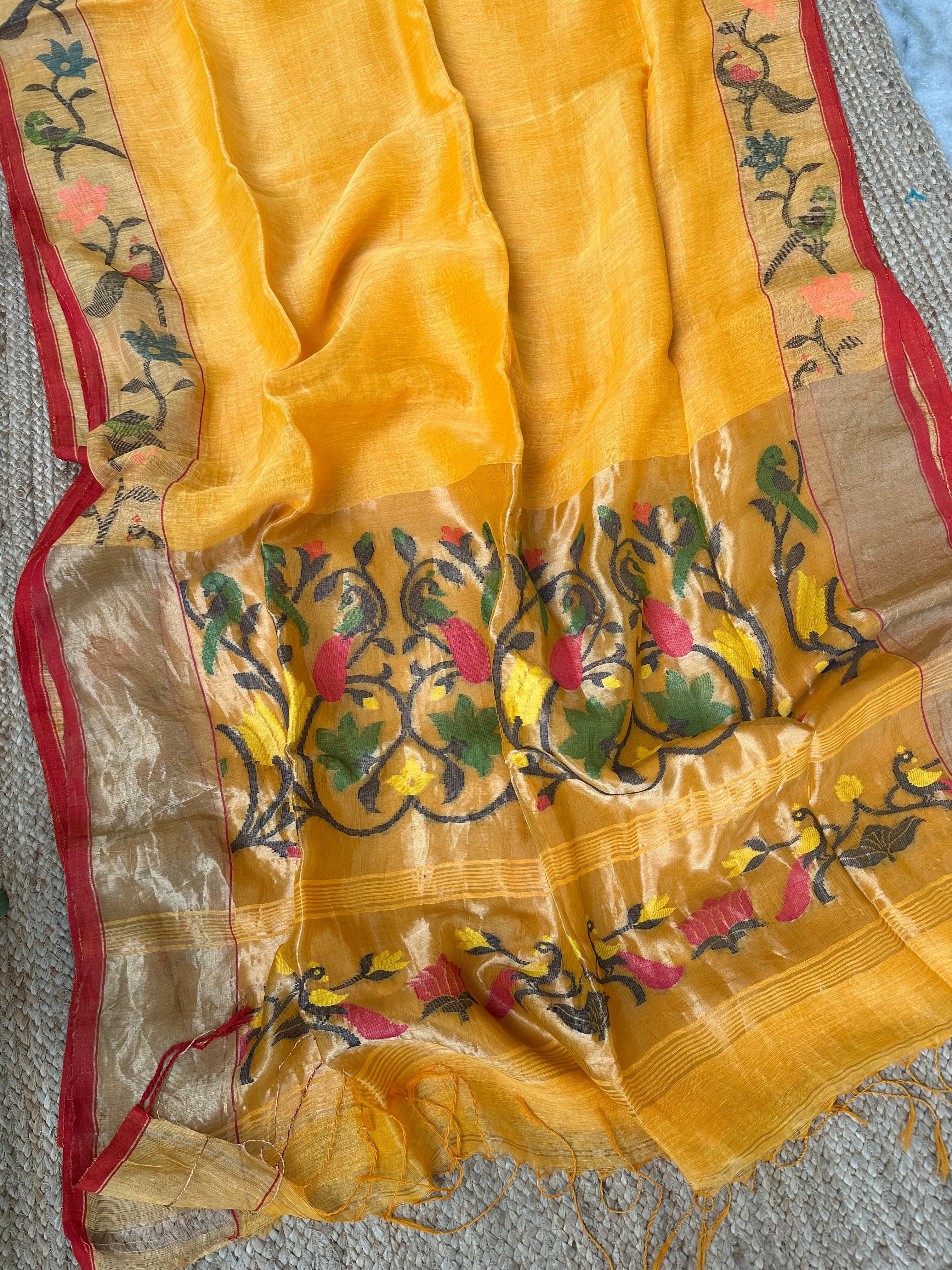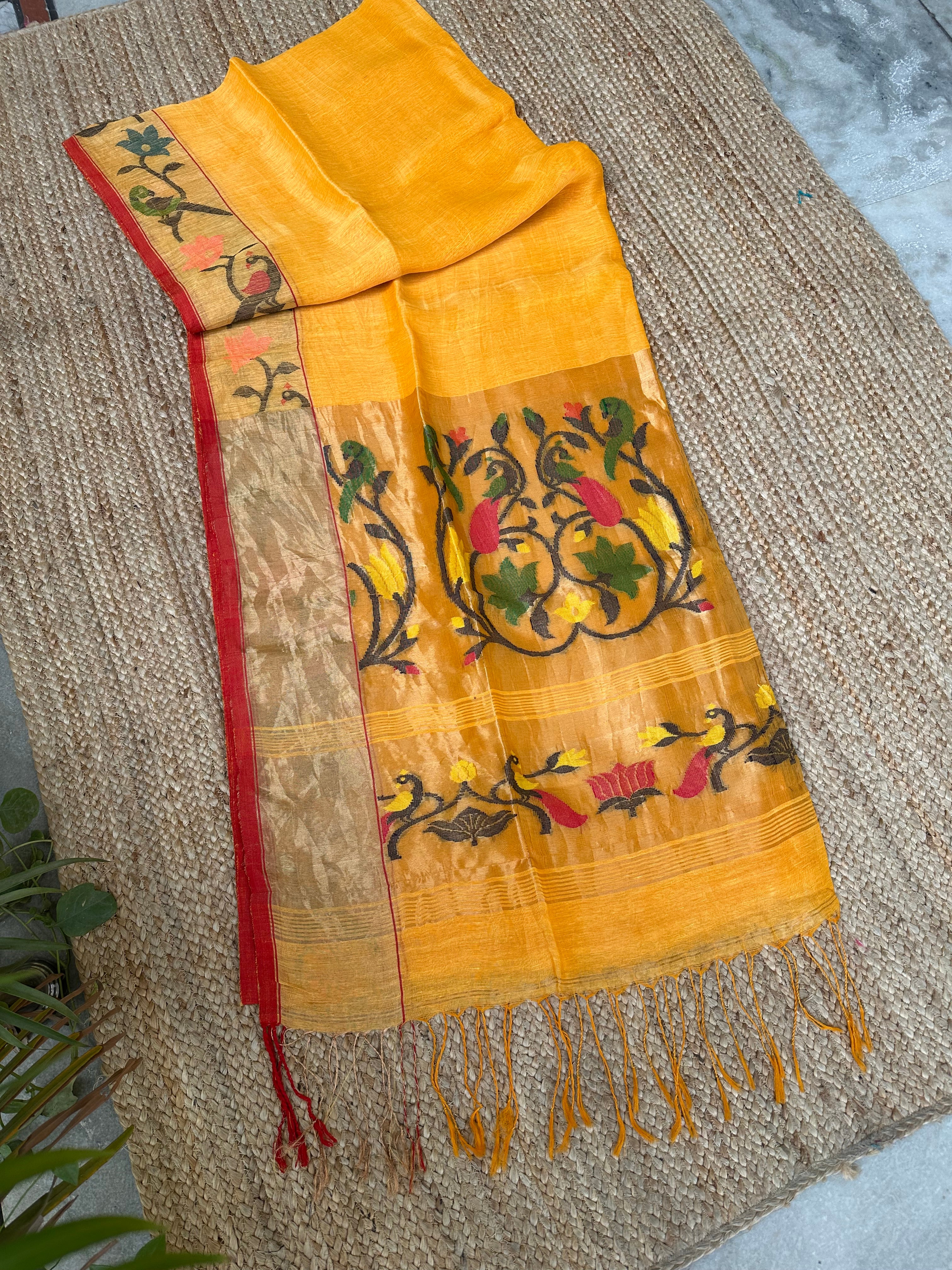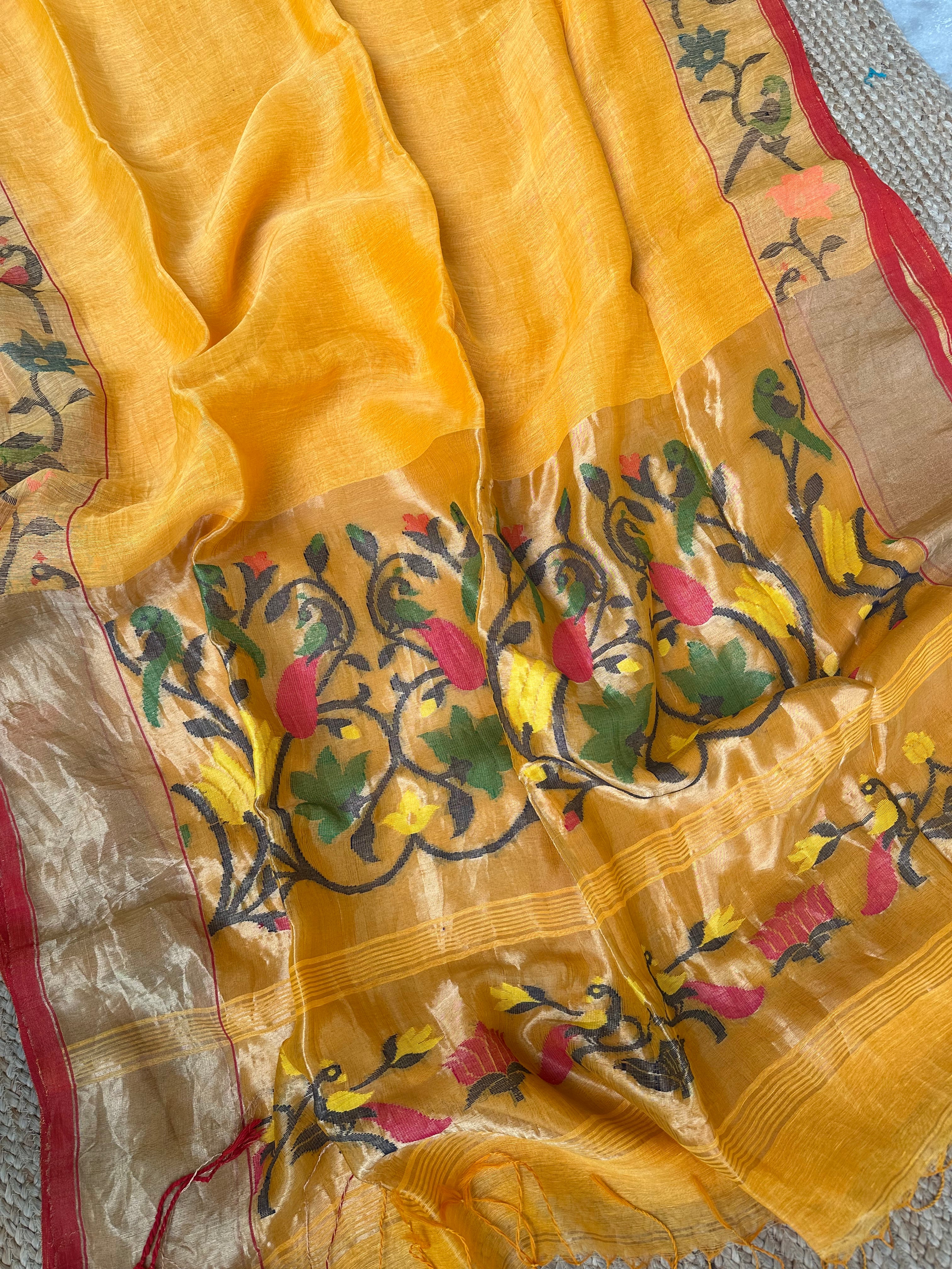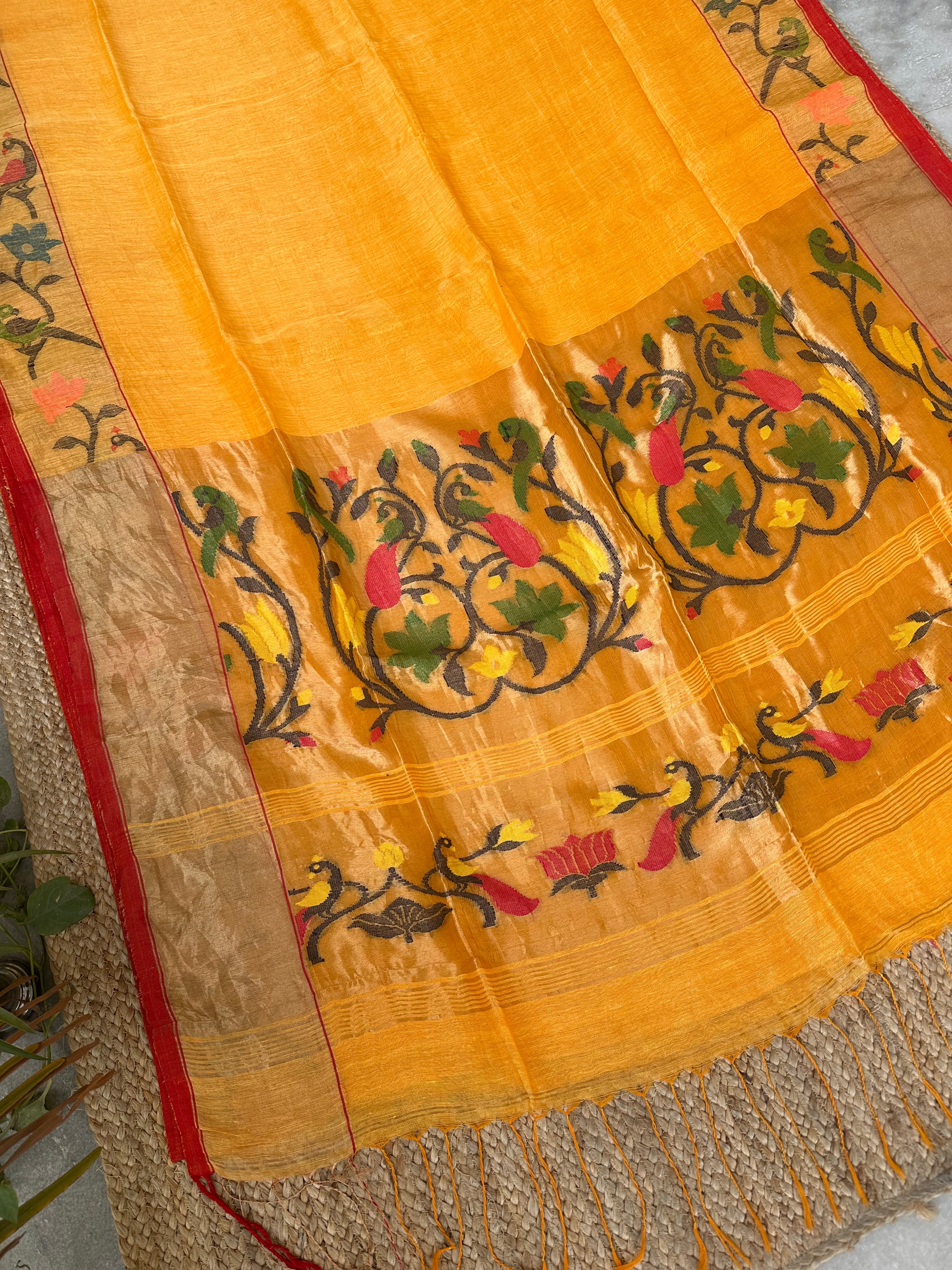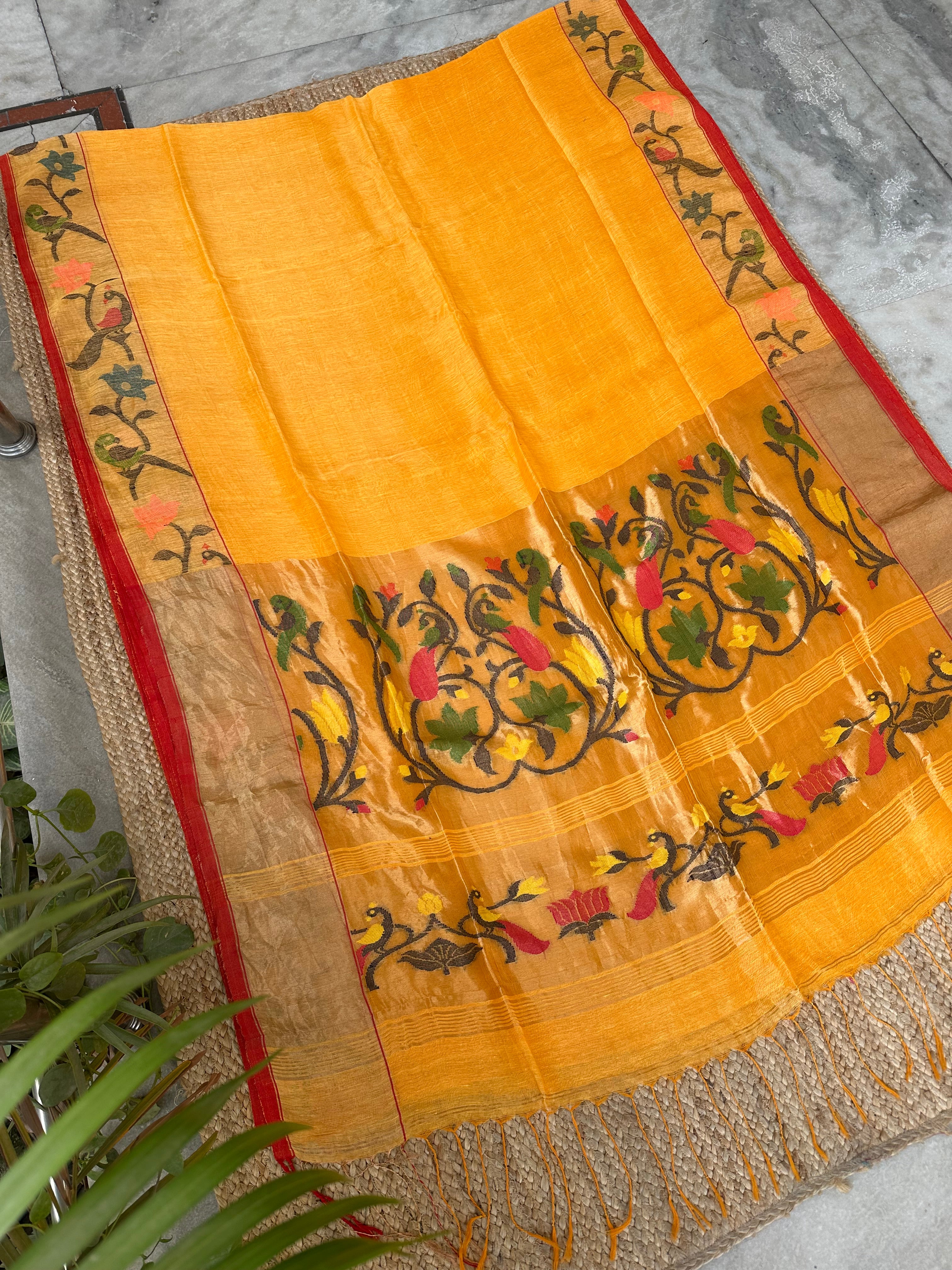 Yellow Linen Handloom Paithani Saree