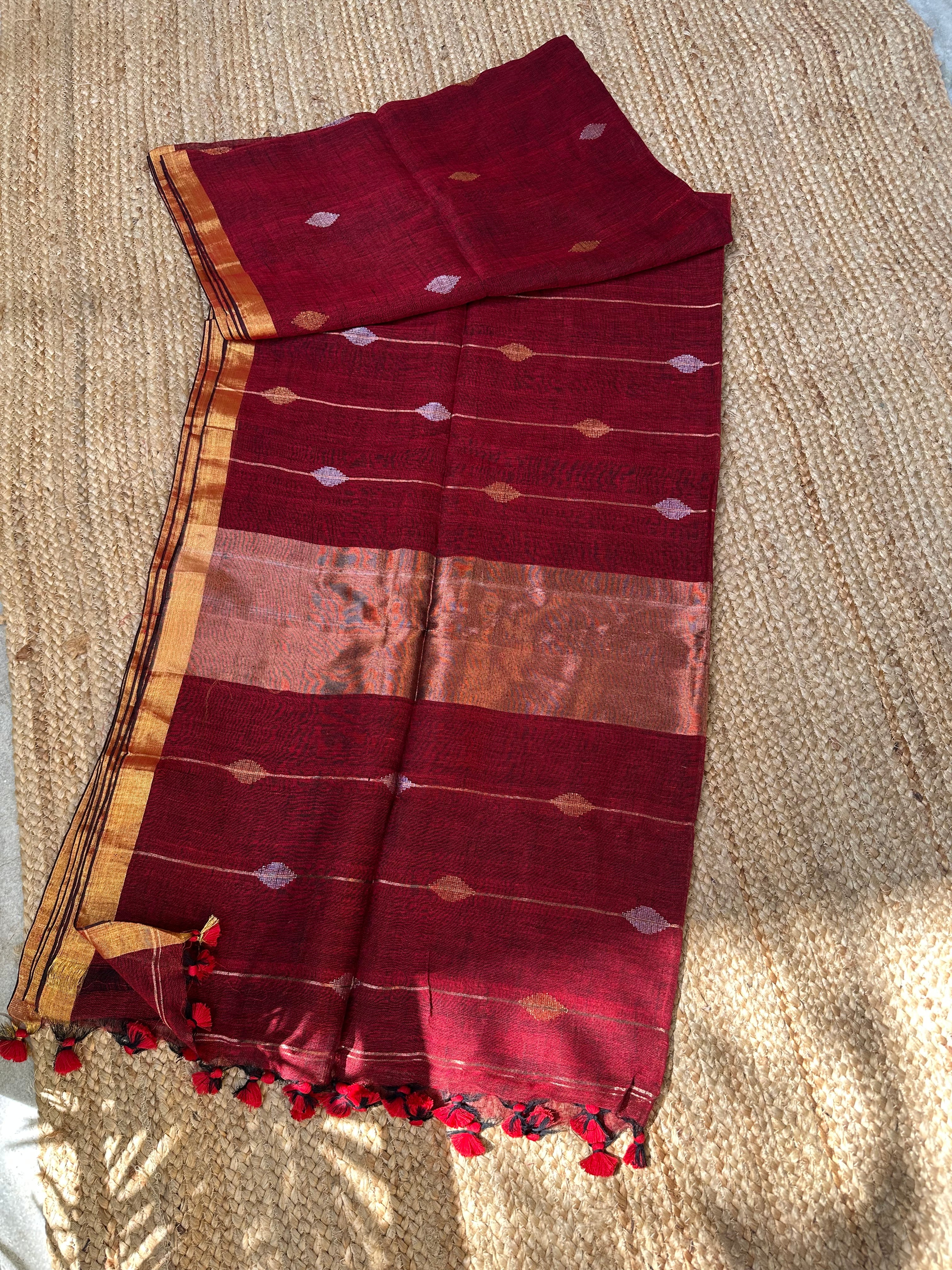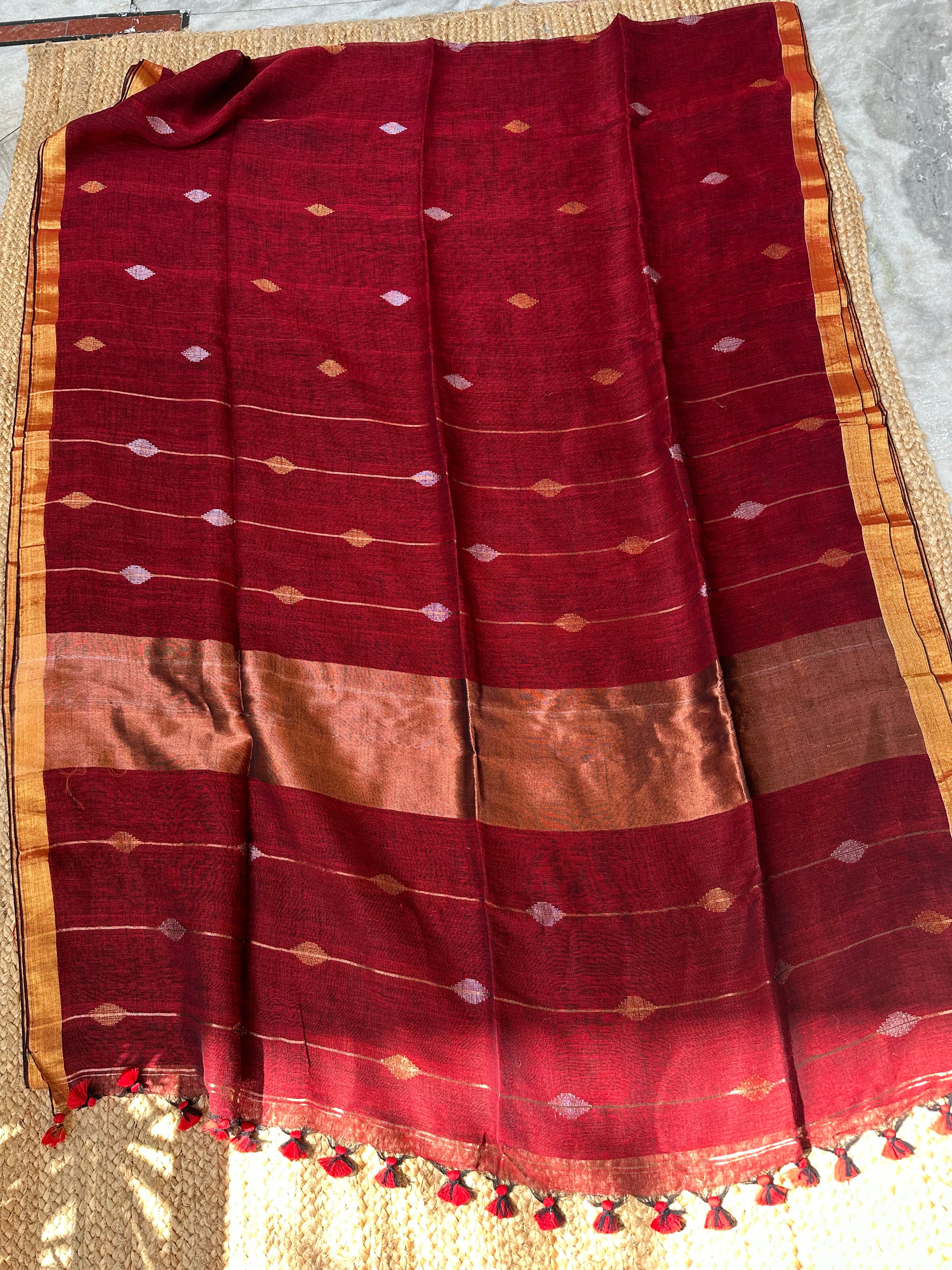 Linen : Though it is advisable to dryclean linen sarees. And please do the same of specially expensive sarees. But if you don't want to dryclean, then wash at home in cold water with some mild shampoo or ezee.