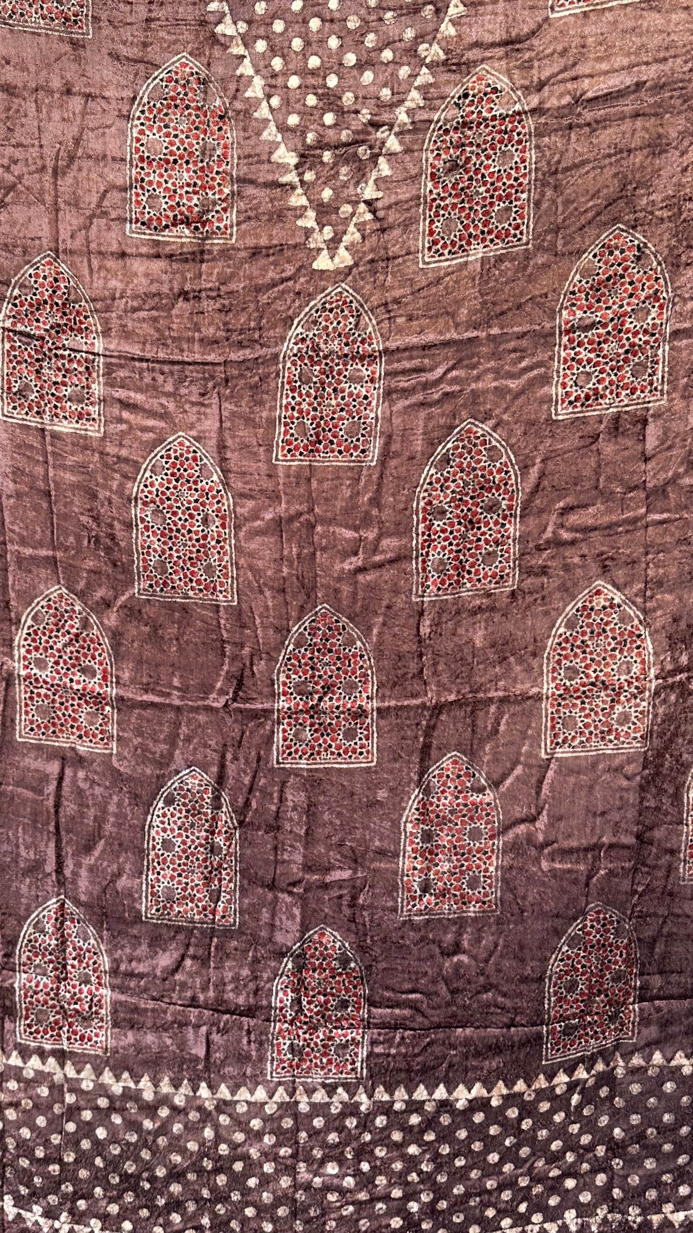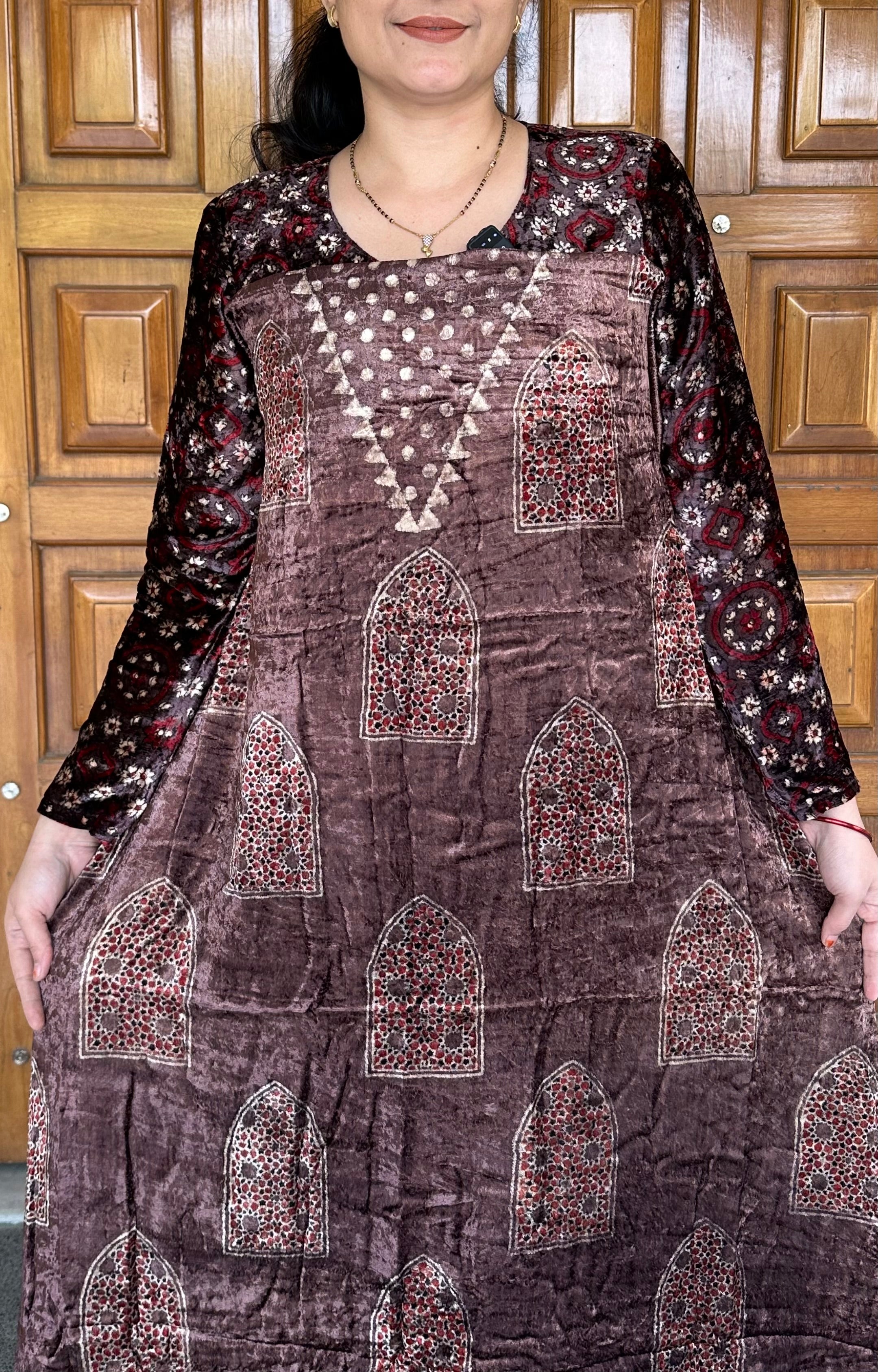Pure Ajrakh Handblock Printed Velvet Kurta fabric.