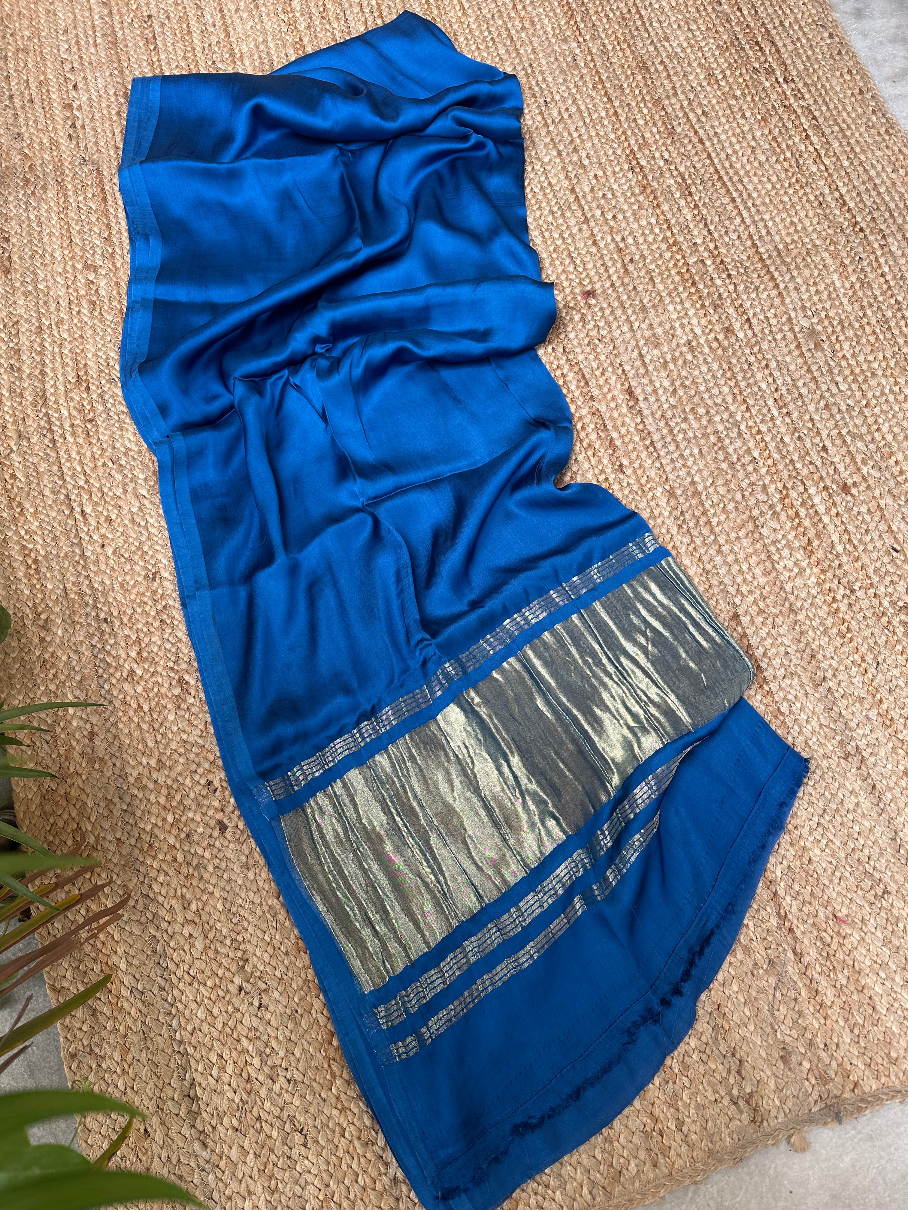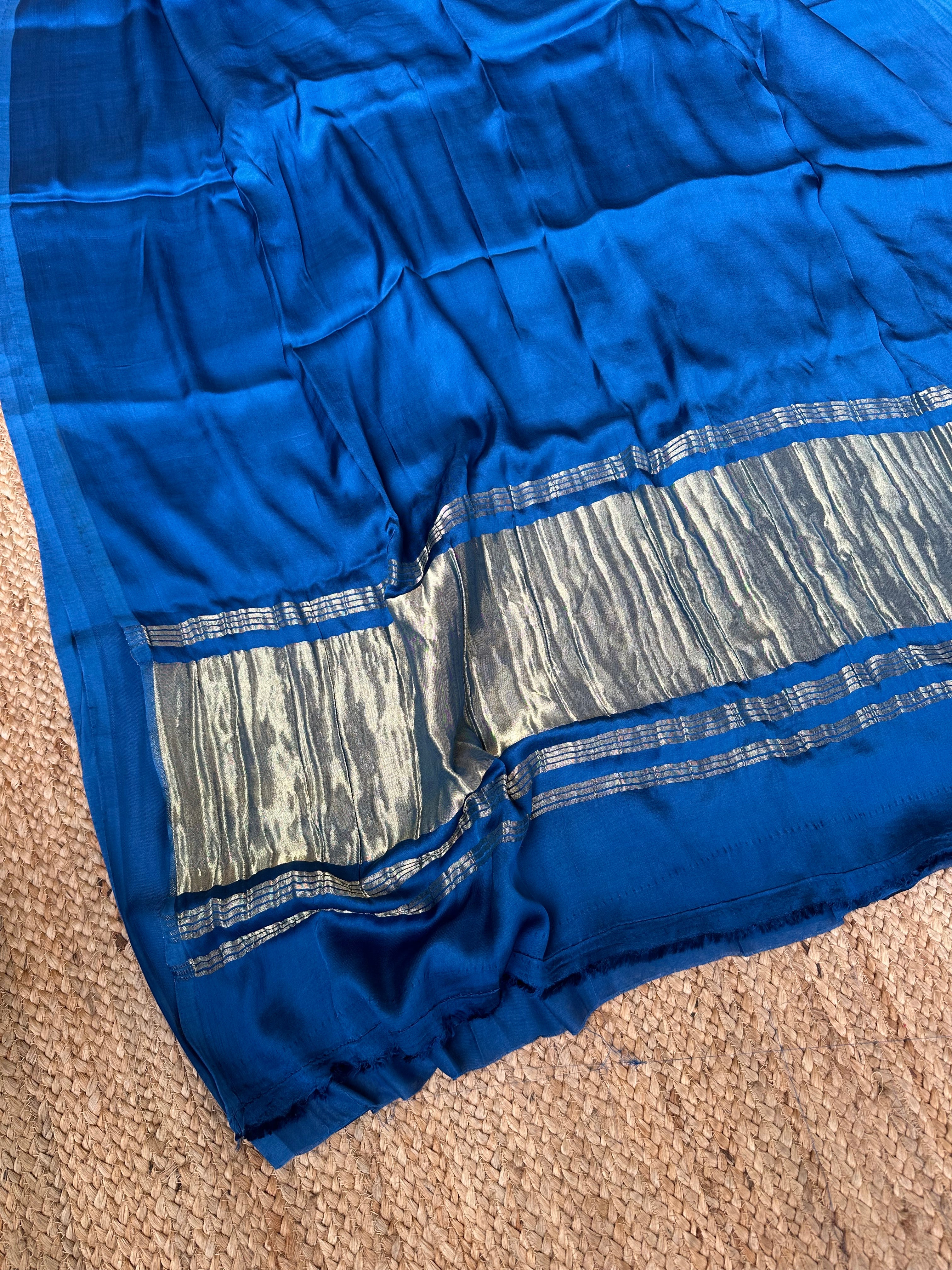 Blue Plain Modal Silk Saree with Zari Pallu