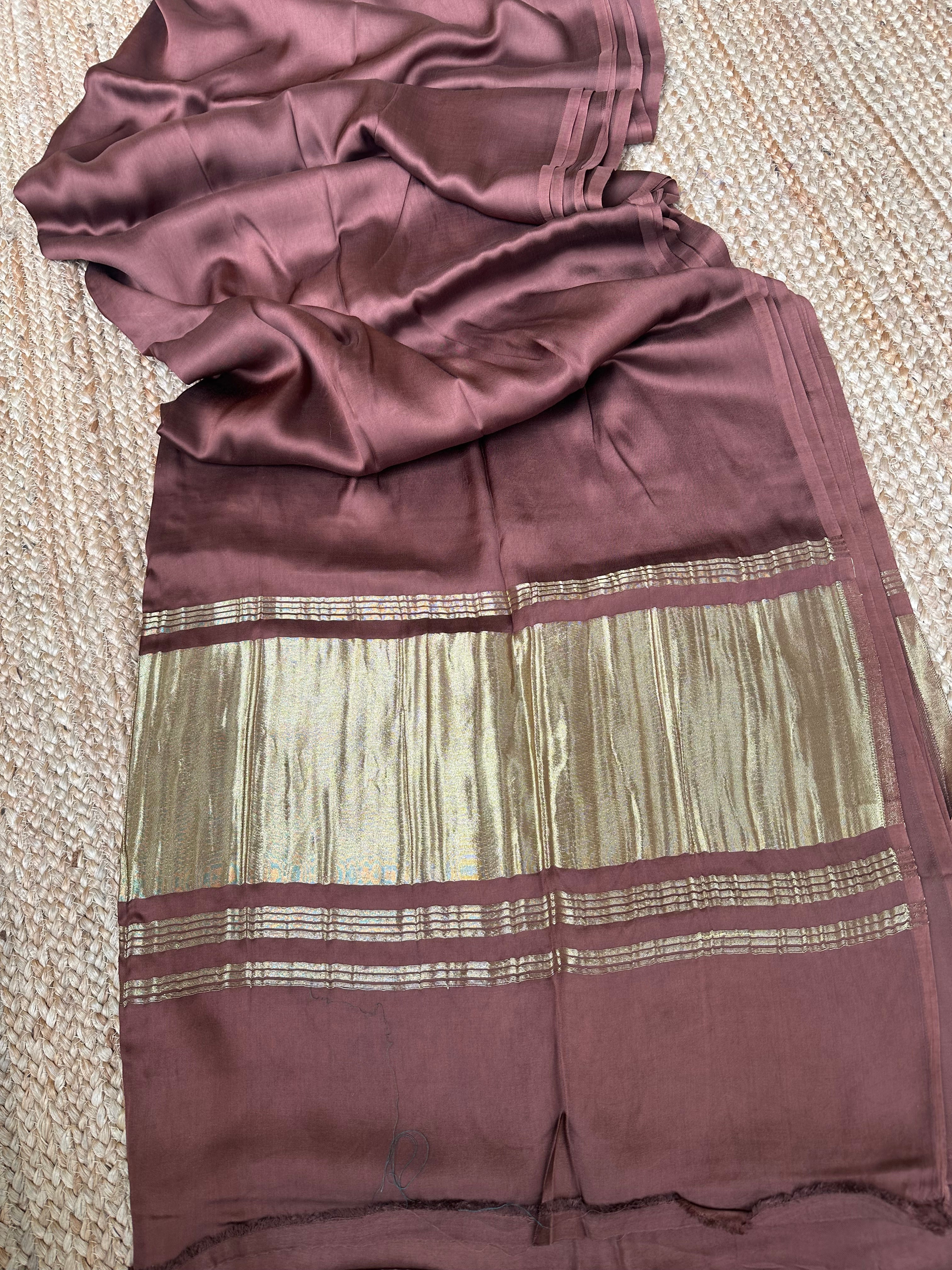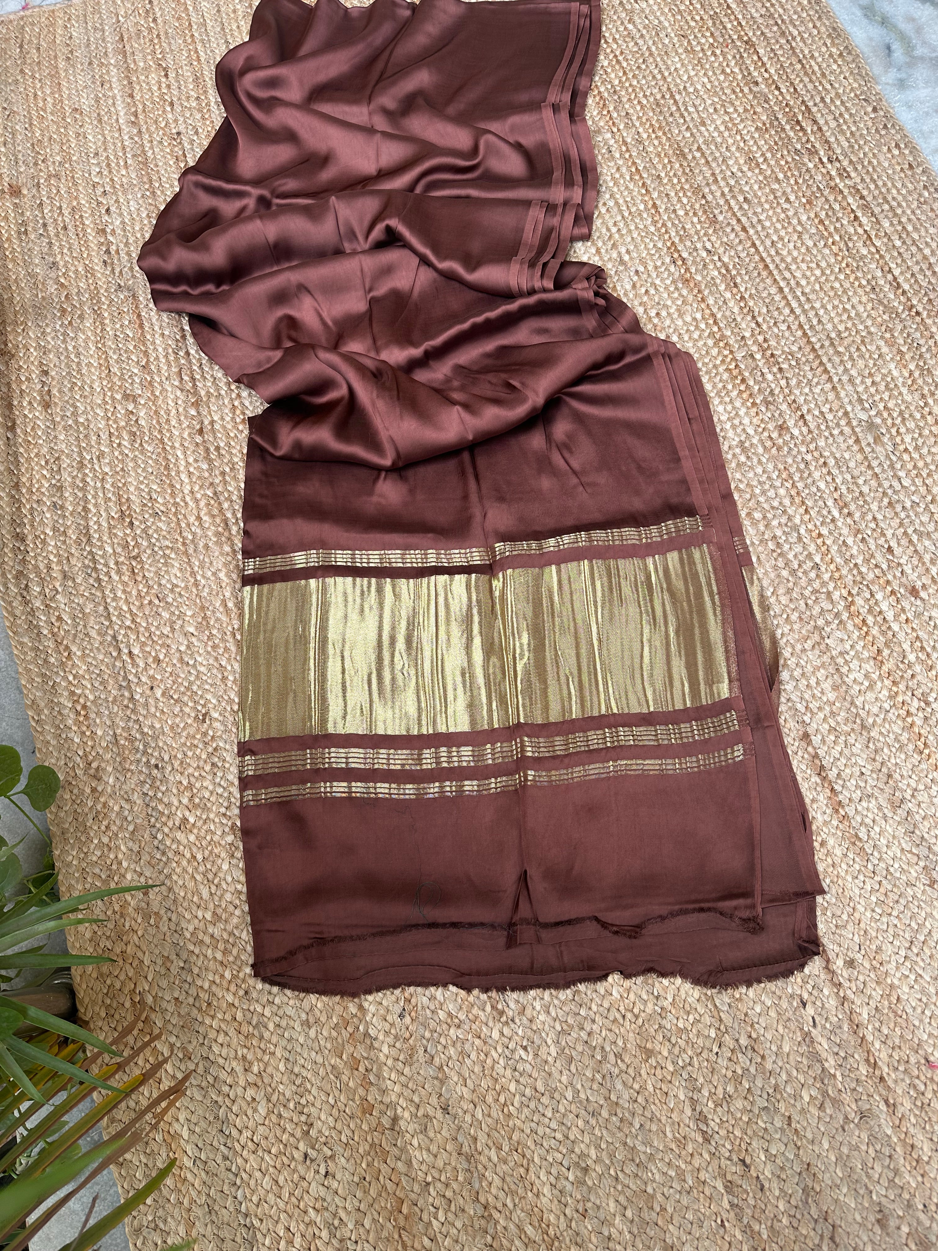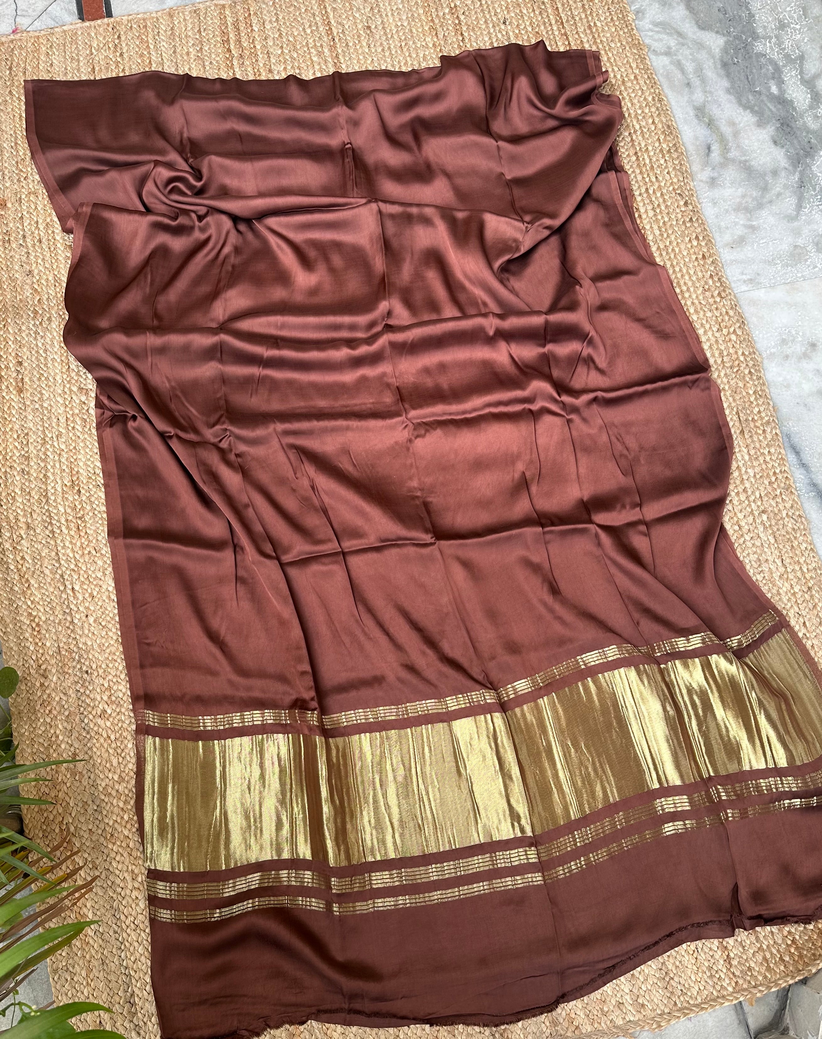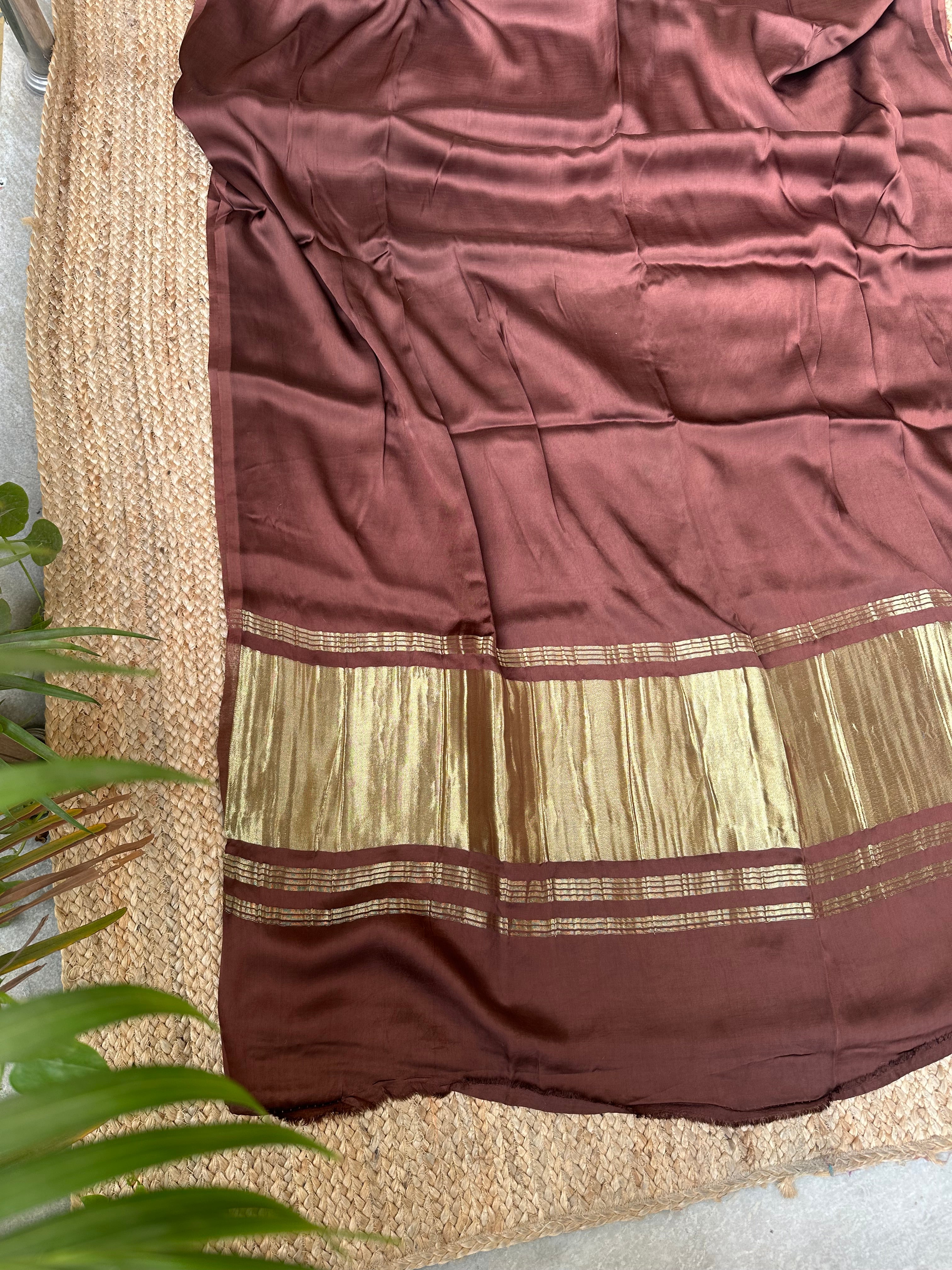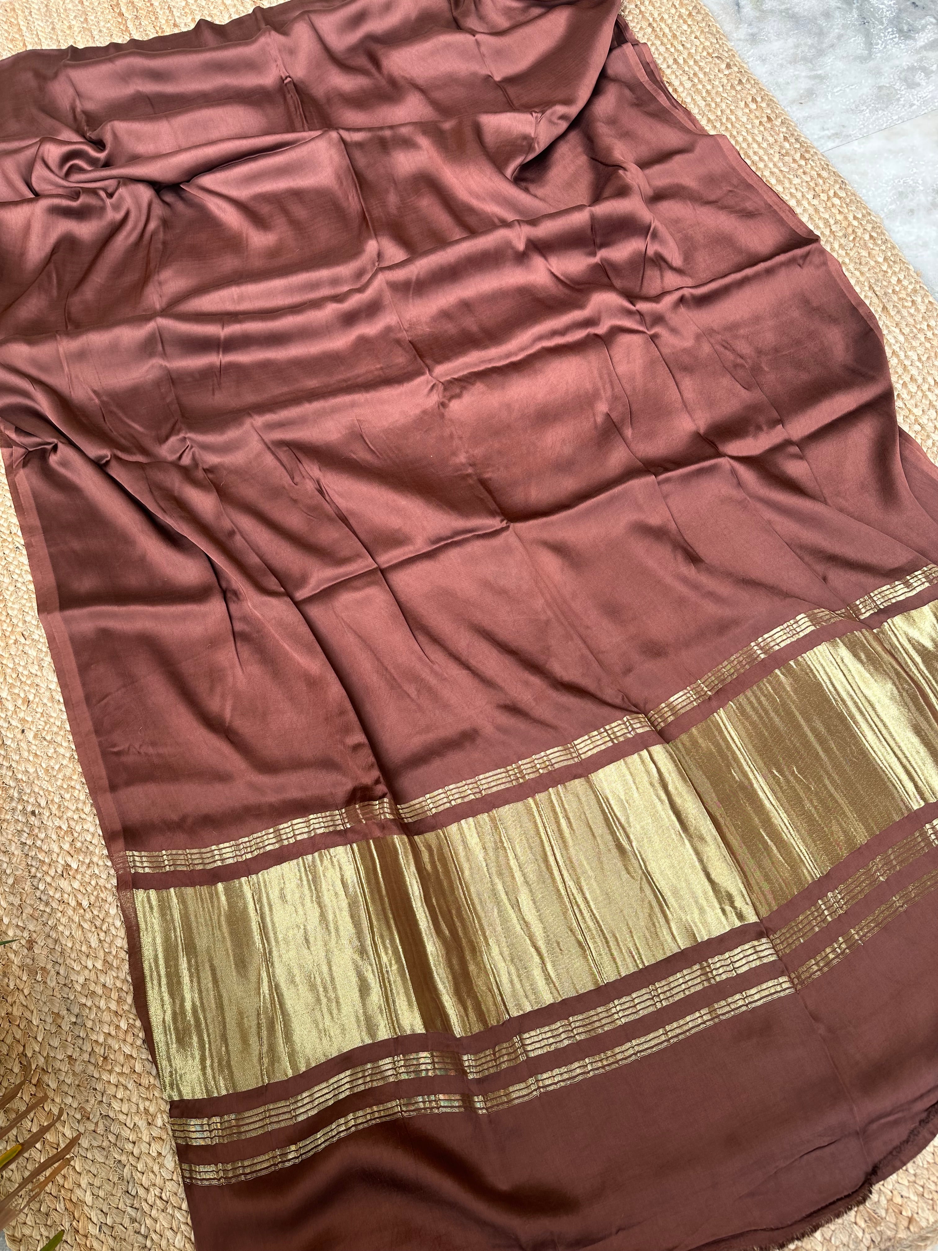 Brown Plain Modal Silk Saree with Zari Pallu