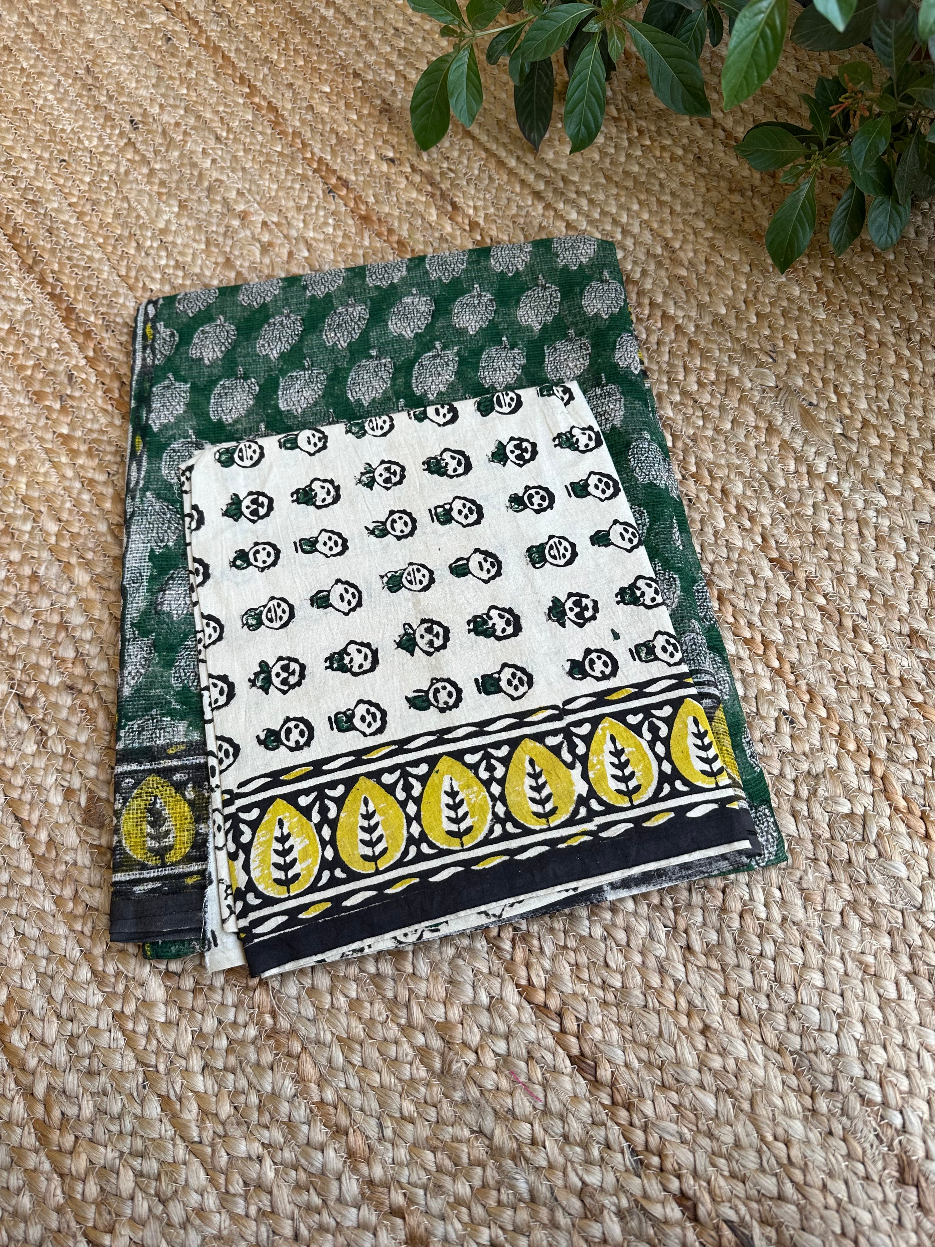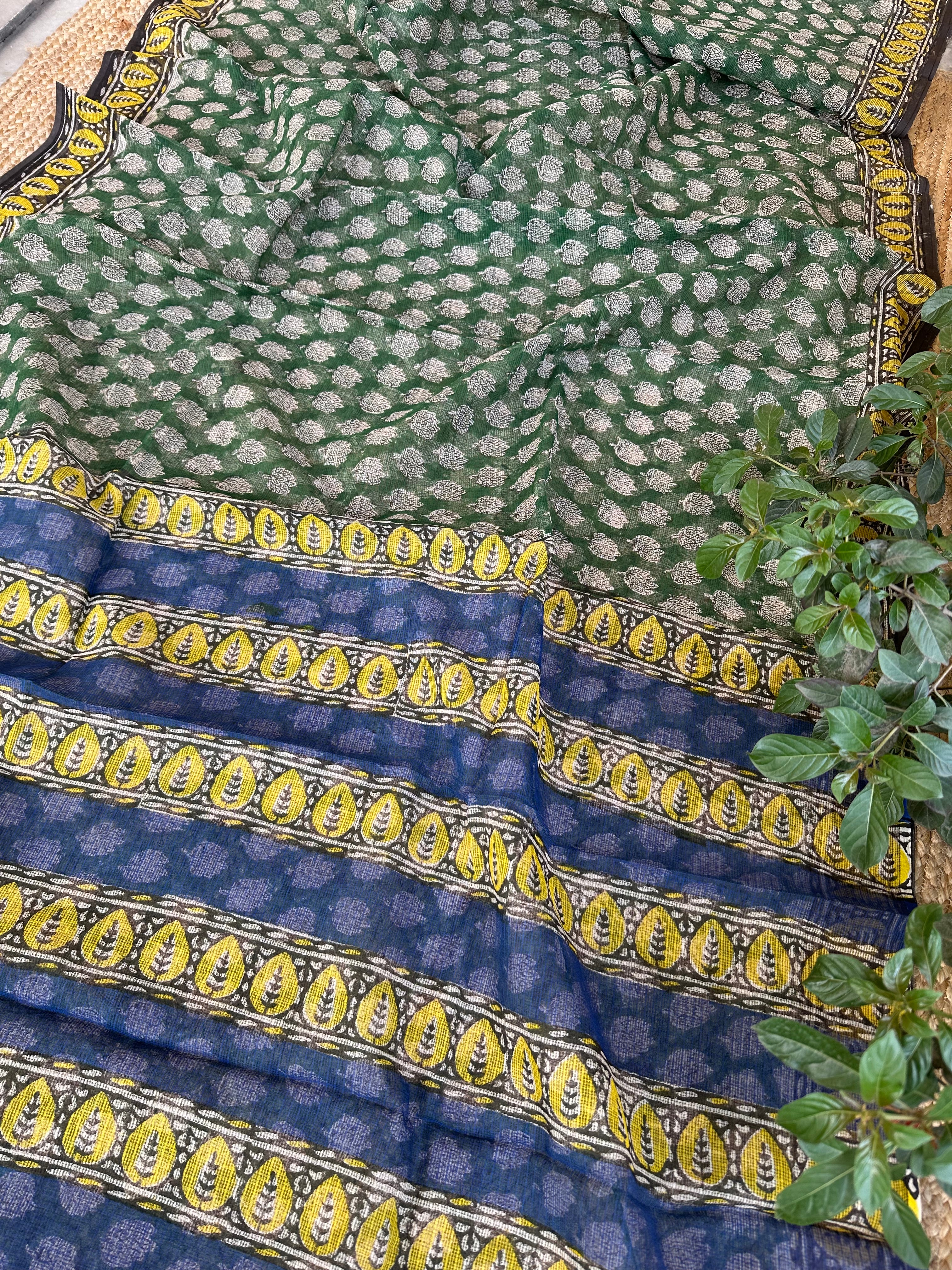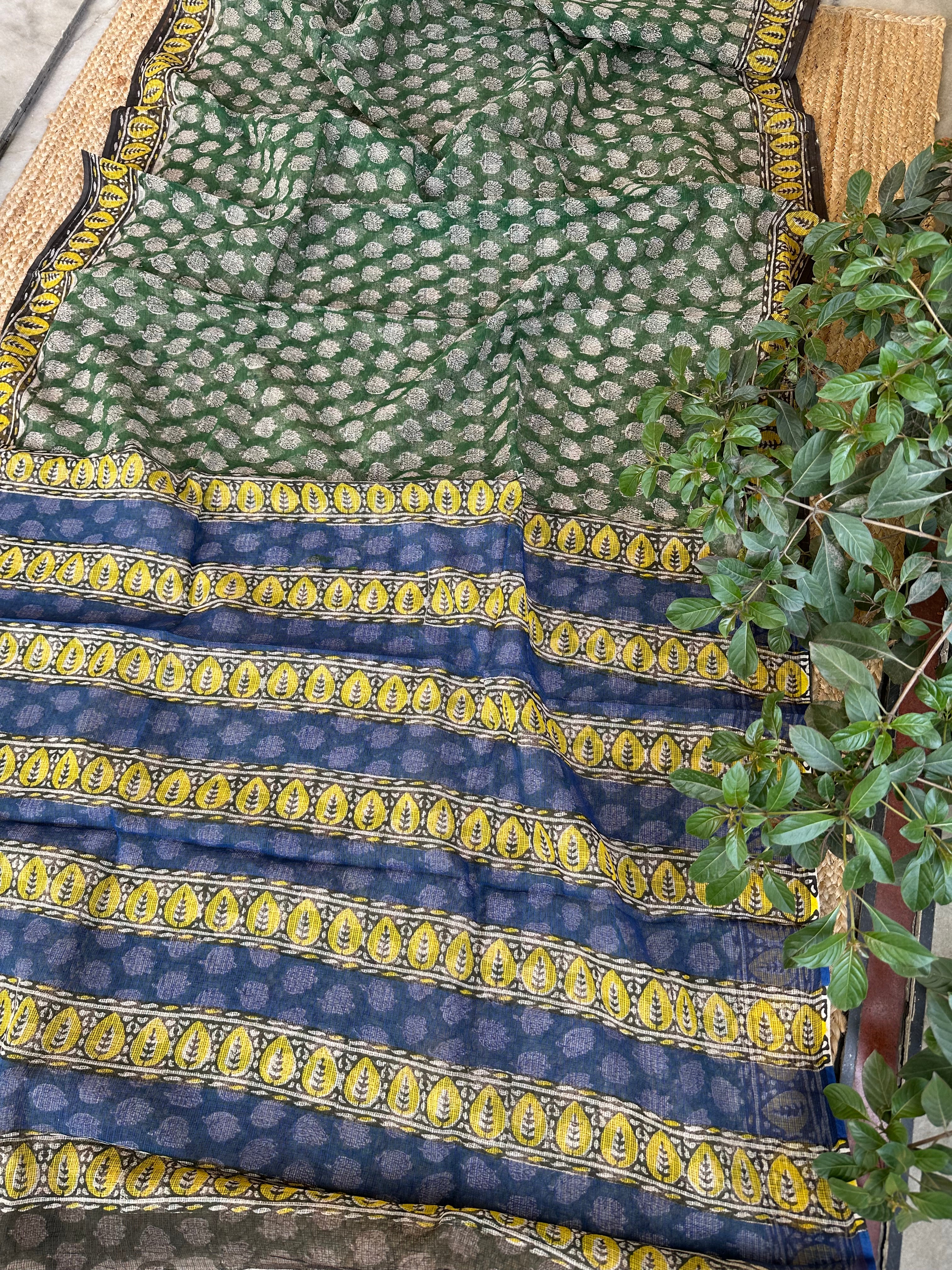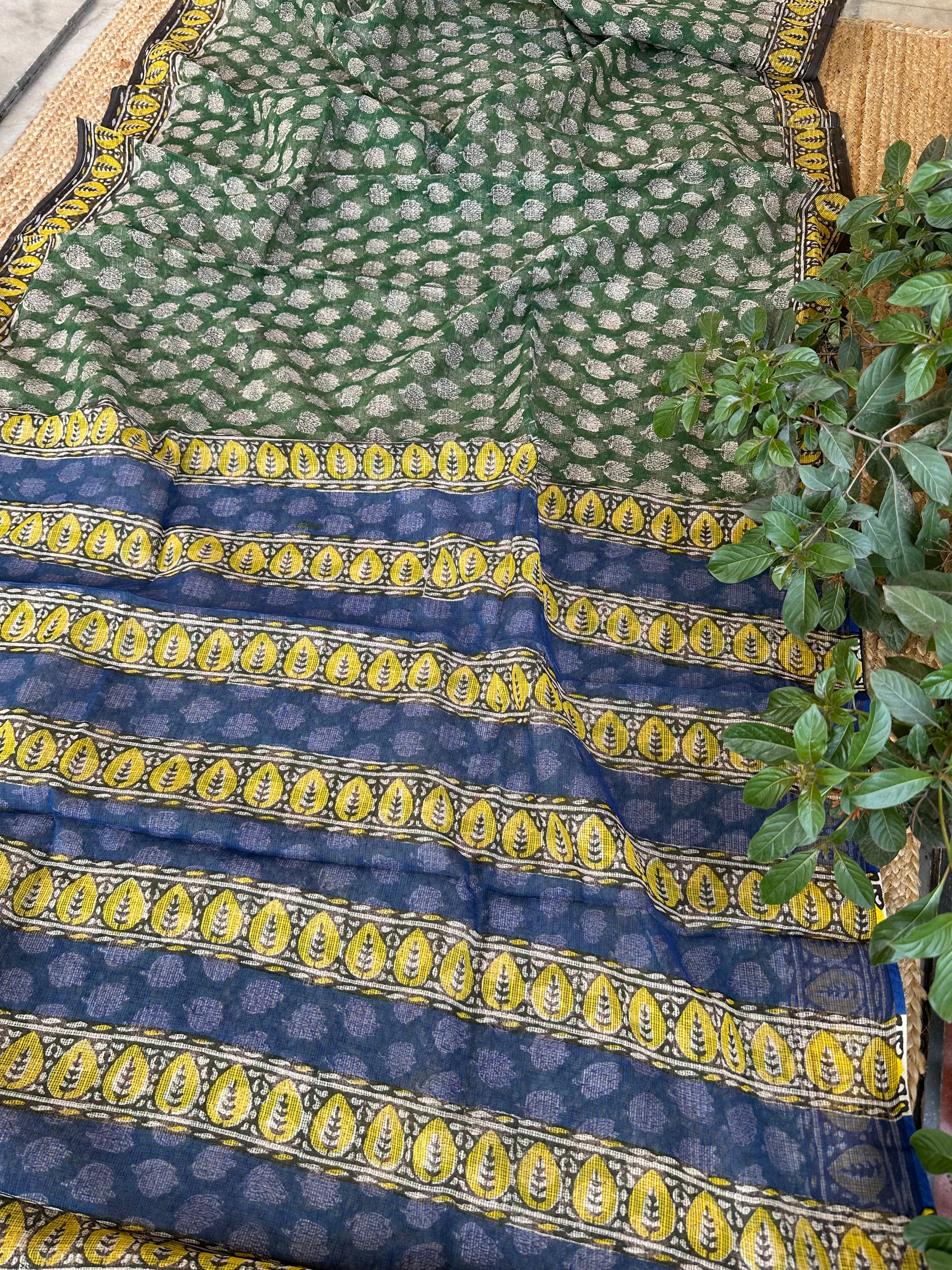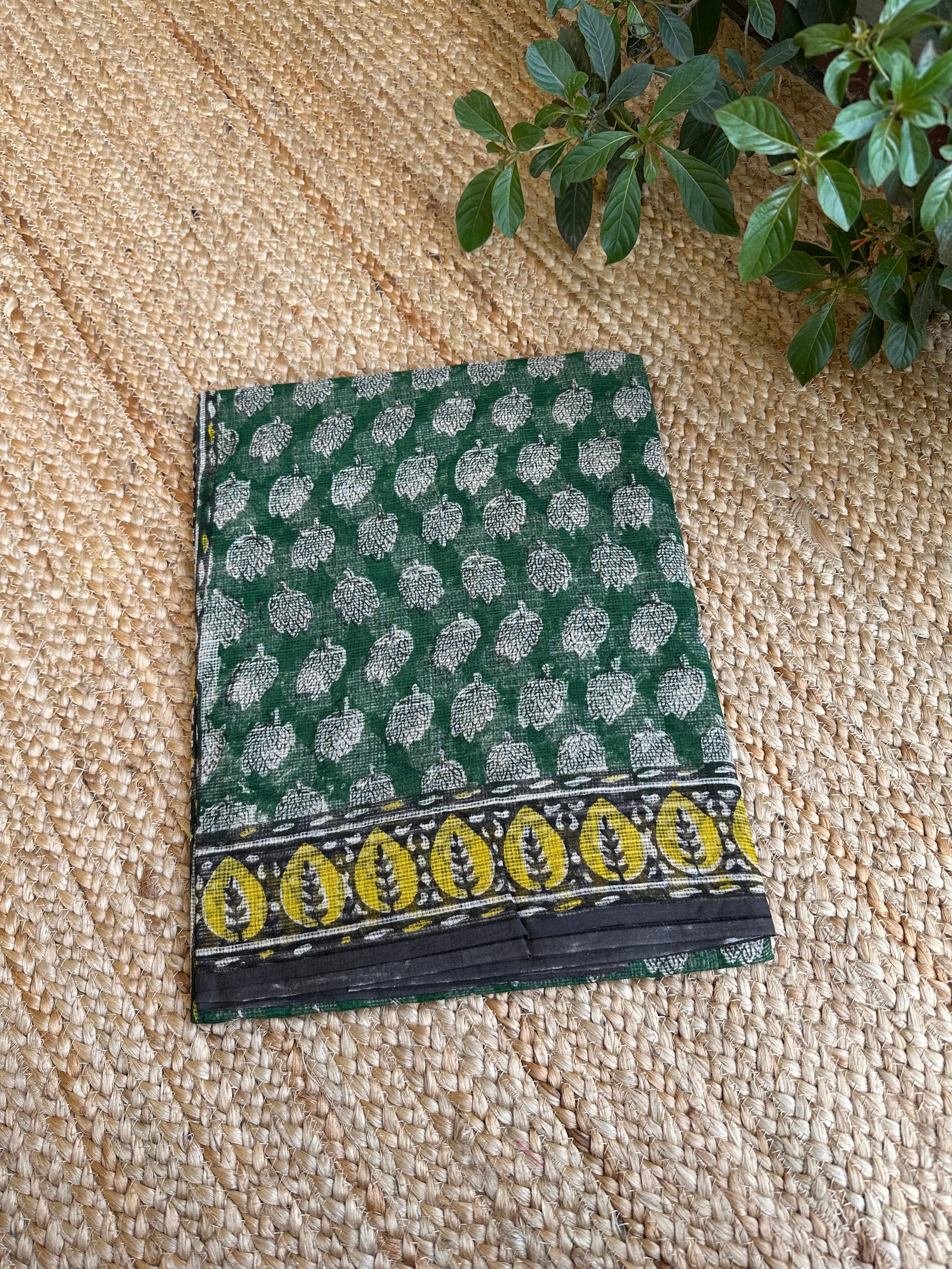 Green Kota Cotton Handblock Printed Saree