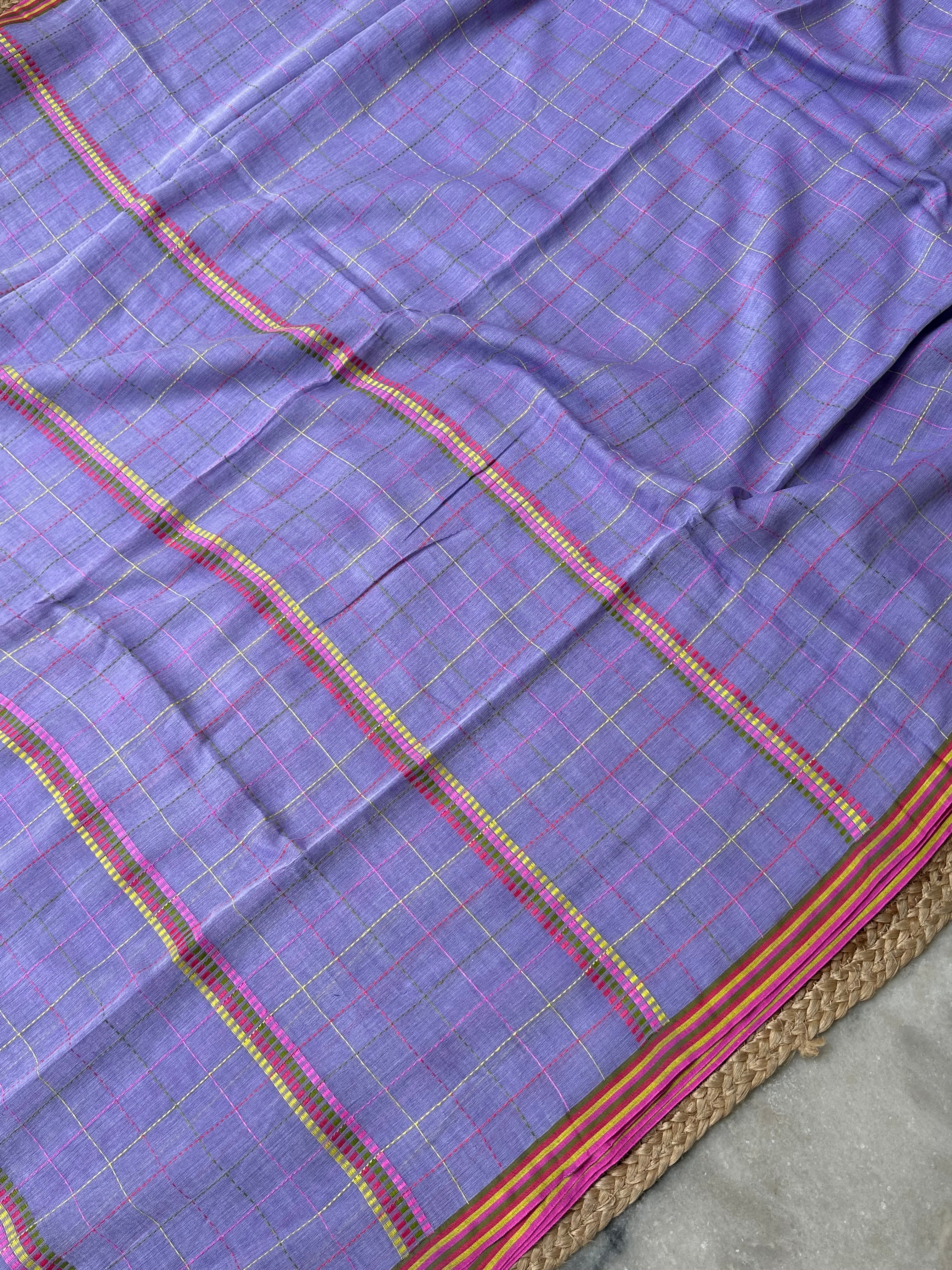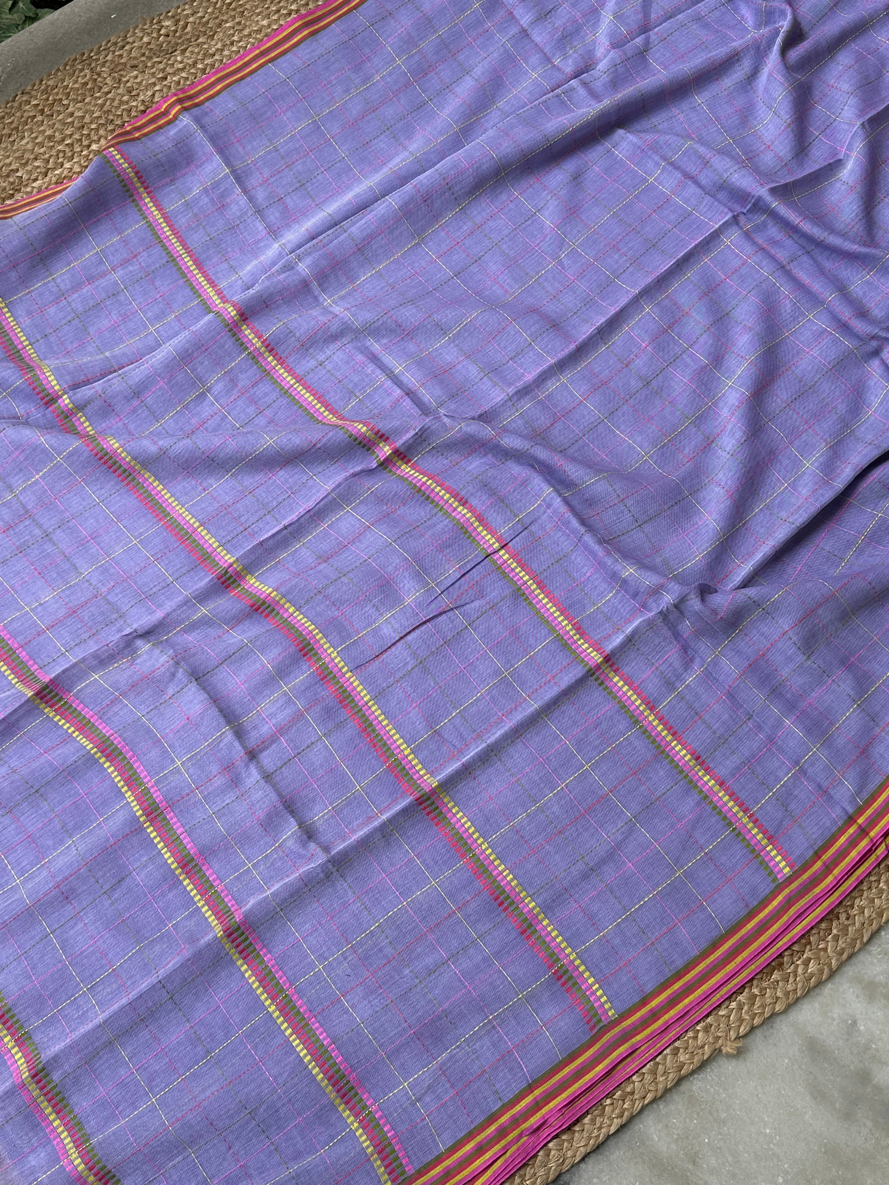 Material: Pure cotton handloom saree with checked pattern.