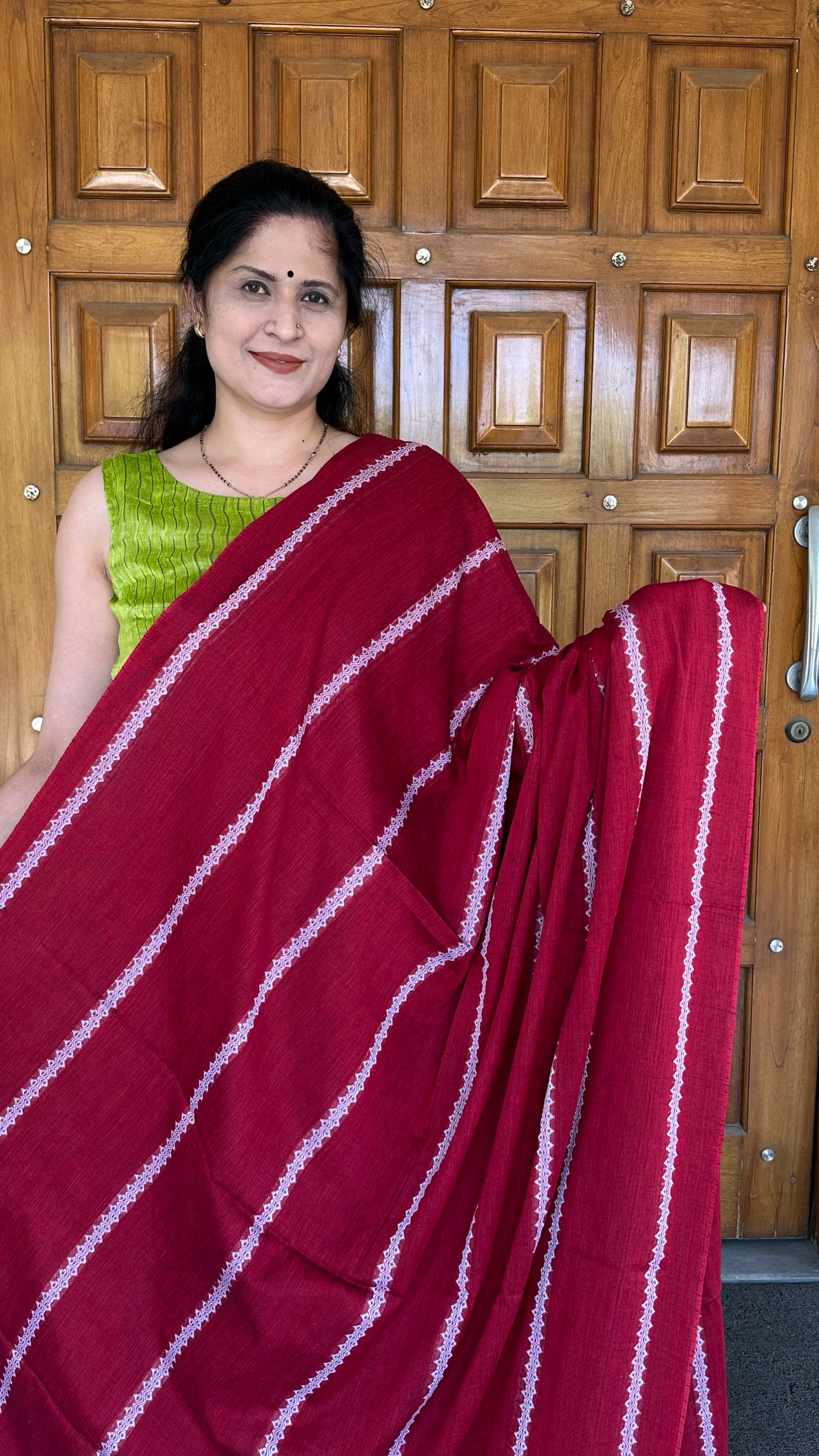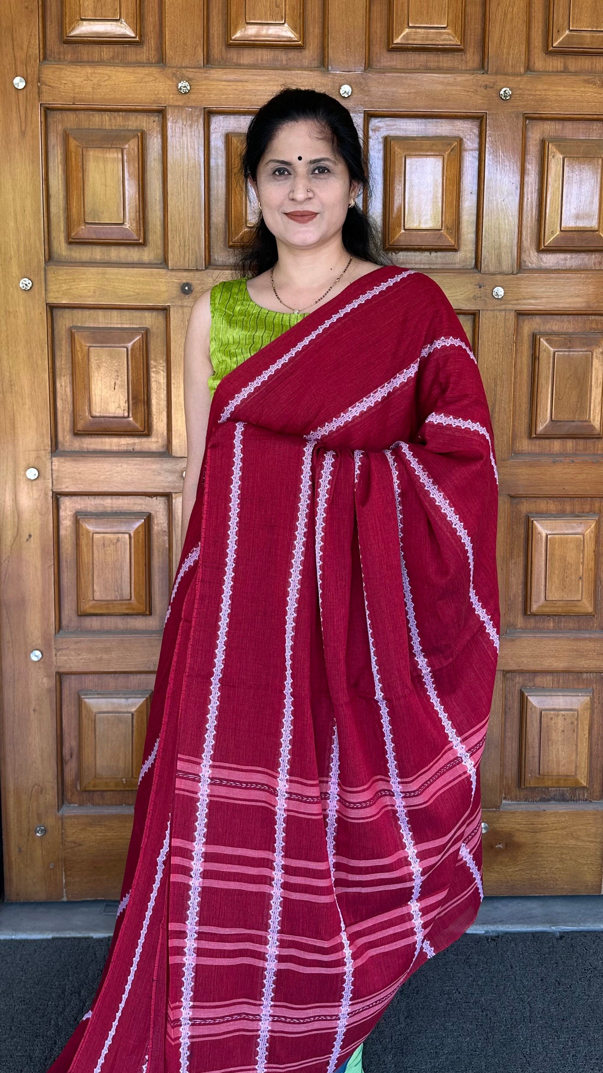 Maroon Striped Bengal Cotton Handloom Saree