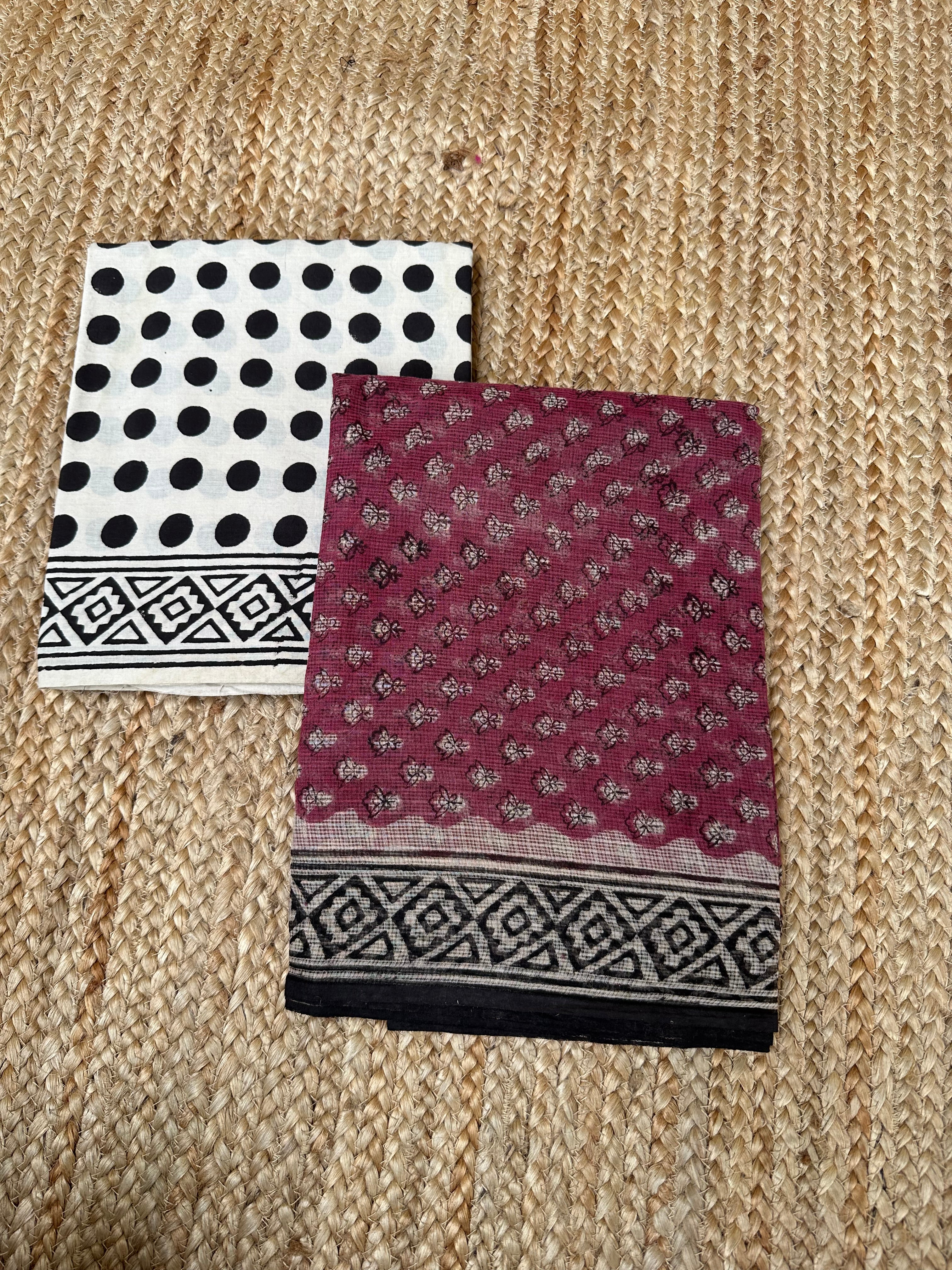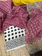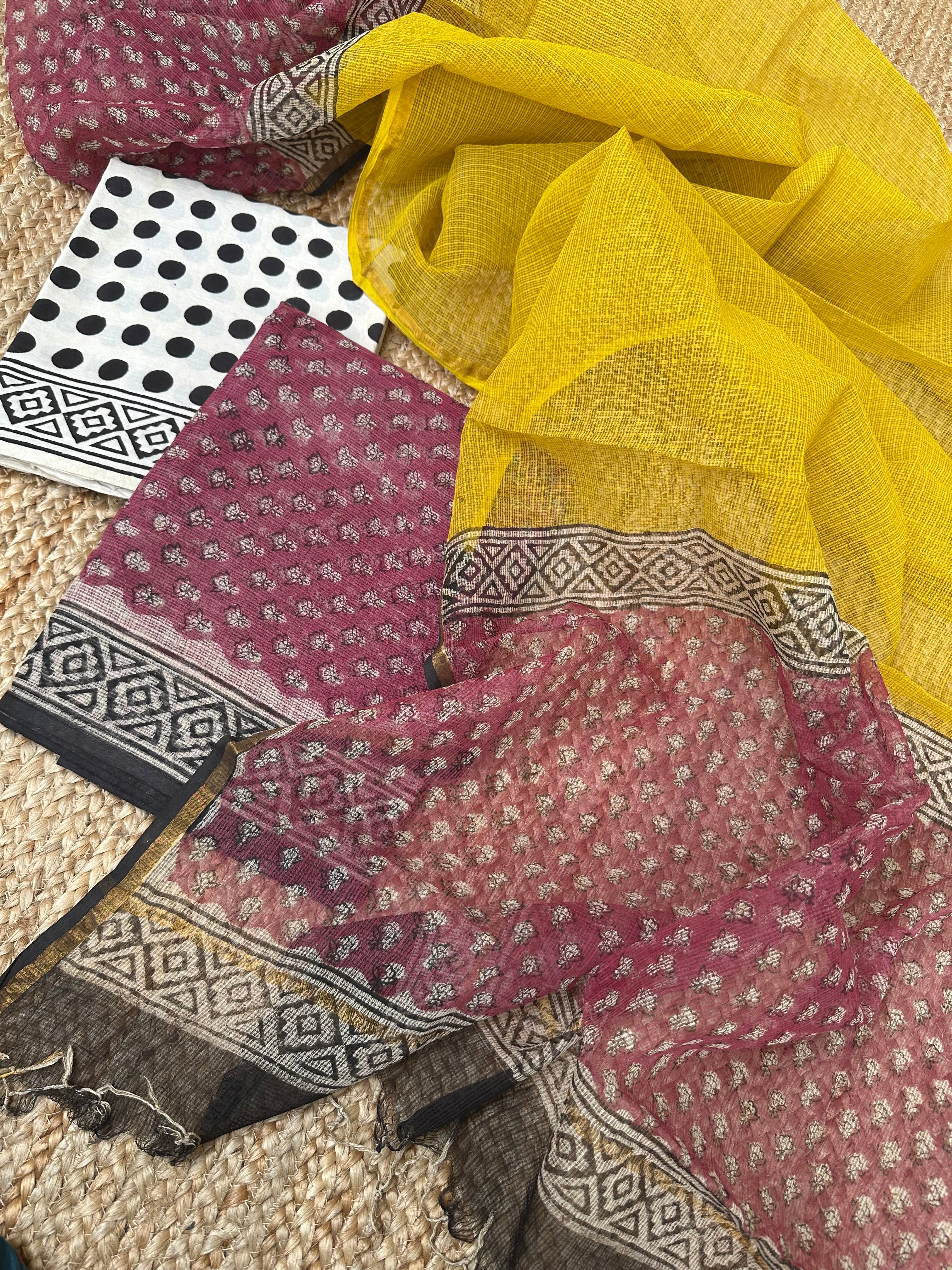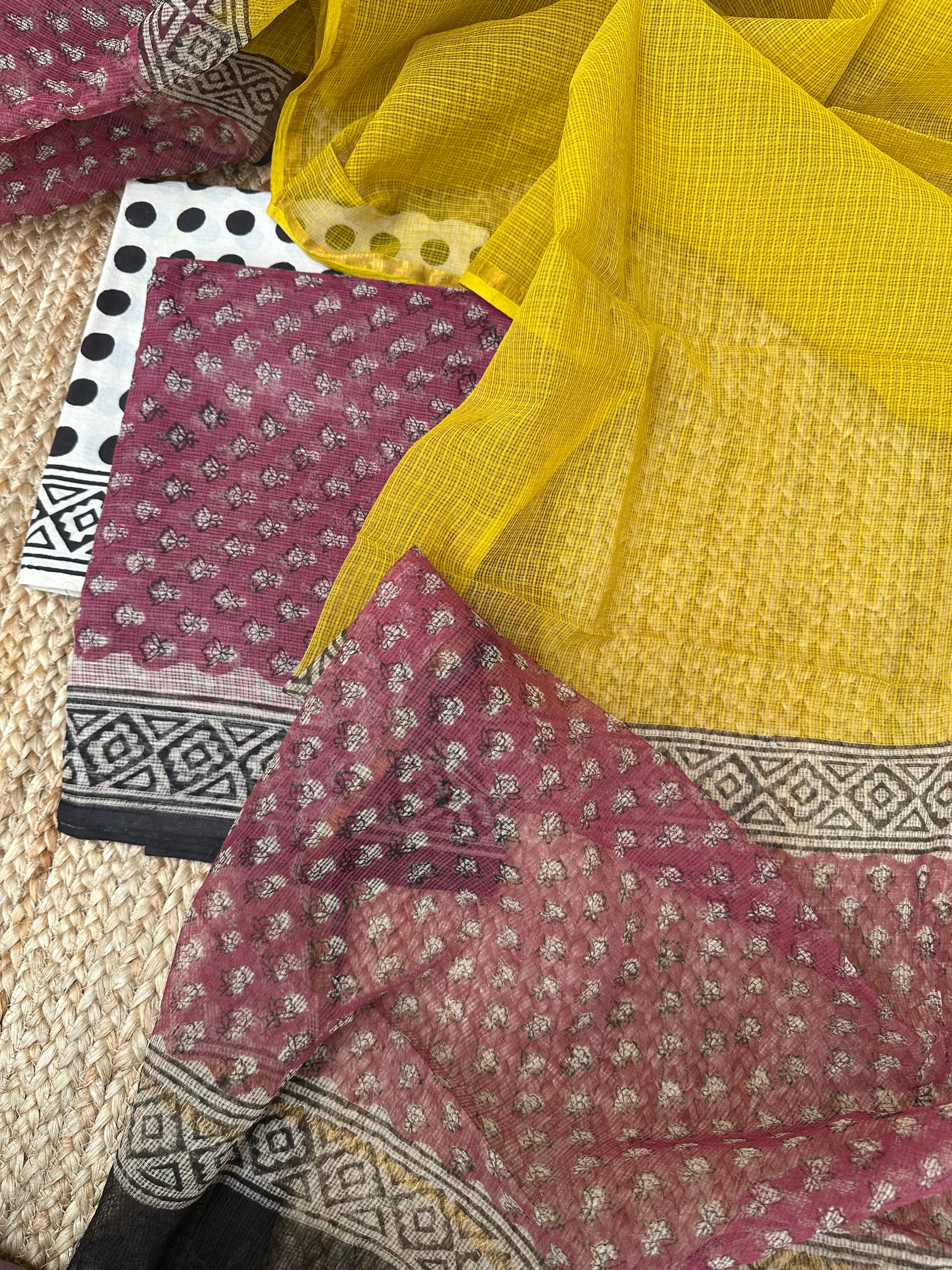 Maroon Yellow Kota Handblock Printed Suit (unstitched)